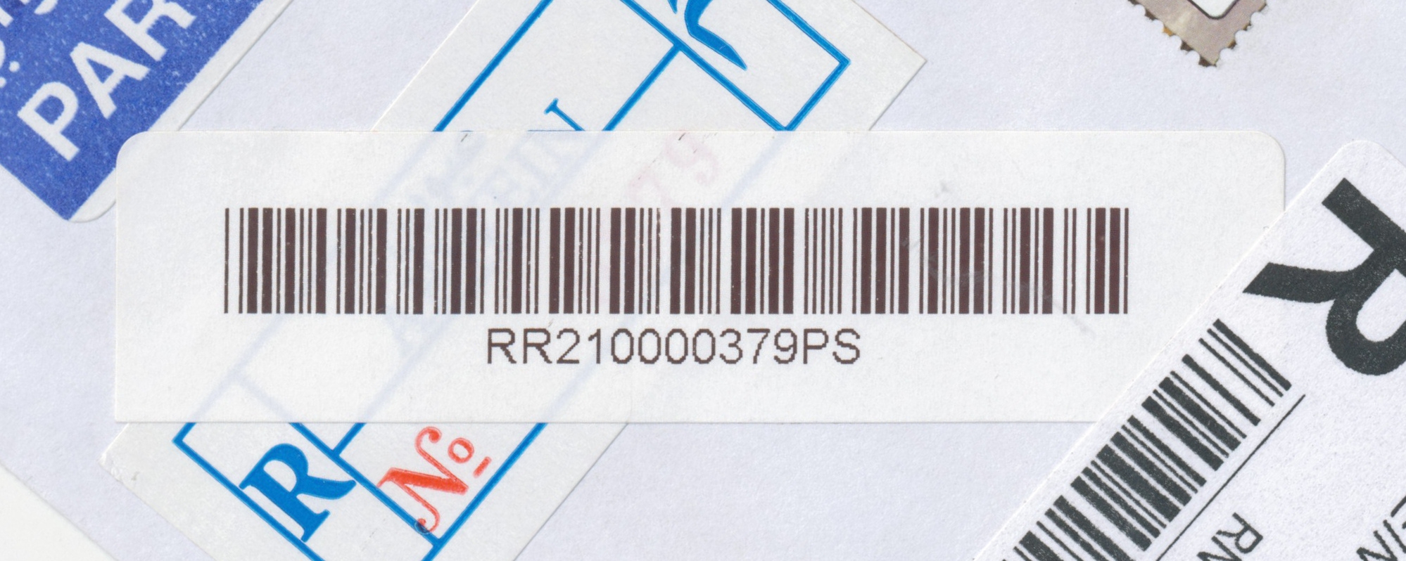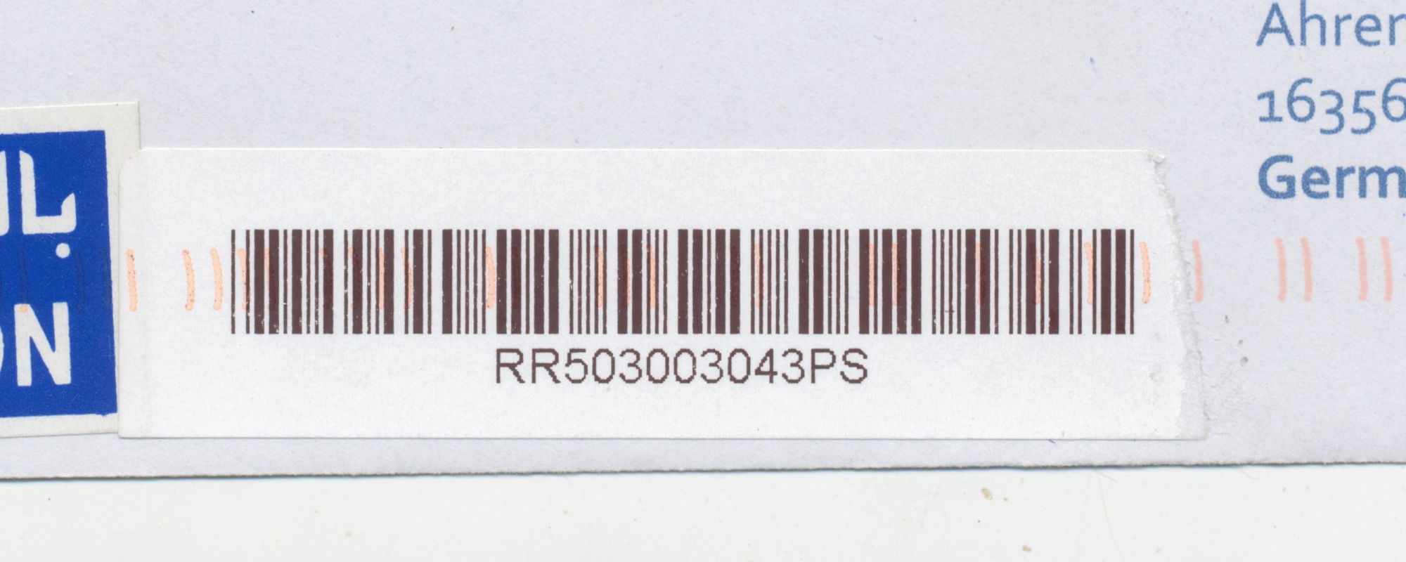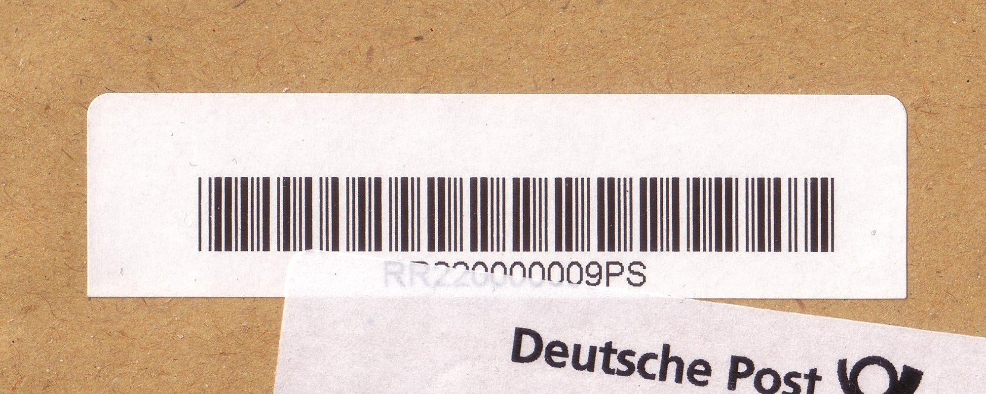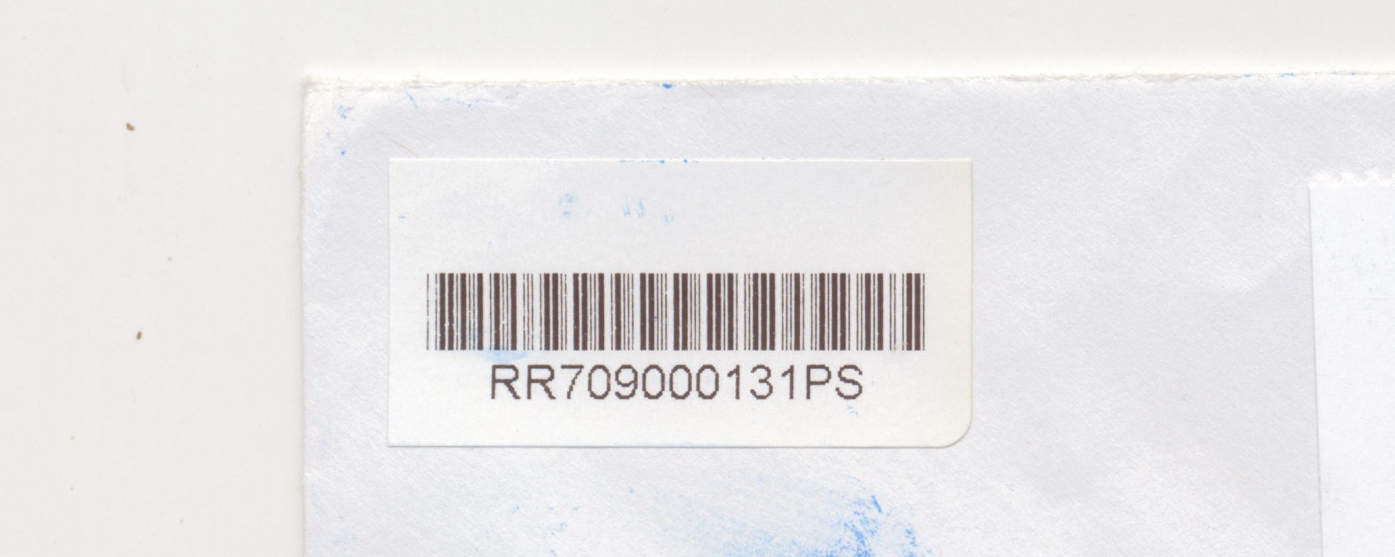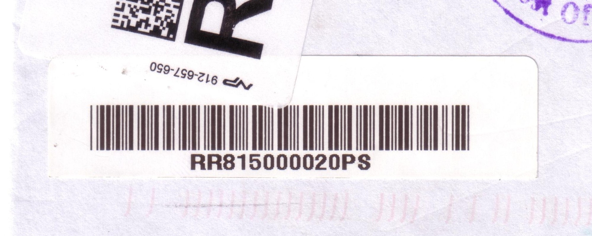 - white self-adhesive labels, printed in black. "IPS Light" linear barcode. With or without "Palestine Post" on top of imprinted numerator (9 digits) with prefixed RR and suffixed PS or ps. Label size varies.