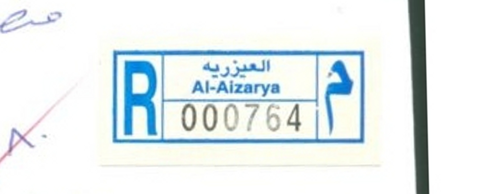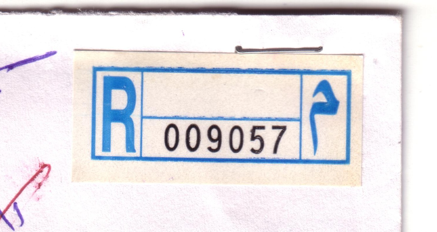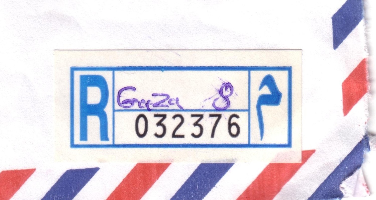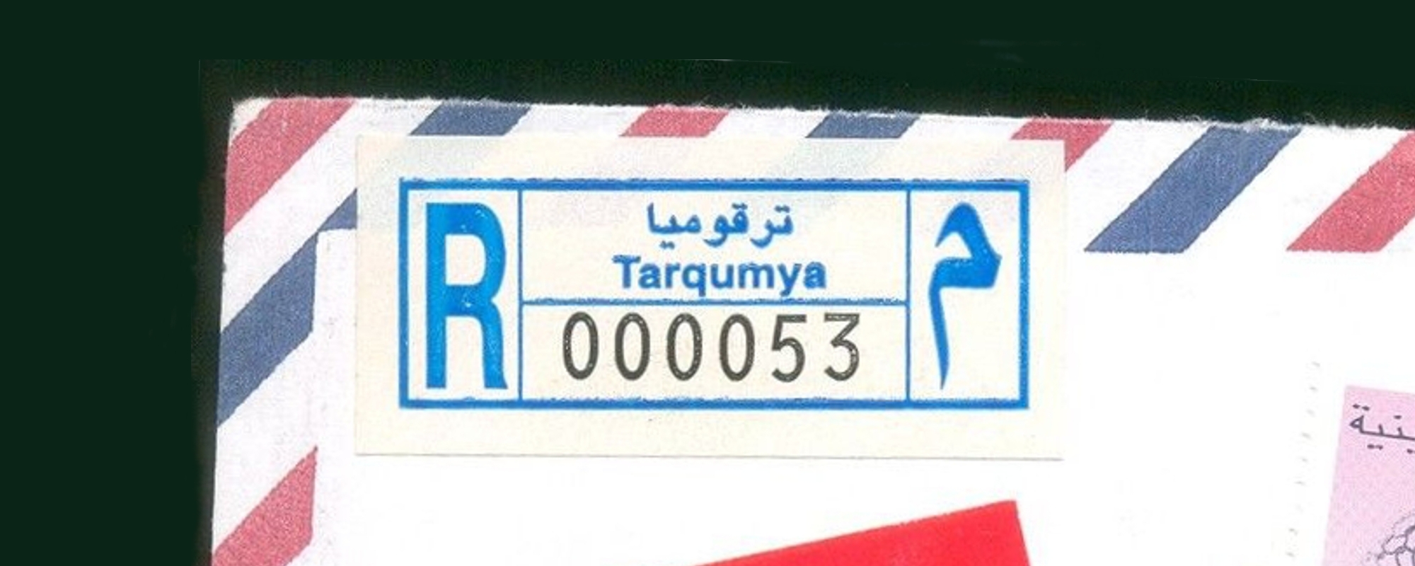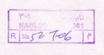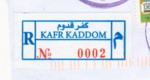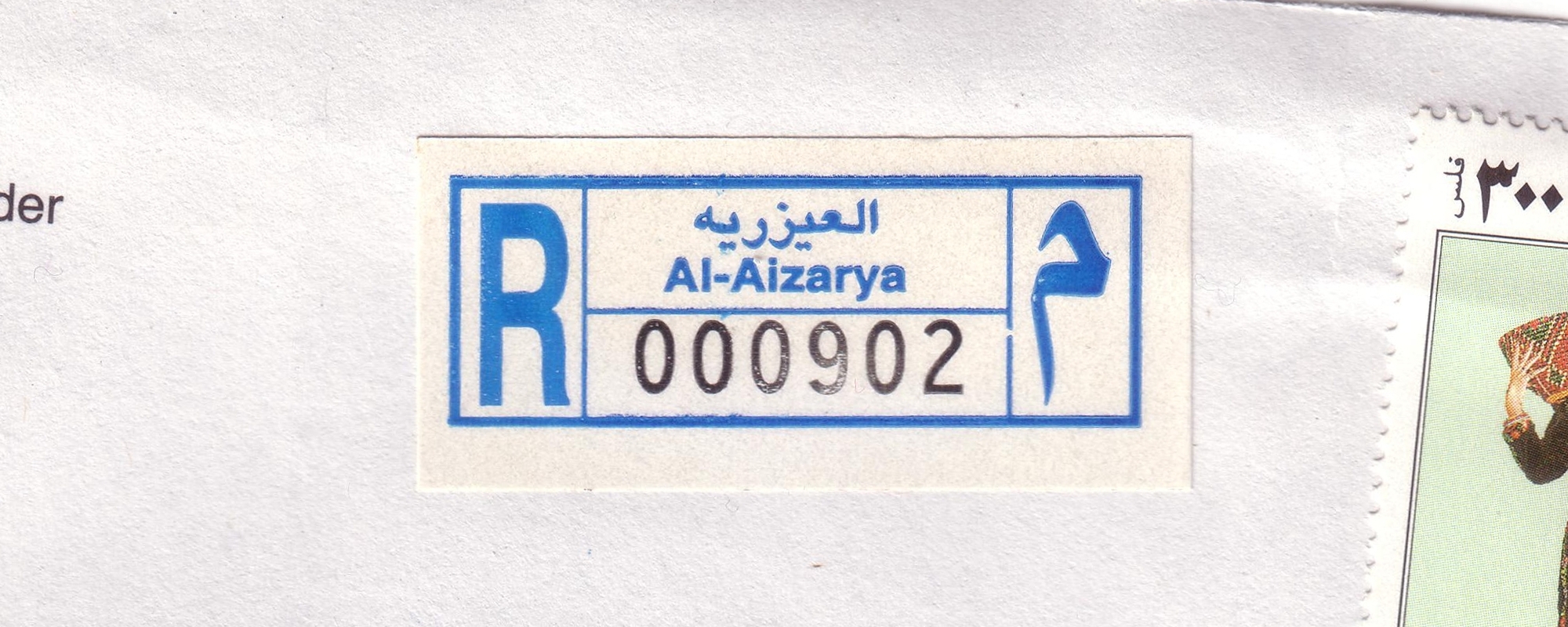 Special markings or labels for "Advice of Delivery" (avis de réception) service are naturally more rare than registration markings. An example for a handwritten marking "AR" (Gaza 8, August 2006) is shown on the right, together with the handstamp that should be available at most post offices. Below front and reverse side of form NB112 (ن ب ١١٢) and a cover from Halhul 2006.