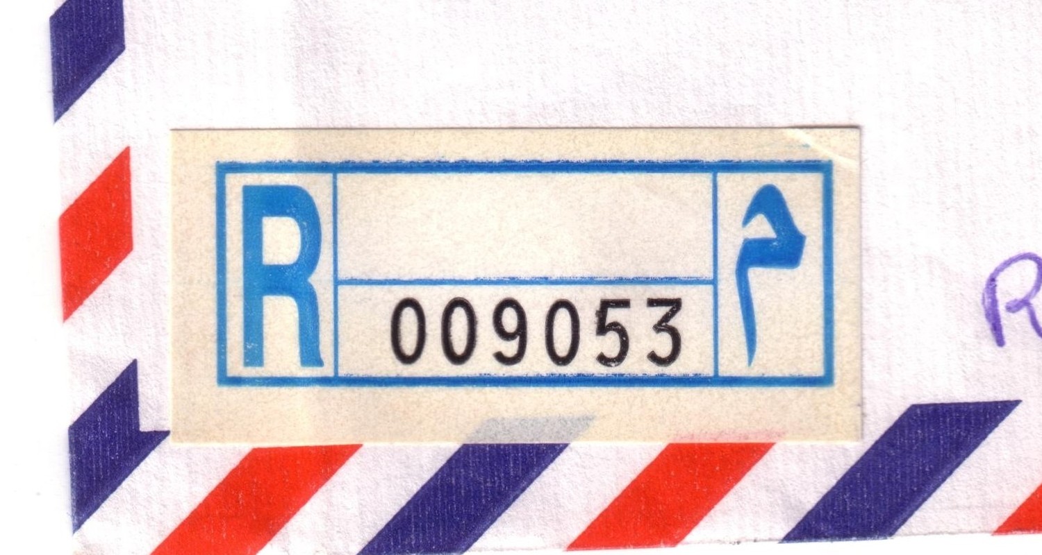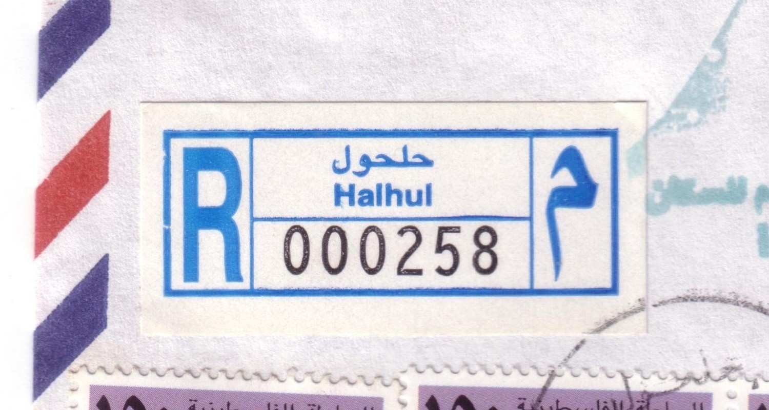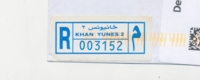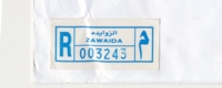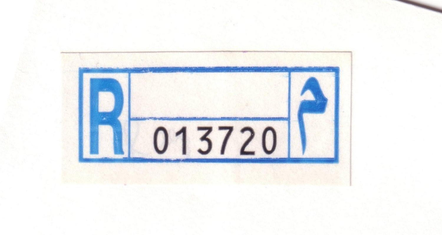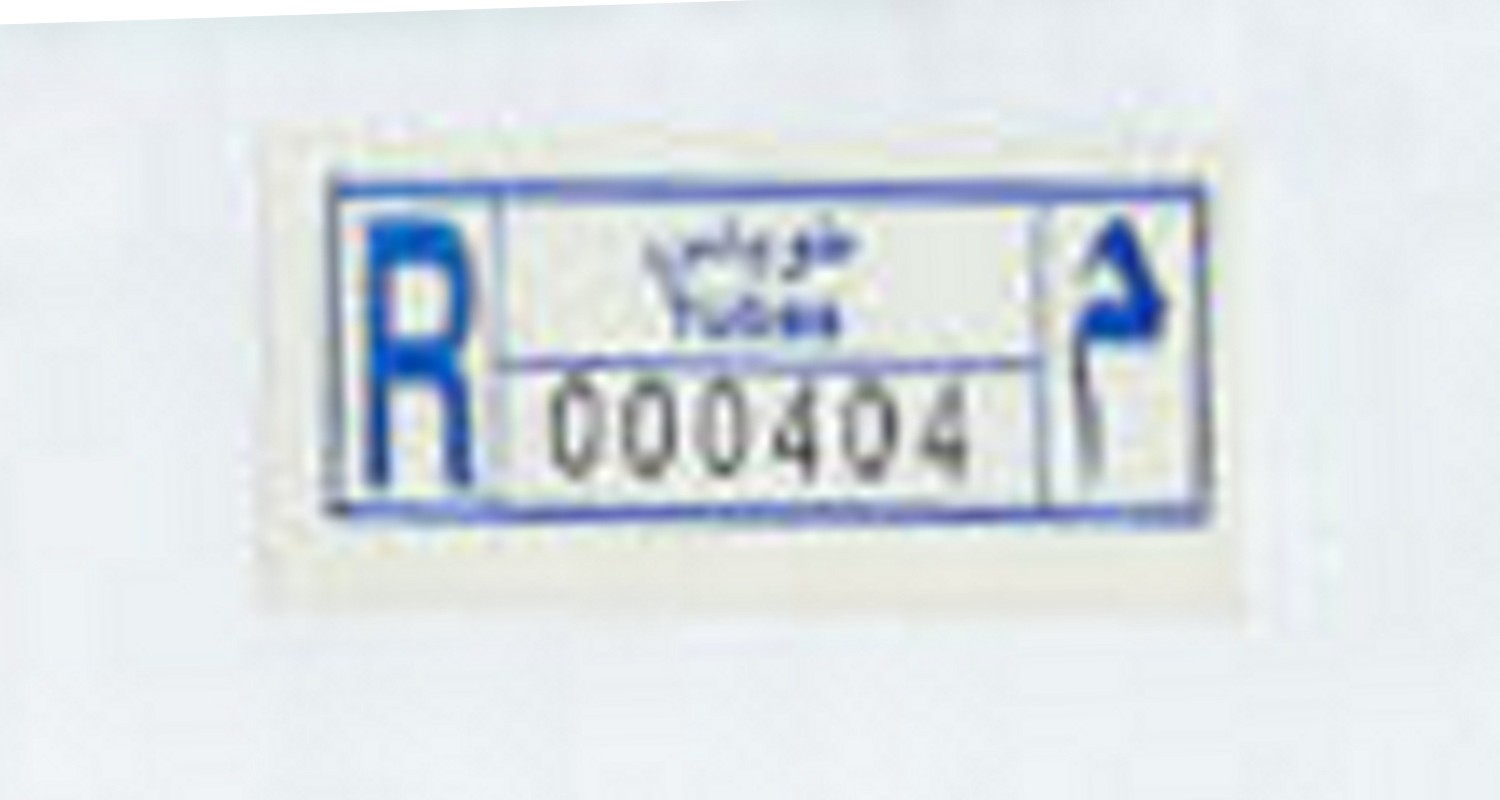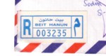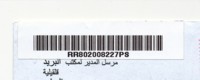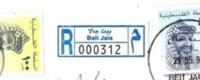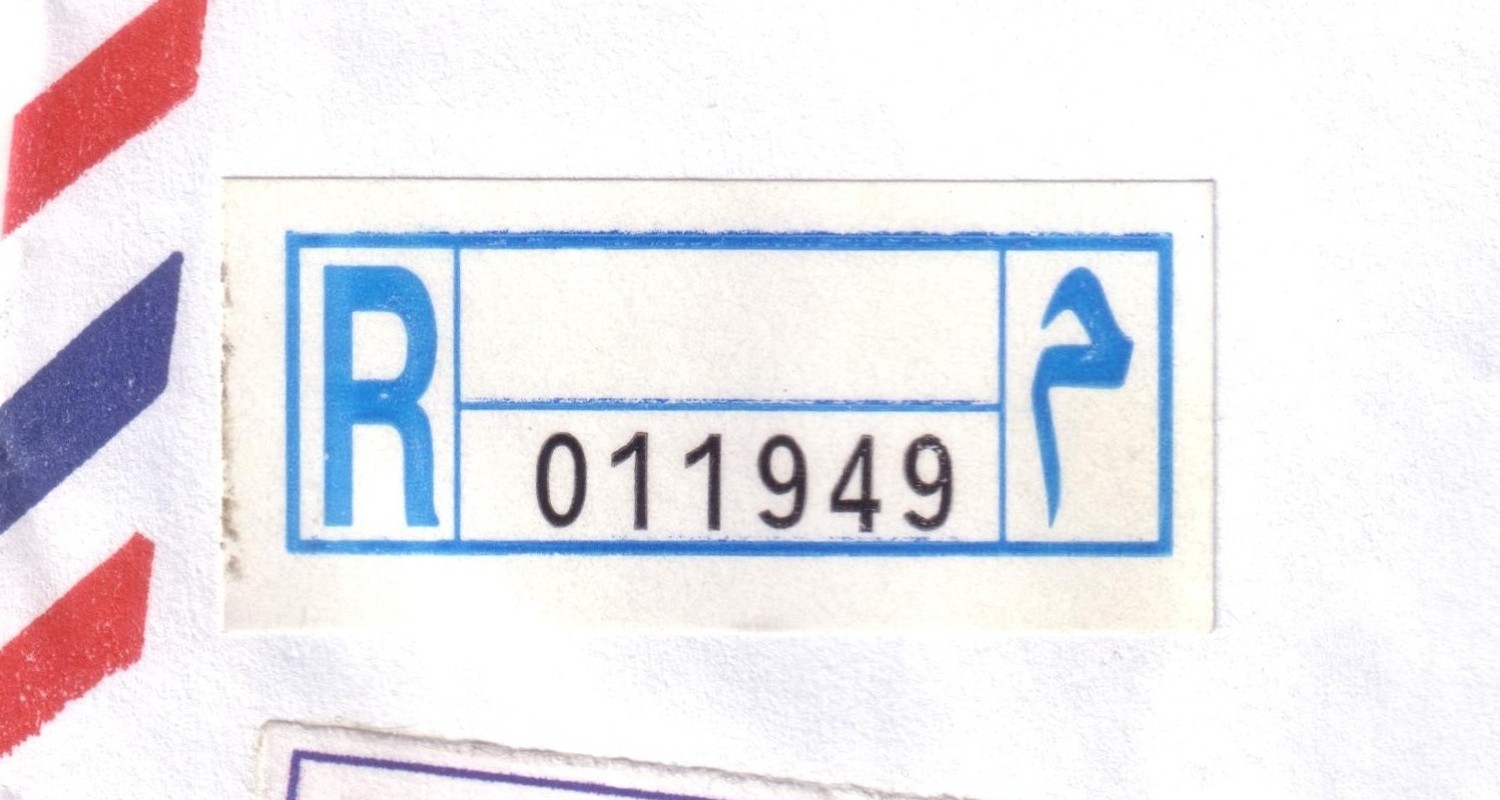 Special markings or labels for "Advice of Delivery" (avis de réception) service are naturally more rare than registration markings. An example for a handwritten marking "AR" (Gaza 8, August 2006) is shown on the right, together with the handstamp that should be available at most post offices. Below front and reverse side of form NB112 (ن ب ١١٢) and a cover from Halhul 2006.