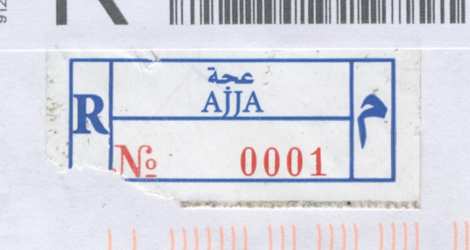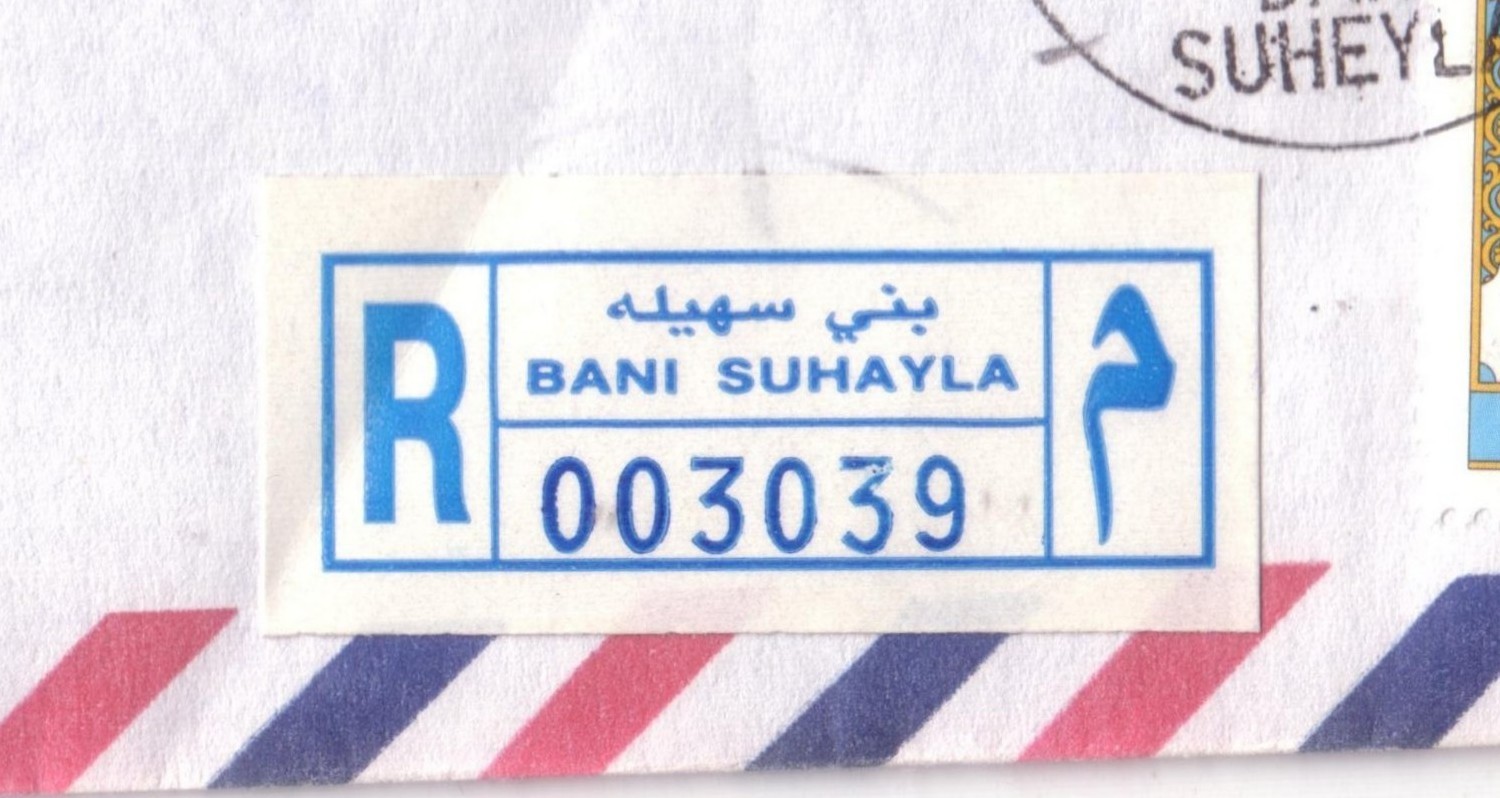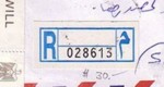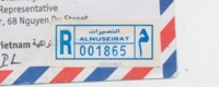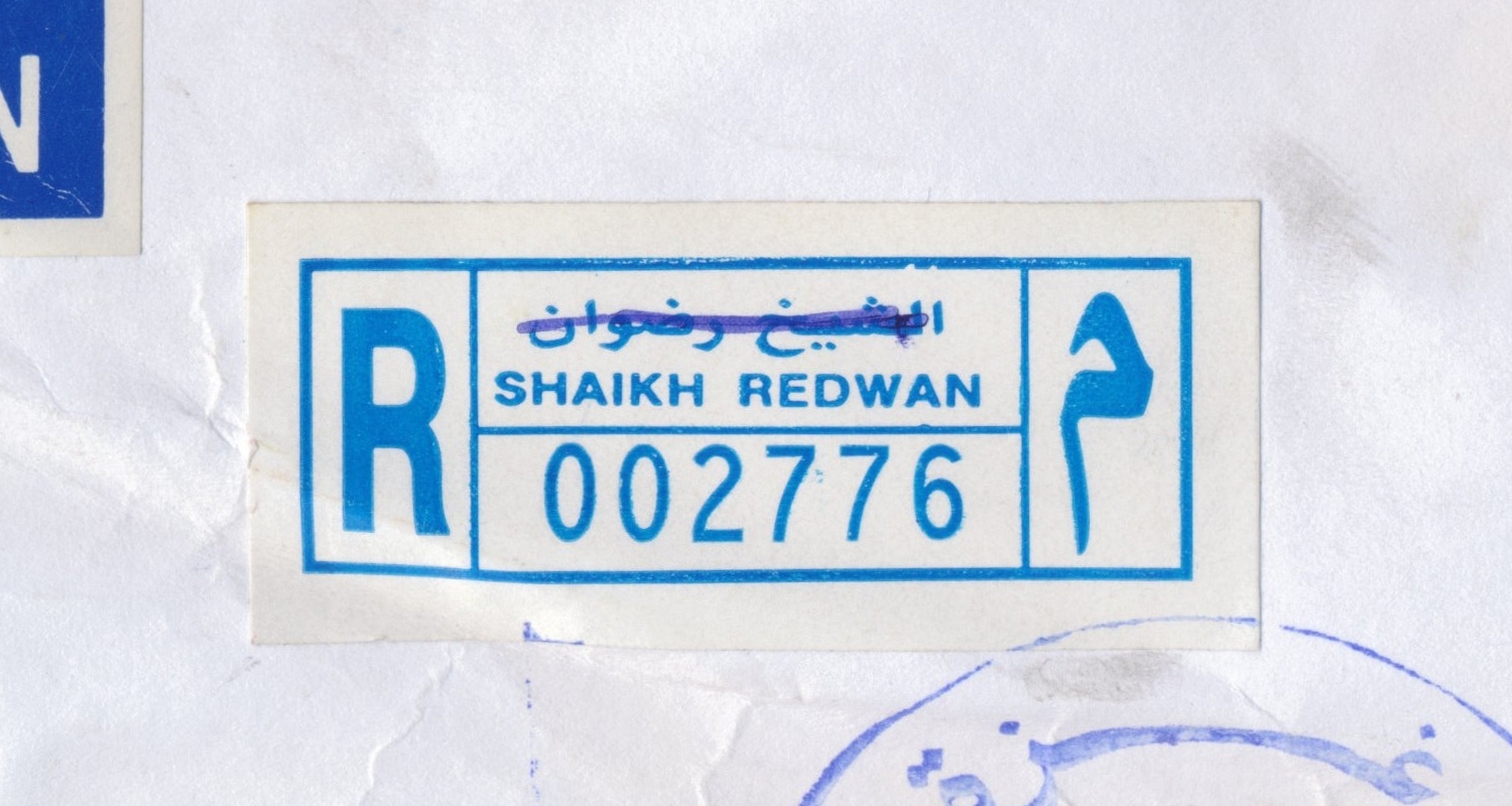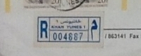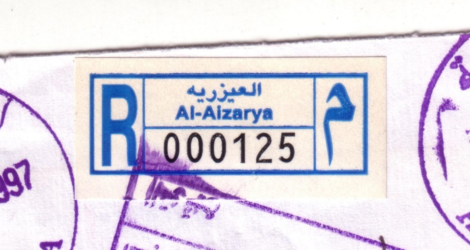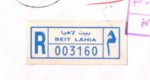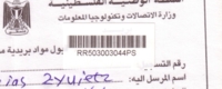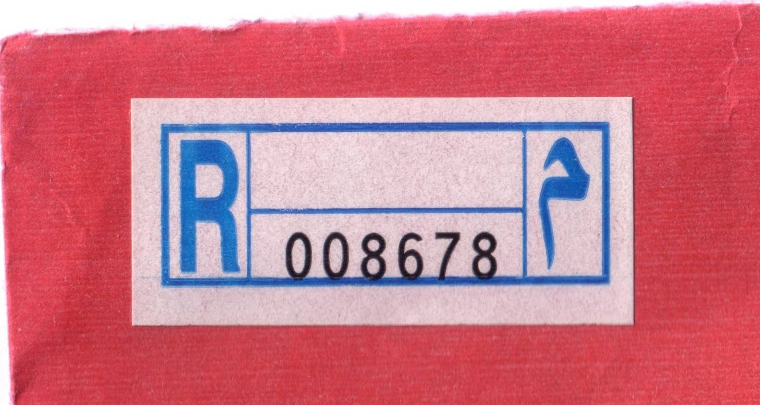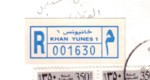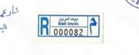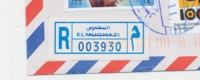 Special markings or labels for "Advice of Delivery" (avis de réception) service are naturally more rare than registration markings. An example for a handwritten marking "AR" (Gaza 8, August 2006) is shown on the right, together with the handstamp that should be available at most post offices. Below front and reverse side of form NB112 (ن ب ١١٢) and a cover from Halhul 2006.