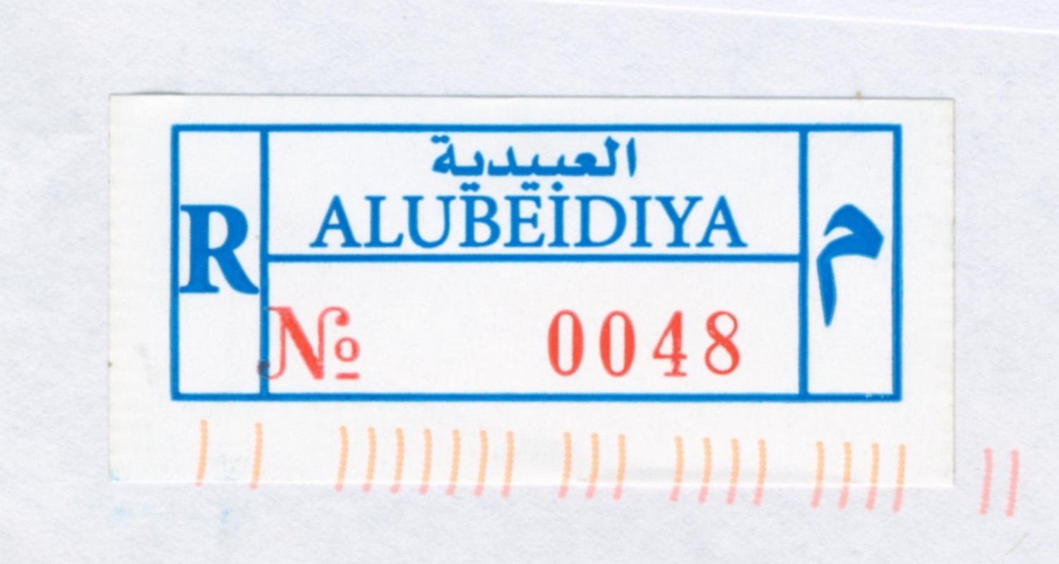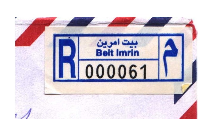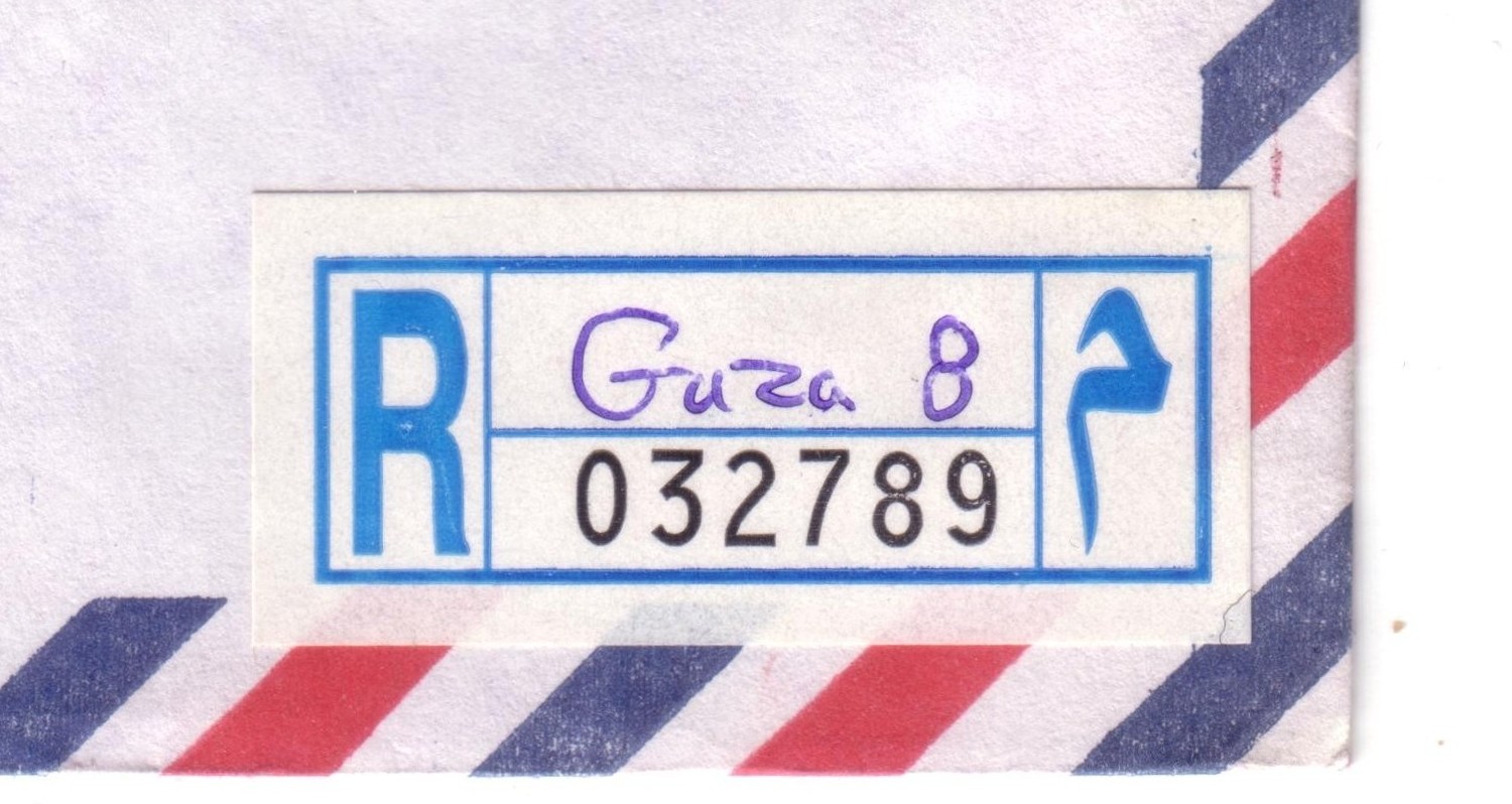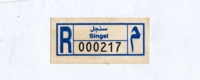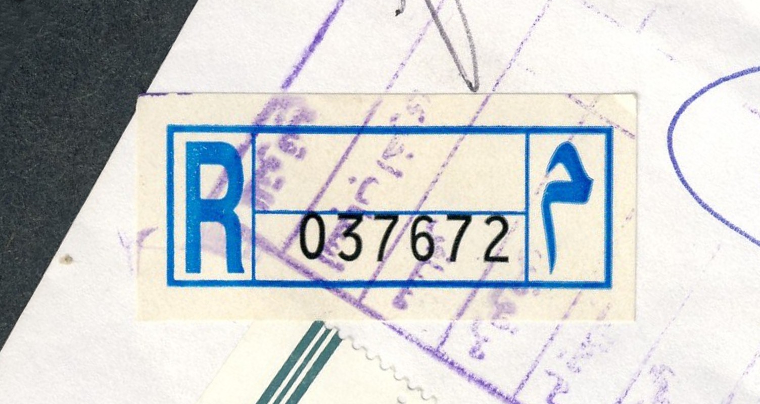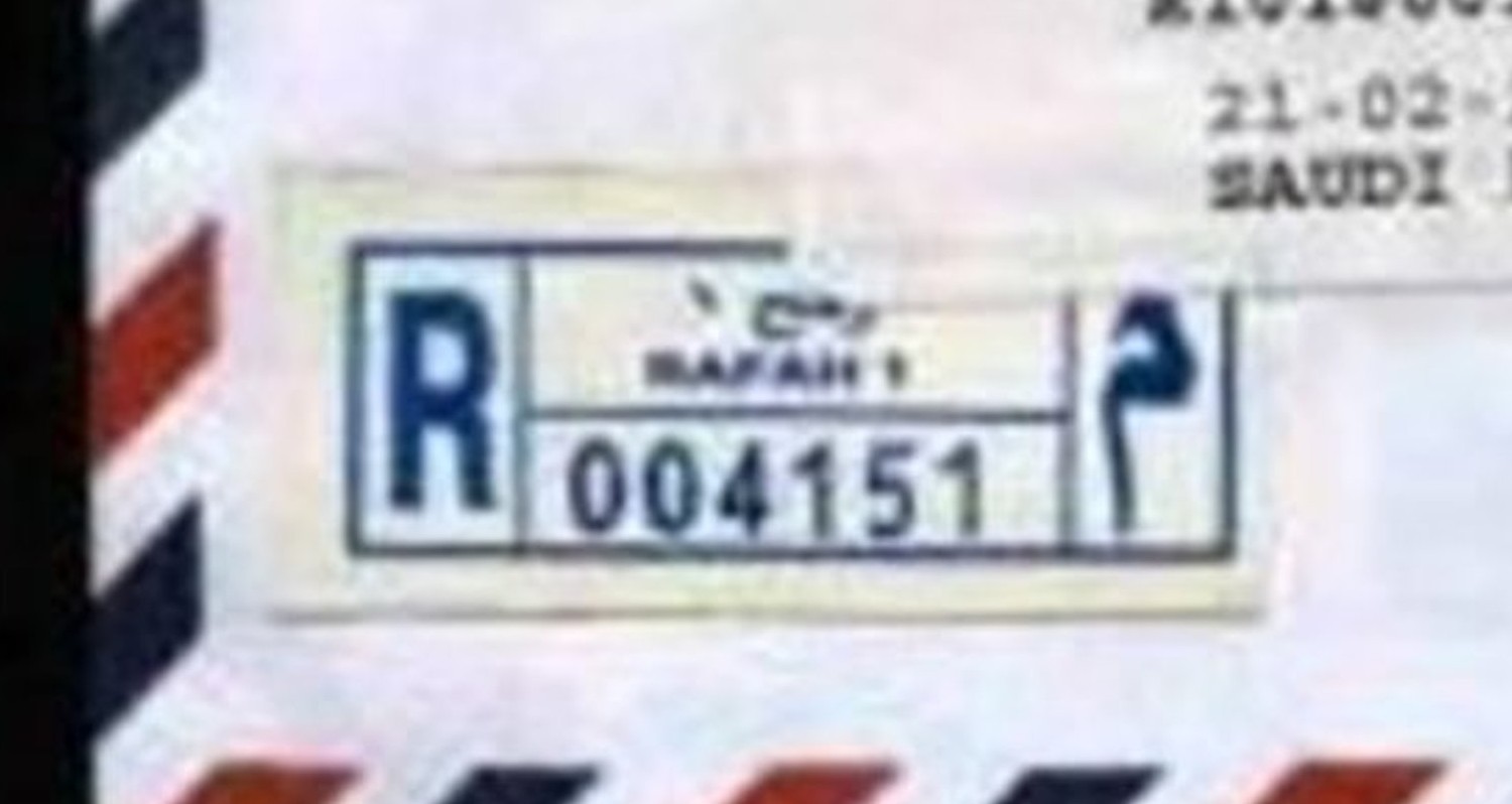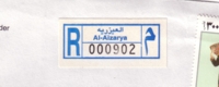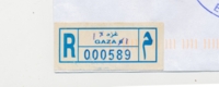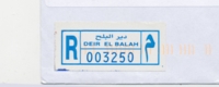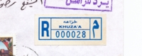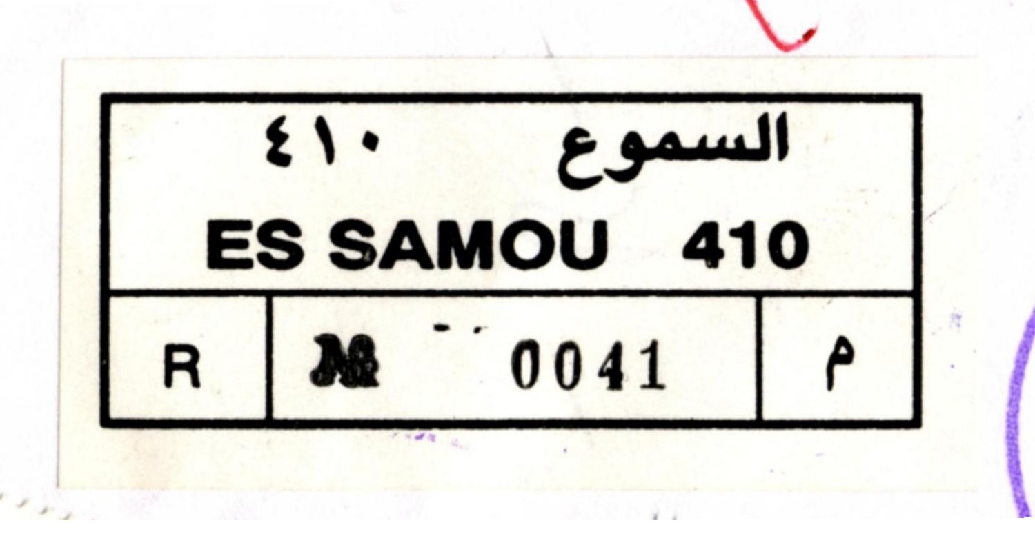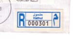 Special markings or labels for "Advice of Delivery" (avis de réception) service are naturally more rare than registration markings. An example for a handwritten marking "AR" (Gaza 8, August 2006) is shown on the right, together with the handstamp that should be available at most post offices. Below front and reverse side of form NB112 (ن ب ١١٢) and a cover from Halhul 2006.