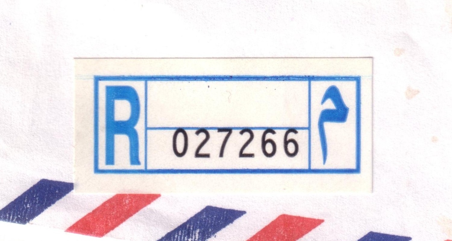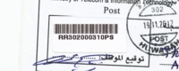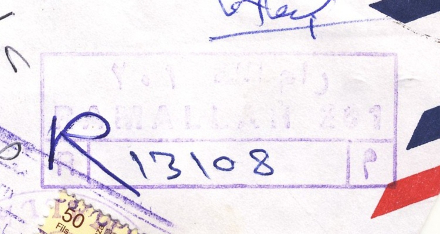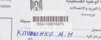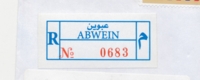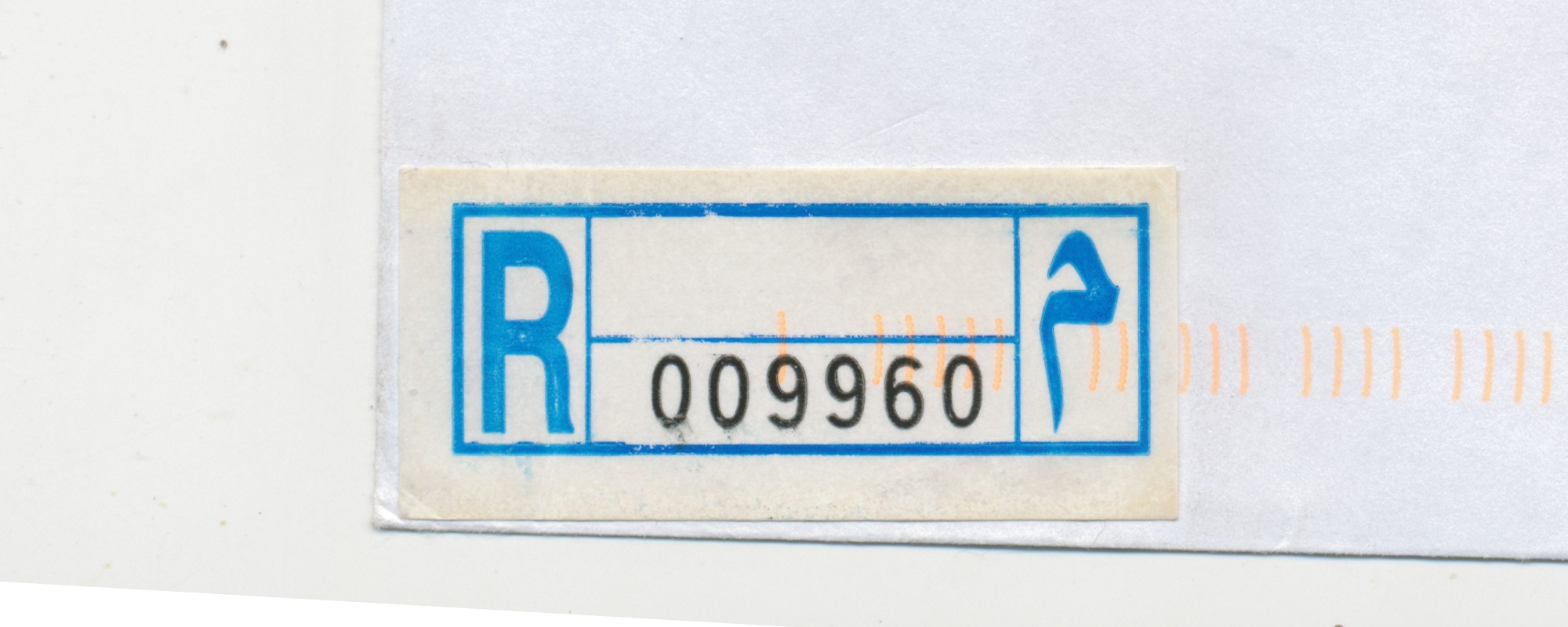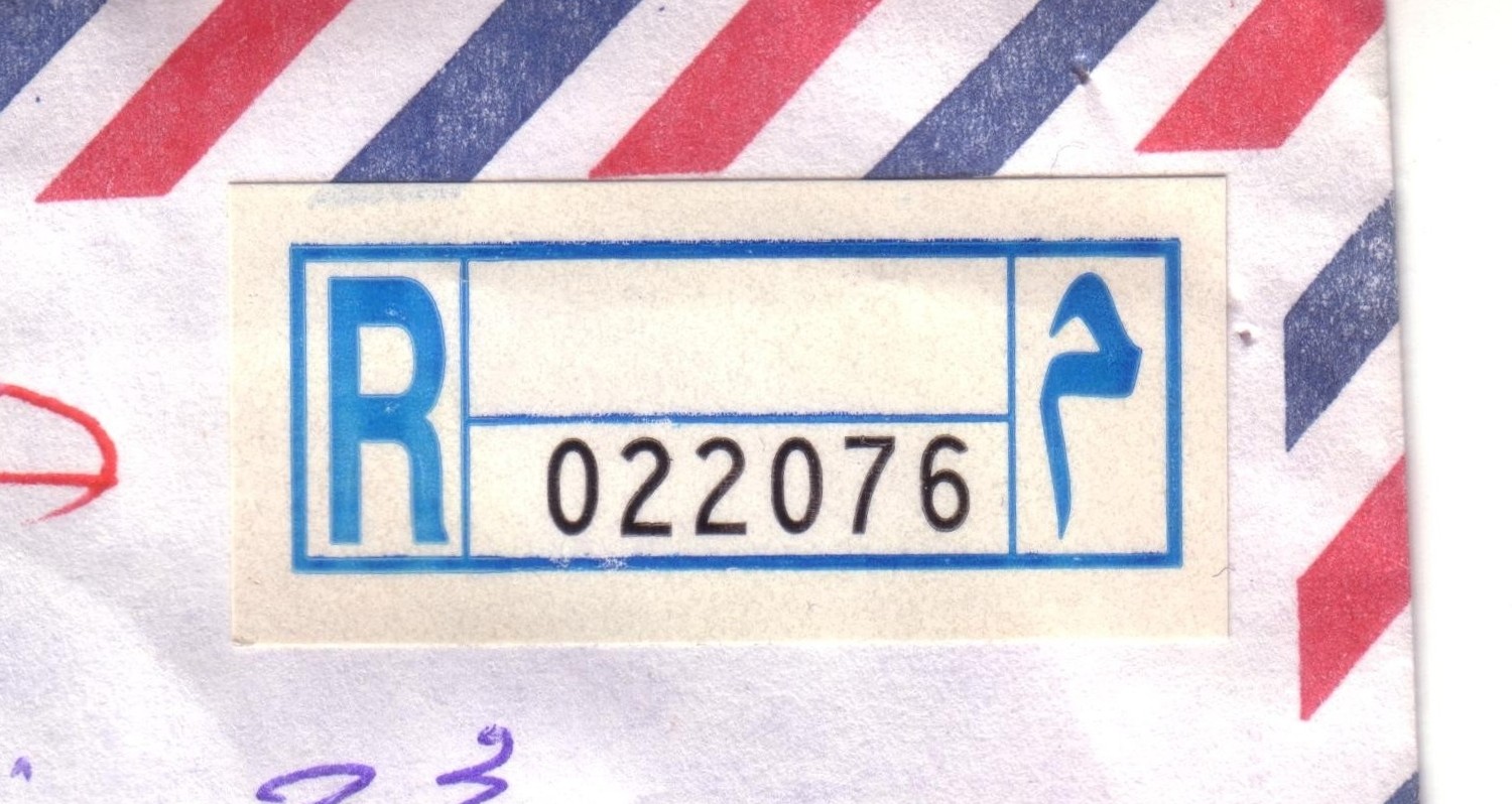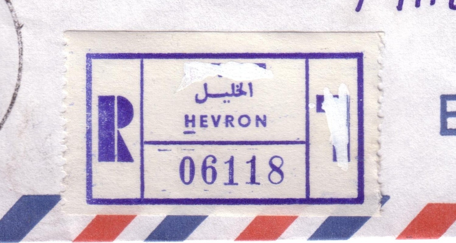 Special markings or labels for "Advice of Delivery" (avis de réception) service are naturally more rare than registration markings. An example for a handwritten marking "AR" (Gaza 8, August 2006) is shown on the right, together with the handstamp that should be available at most post offices. Below front and reverse side of form NB112 (ن ب ١١٢) and a cover from Halhul 2006.