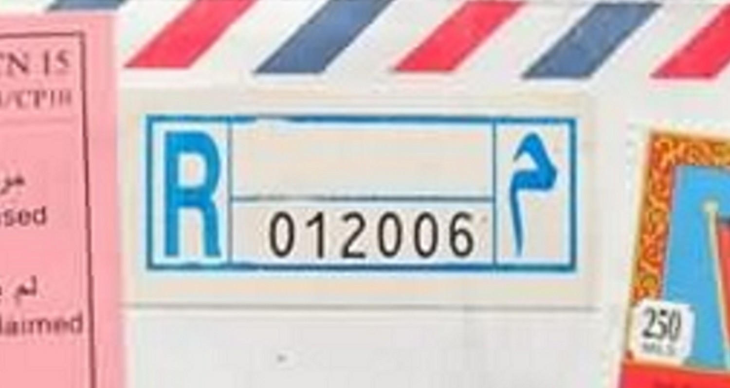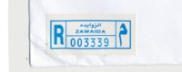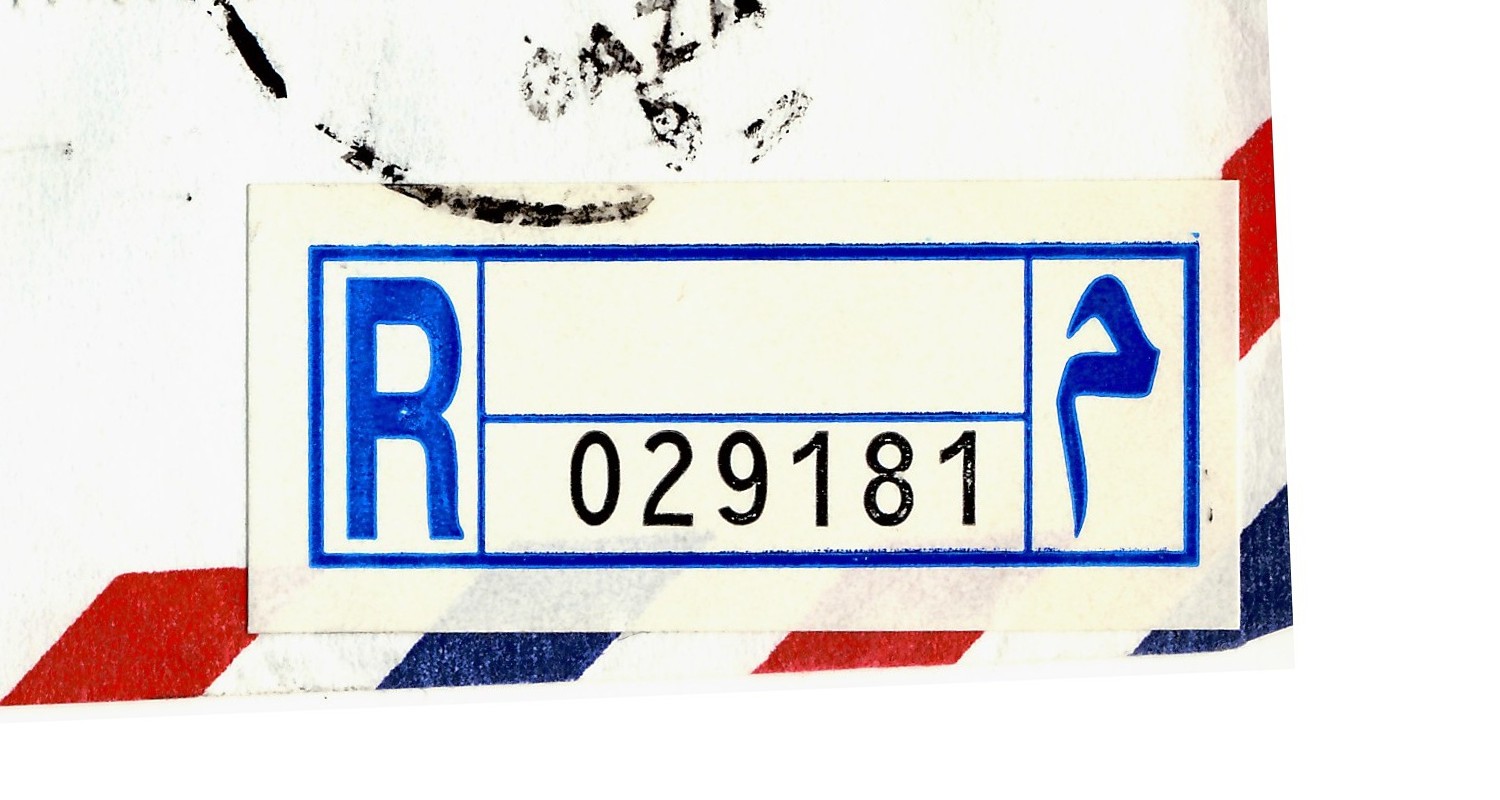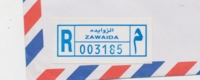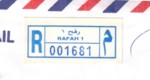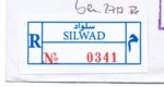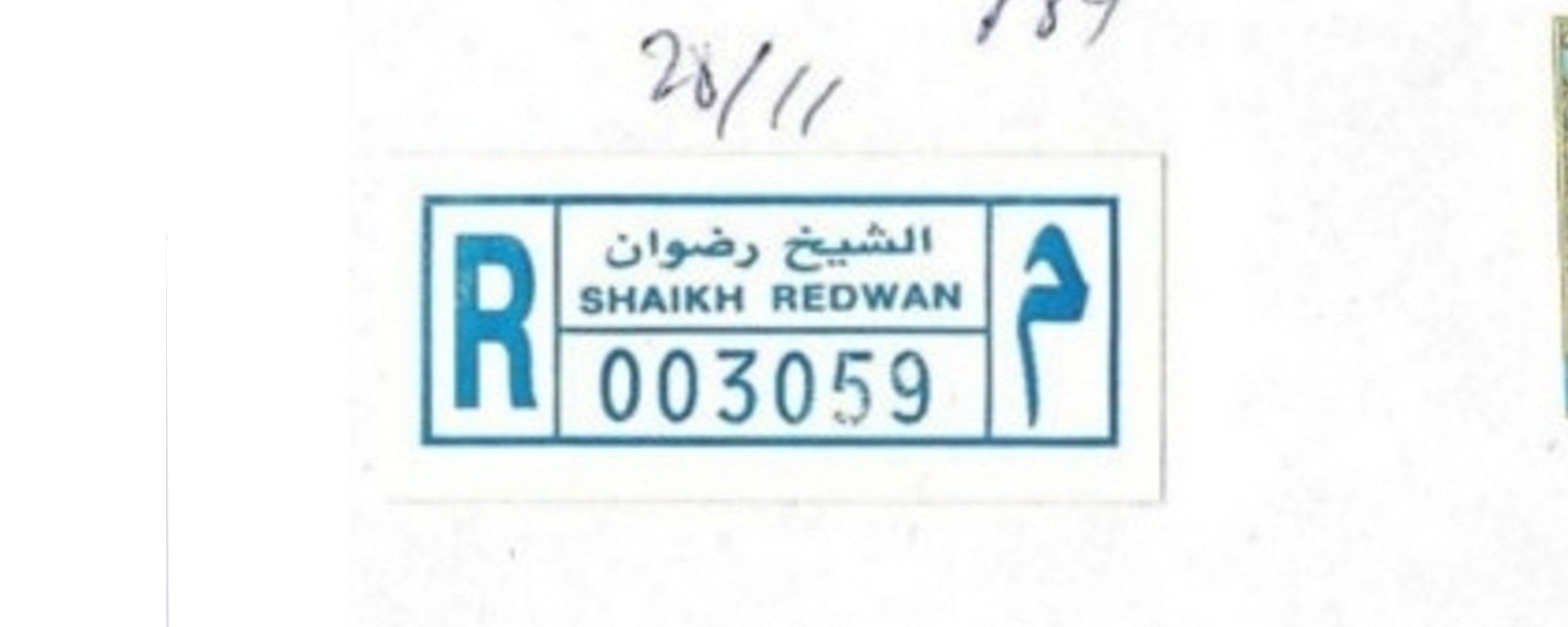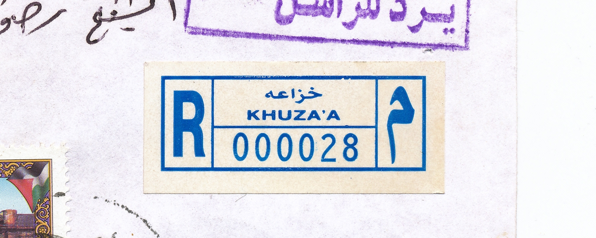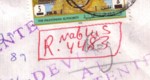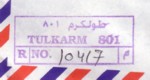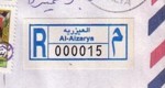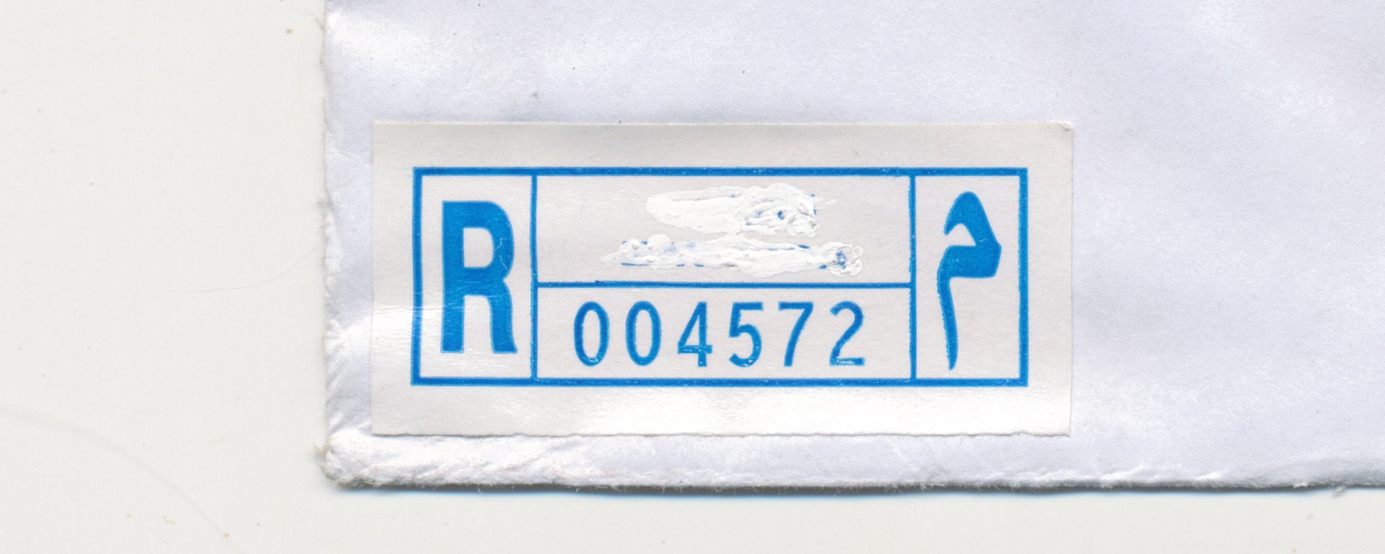 Special markings or labels for "Advice of Delivery" (avis de réception) service are naturally more rare than registration markings. An example for a handwritten marking "AR" (Gaza 8, August 2006) is shown on the right, together with the handstamp that should be available at most post offices. Below front and reverse side of form NB112 (ن ب ١١٢) and a cover from Halhul 2006.