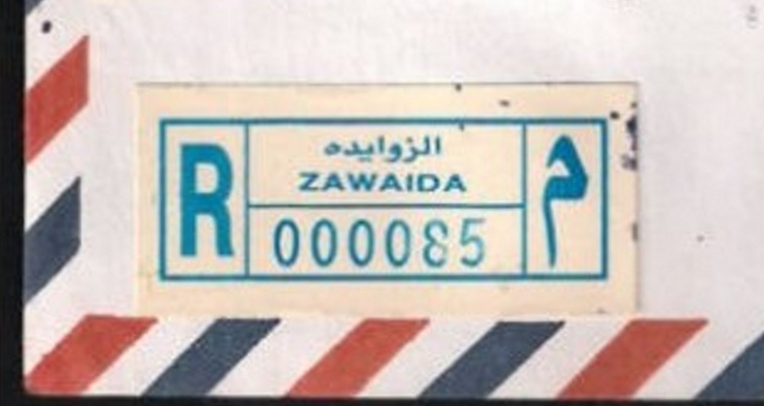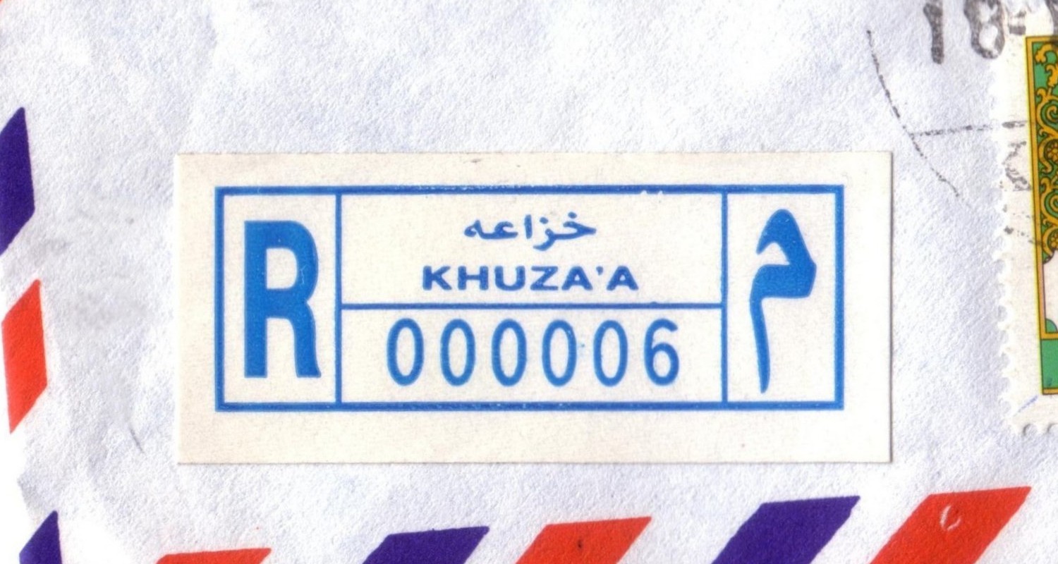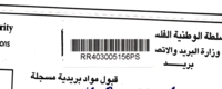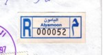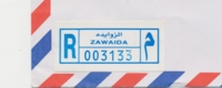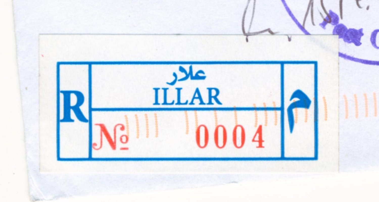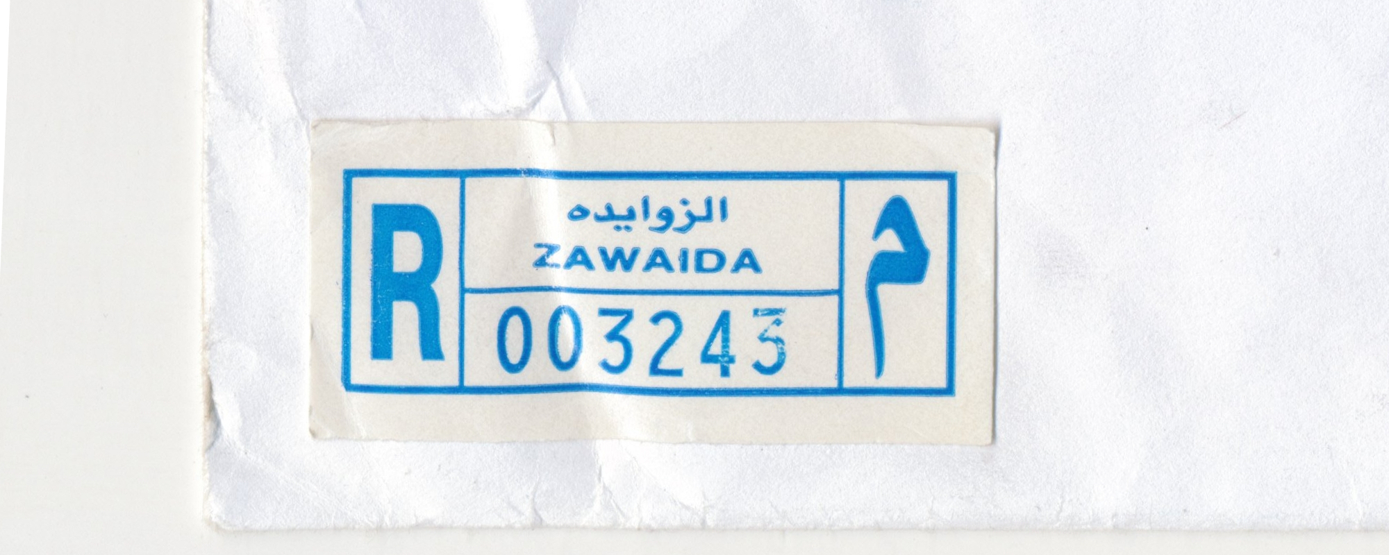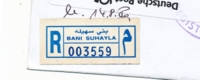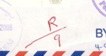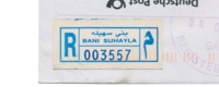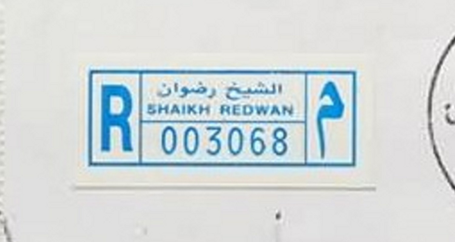 Special markings or labels for "Advice of Delivery" (avis de réception) service are naturally more rare than registration markings. An example for a handwritten marking "AR" (Gaza 8, August 2006) is shown on the right, together with the handstamp that should be available at most post offices. Below front and reverse side of form NB112 (ن ب ١١٢) and a cover from Halhul 2006.