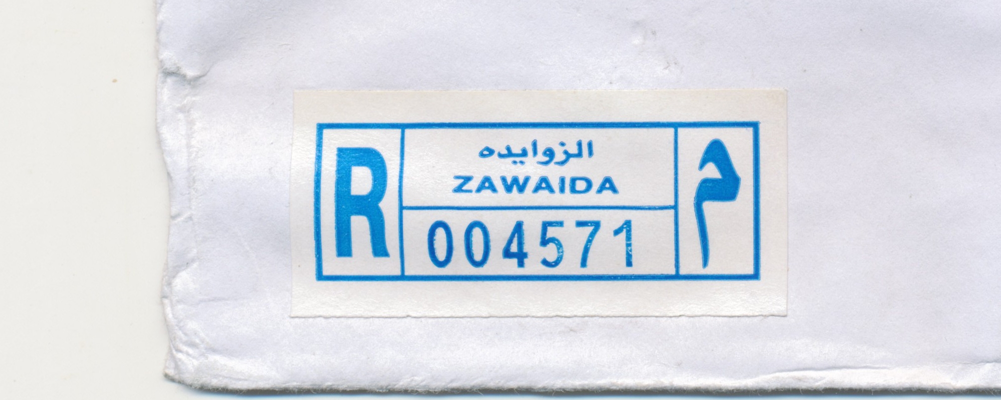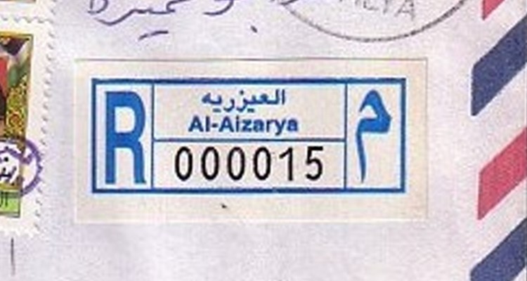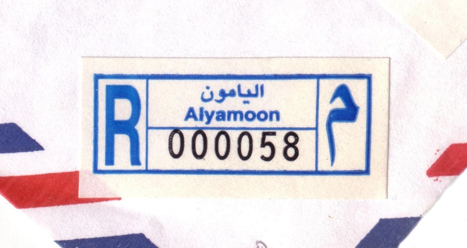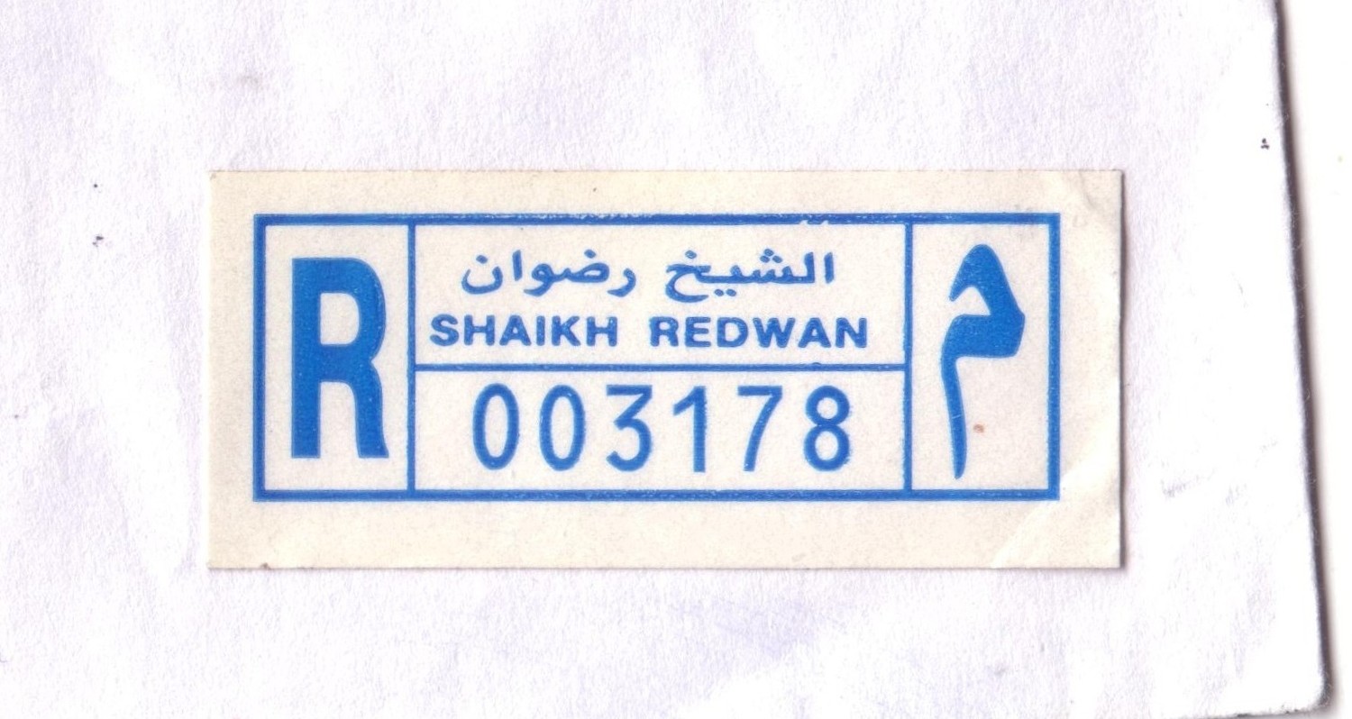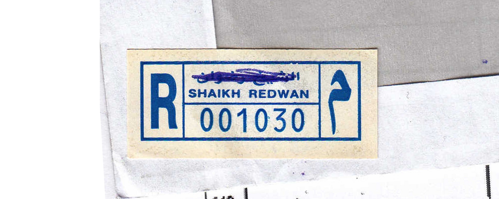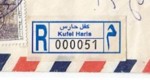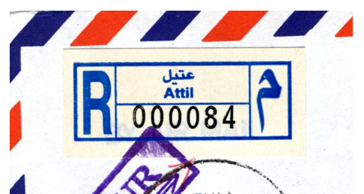 Special markings or labels for "Advice of Delivery" (avis de réception) service are naturally more rare than registration markings. An example for a handwritten marking "AR" (Gaza 8, August 2006) is shown on the right, together with the handstamp that should be available at most post offices. Below front and reverse side of form NB112 (ن ب ١١٢) and a cover from Halhul 2006.