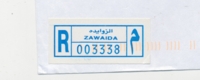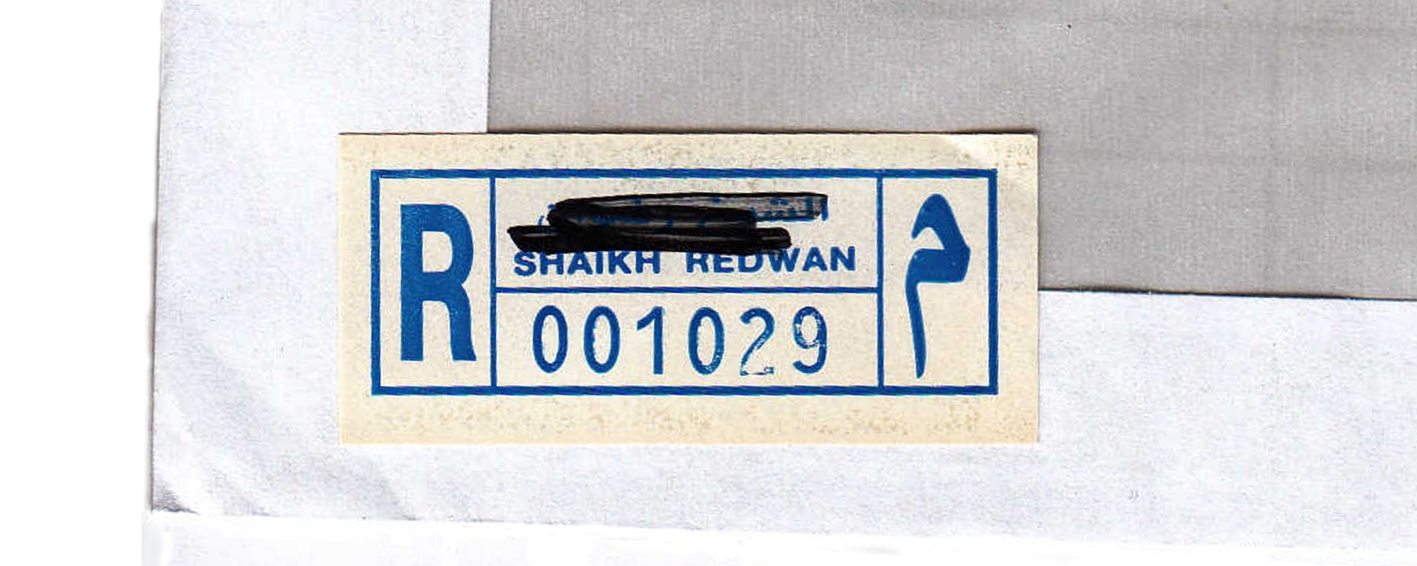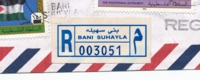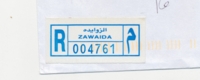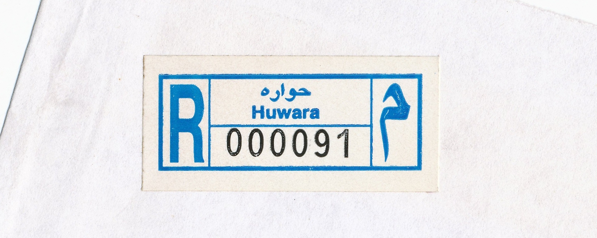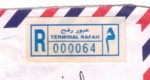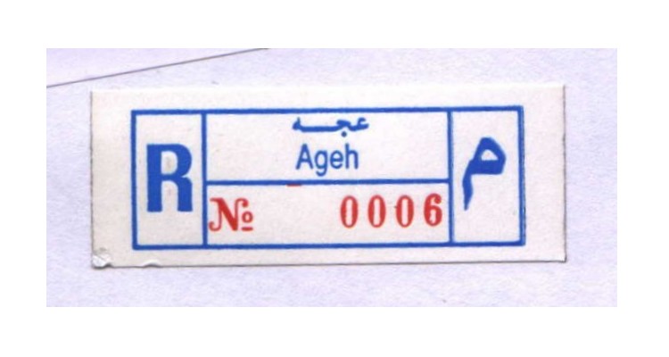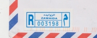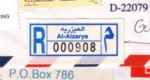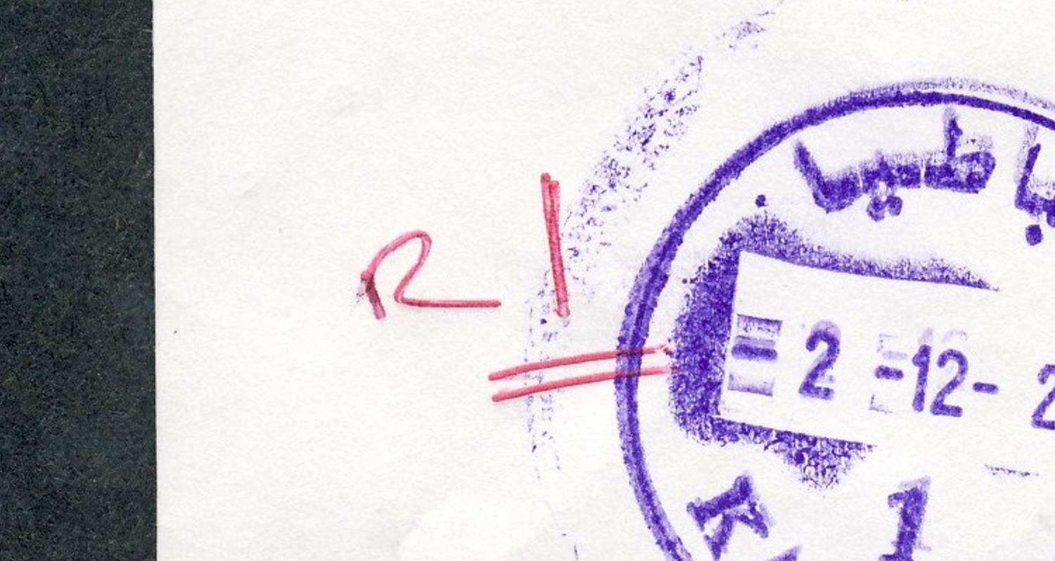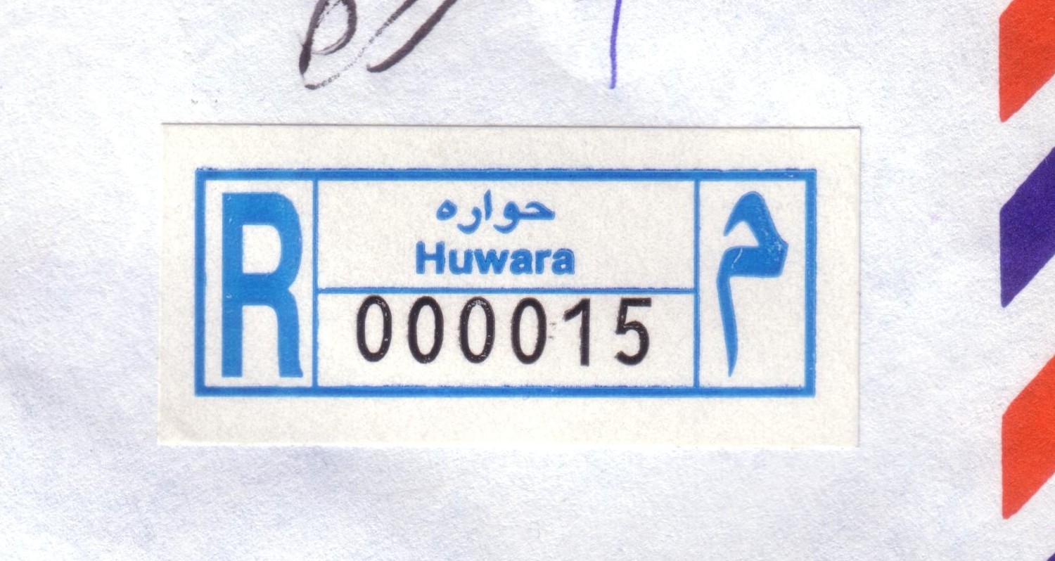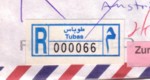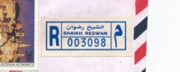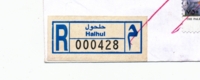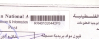 Special markings or labels for "Advice of Delivery" (avis de réception) service are naturally more rare than registration markings. An example for a handwritten marking "AR" (Gaza 8, August 2006) is shown on the right, together with the handstamp that should be available at most post offices. Below front and reverse side of form NB112 (ن ب ١١٢) and a cover from Halhul 2006.