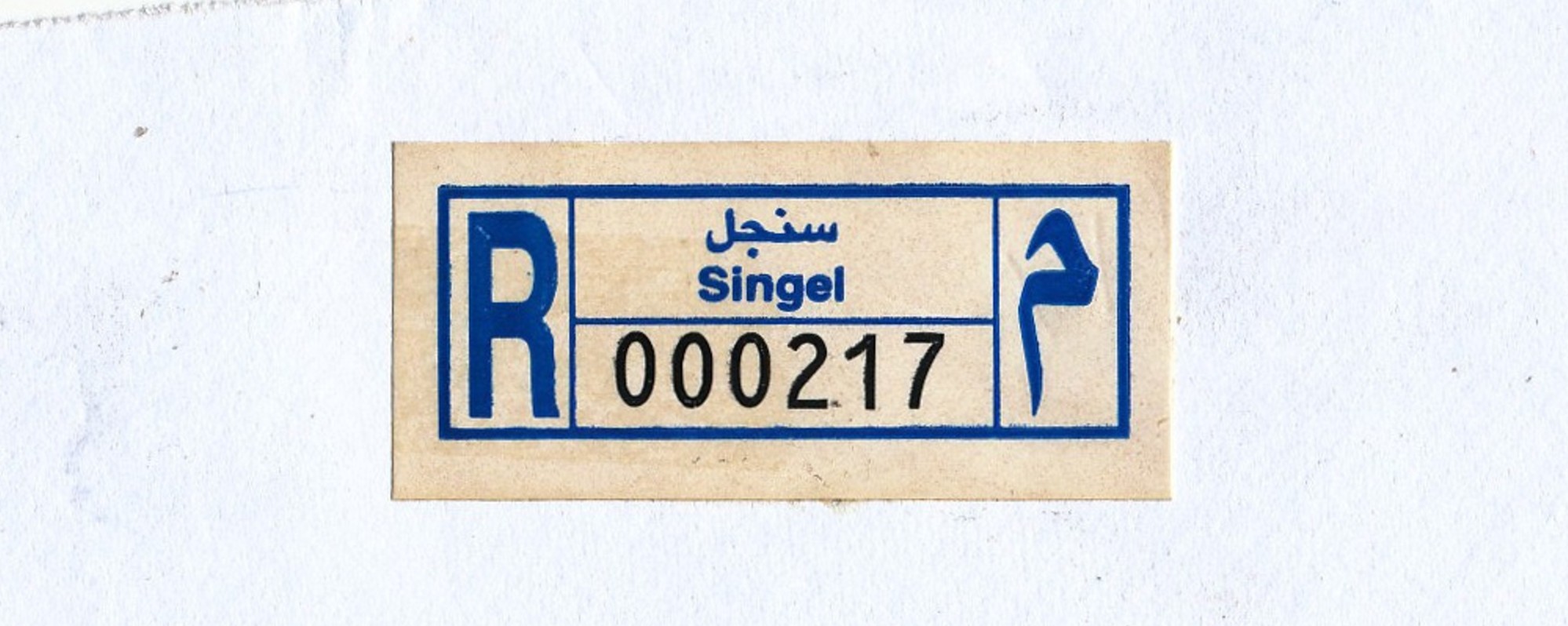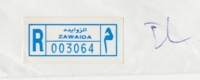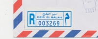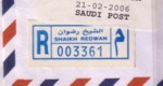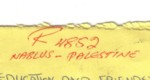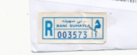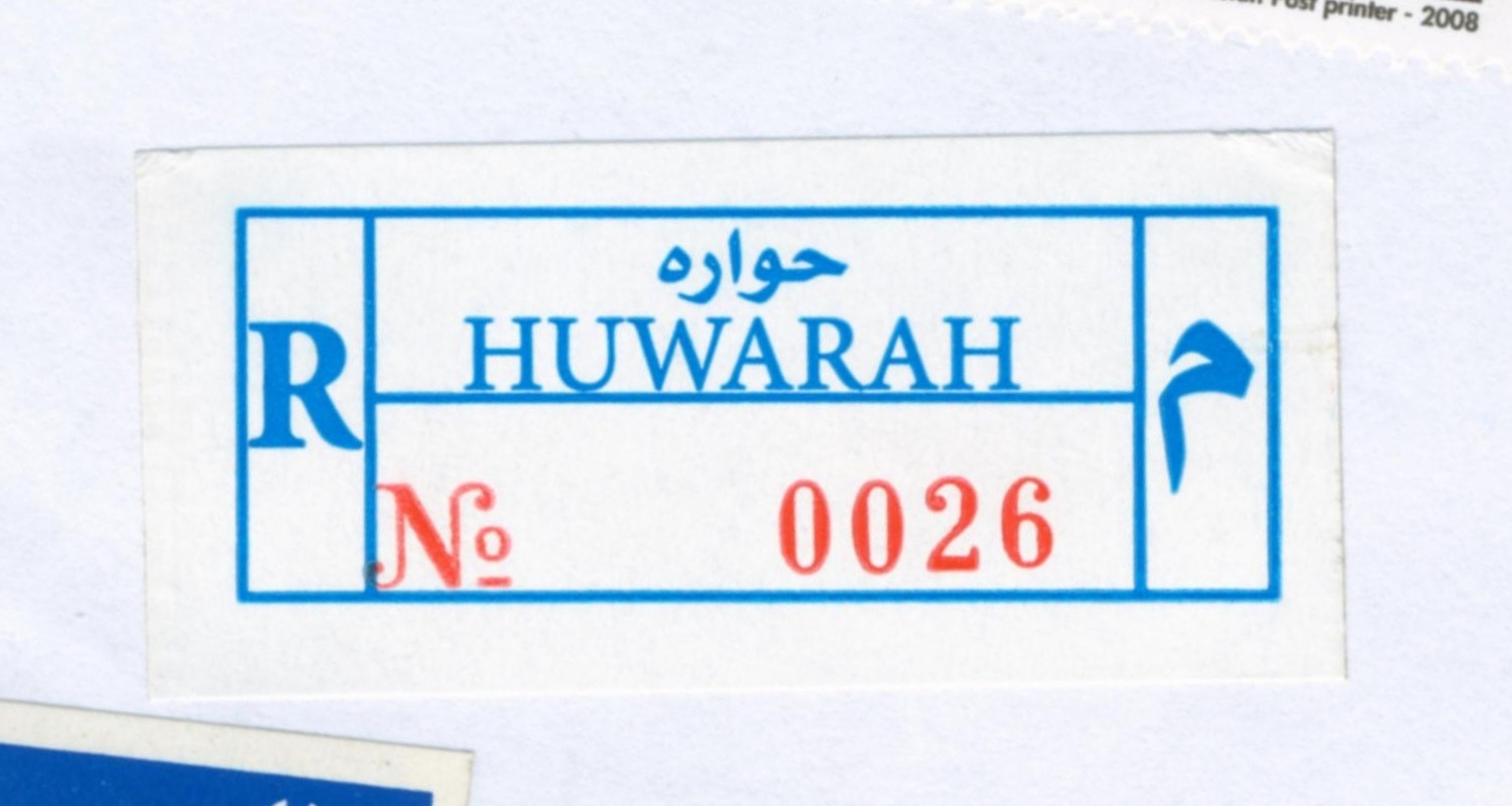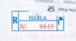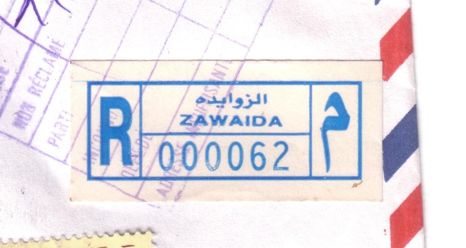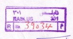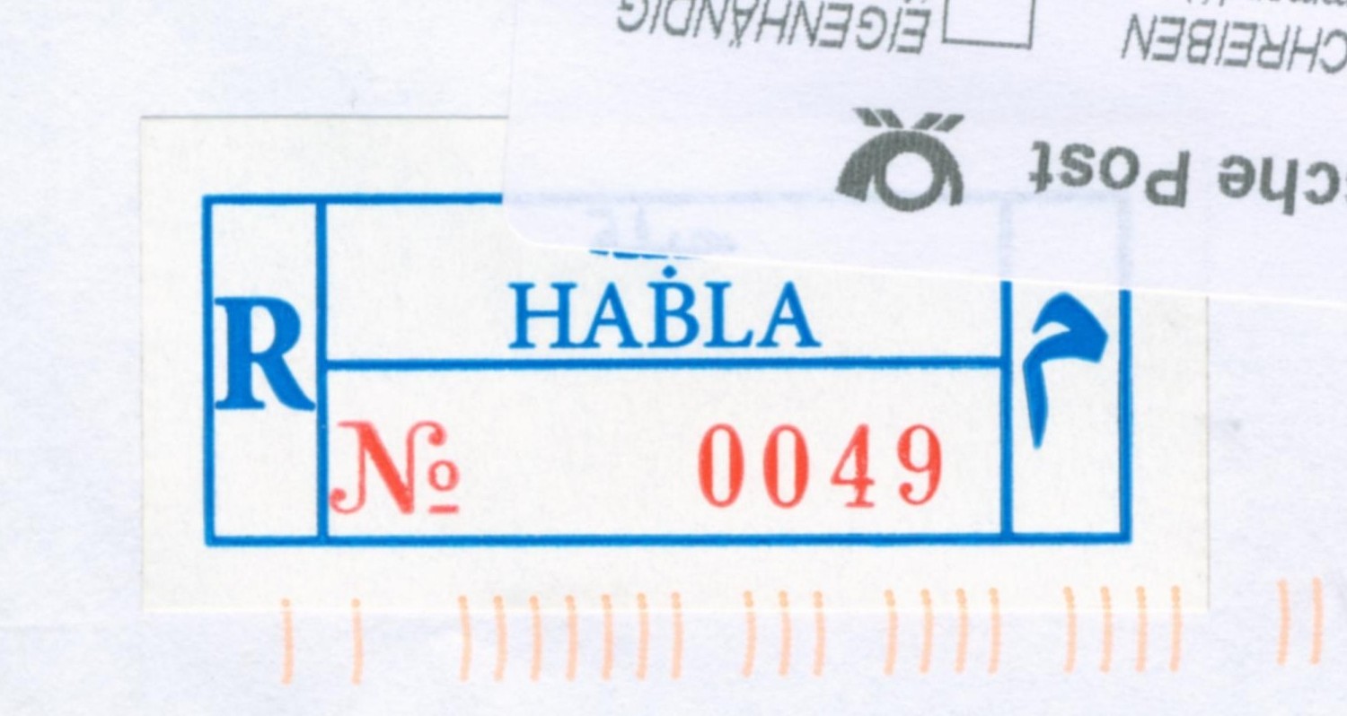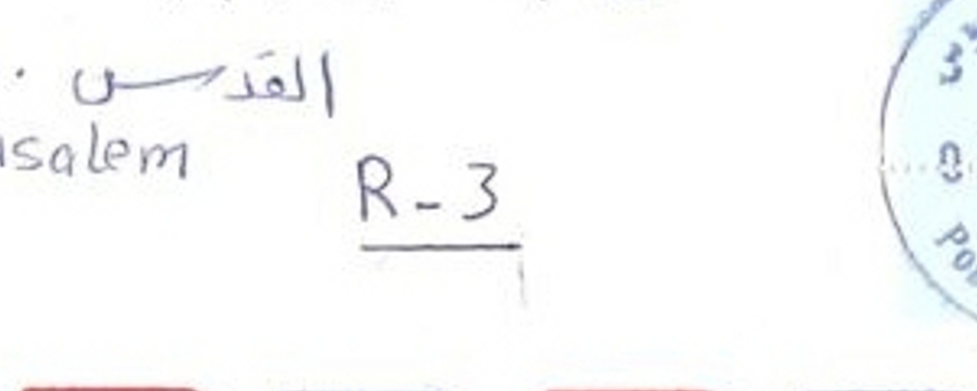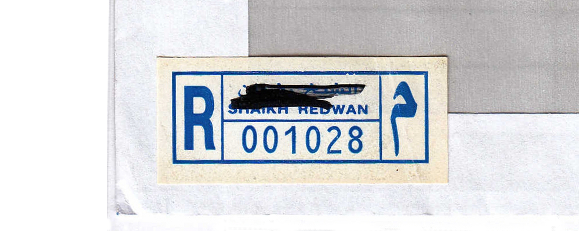 Special markings or labels for "Advice of Delivery" (avis de réception) service are naturally more rare than registration markings. An example for a handwritten marking "AR" (Gaza 8, August 2006) is shown on the right, together with the handstamp that should be available at most post offices. Below front and reverse side of form NB112 (ن ب ١١٢) and a cover from Halhul 2006.