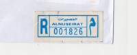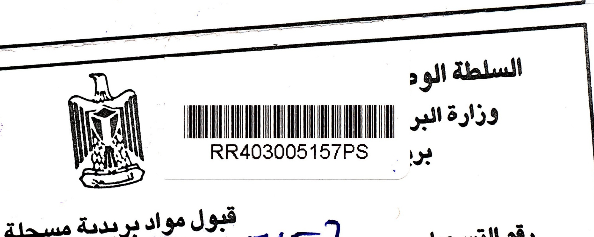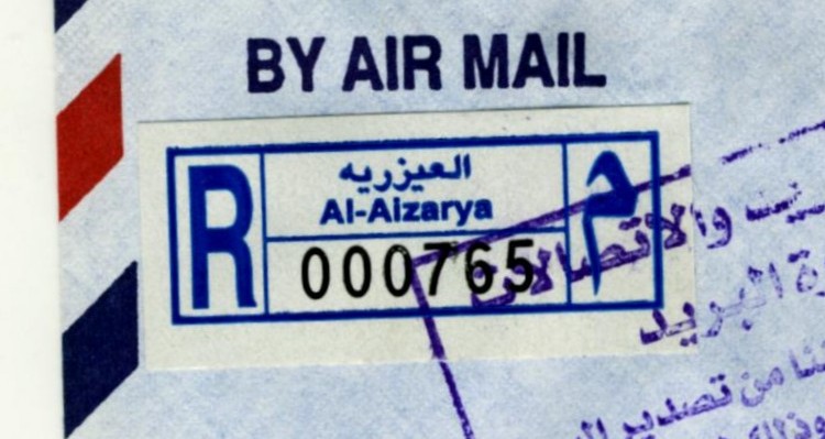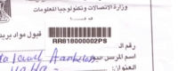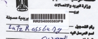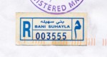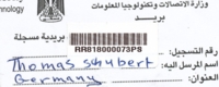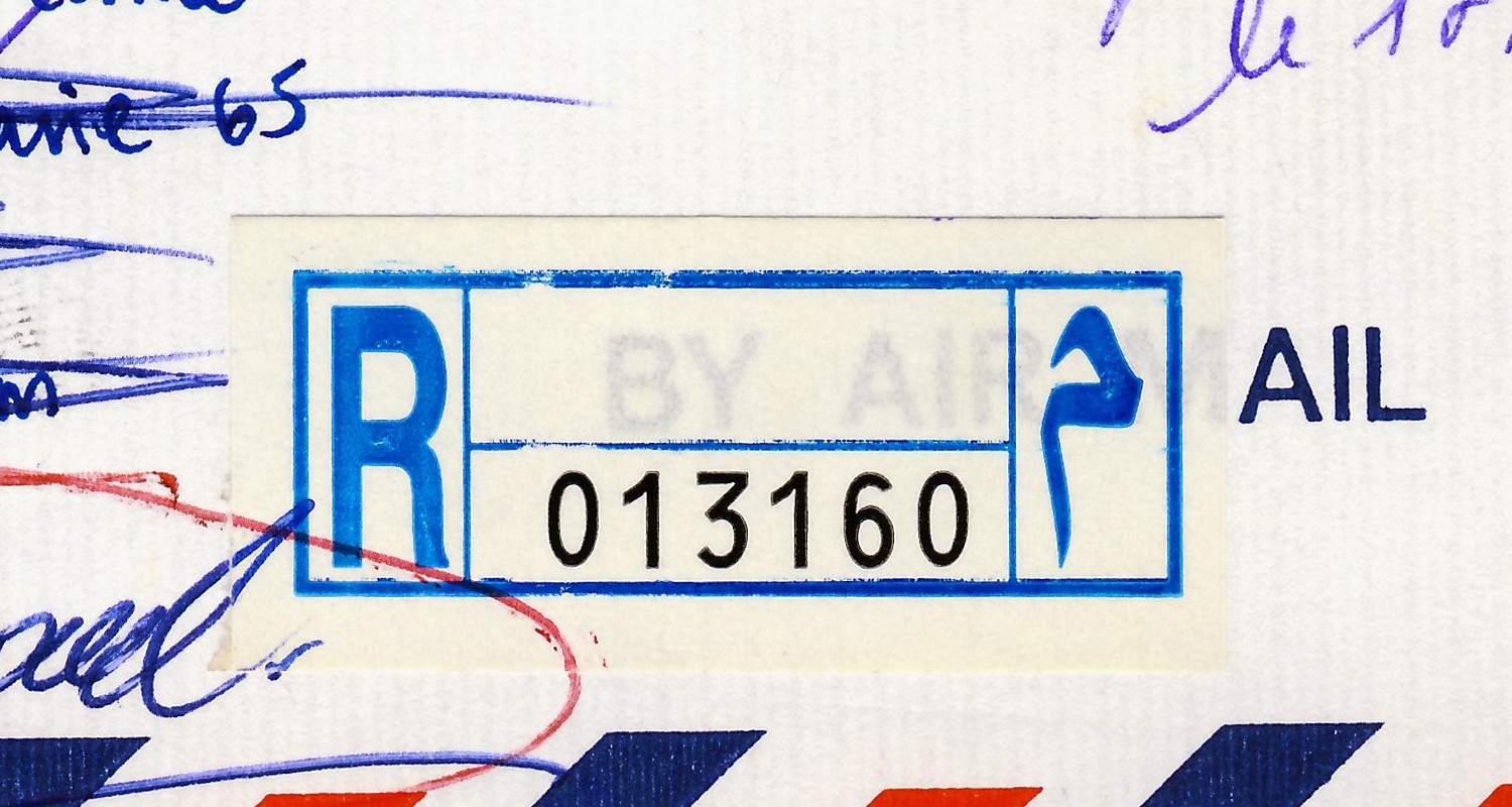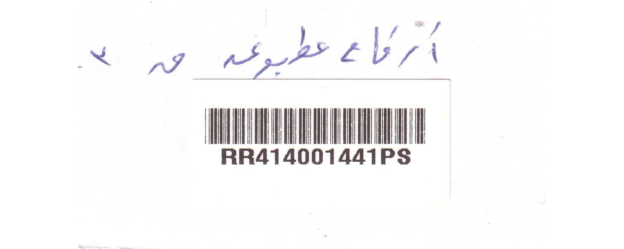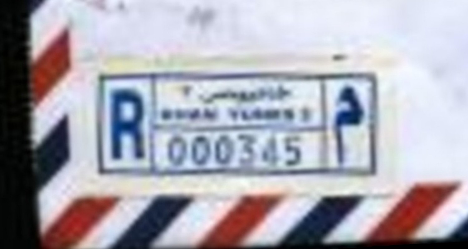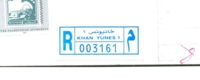 Special markings or labels for "Advice of Delivery" (avis de réception) service are naturally more rare than registration markings. An example for a handwritten marking "AR" (Gaza 8, August 2006) is shown on the right, together with the handstamp that should be available at most post offices. Below front and reverse side of form NB112 (ن ب ١١٢) and a cover from Halhul 2006.