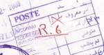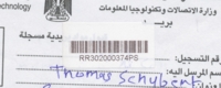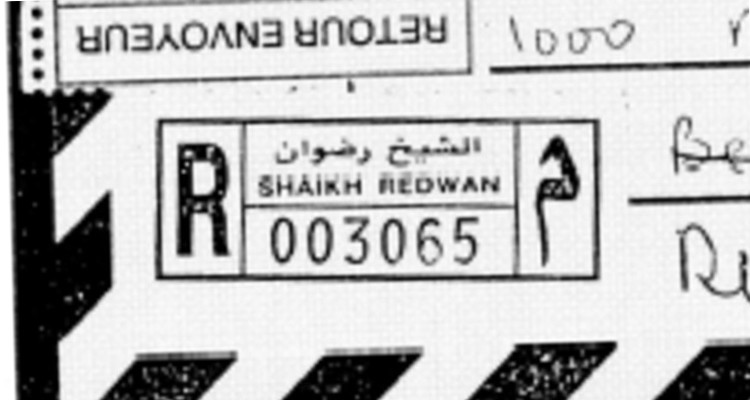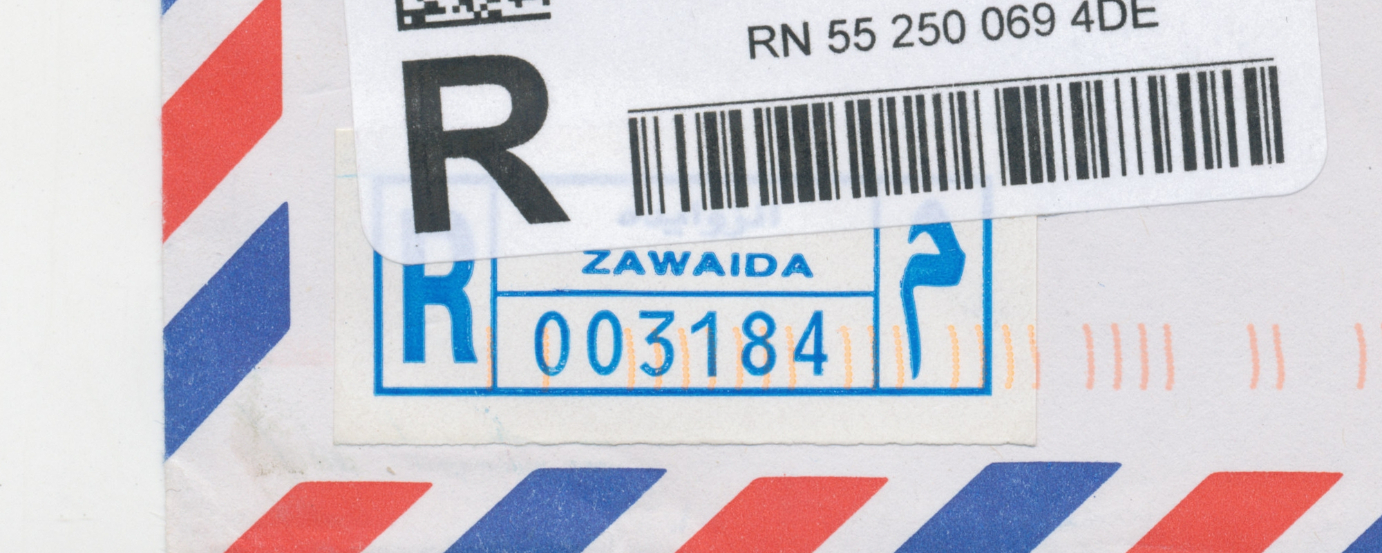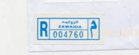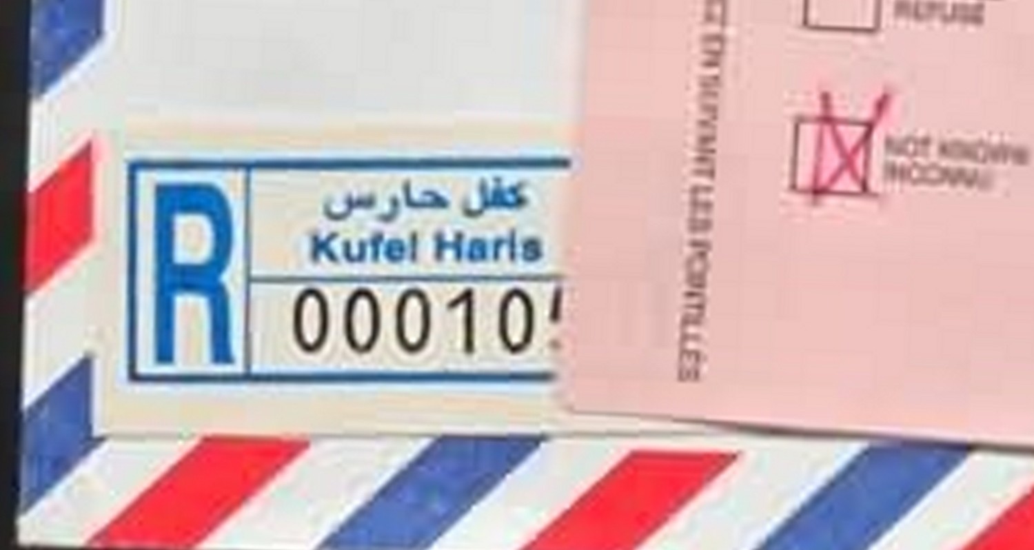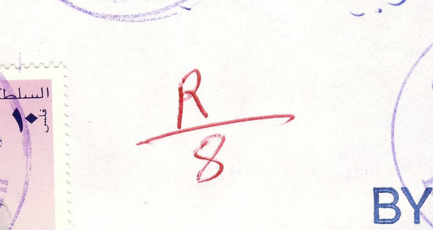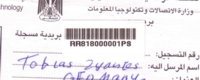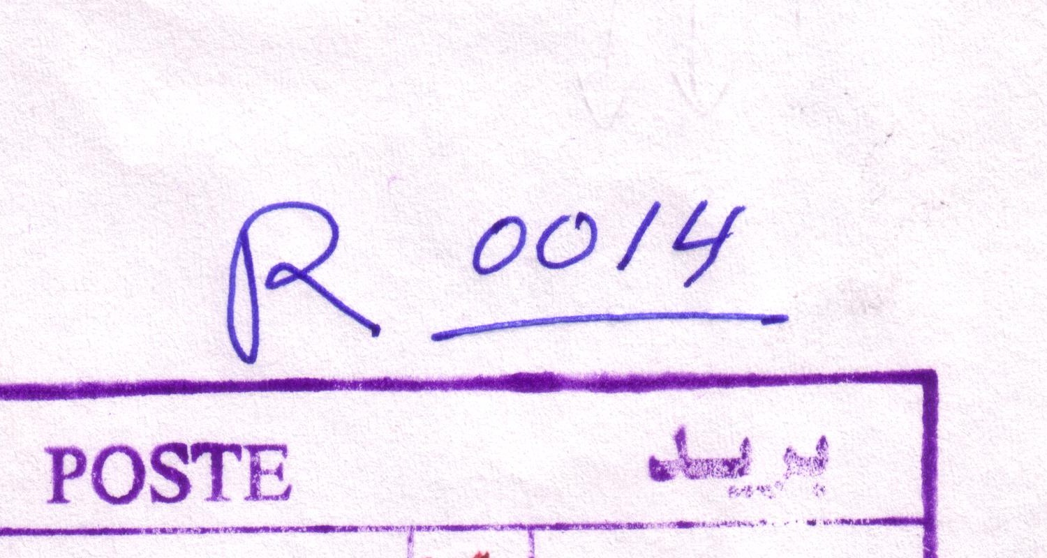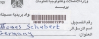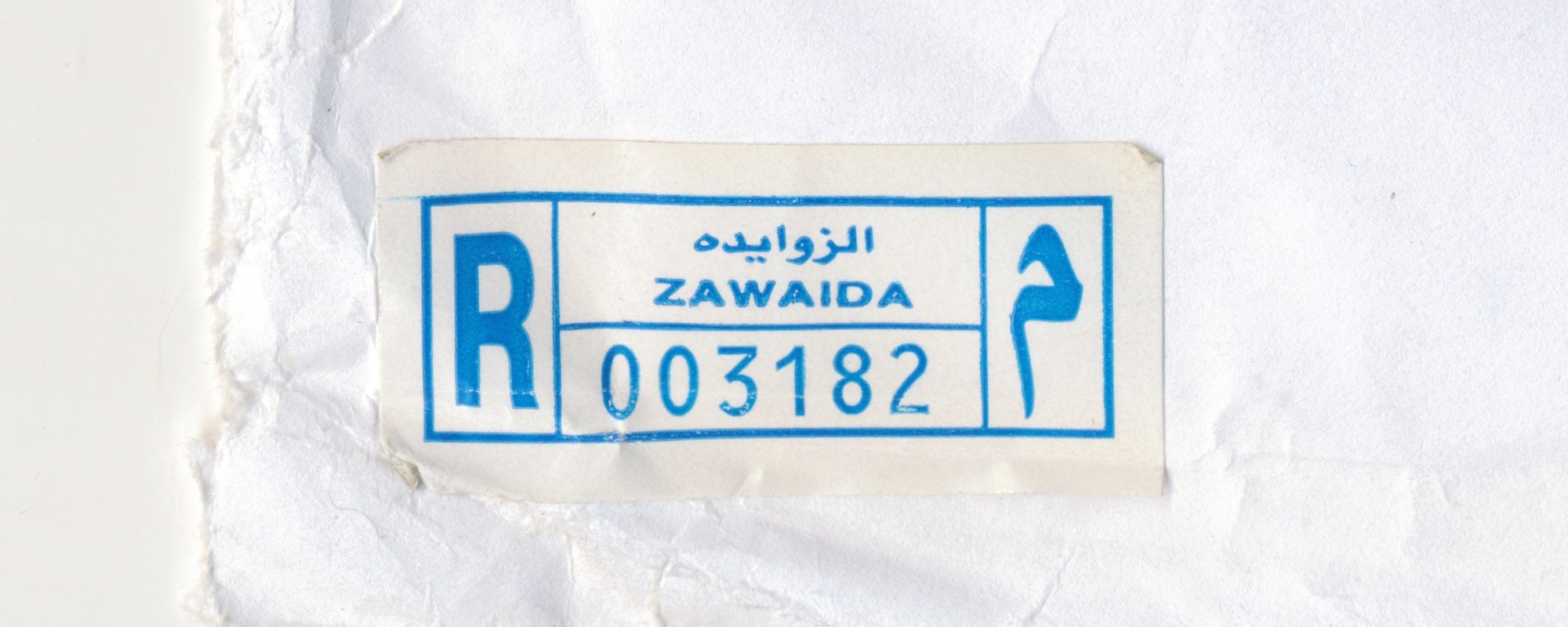 Special markings or labels for "Advice of Delivery" (avis de réception) service are naturally more rare than registration markings. An example for a handwritten marking "AR" (Gaza 8, August 2006) is shown on the right, together with the handstamp that should be available at most post offices. Below front and reverse side of form NB112 (ن ب ١١٢) and a cover from Halhul 2006.