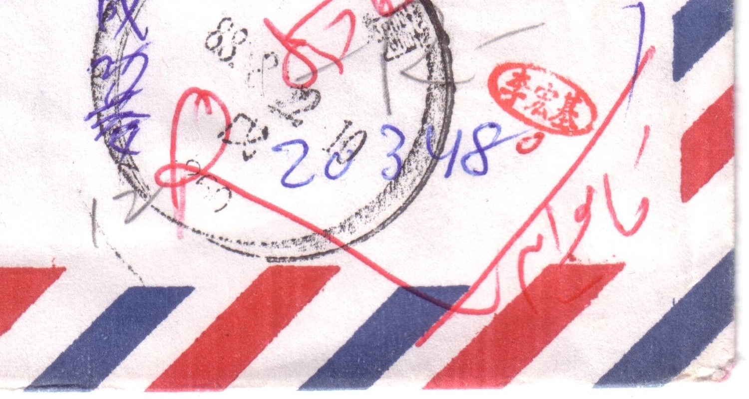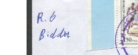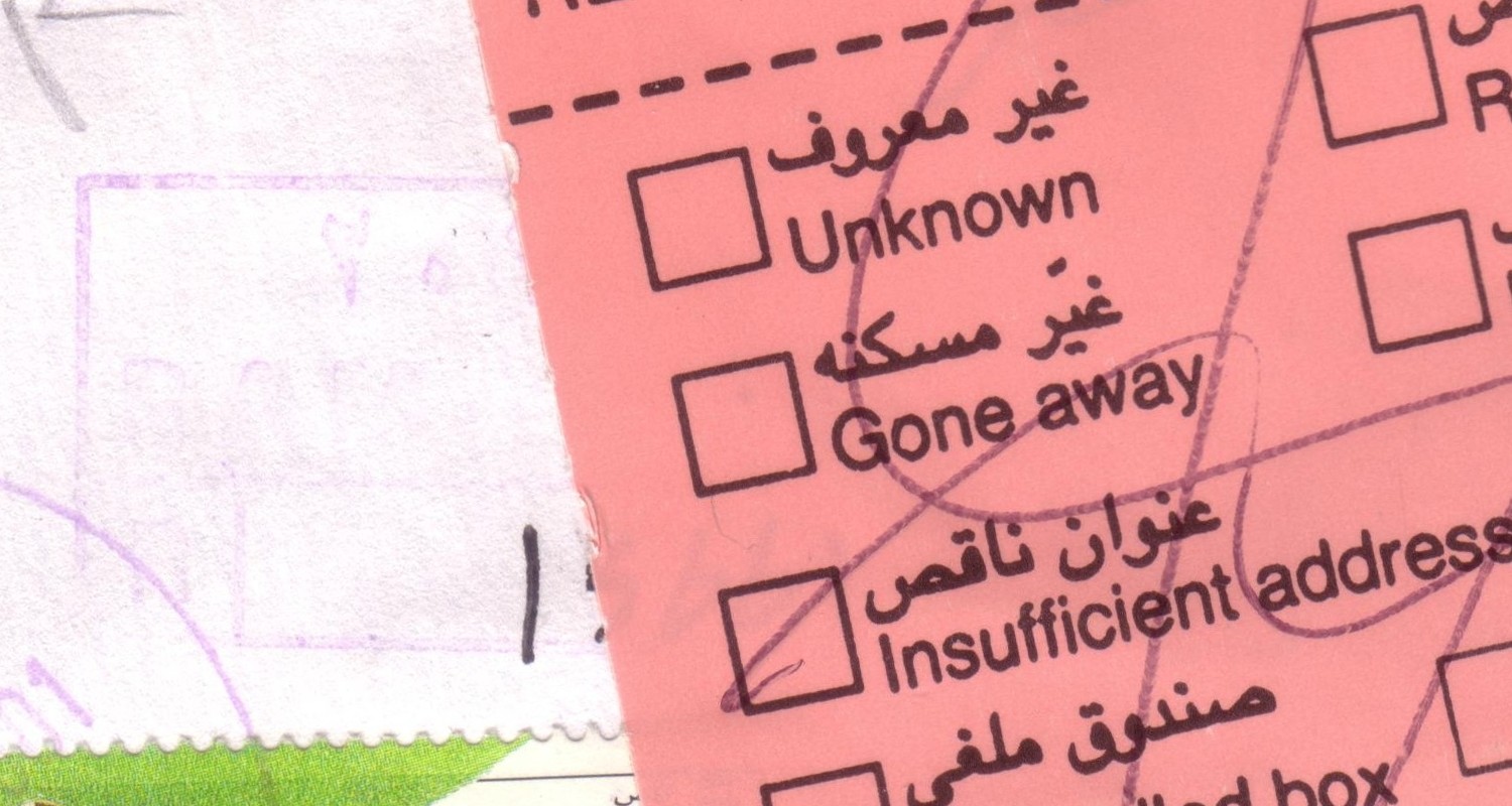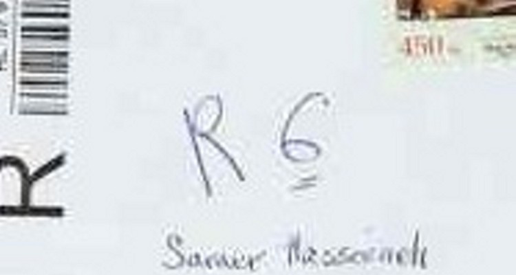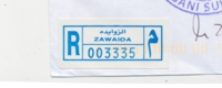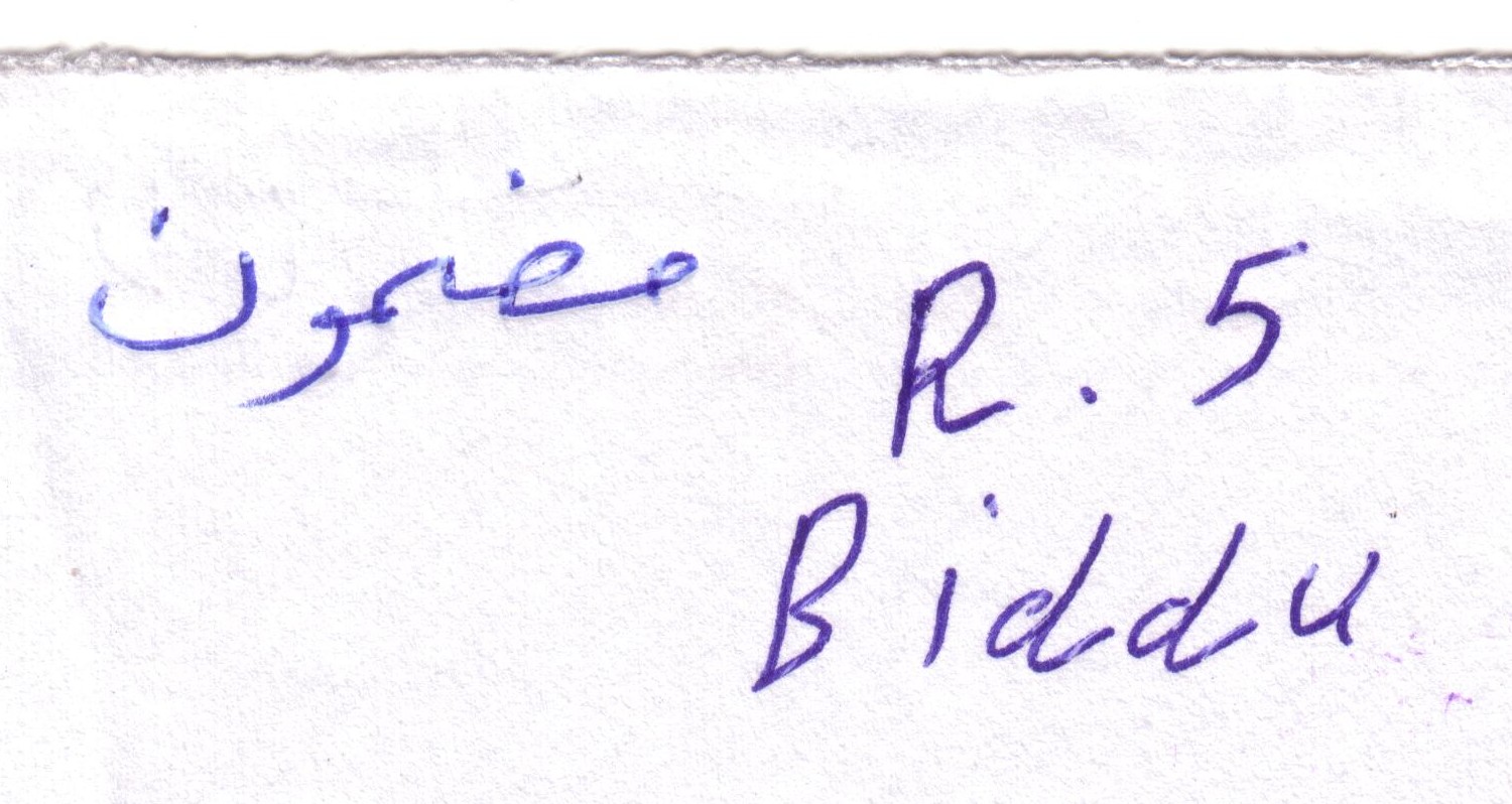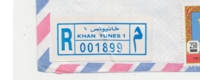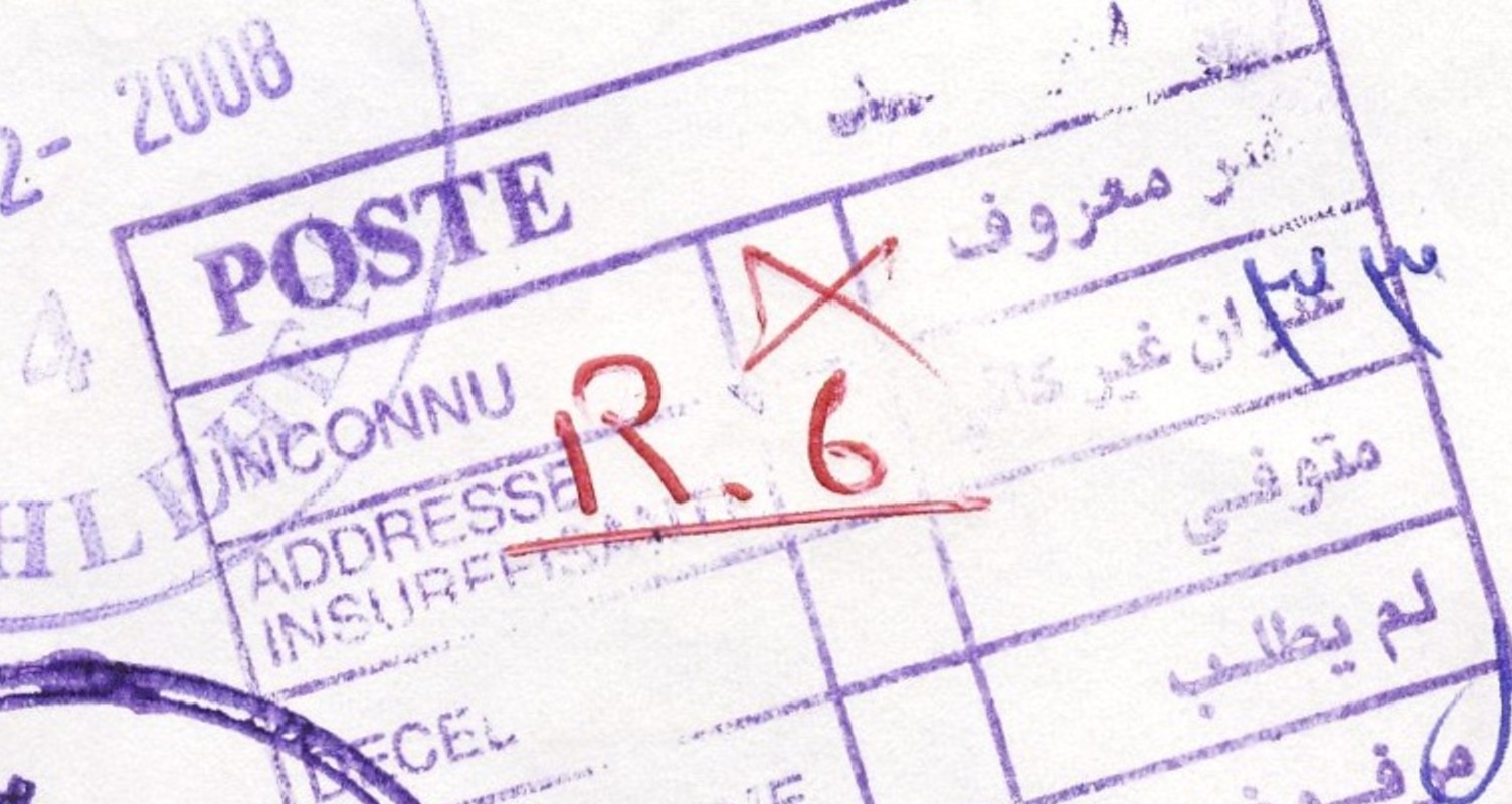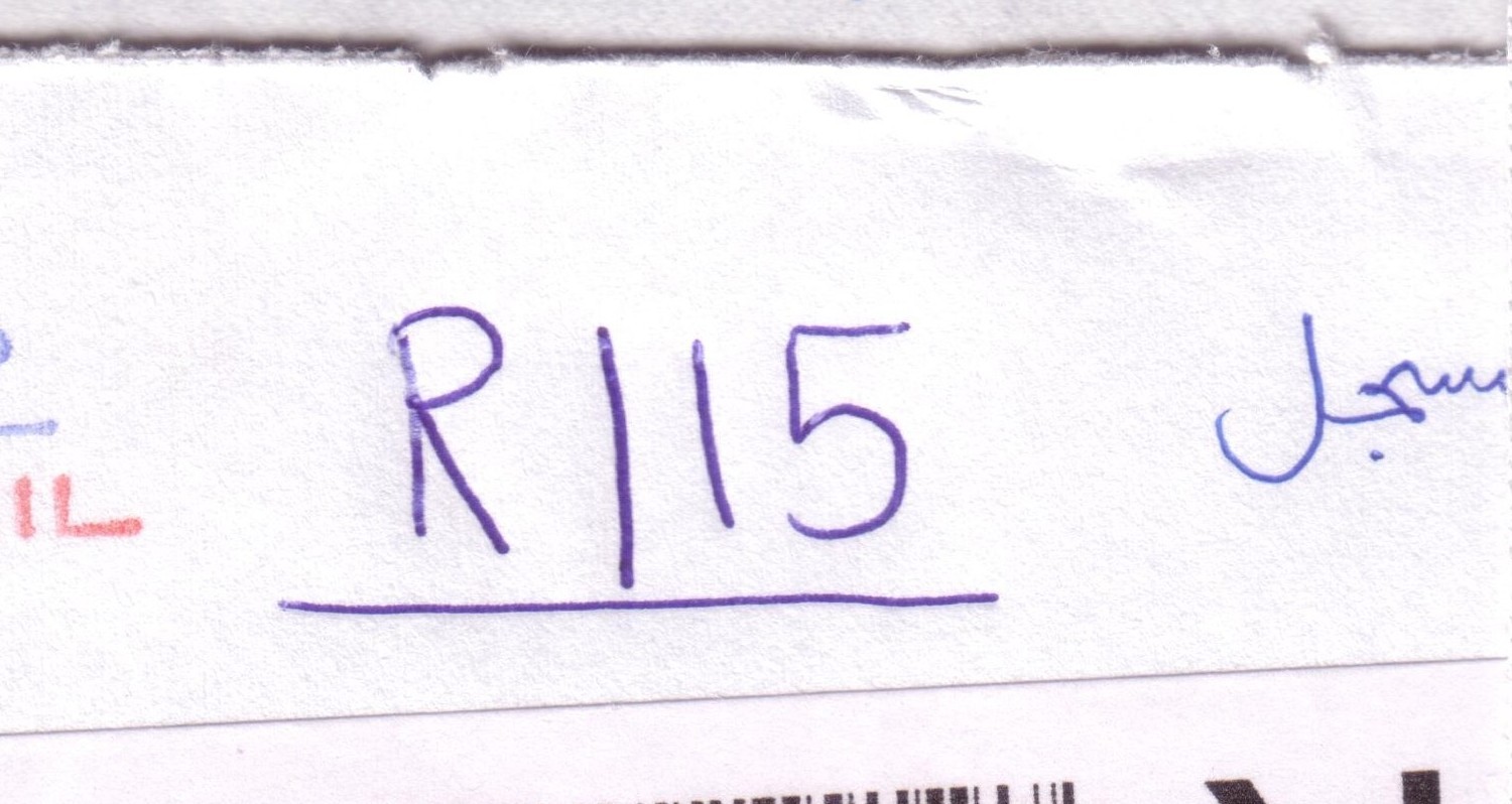 Special markings or labels for "Advice of Delivery" (avis de réception) service are naturally more rare than registration markings. An example for a handwritten marking "AR" (Gaza 8, August 2006) is shown on the right, together with the handstamp that should be available at most post offices. Below front and reverse side of form NB112 (ن ب ١١٢) and a cover from Halhul 2006.