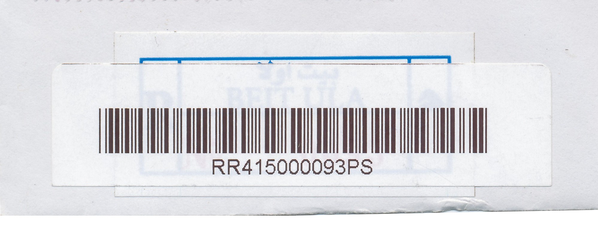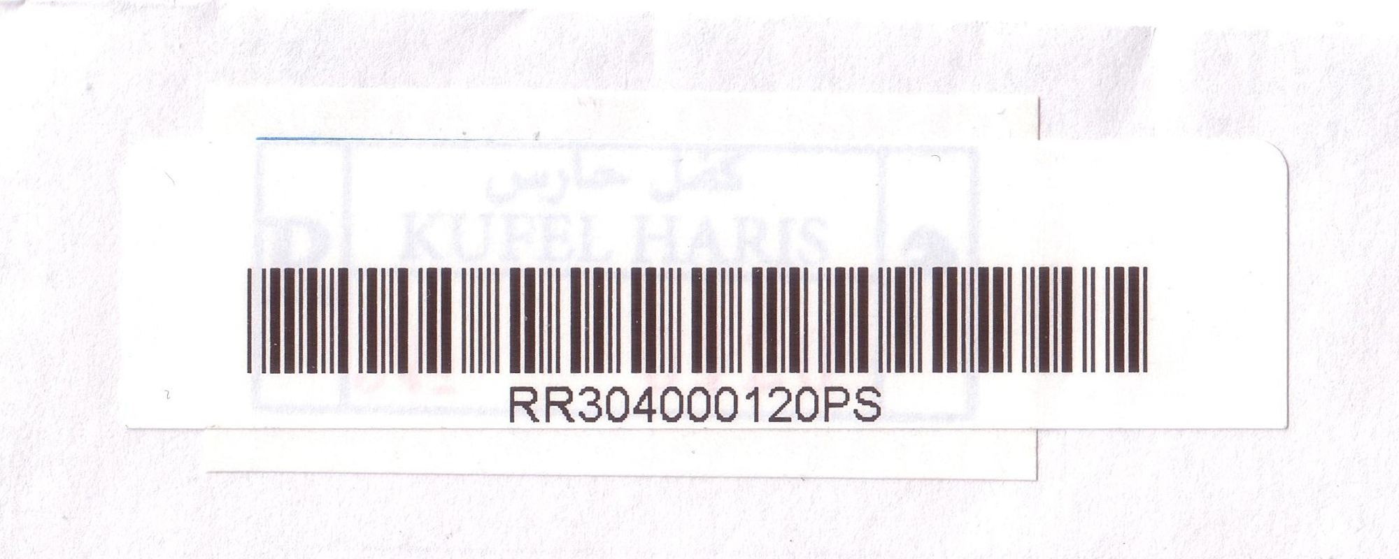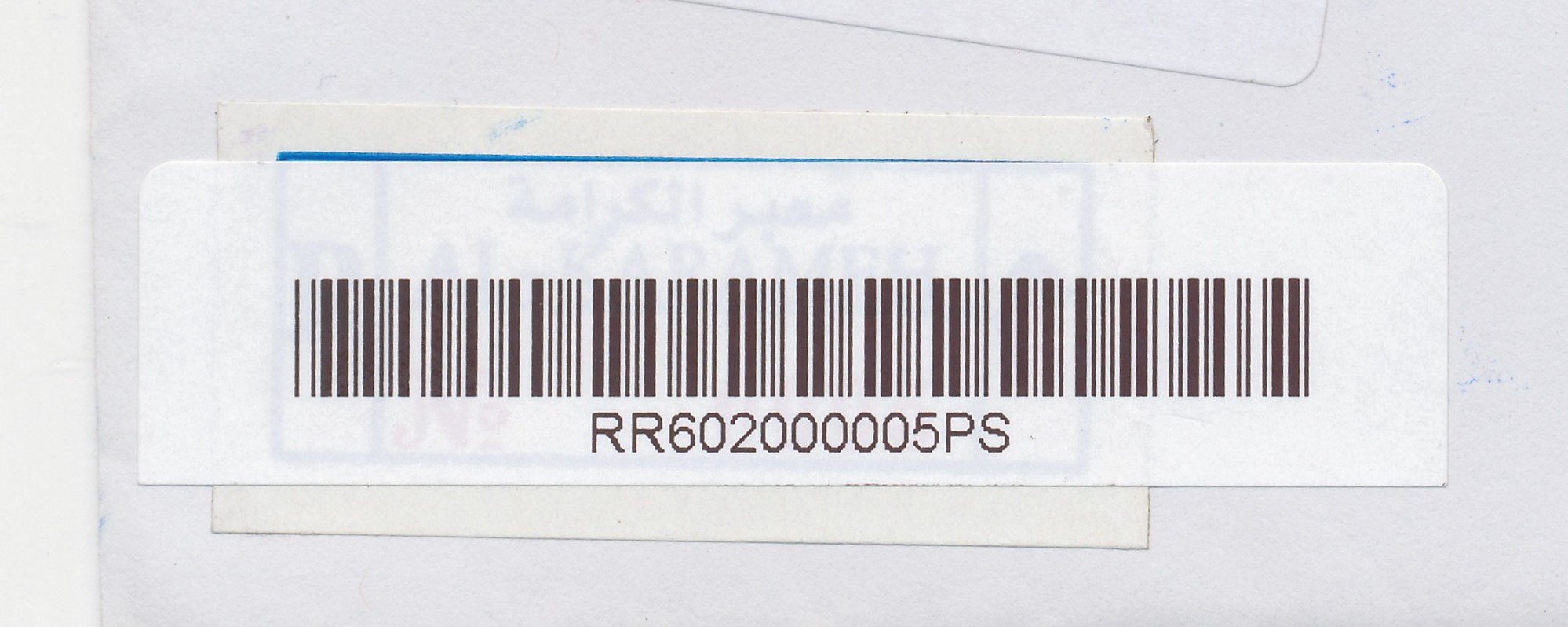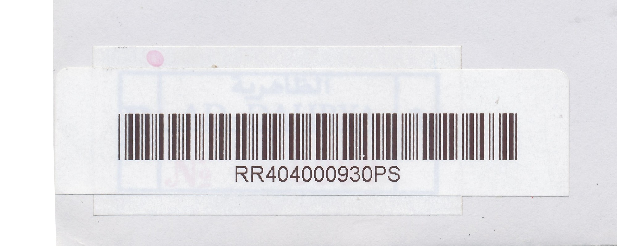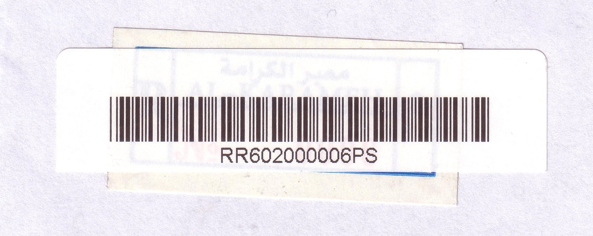 - type D1-L and D1-R (without "Palestine Post": barcode size 30.1x4.7mm, label size ca. 35.2x17.6mm)
