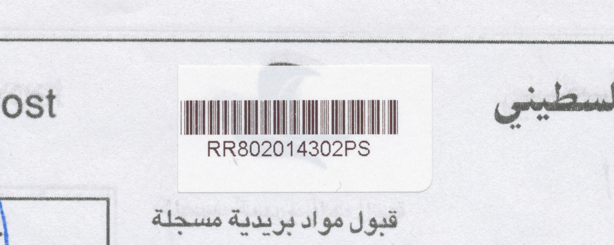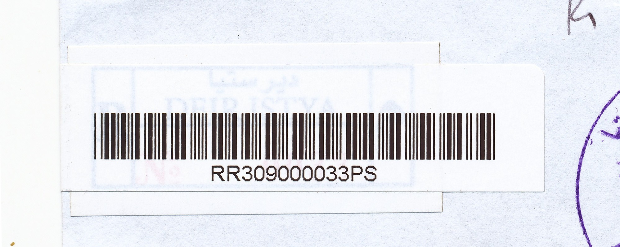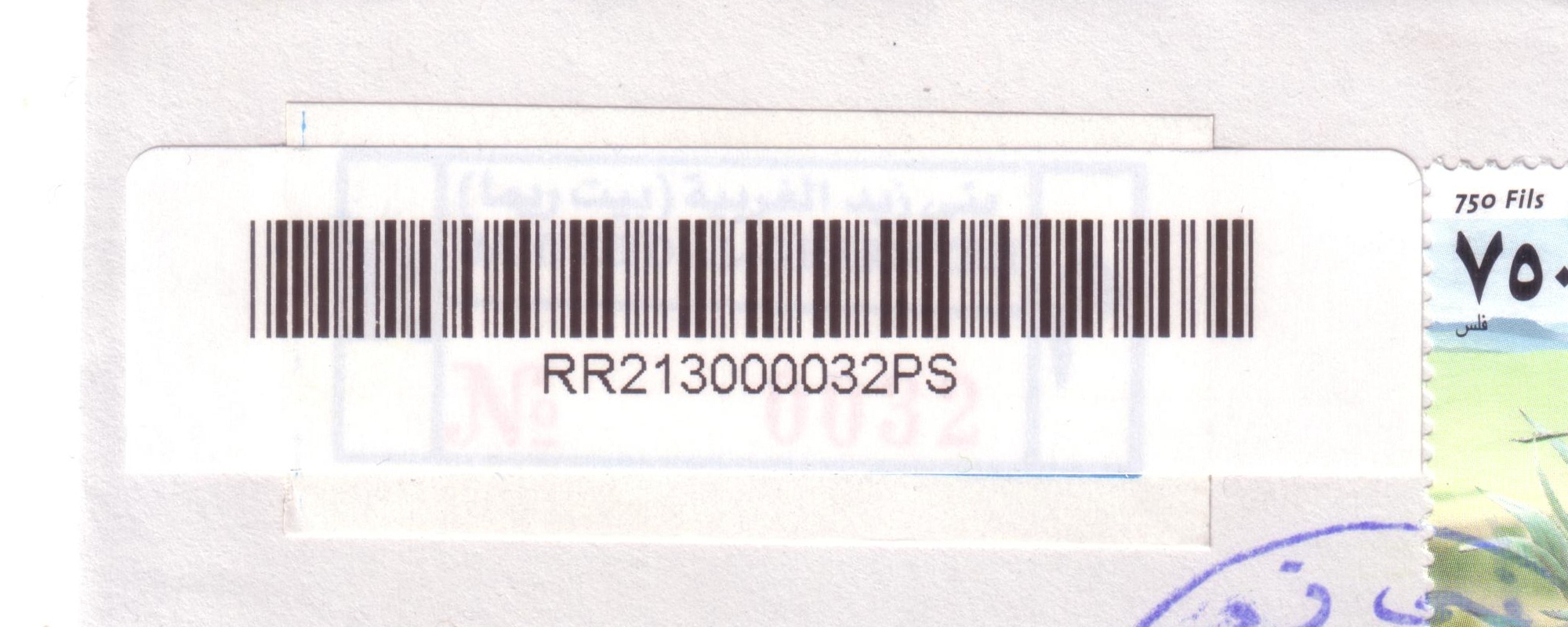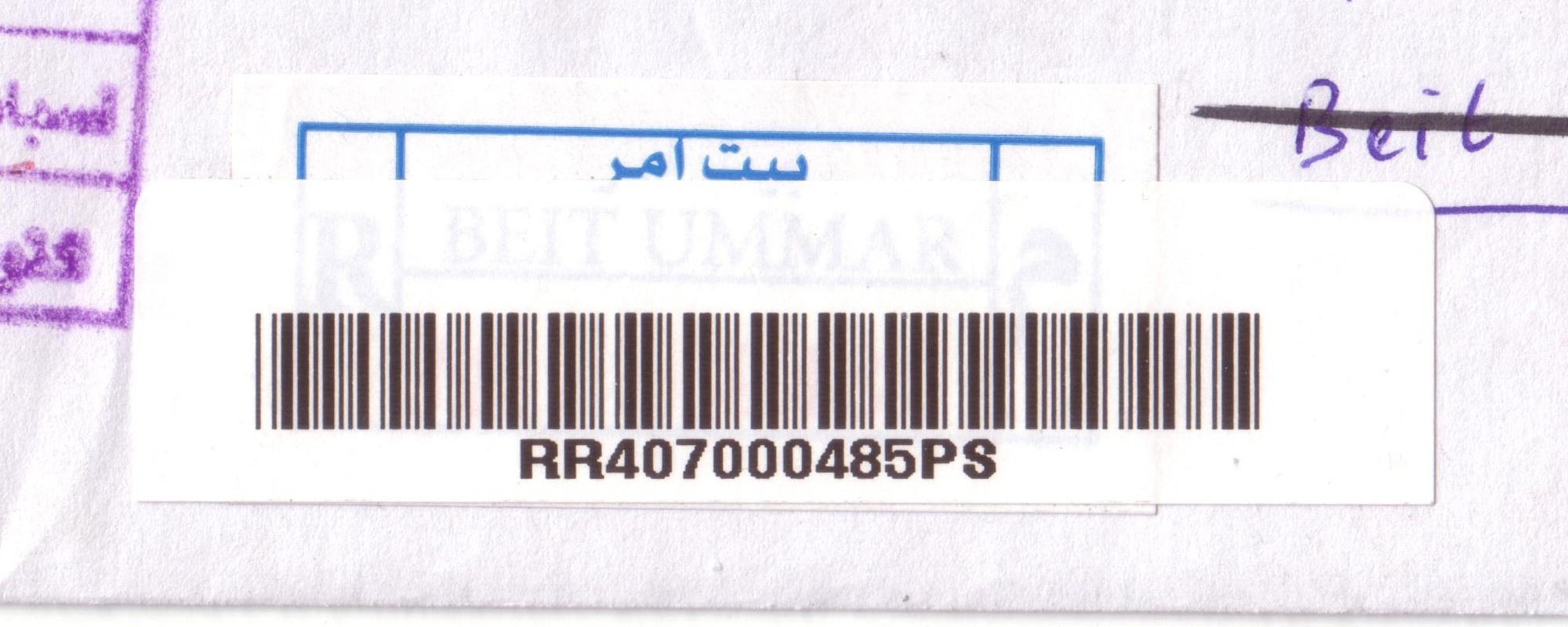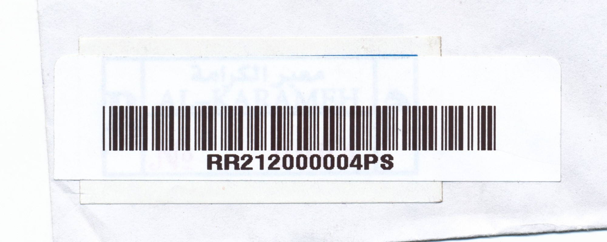 - type D1-L and D1-R (without "Palestine Post": barcode size 30.1x4.7mm, label size ca. 35.2x17.6mm)