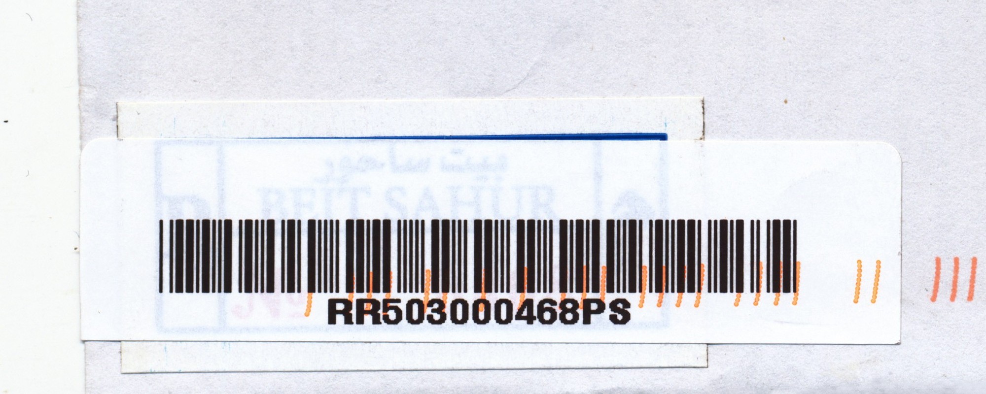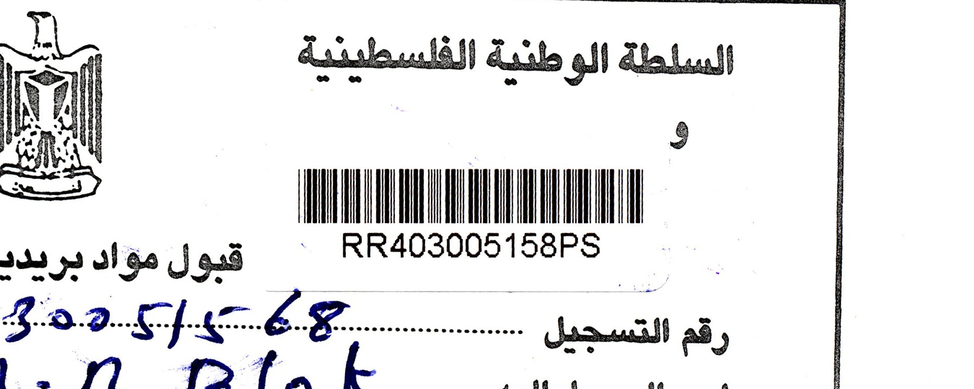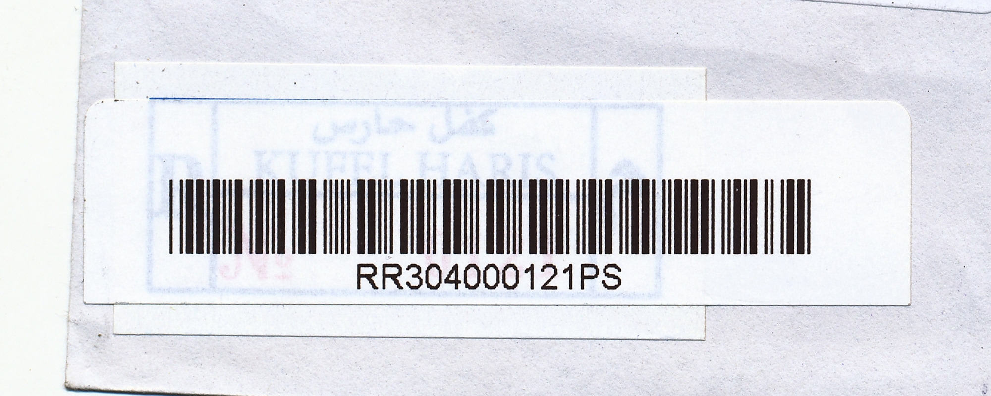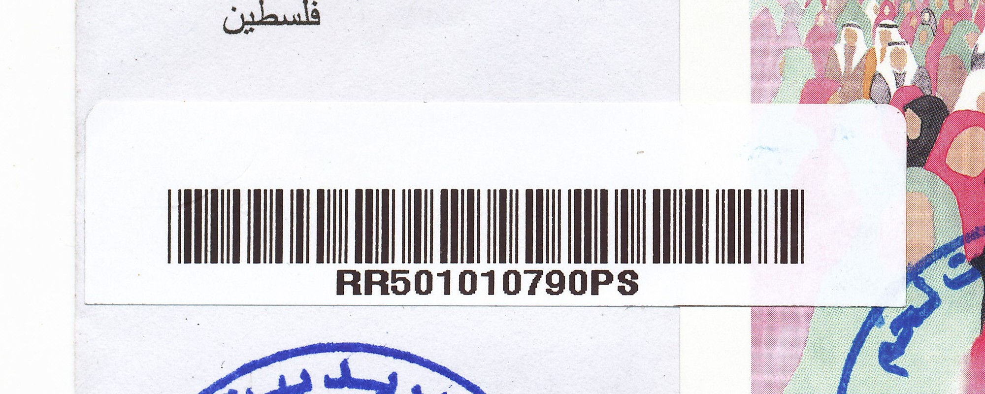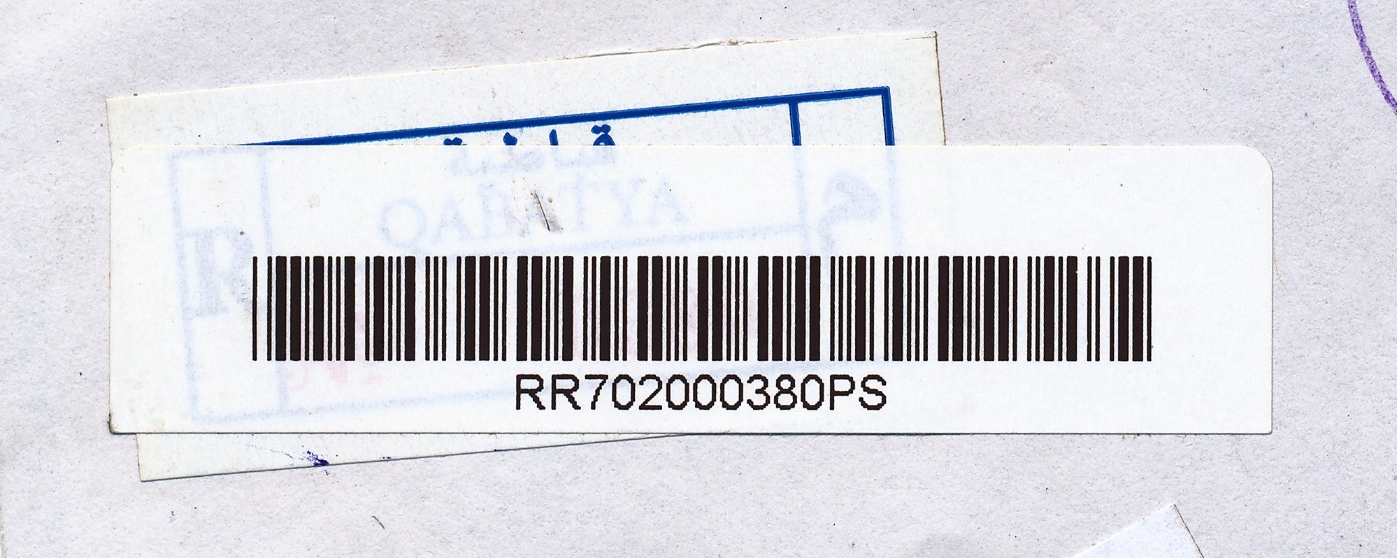 - type D1-L and D1-R (without "Palestine Post": barcode size 30.1x4.7mm, label size ca. 35.2x17.6mm)