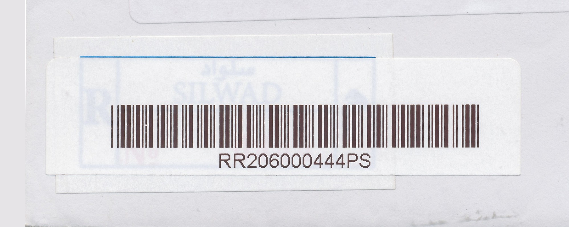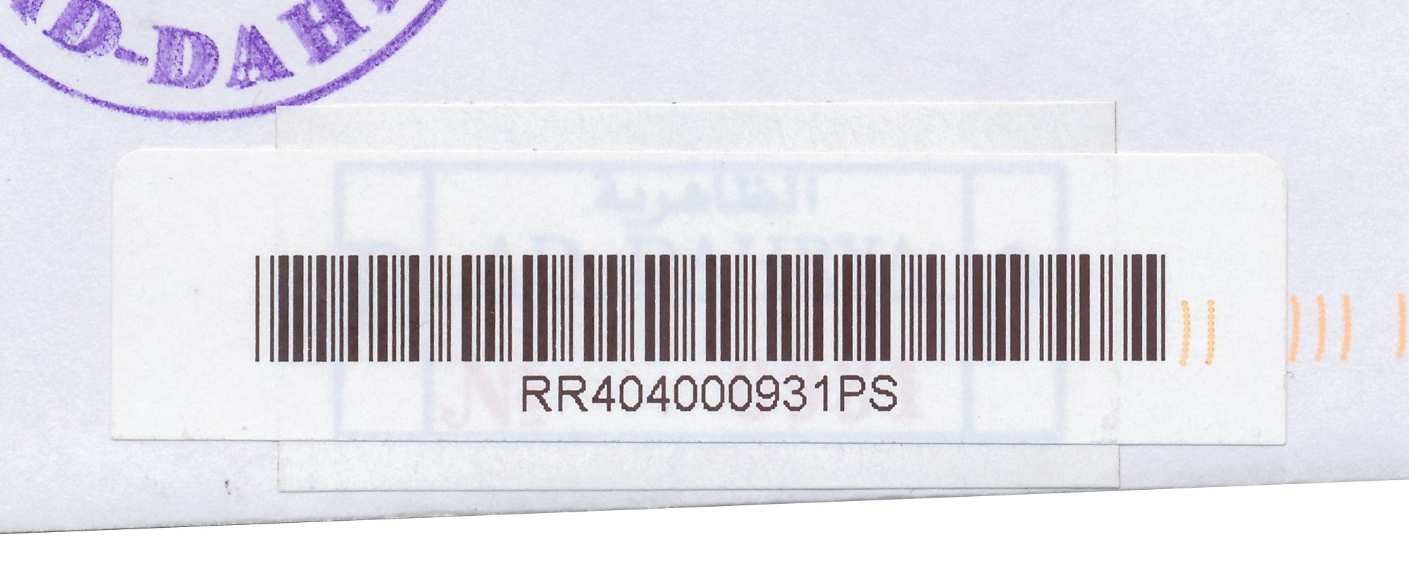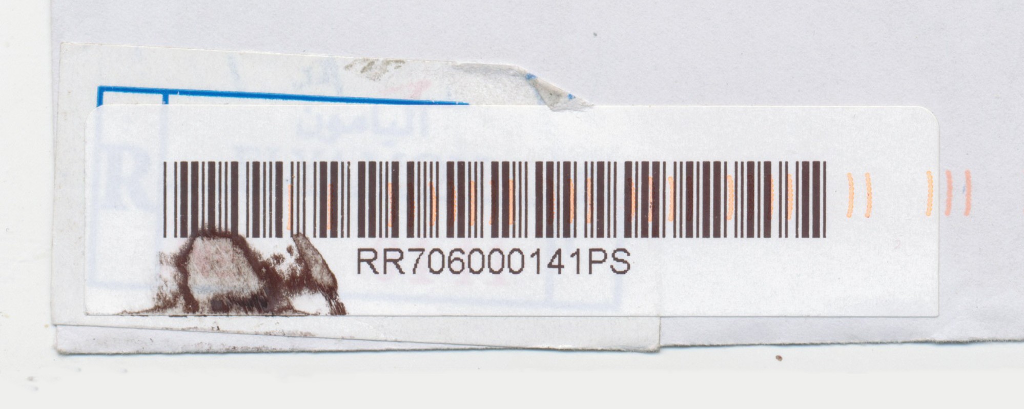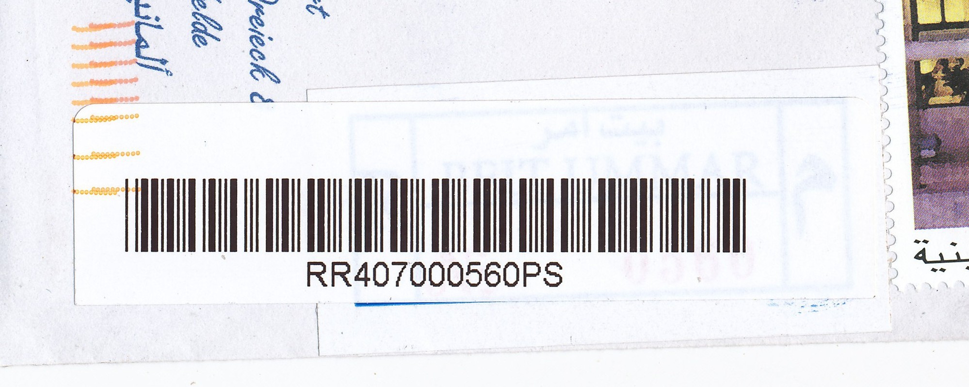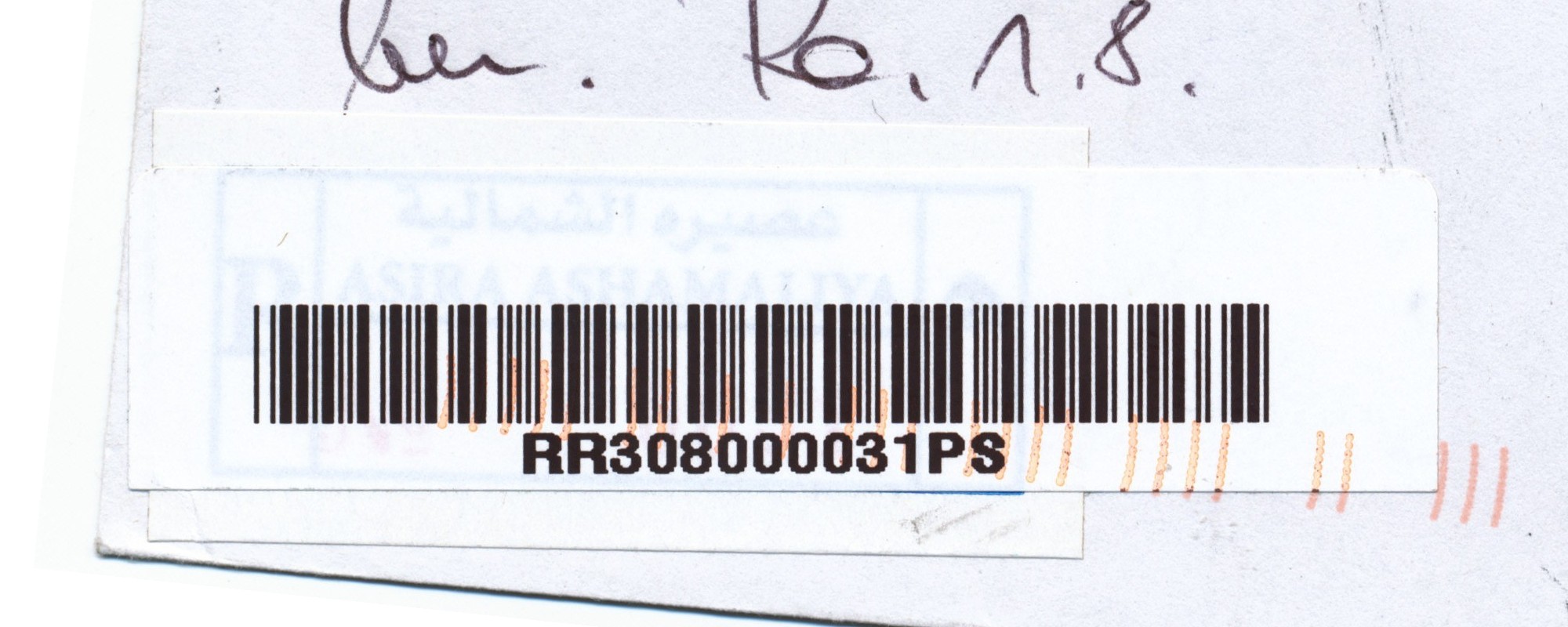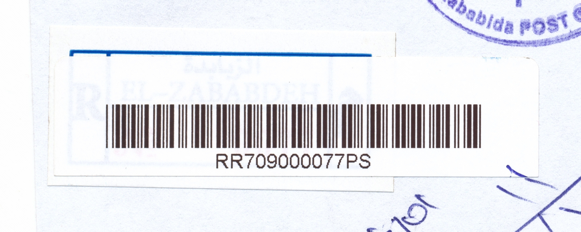 - type D1-L and D1-R (without "Palestine Post": barcode size 30.1x4.7mm, label size ca. 35.2x17.6mm)