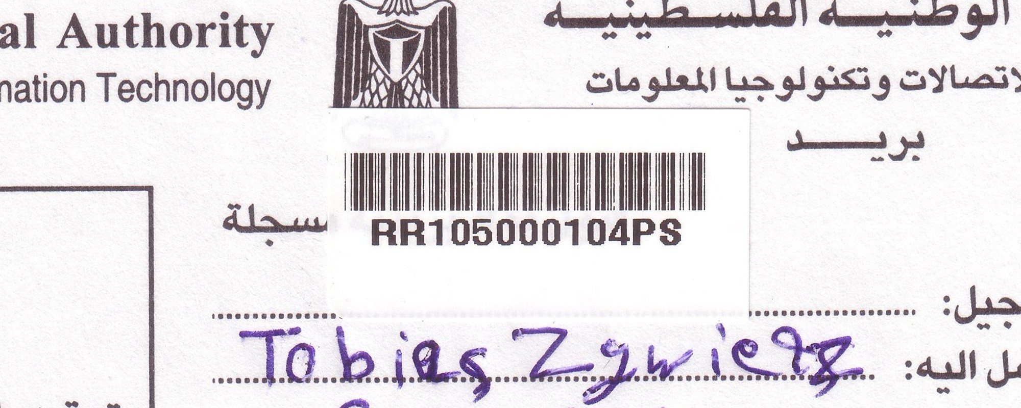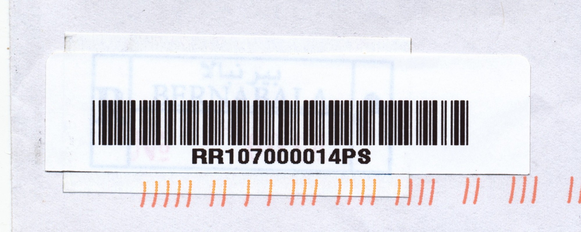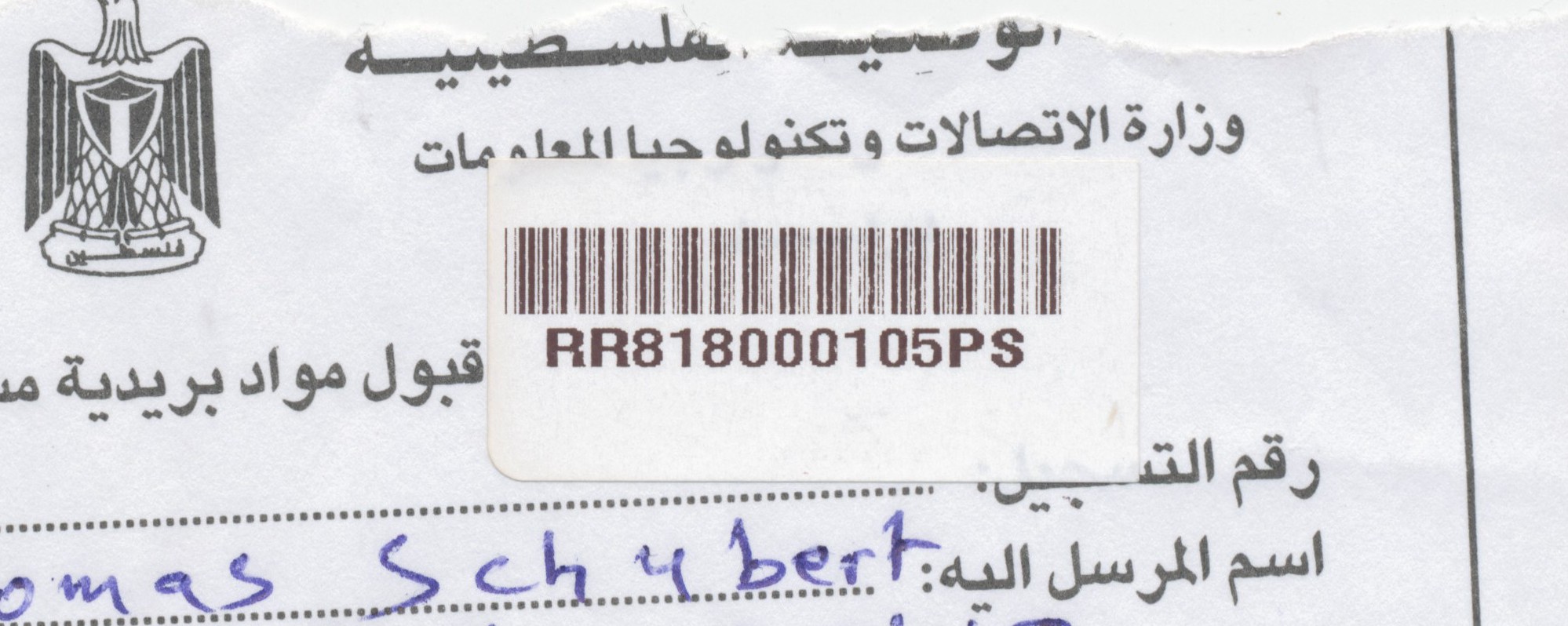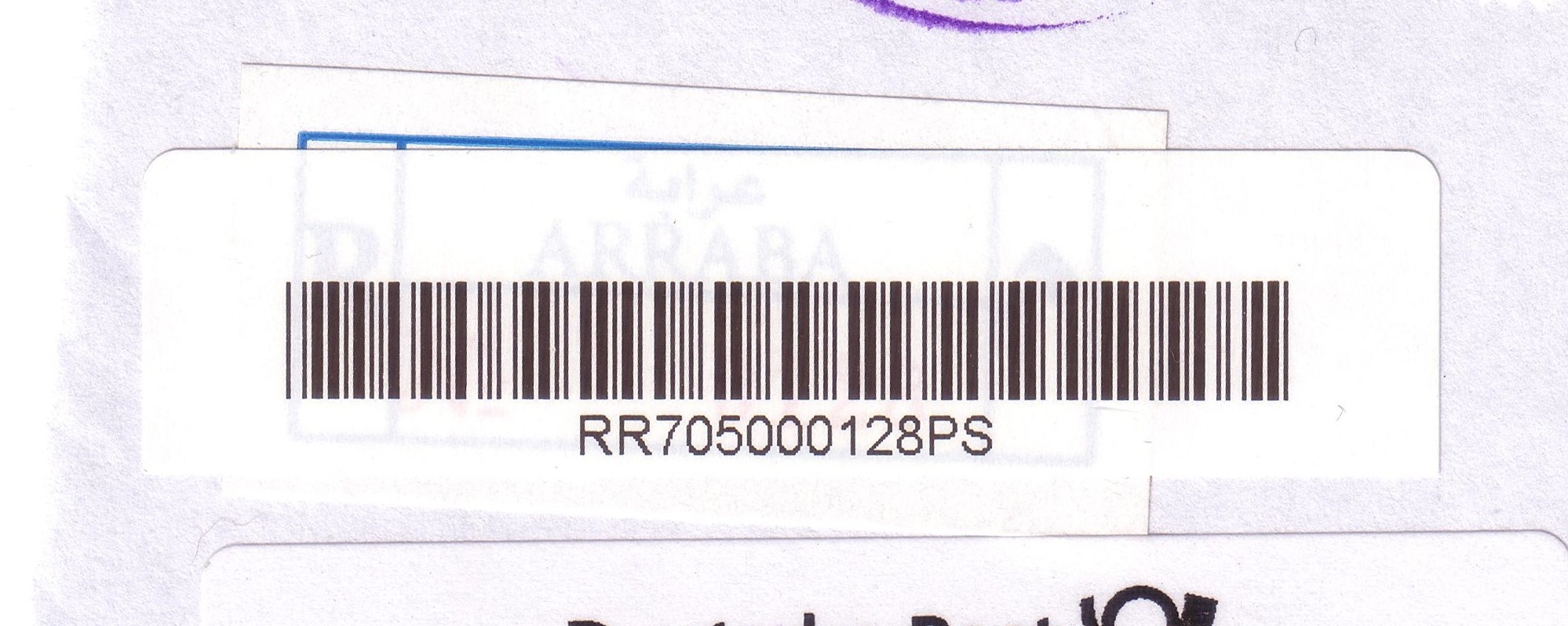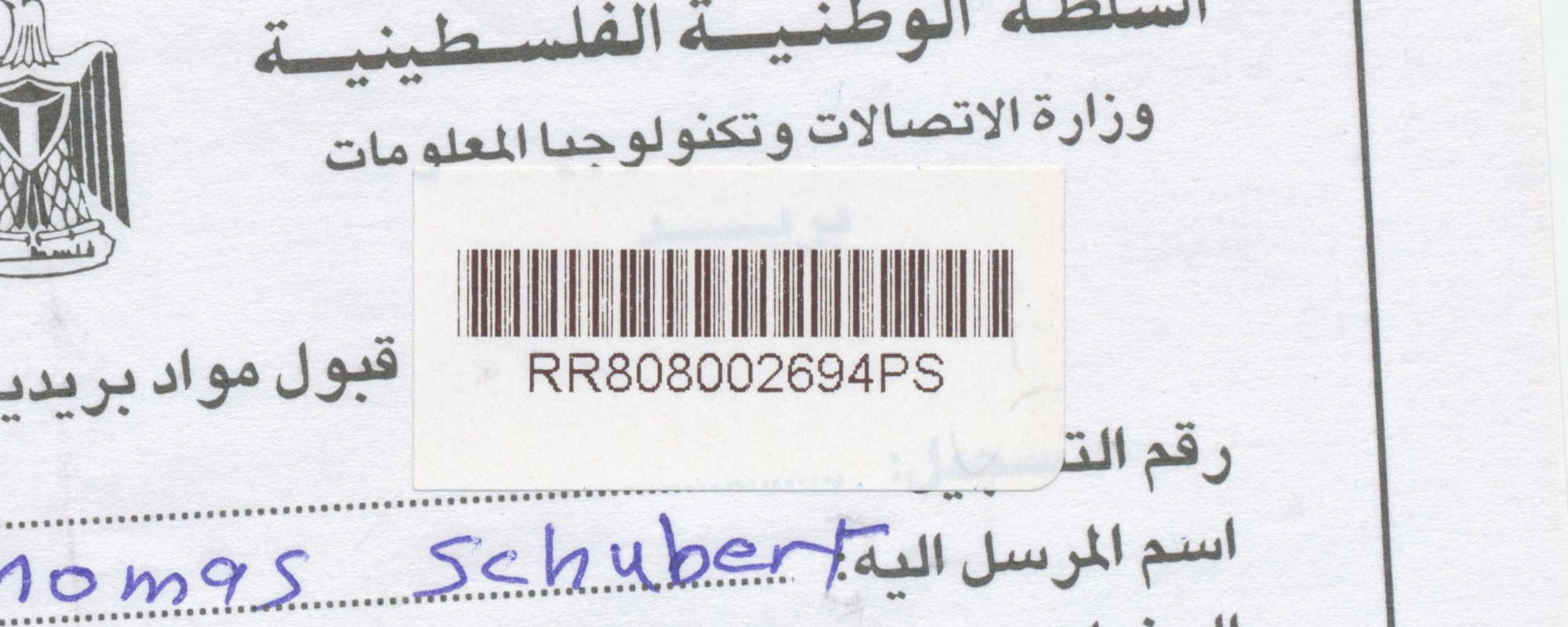 - type D1-L and D1-R (without "Palestine Post": barcode size 30.1x4.7mm, label size ca. 35.2x17.6mm)