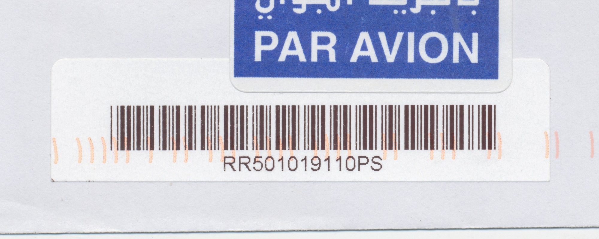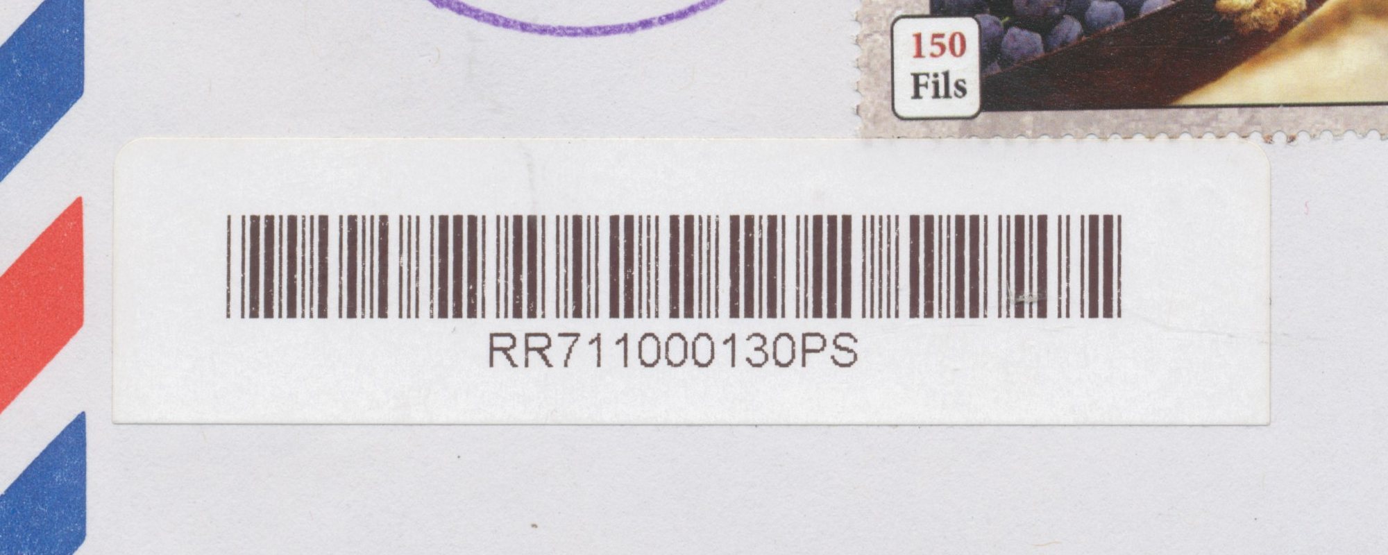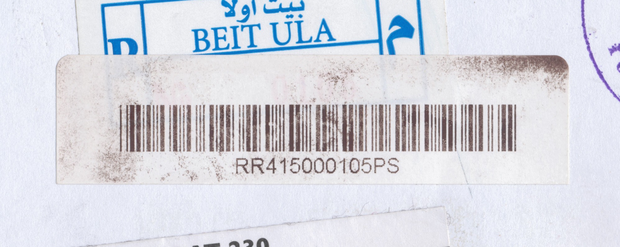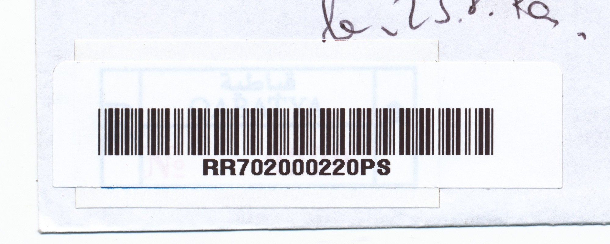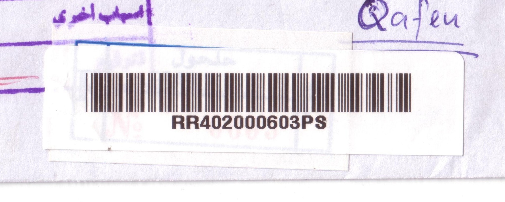 - type D1-L and D1-R (without "Palestine Post": barcode size 30.1x4.7mm, label size ca. 35.2x17.6mm)