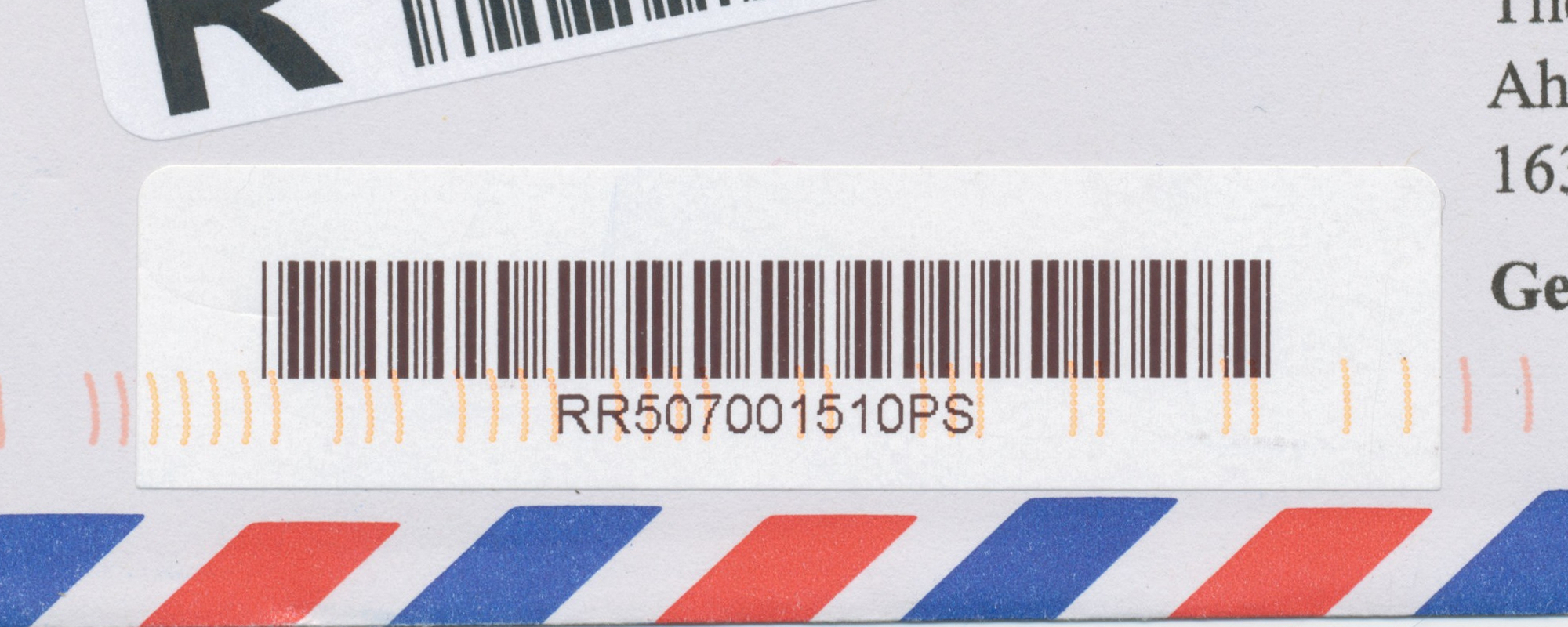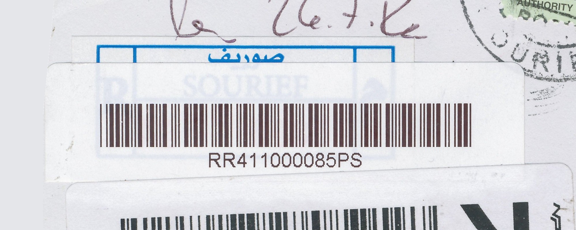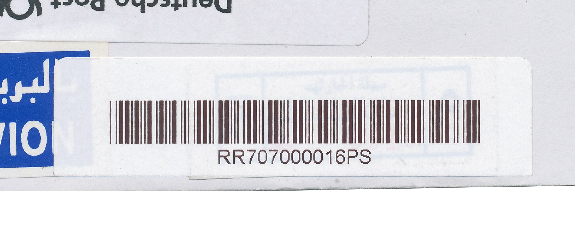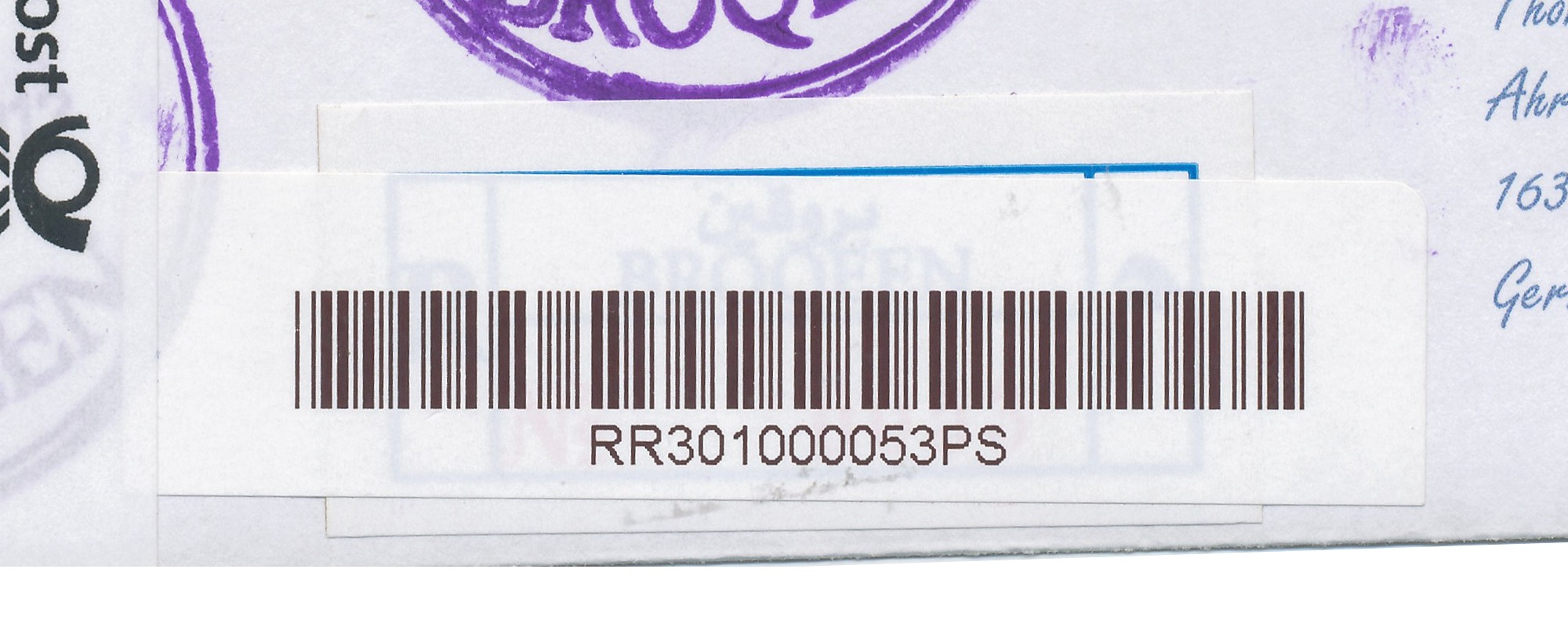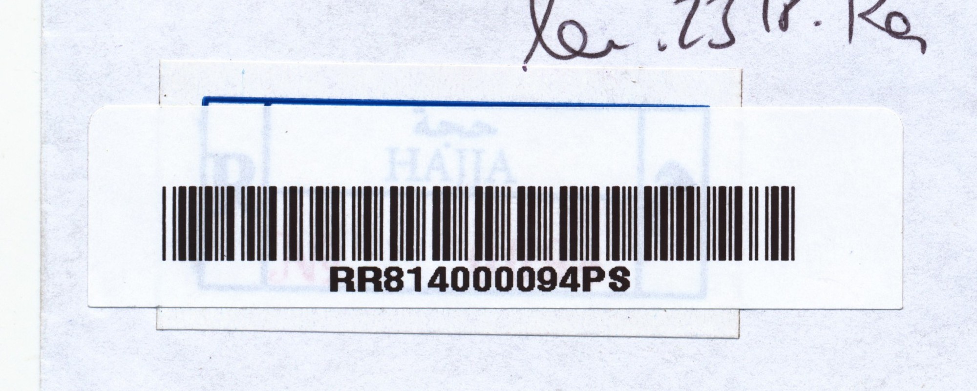 - type D1-L and D1-R (without "Palestine Post": barcode size 30.1x4.7mm, label size ca. 35.2x17.6mm)