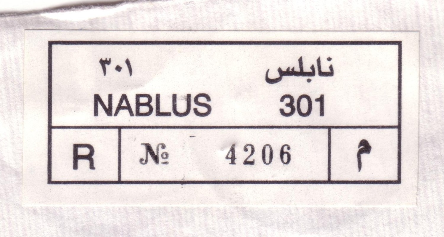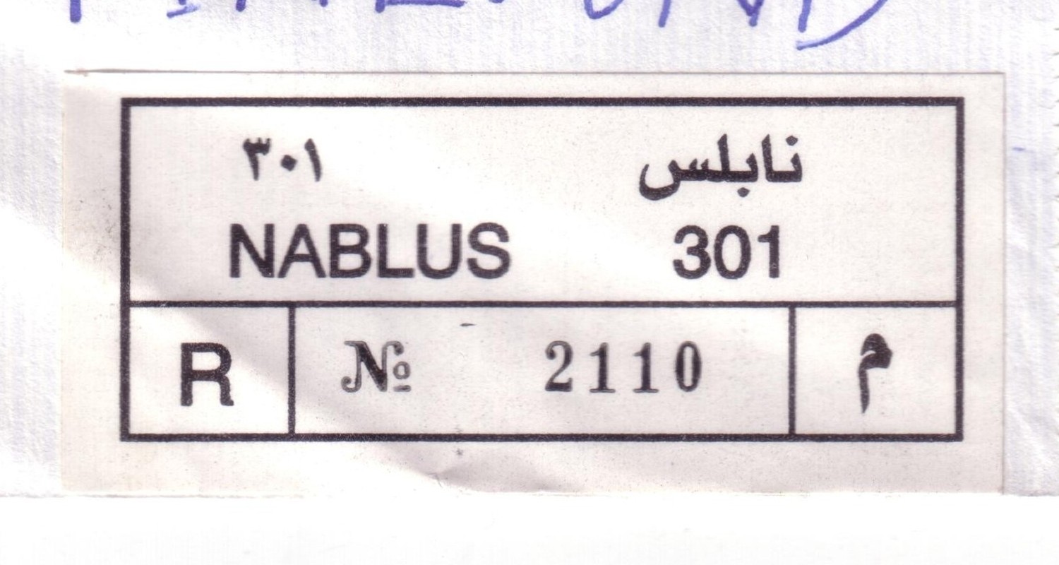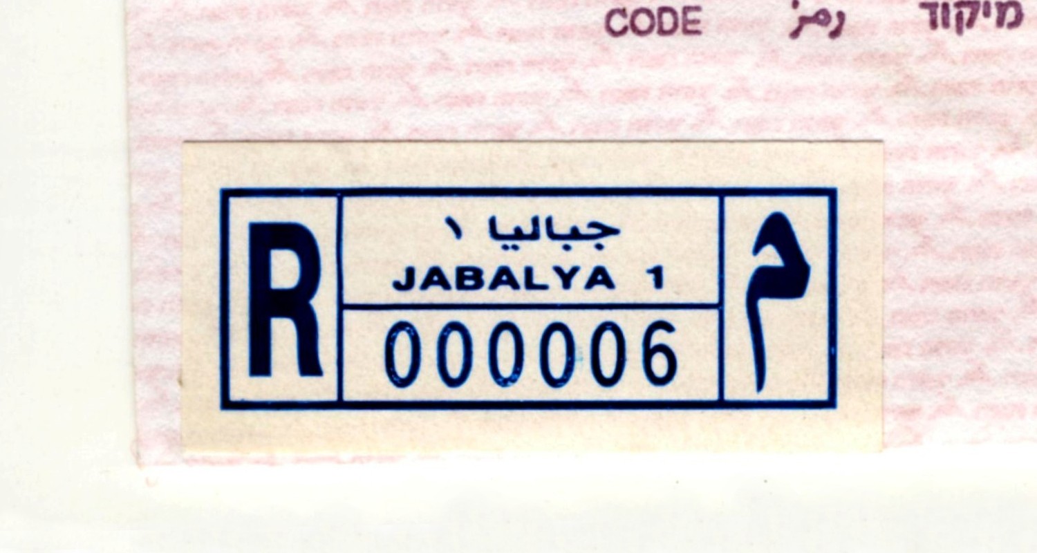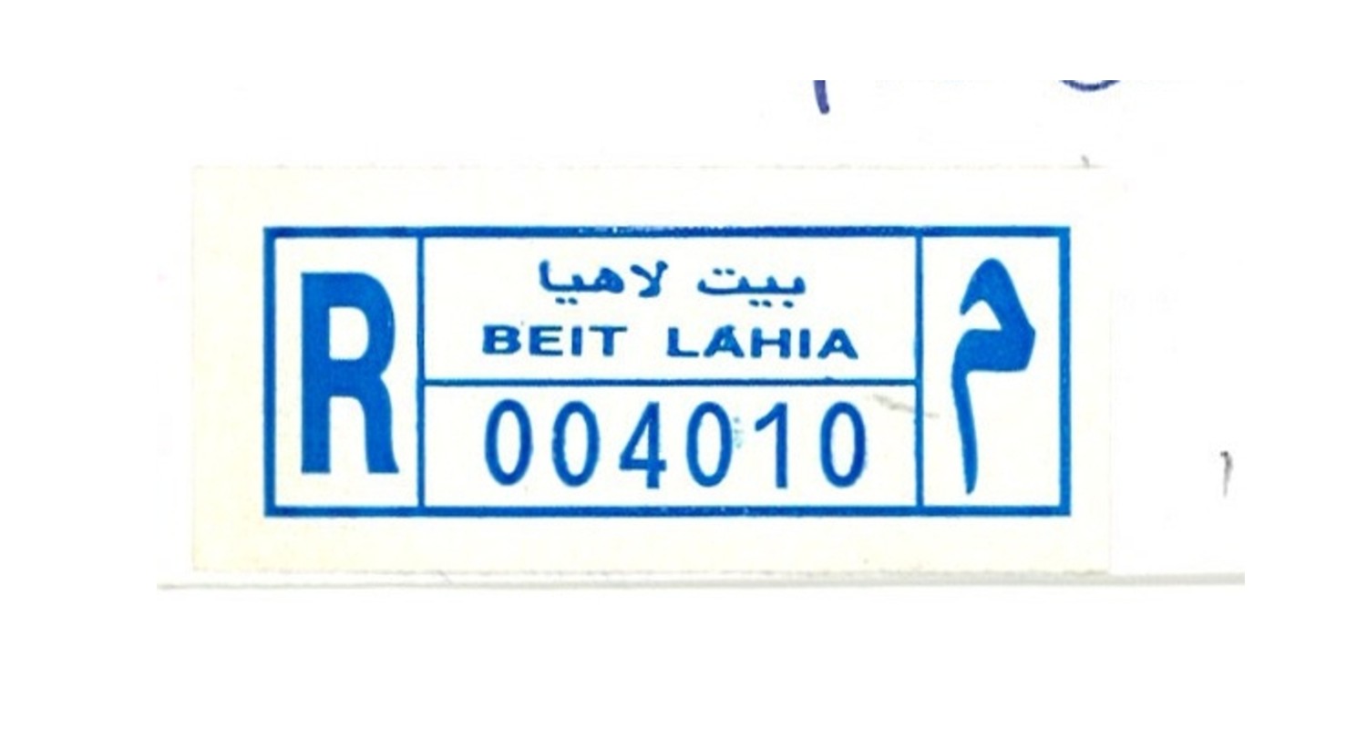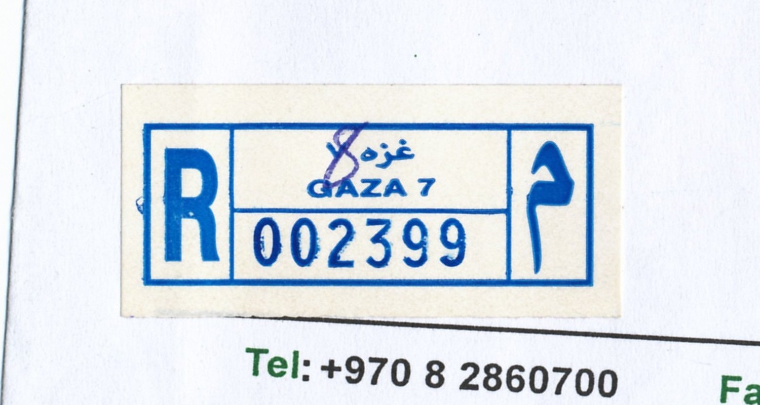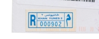 During 2012 the new North Valleys office at Ein-el-Beida used photocopied B4-like strips, marked manually (type B5). In Gaza, the old labels of types B1 and B2x remained in use. After the 2008/2009 Israeli attack on Gaza, labels from damaged offices are used in offices still operating or after re-opening.