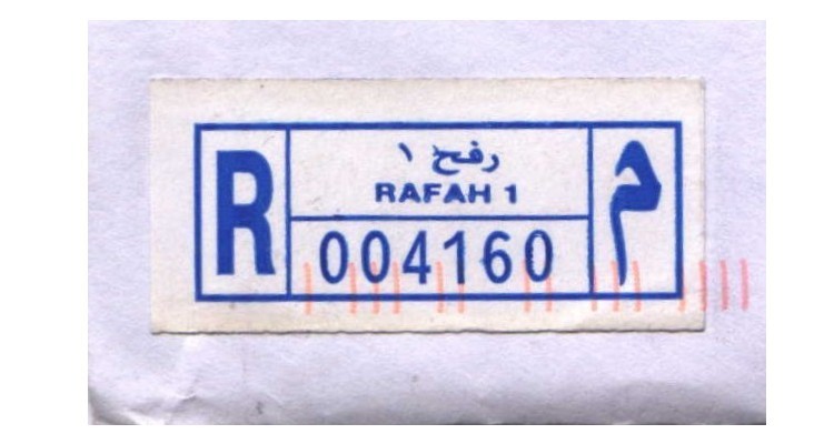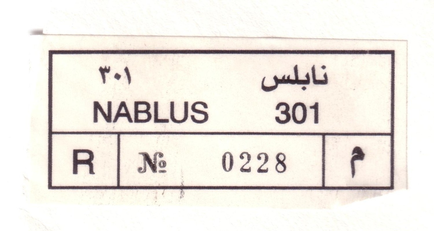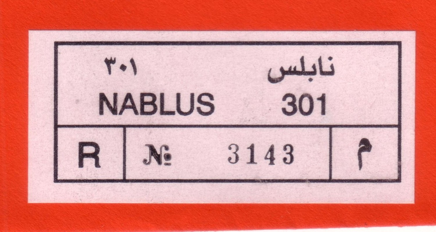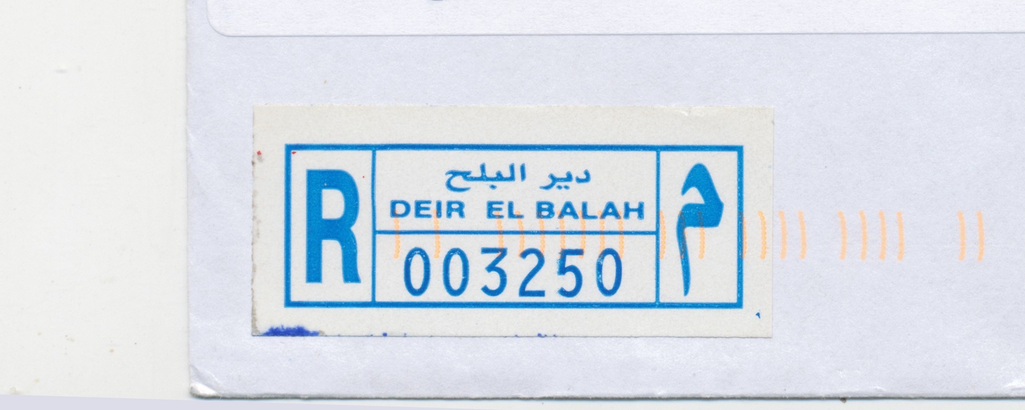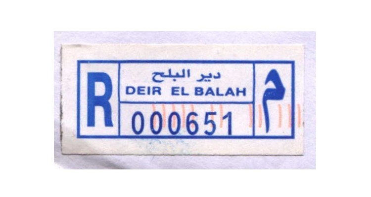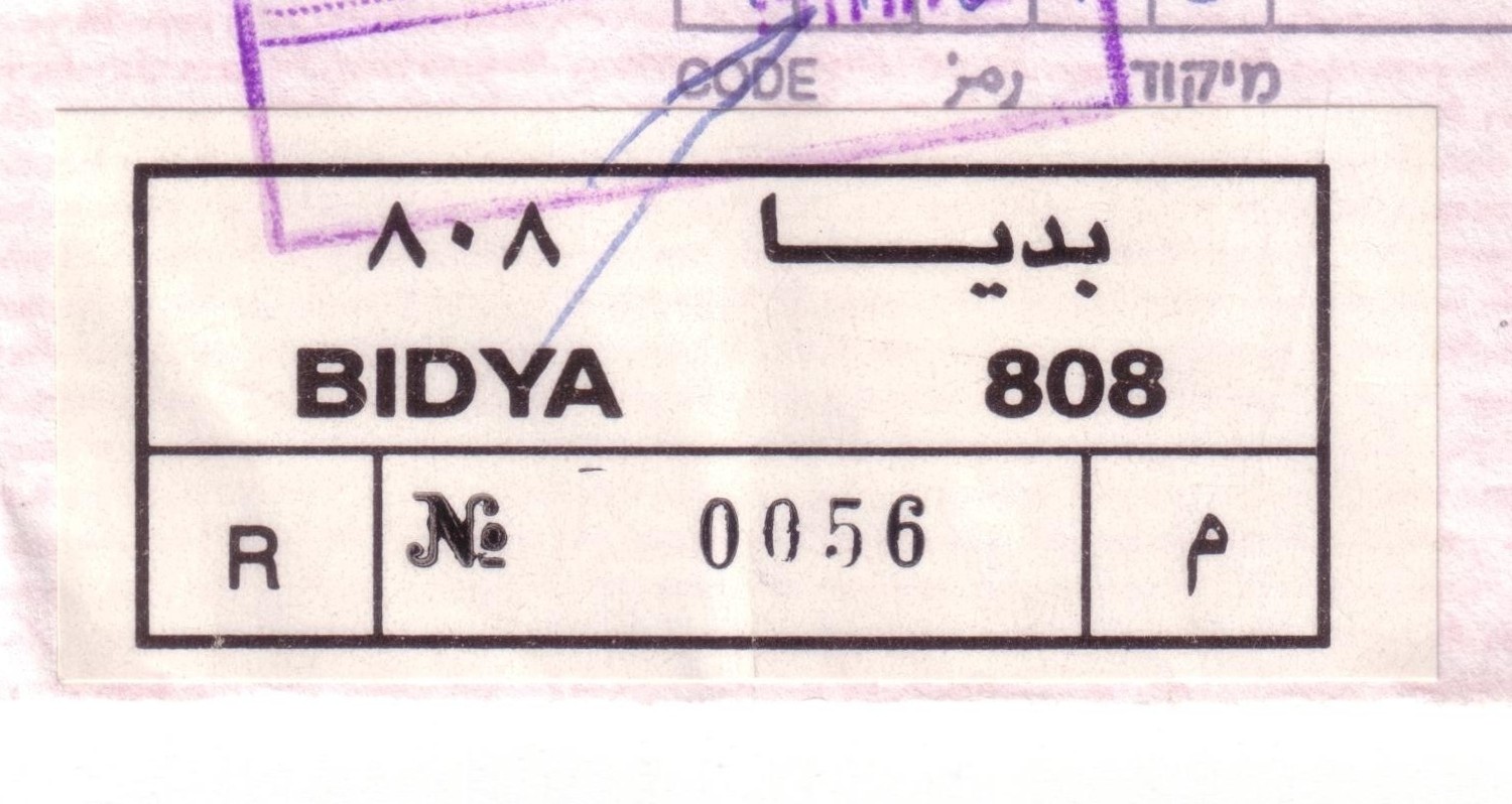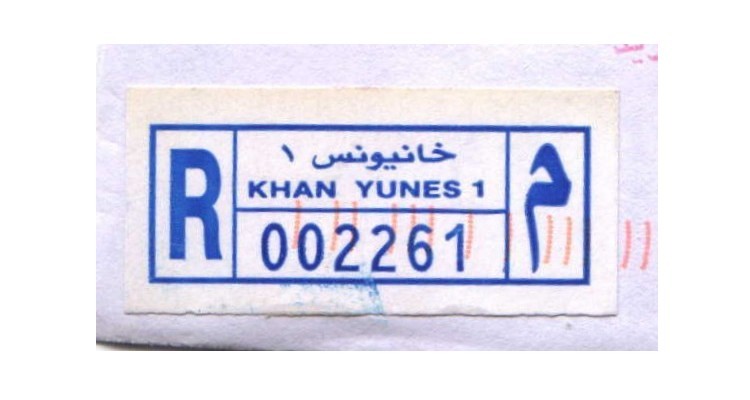 During 2012 the new North Valleys office at Ein-el-Beida used photocopied B4-like strips, marked manually (type B5). In Gaza, the old labels of types B1 and B2x remained in use. After the 2008/2009 Israeli attack on Gaza, labels from damaged offices are used in offices still operating or after re-opening.
