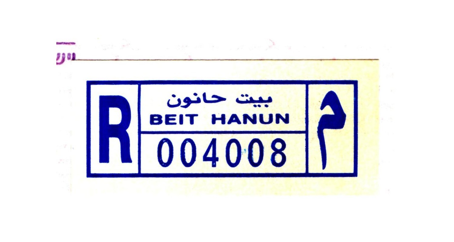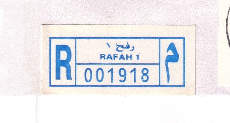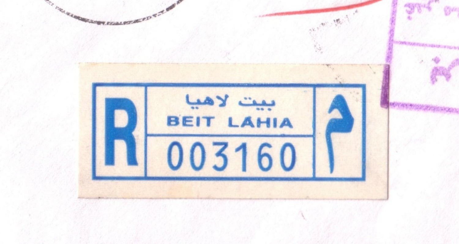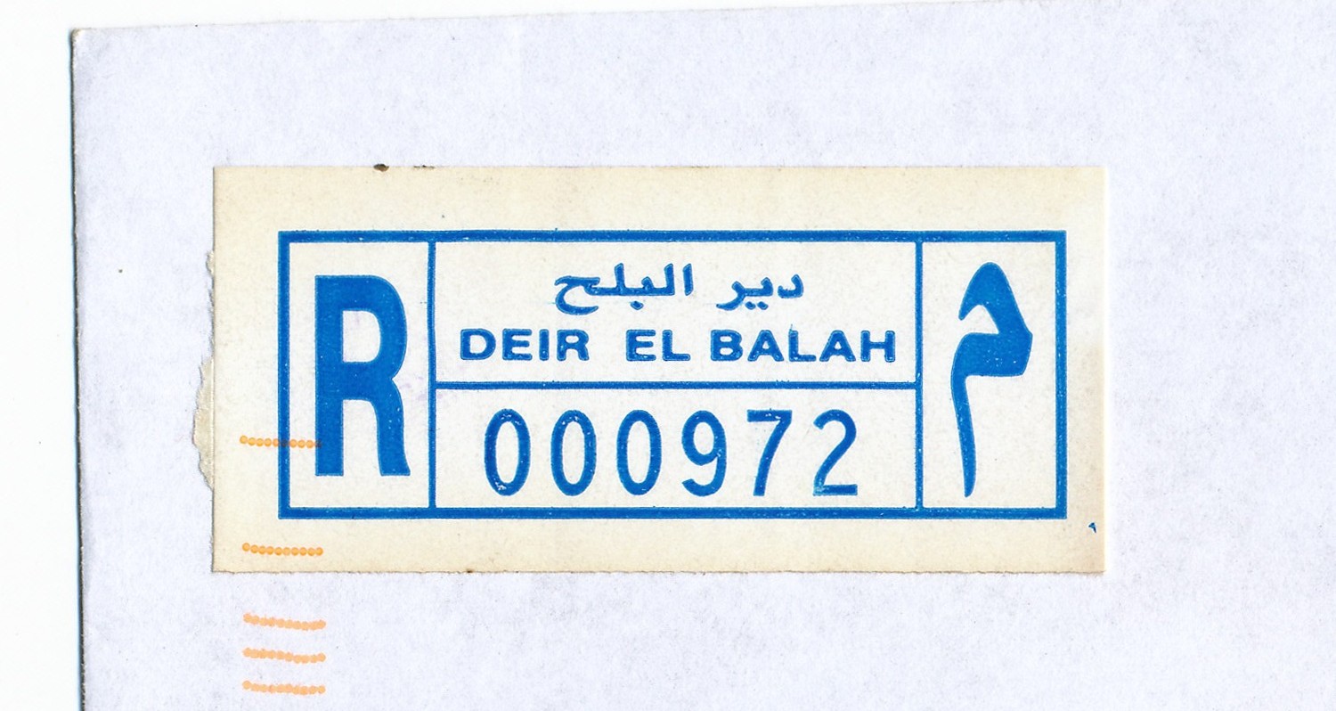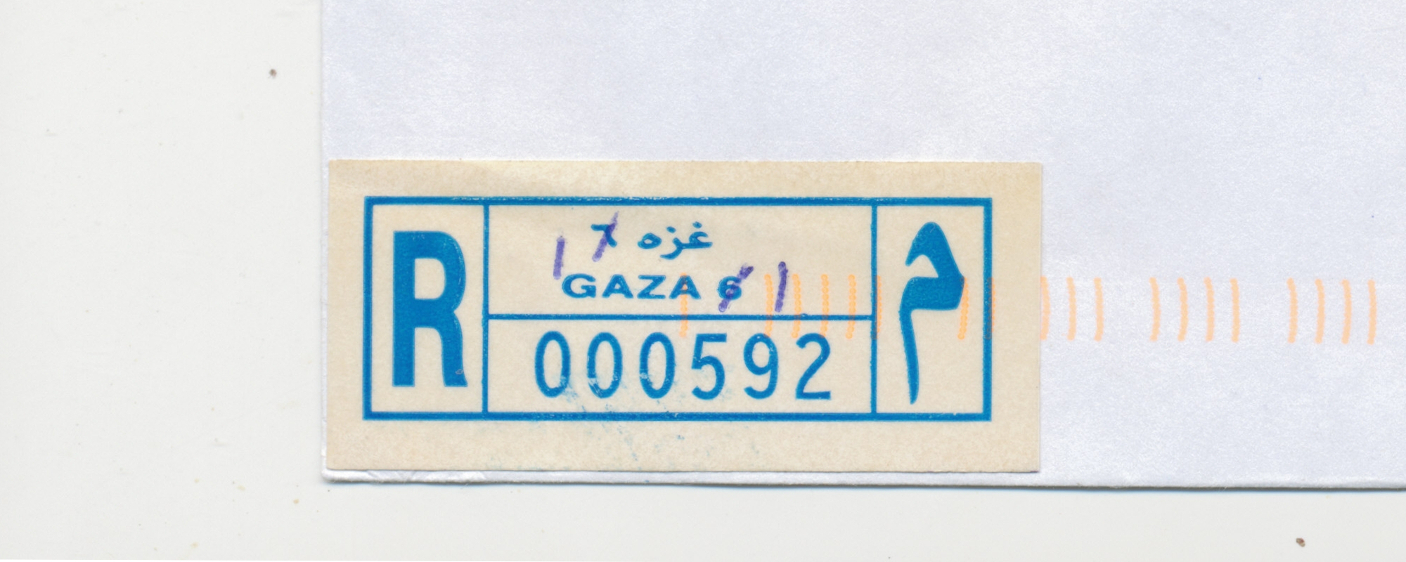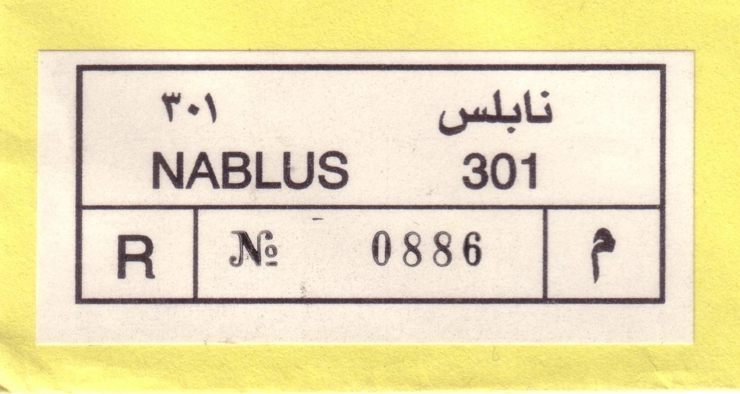During 2012 the new North Valleys office at Ein-el-Beida used photocopied B4-like strips, marked manually (type B5). In Gaza, the old labels of types B1 and B2x remained in use. After the 2008/2009 Israeli attack on Gaza, labels from damaged offices are used in offices still operating or after re-opening.