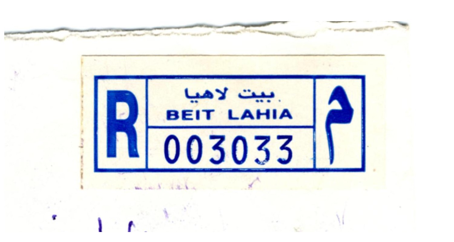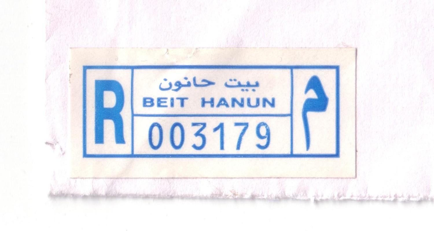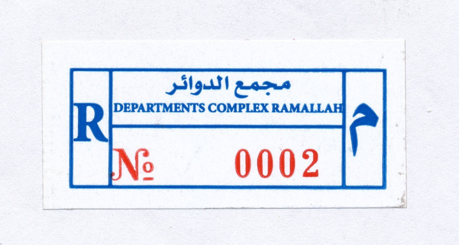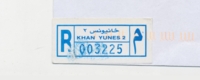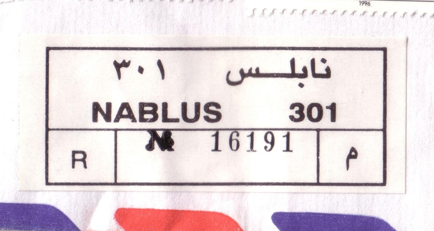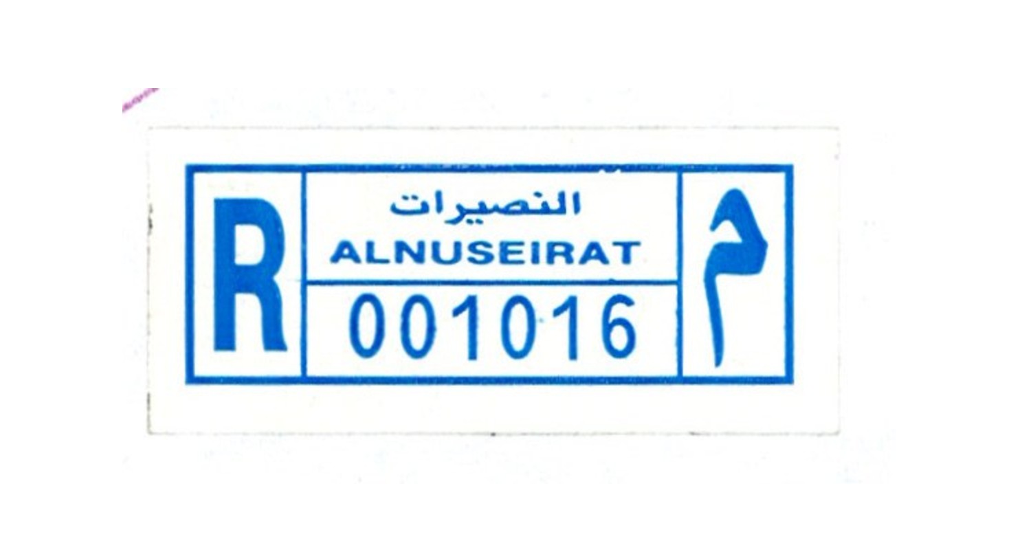 During 2012 the new North Valleys office at Ein-el-Beida used photocopied B4-like strips, marked manually (type B5). In Gaza, the old labels of types B1 and B2x remained in use. After the 2008/2009 Israeli attack on Gaza, labels from damaged offices are used in offices still operating or after re-opening.
