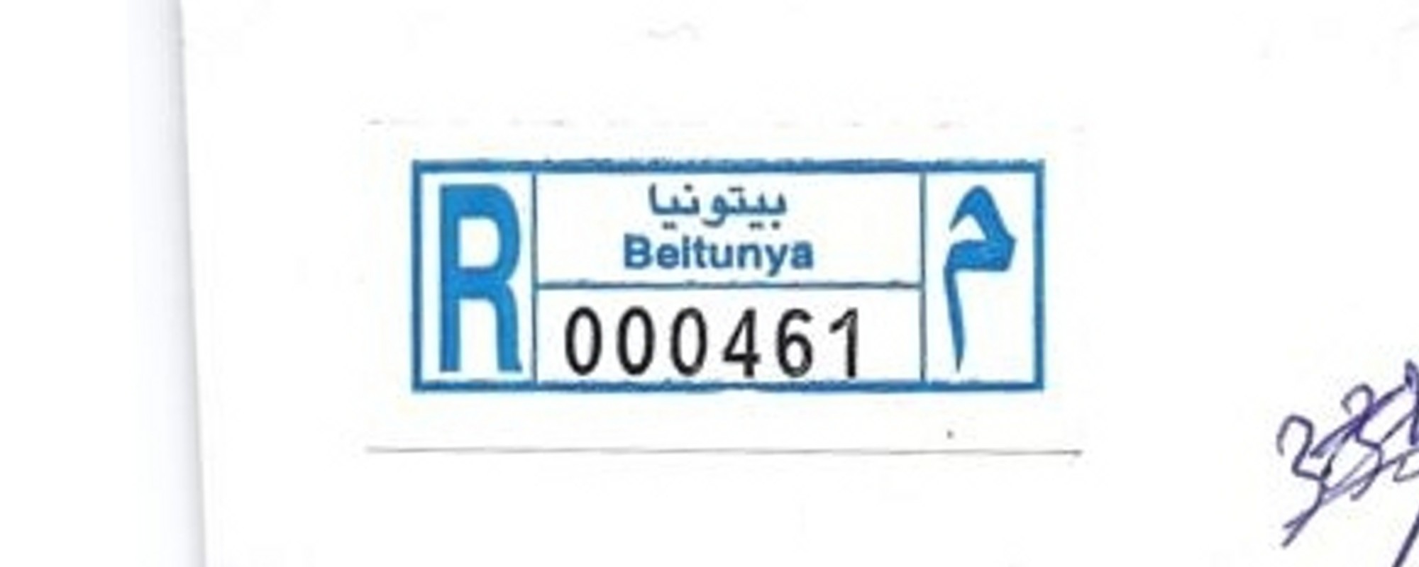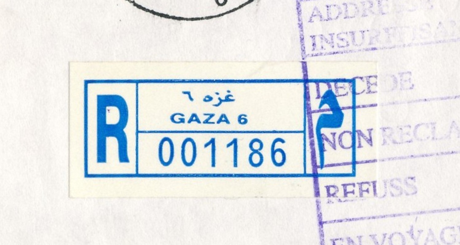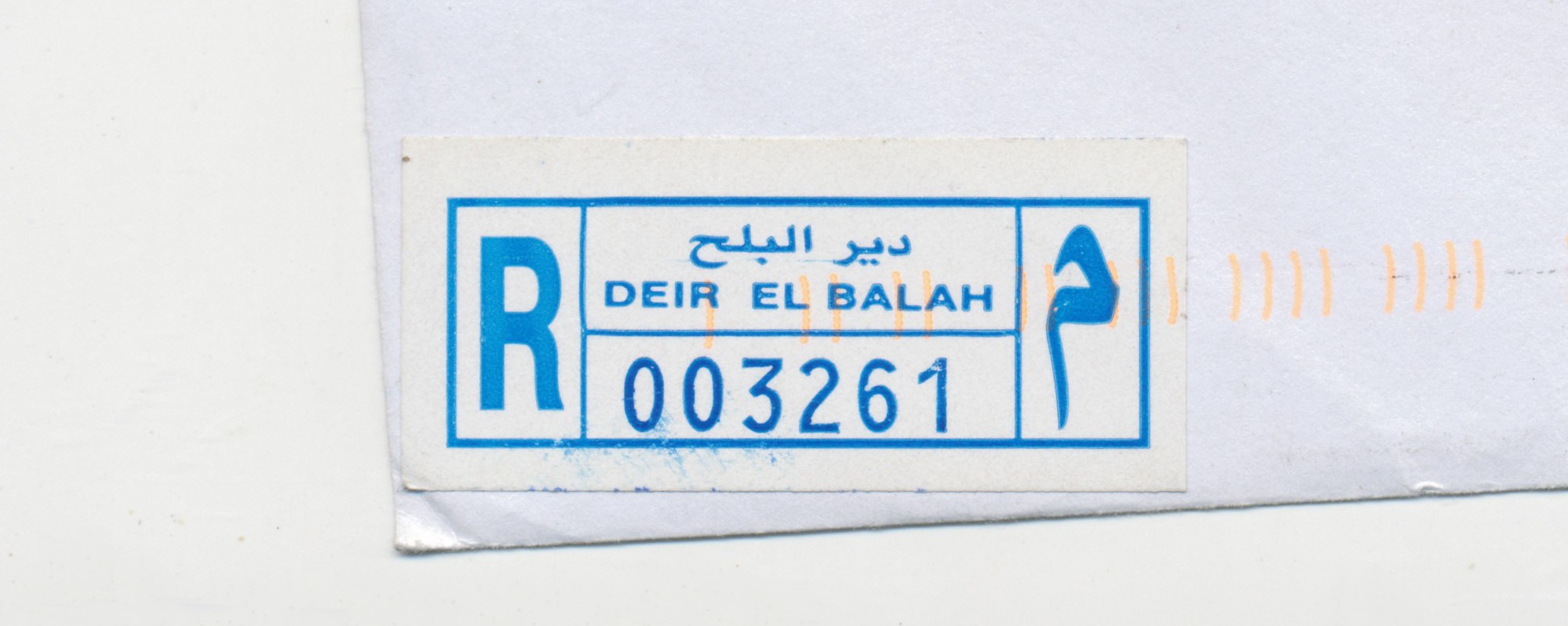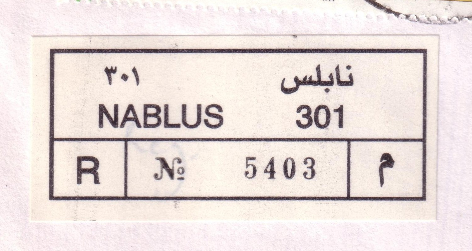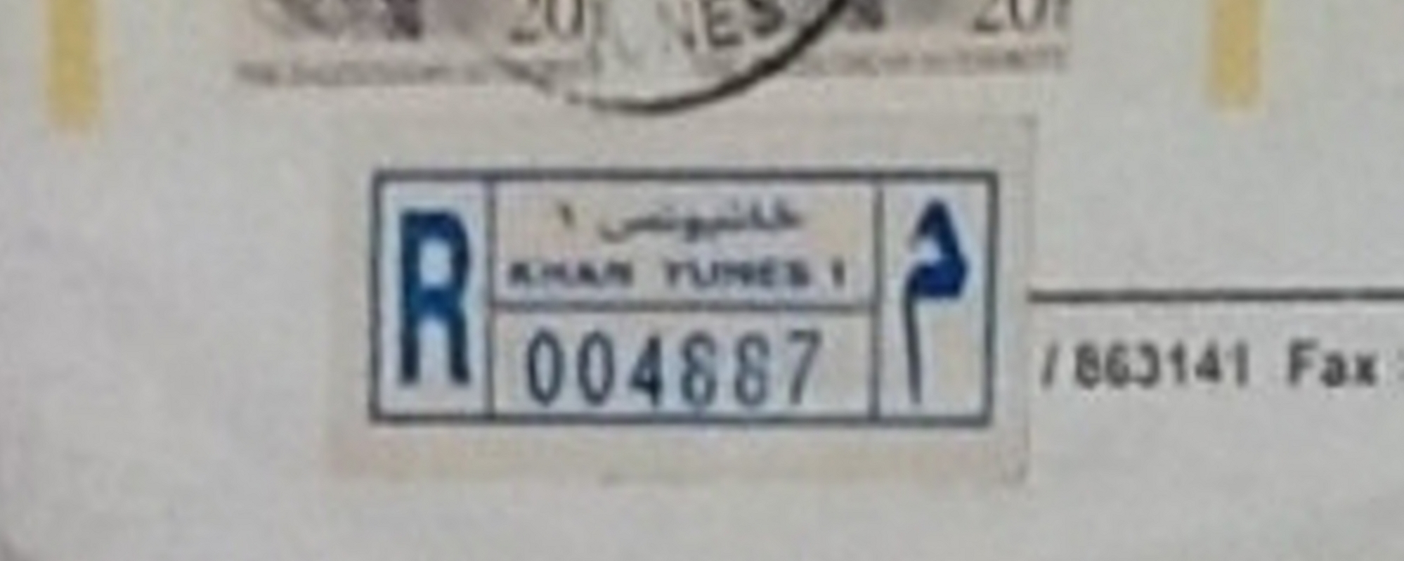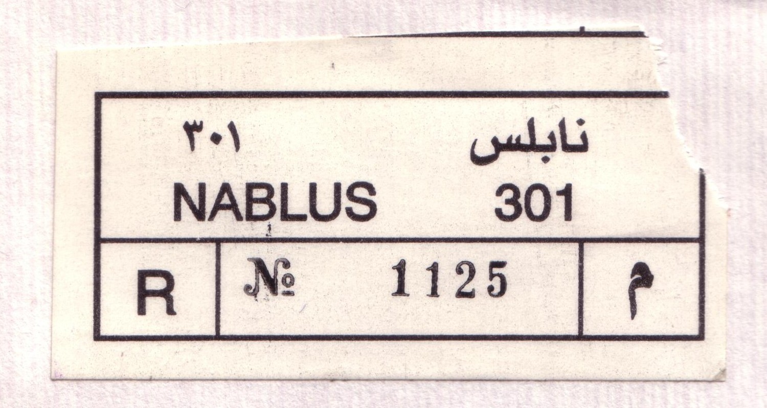 During 2012 the new North Valleys office at Ein-el-Beida used photocopied B4-like strips, marked manually (type B5). In Gaza, the old labels of types B1 and B2x remained in use. After the 2008/2009 Israeli attack on Gaza, labels from damaged offices are used in offices still operating or after re-opening.