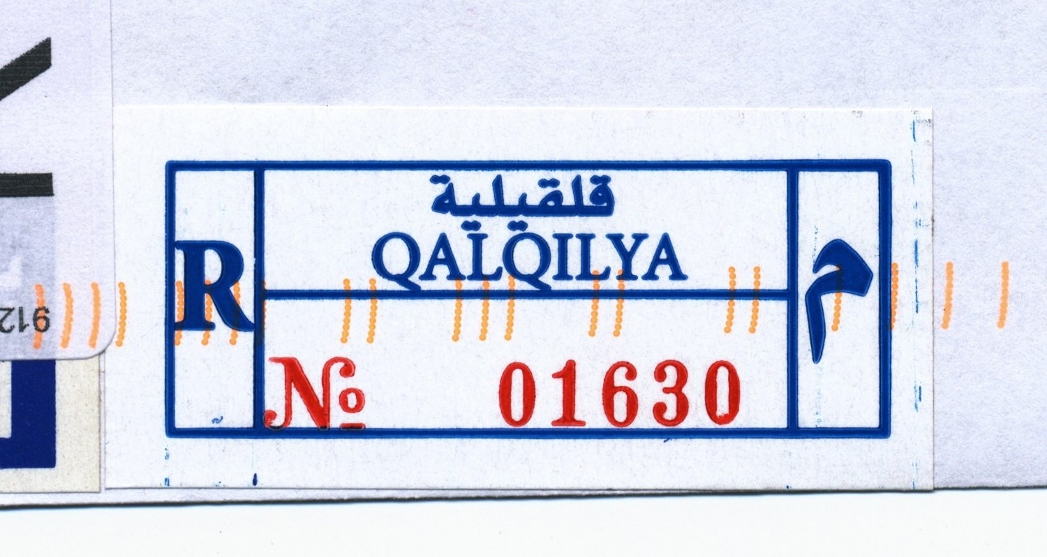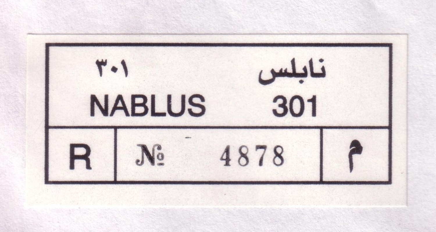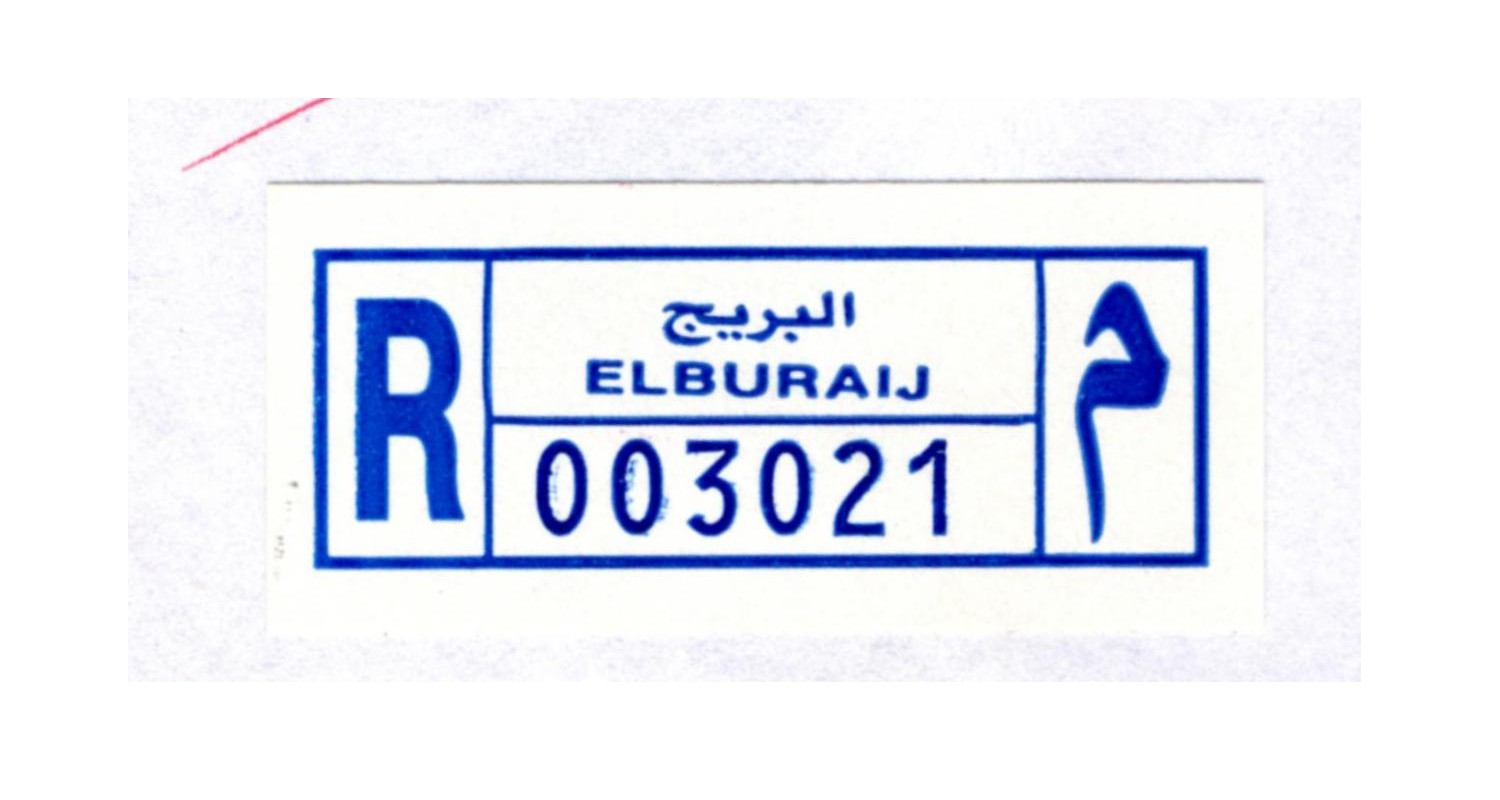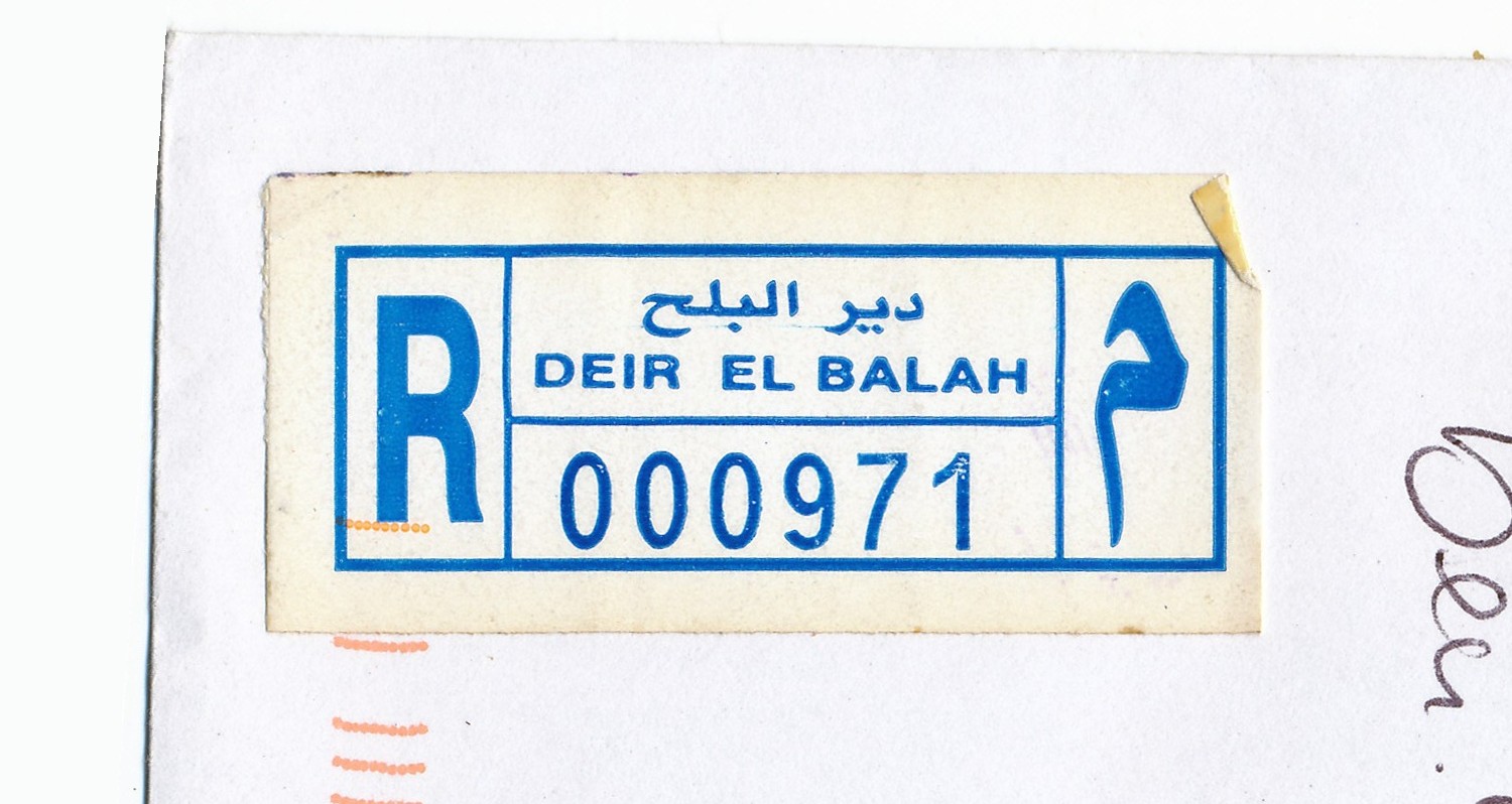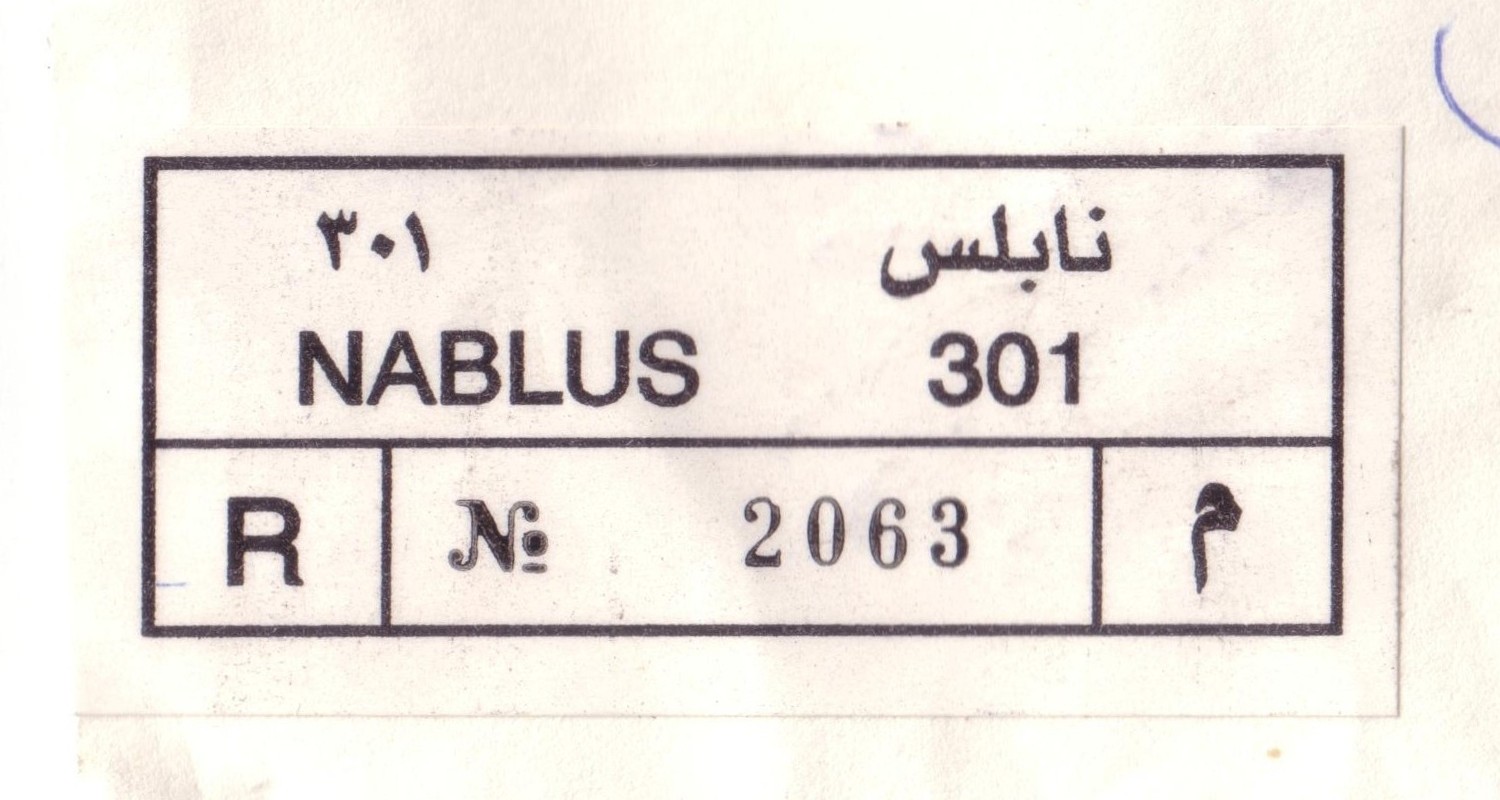 During 2012 the new North Valleys office at Ein-el-Beida used photocopied B4-like strips, marked manually (type B5). In Gaza, the old labels of types B1 and B2x remained in use. After the 2008/2009 Israeli attack on Gaza, labels from damaged offices are used in offices still operating or after re-opening.
