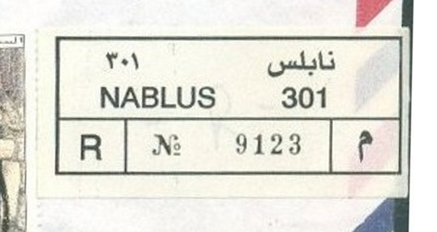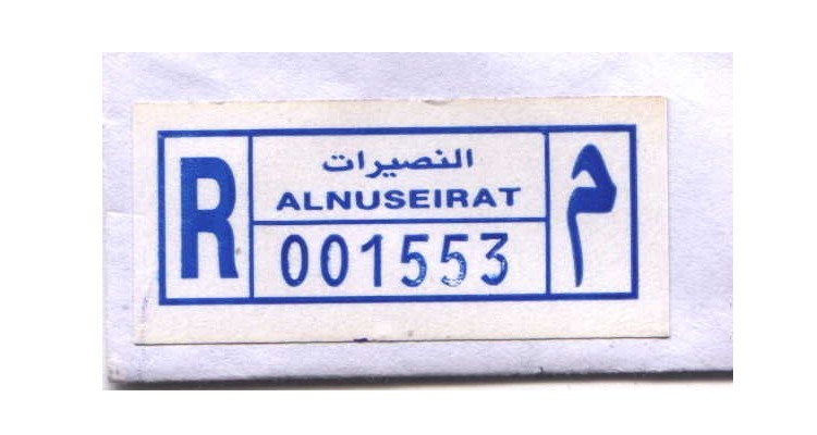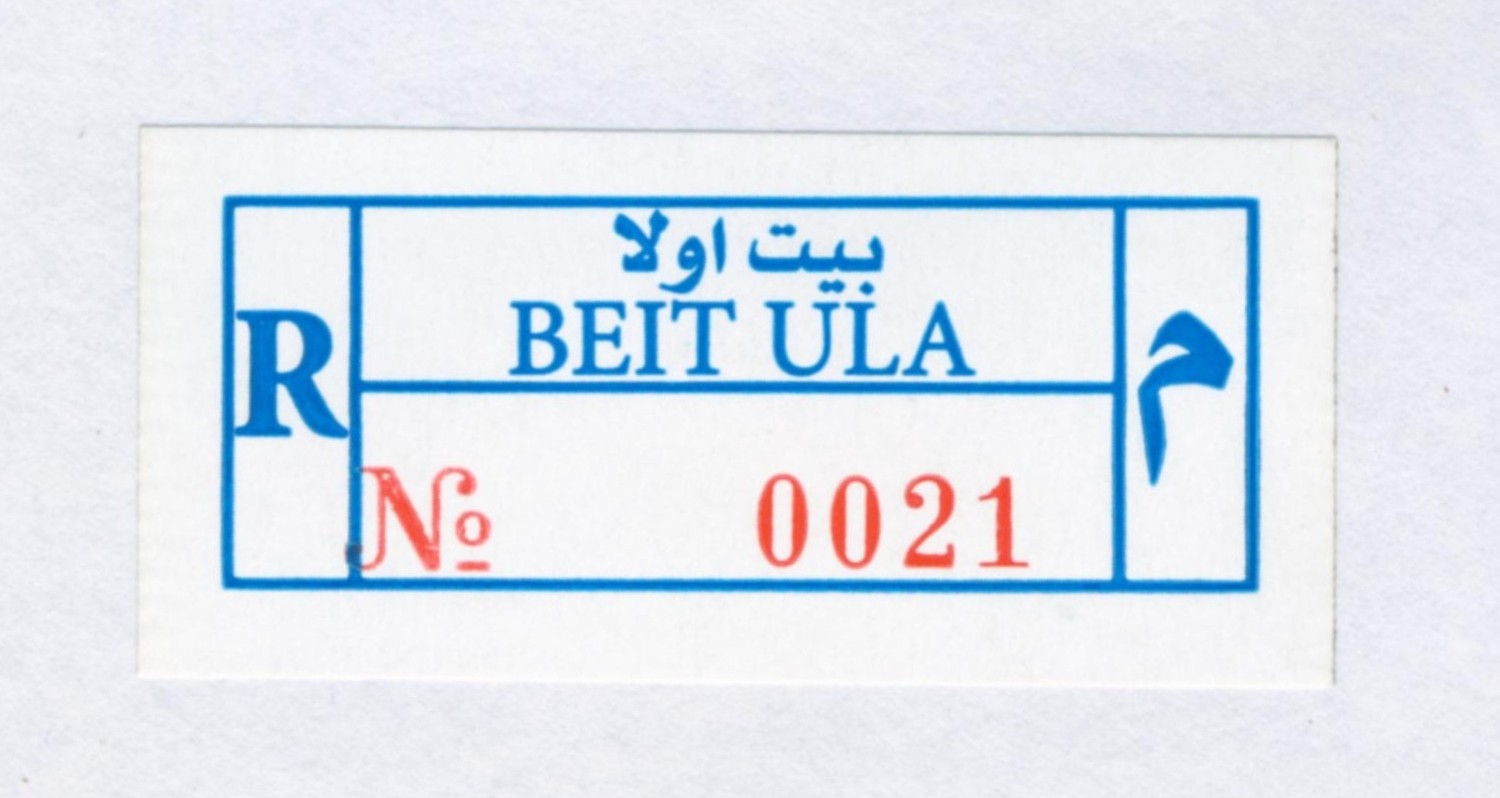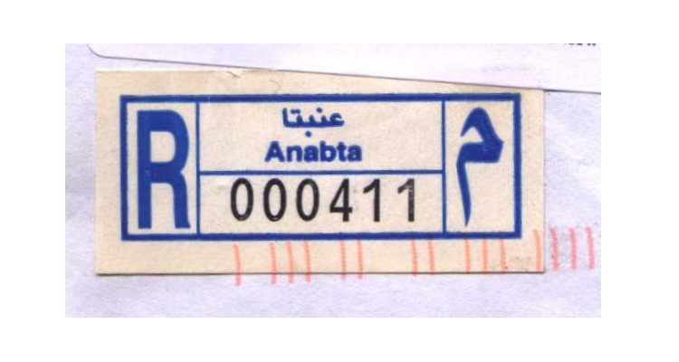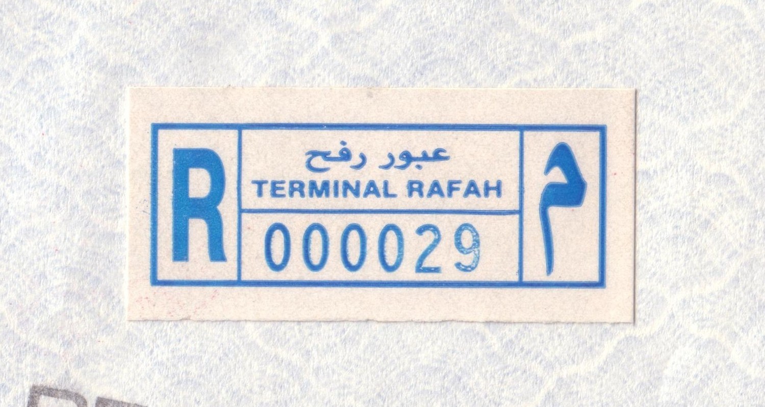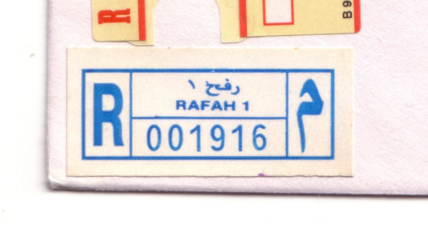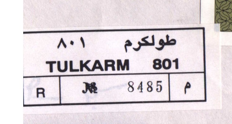 During 2012 the new North Valleys office at Ein-el-Beida used photocopied B4-like strips, marked manually (type B5). In Gaza, the old labels of types B1 and B2x remained in use. After the 2008/2009 Israeli attack on Gaza, labels from damaged offices are used in offices still operating or after re-opening.