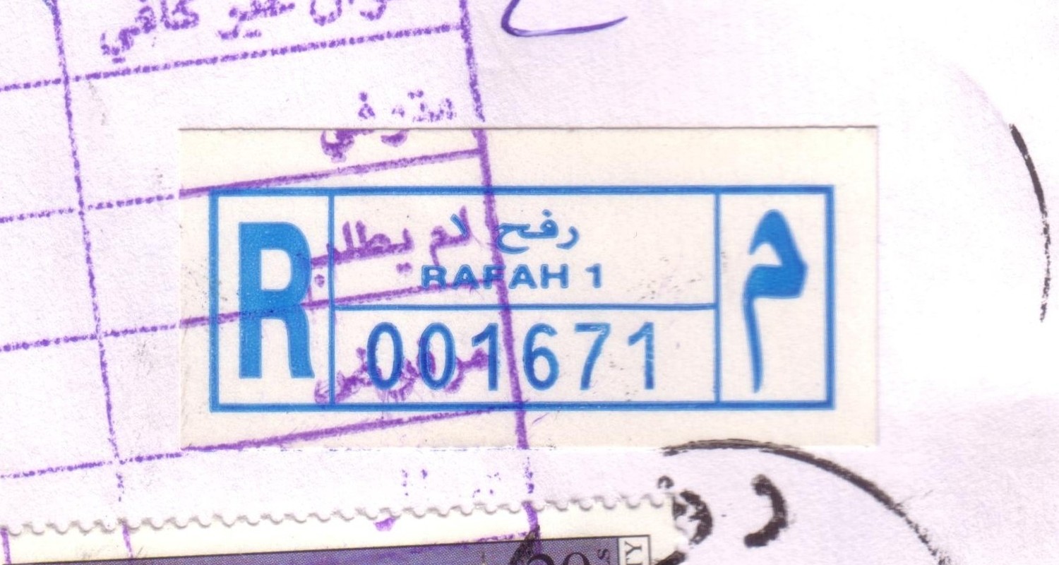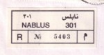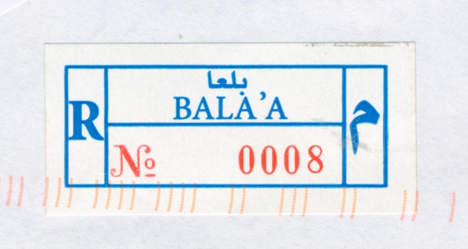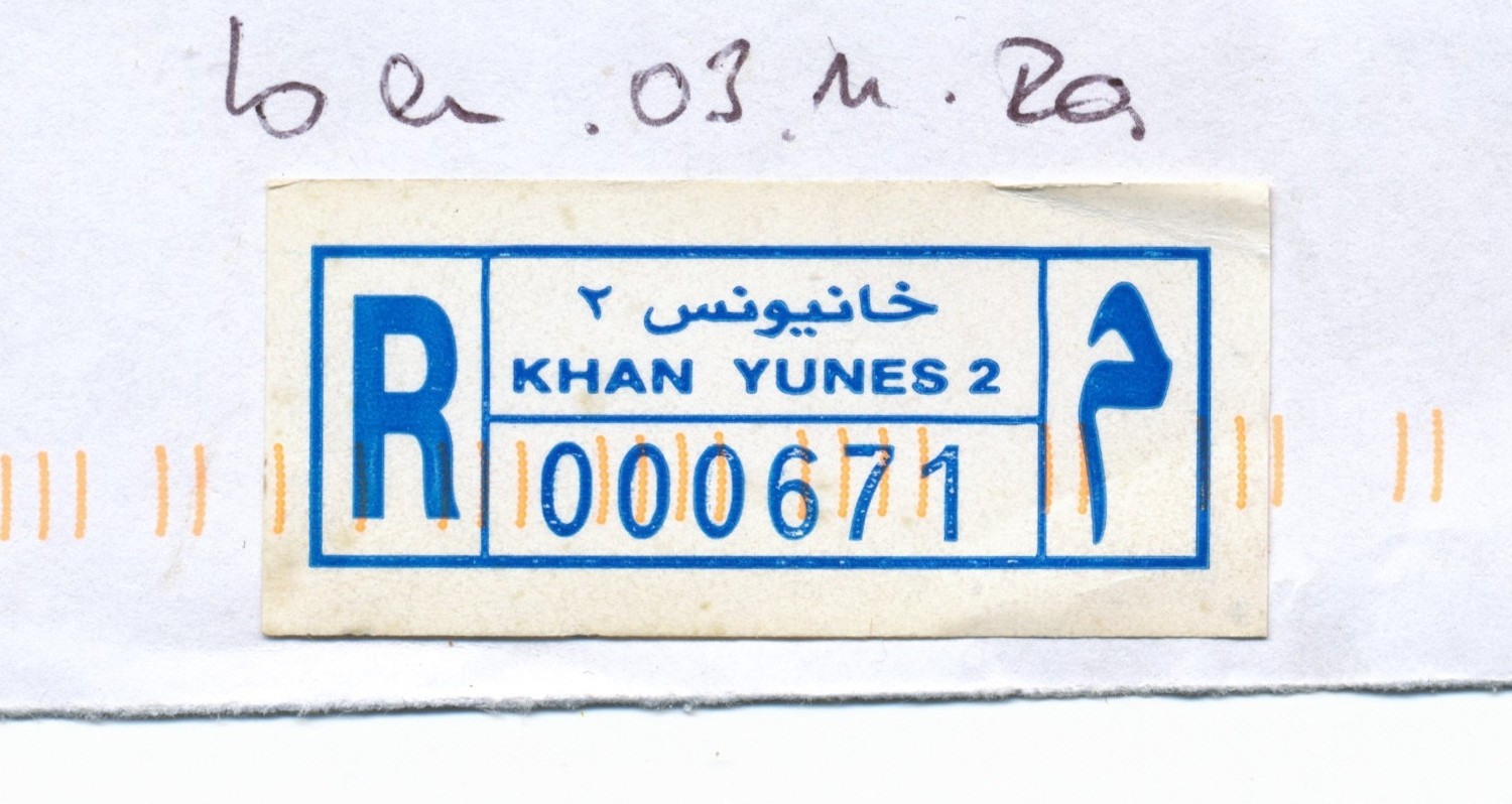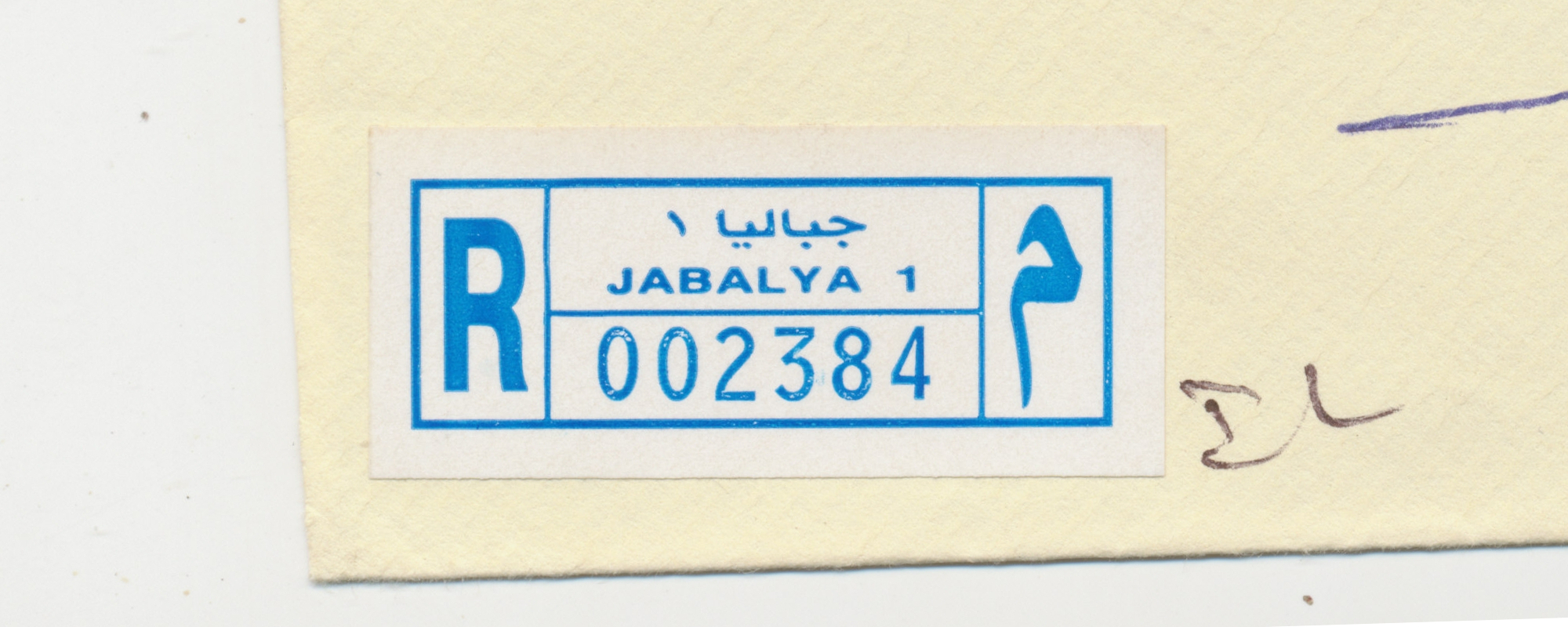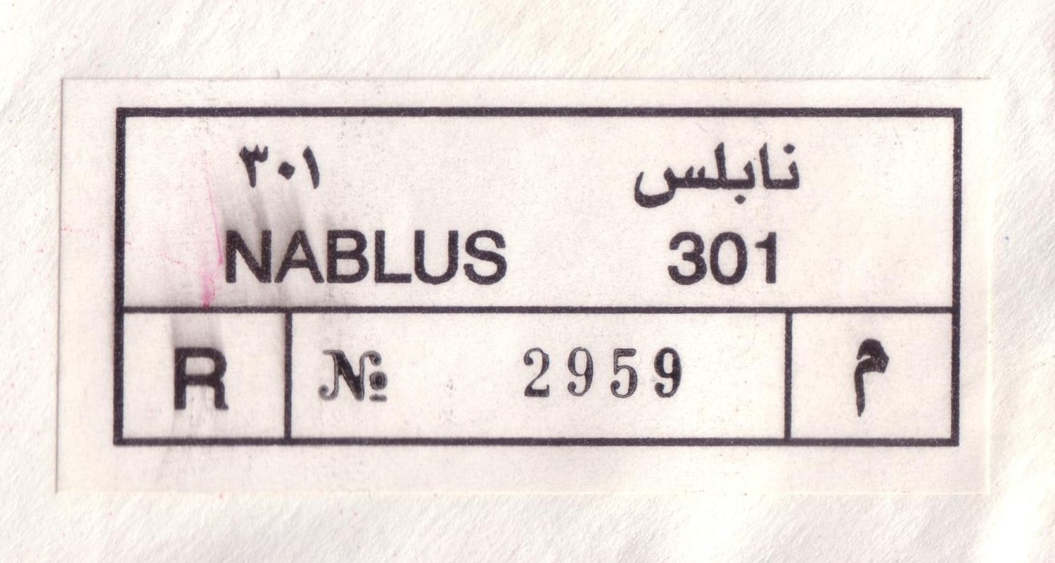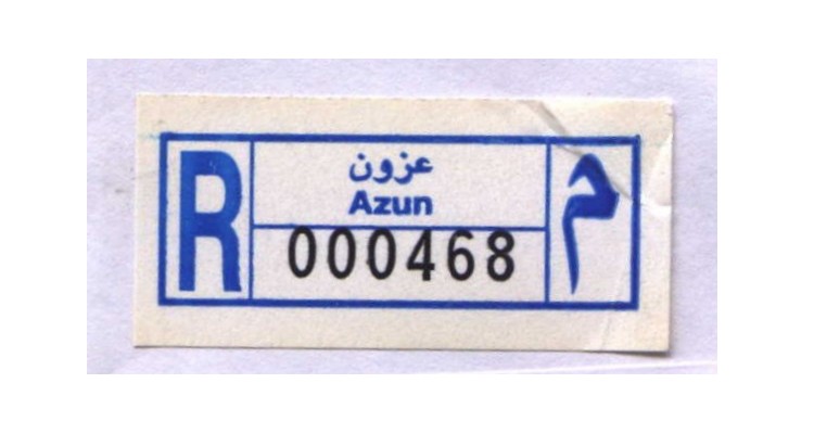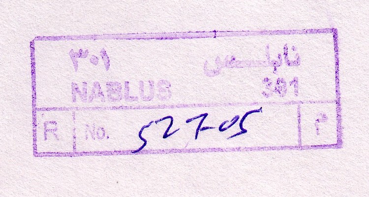 During 2012 the new North Valleys office at Ein-el-Beida used photocopied B4-like strips, marked manually (type B5). In Gaza, the old labels of types B1 and B2x remained in use. After the 2008/2009 Israeli attack on Gaza, labels from damaged offices are used in offices still operating or after re-opening.
