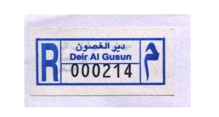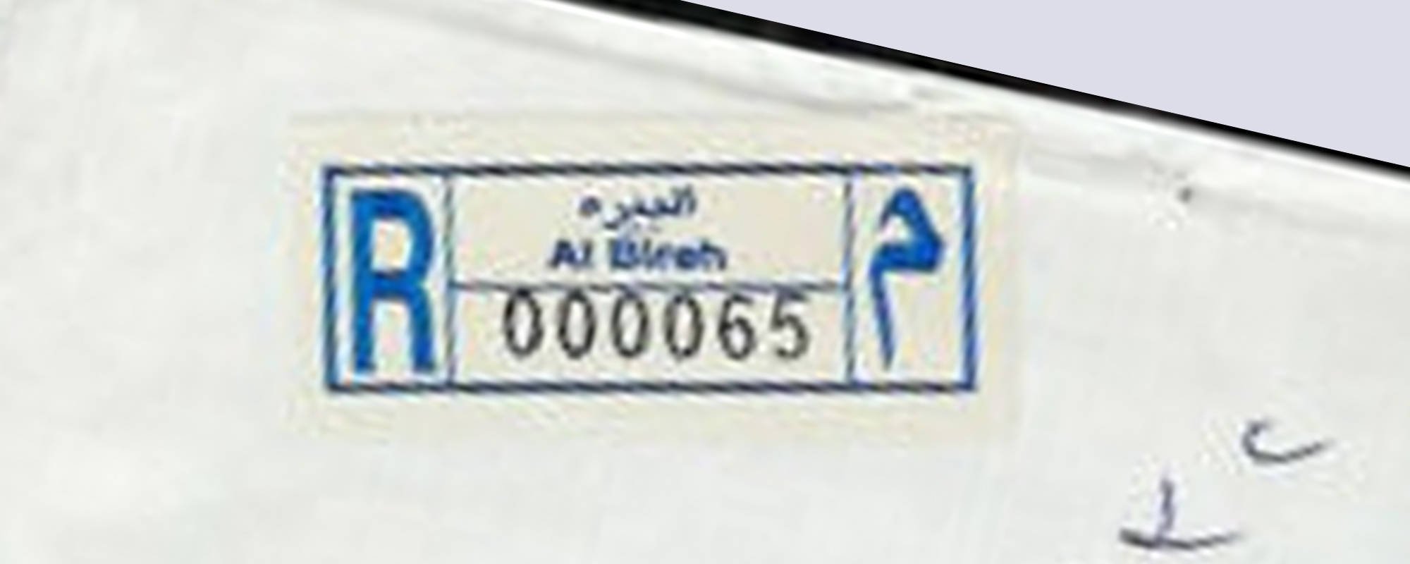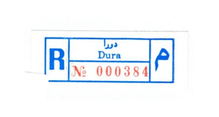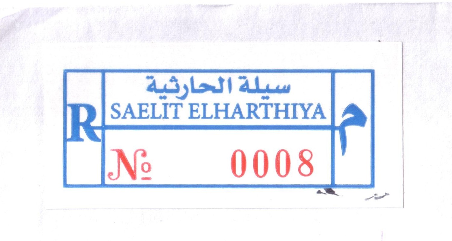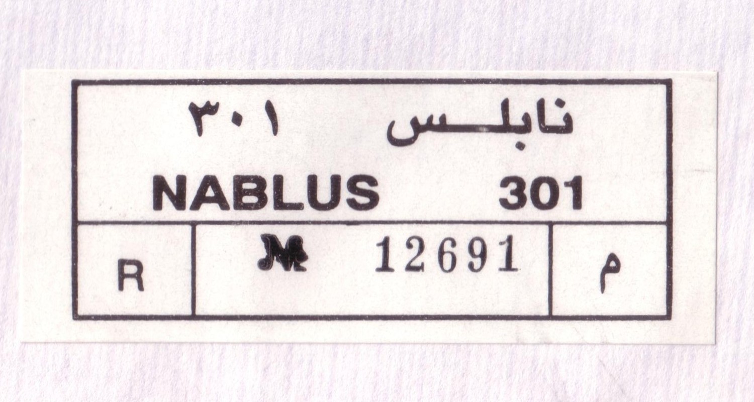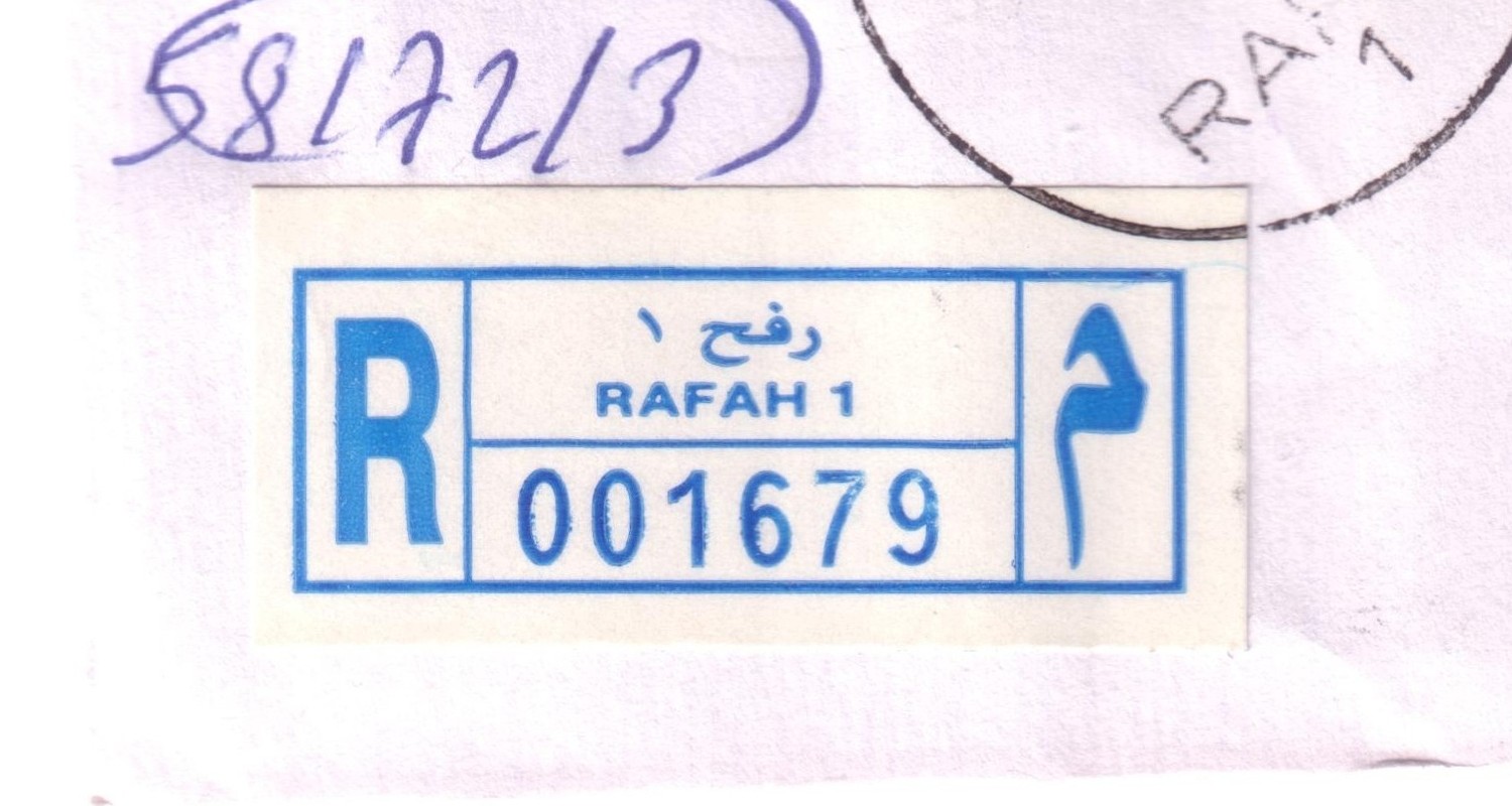 During 2012 the new North Valleys office at Ein-el-Beida used photocopied B4-like strips, marked manually (type B5). In Gaza, the old labels of types B1 and B2x remained in use. After the 2008/2009 Israeli attack on Gaza, labels from damaged offices are used in offices still operating or after re-opening.