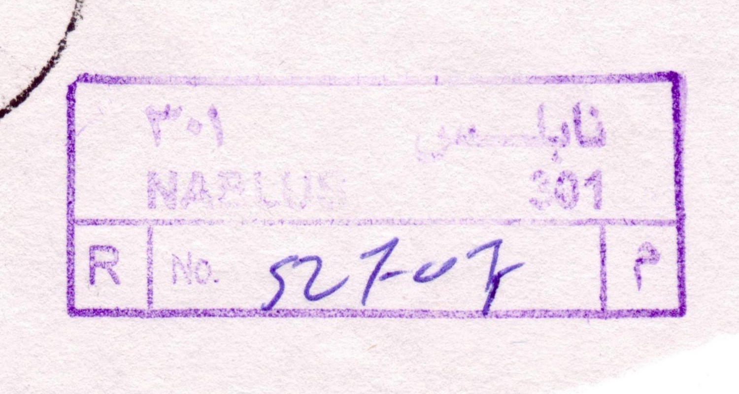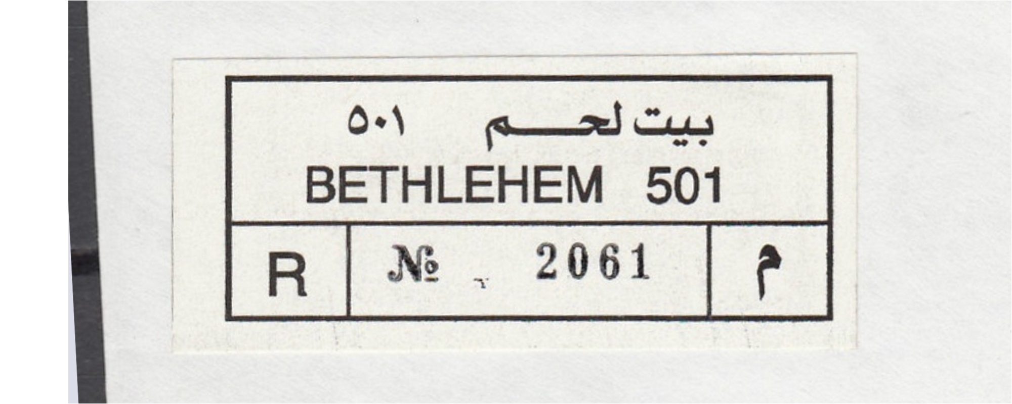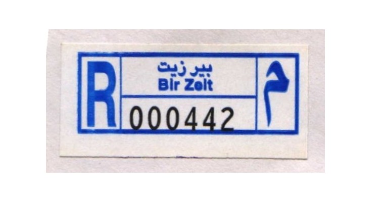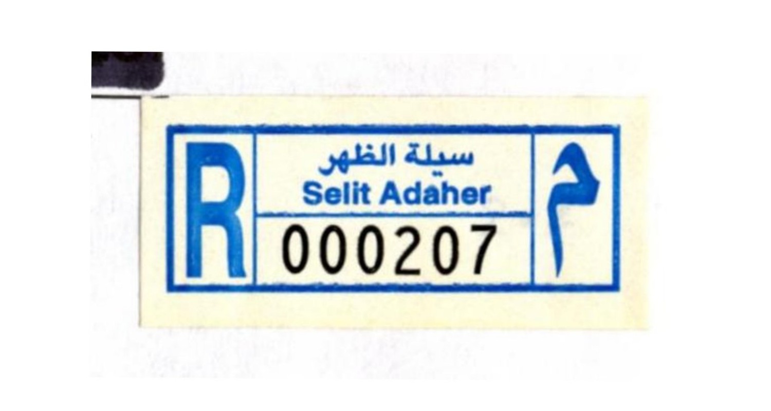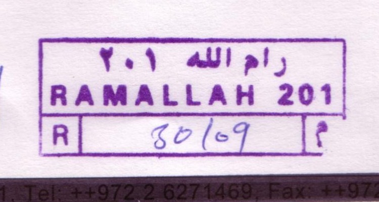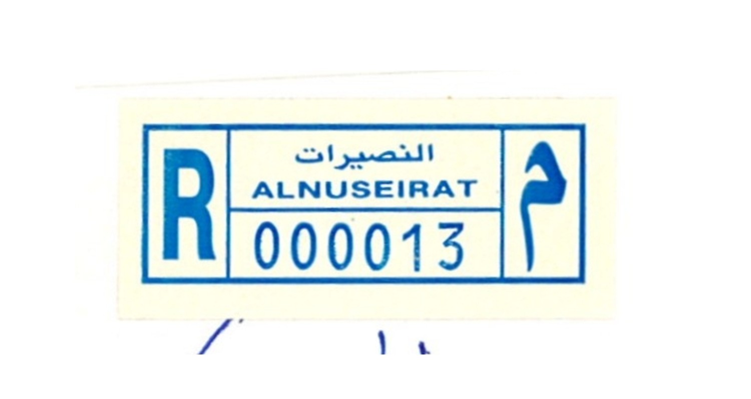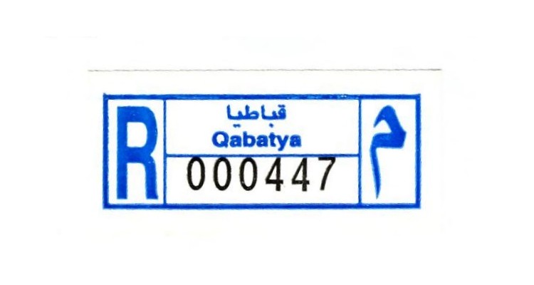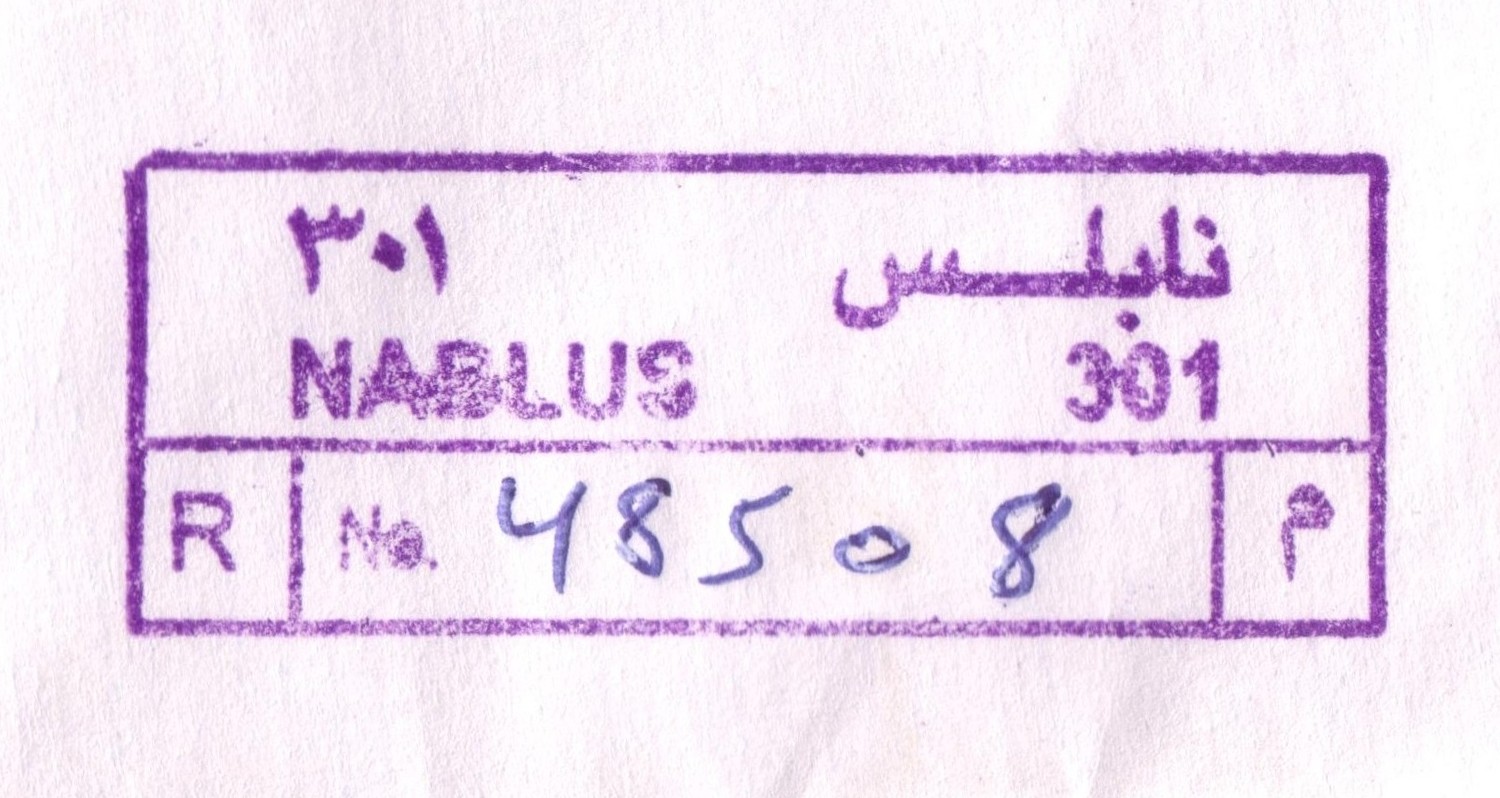 During 2012 the new North Valleys office at Ein-el-Beida used photocopied B4-like strips, marked manually (type B5). In Gaza, the old labels of types B1 and B2x remained in use. After the 2008/2009 Israeli attack on Gaza, labels from damaged offices are used in offices still operating or after re-opening.