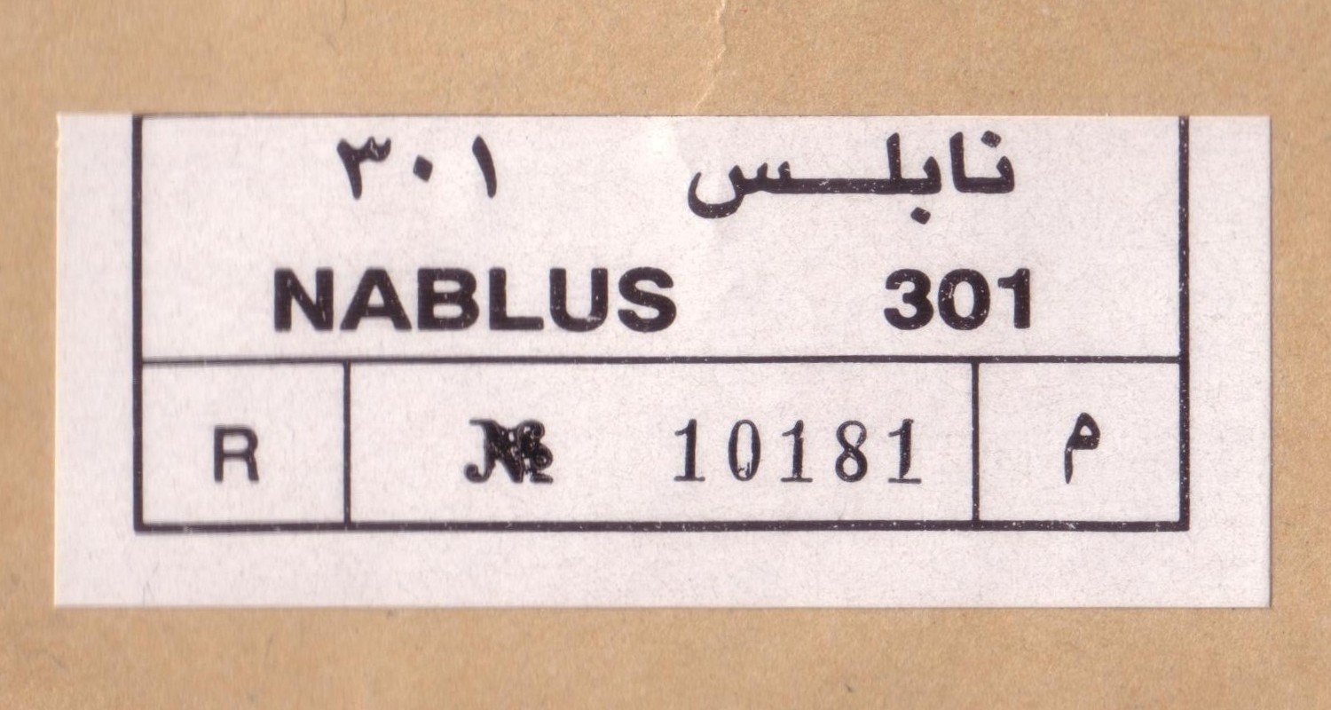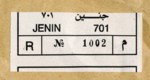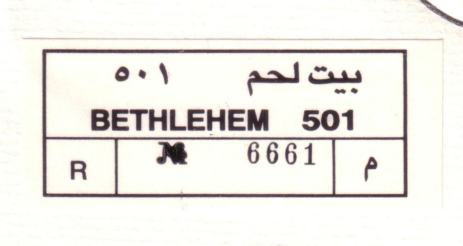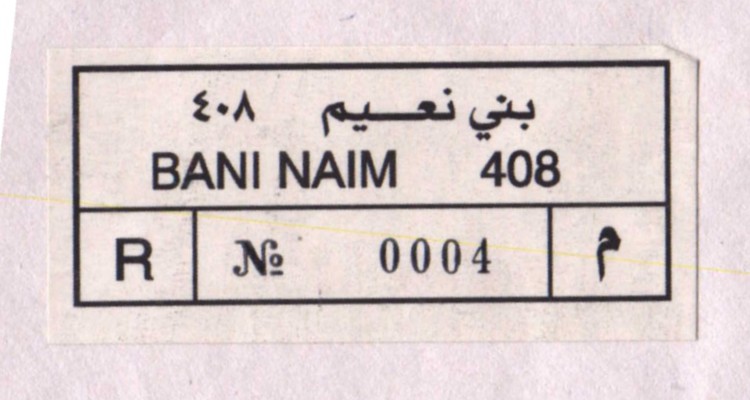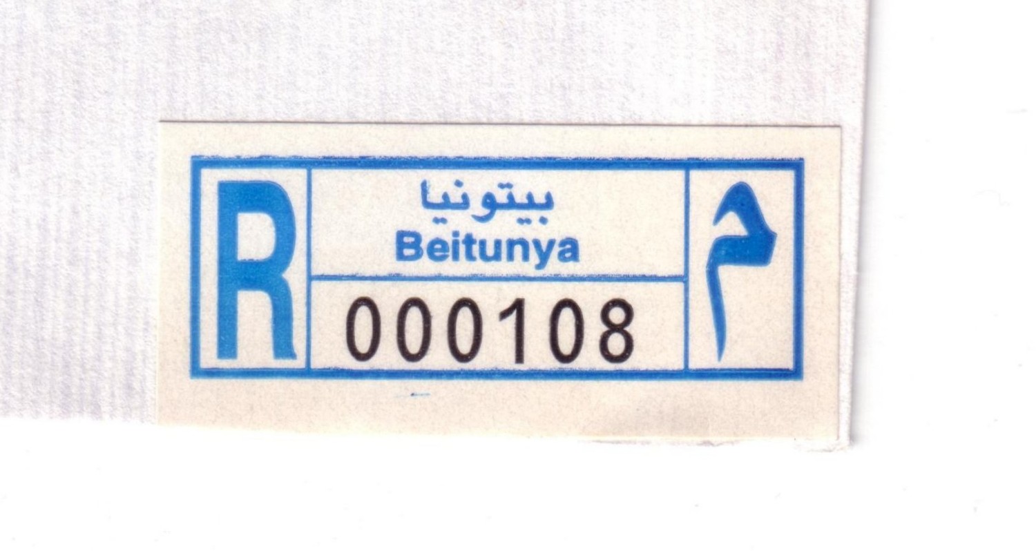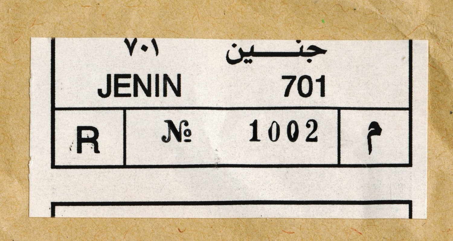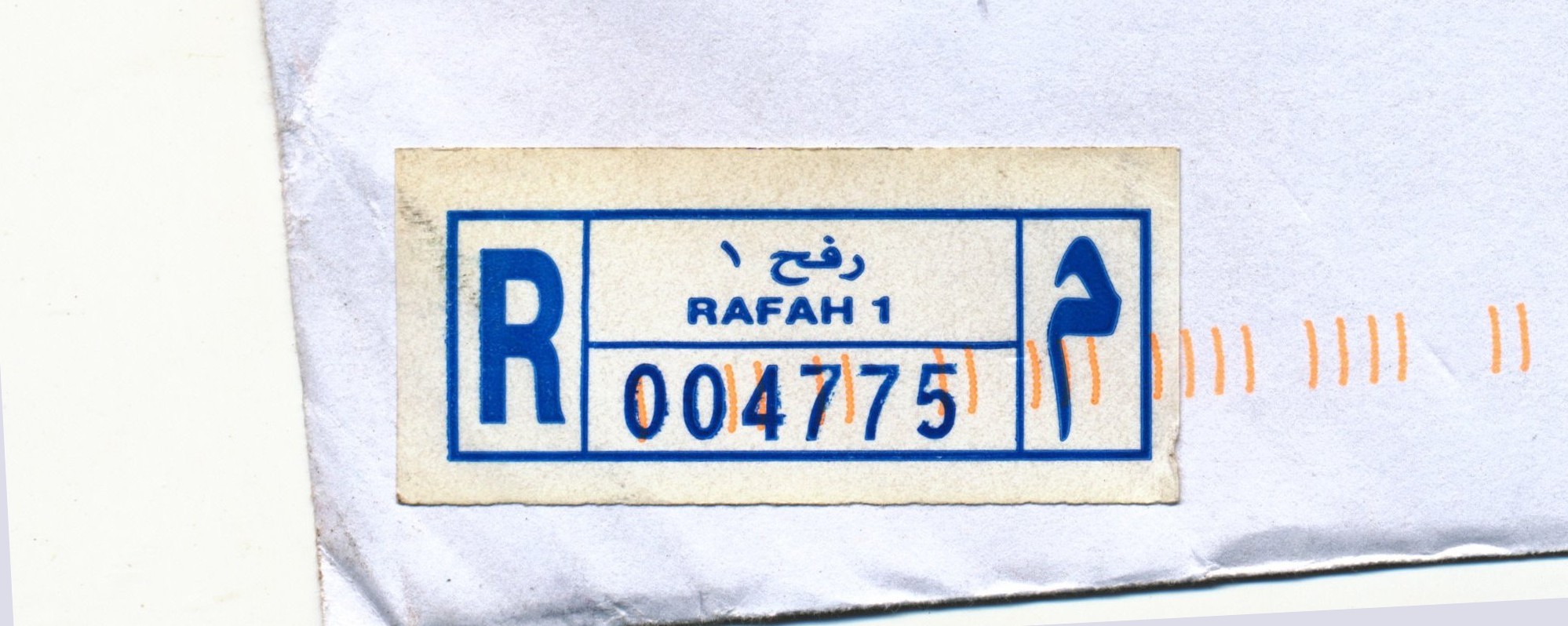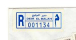 During 2012 the new North Valleys office at Ein-el-Beida used photocopied B4-like strips, marked manually (type B5). In Gaza, the old labels of types B1 and B2x remained in use. After the 2008/2009 Israeli attack on Gaza, labels from damaged offices are used in offices still operating or after re-opening.