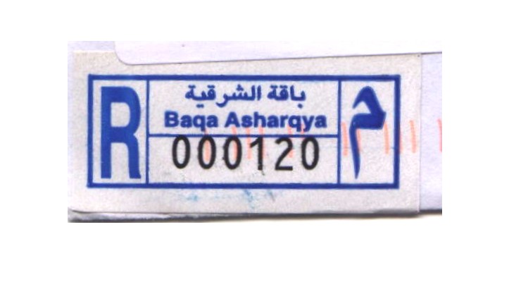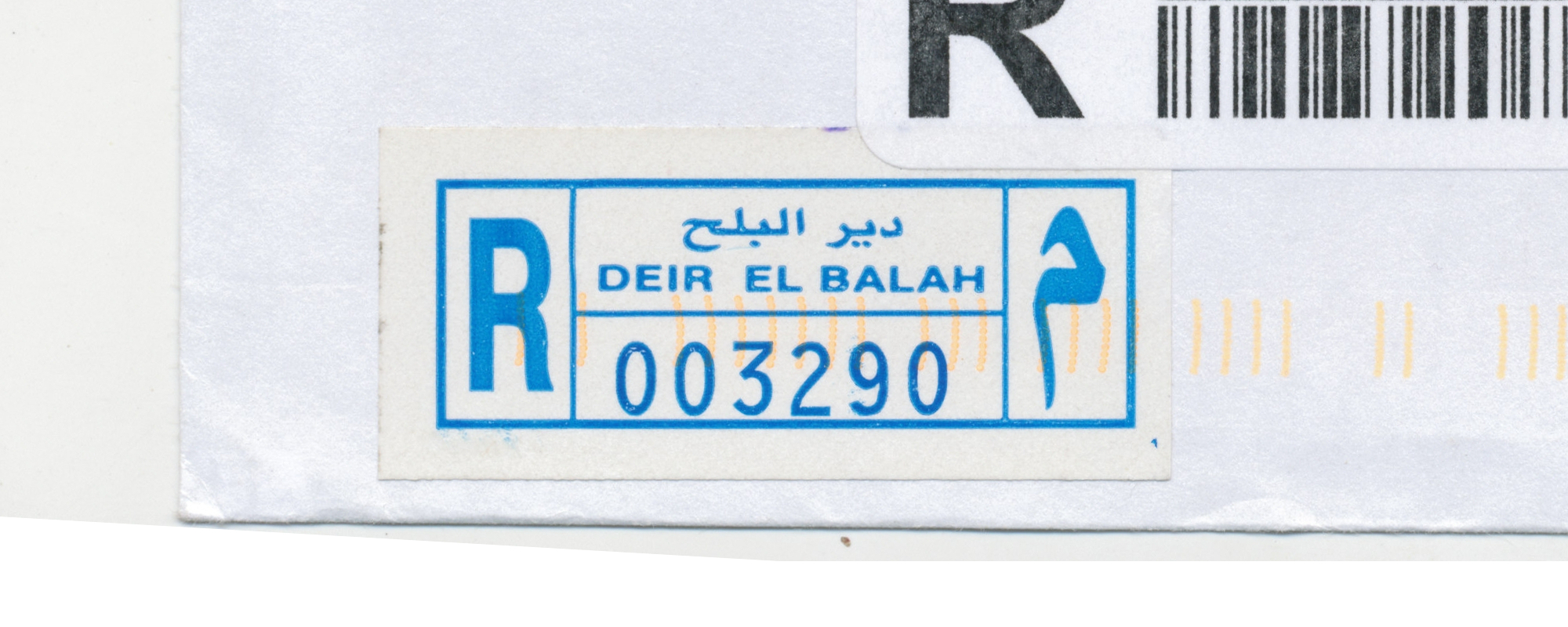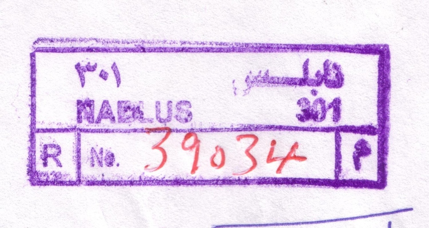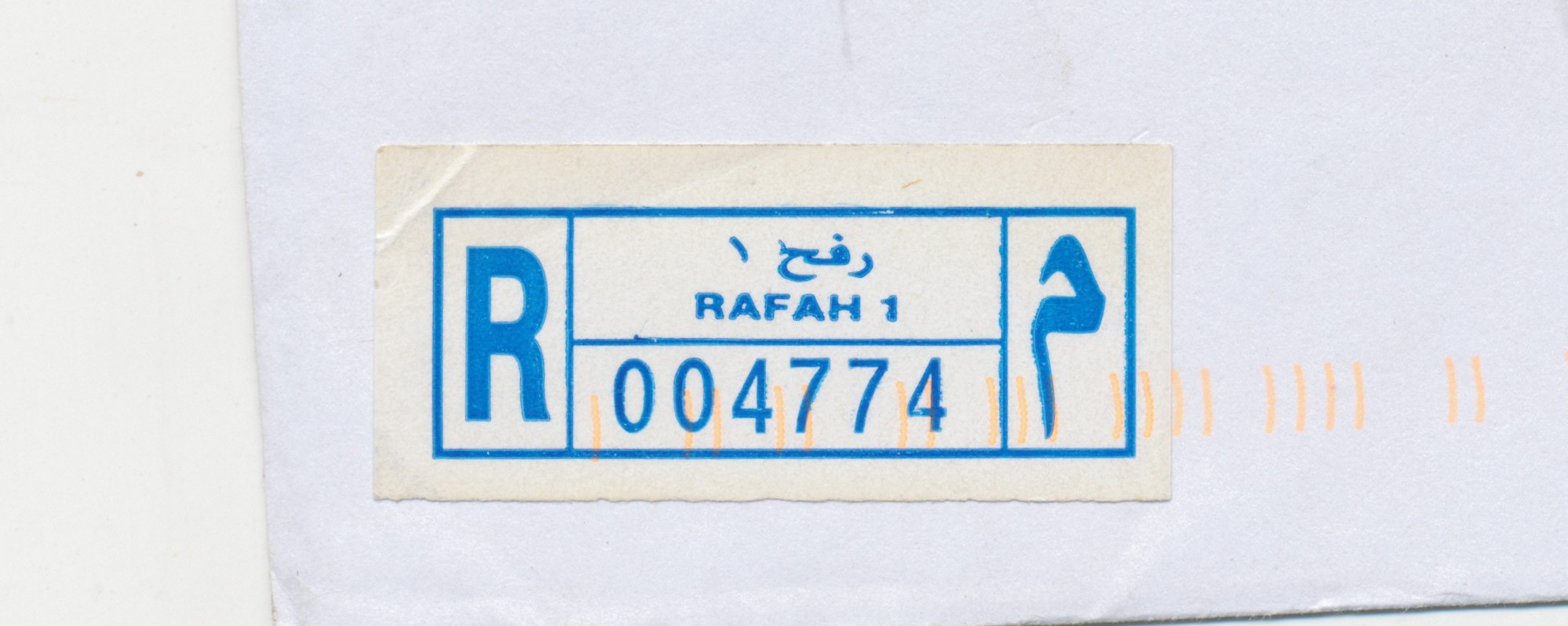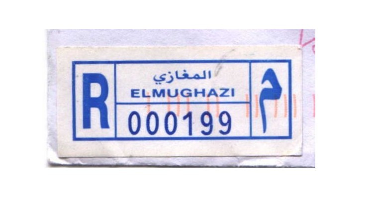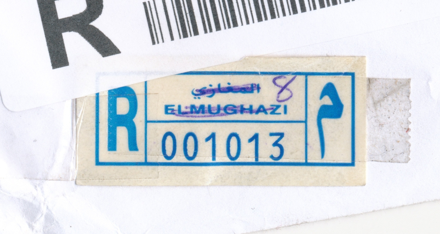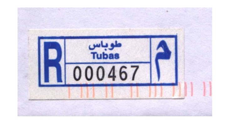 During 2012 the new North Valleys office at Ein-el-Beida used photocopied B4-like strips, marked manually (type B5). In Gaza, the old labels of types B1 and B2x remained in use. After the 2008/2009 Israeli attack on Gaza, labels from damaged offices are used in offices still operating or after re-opening.