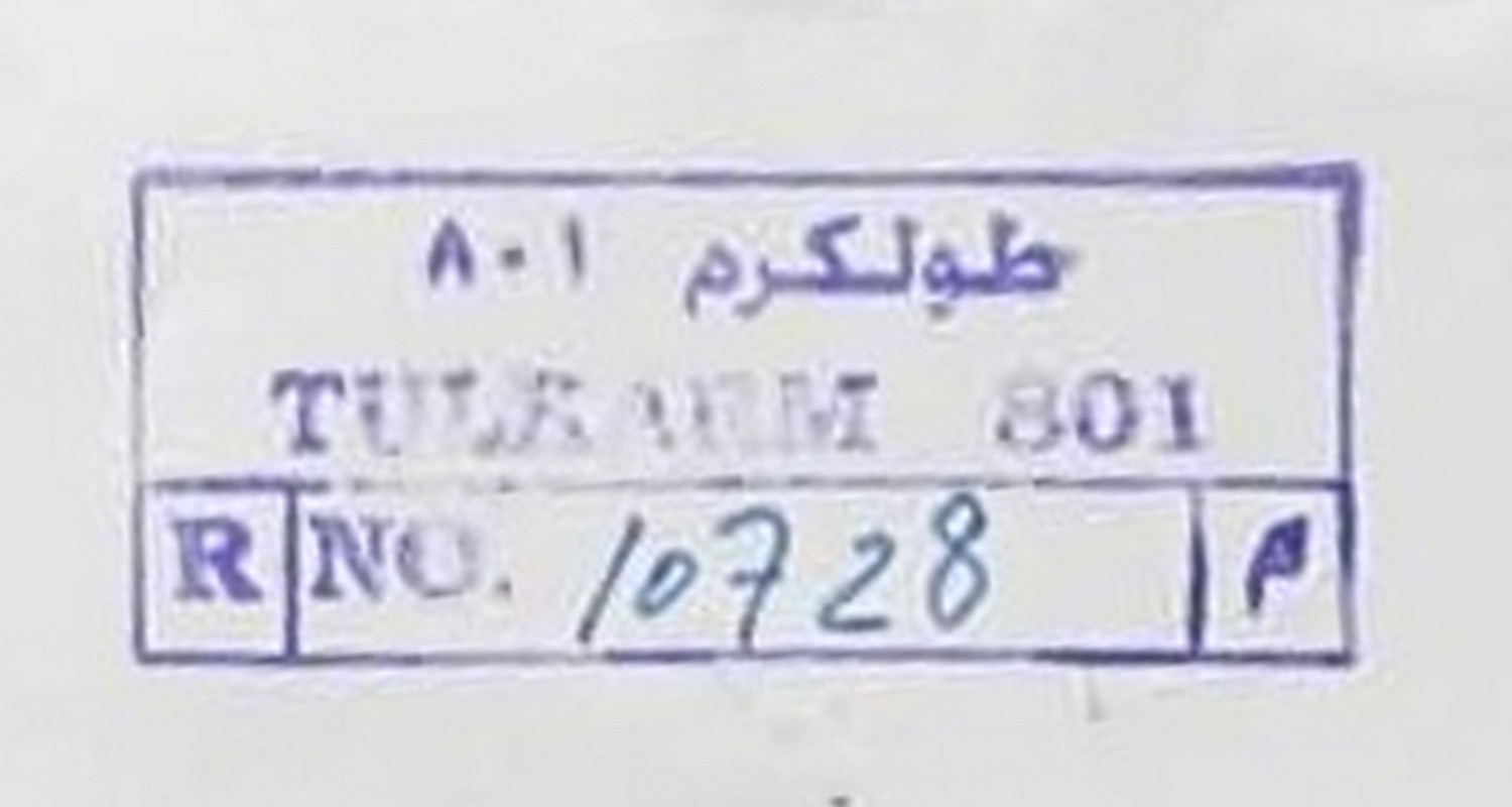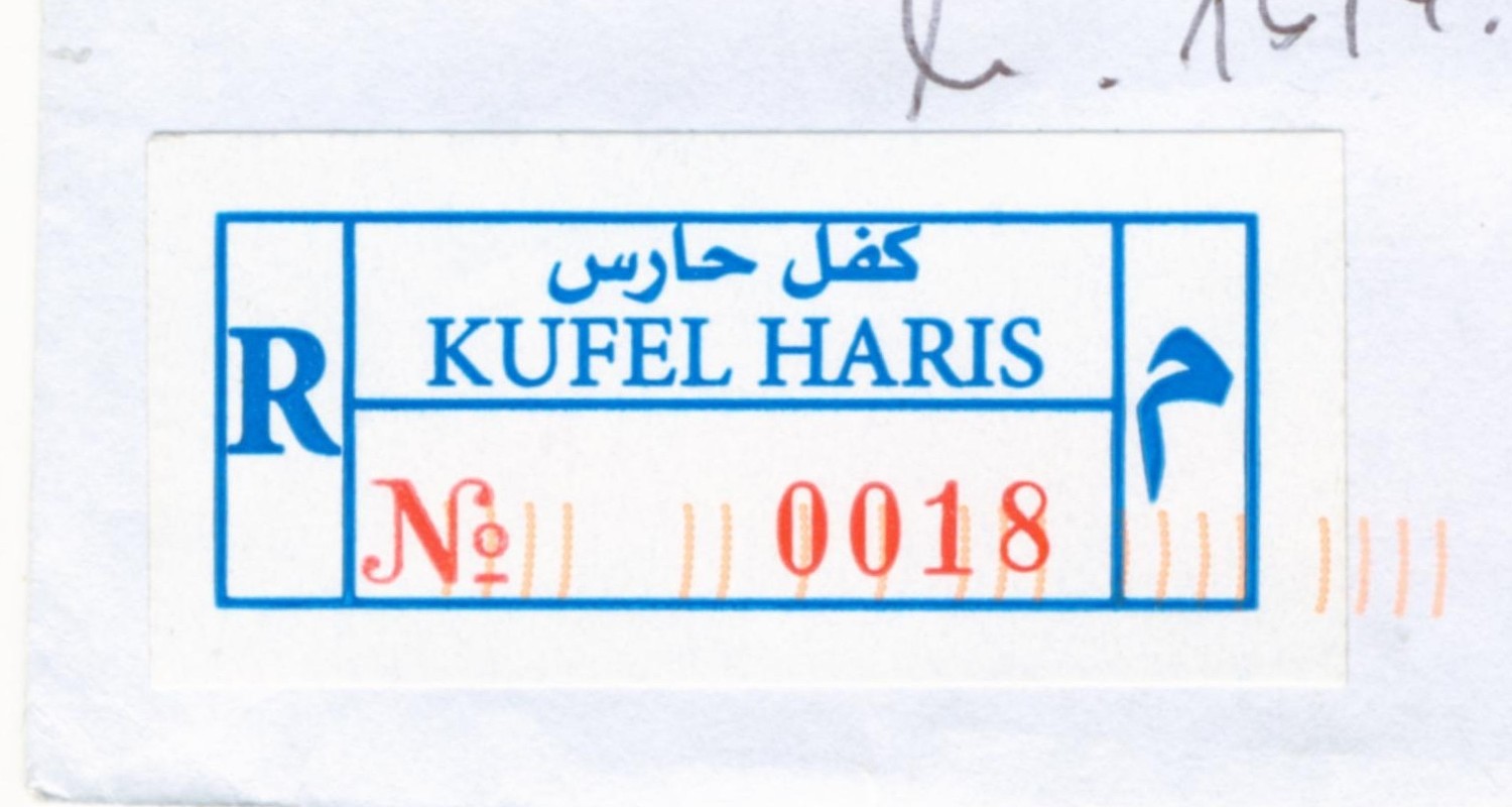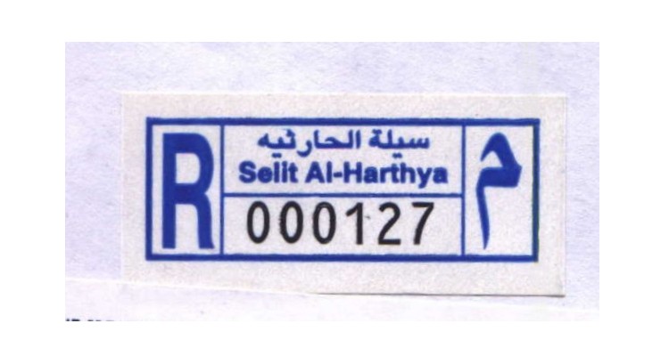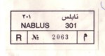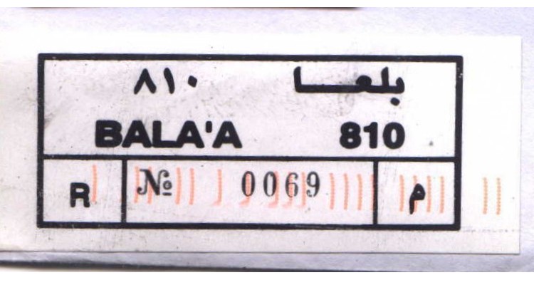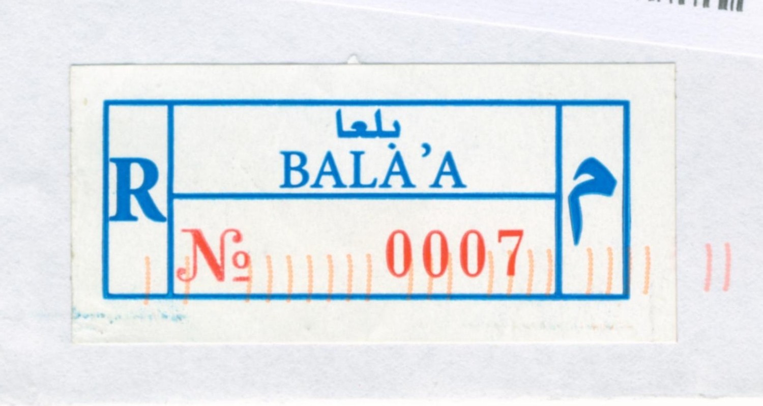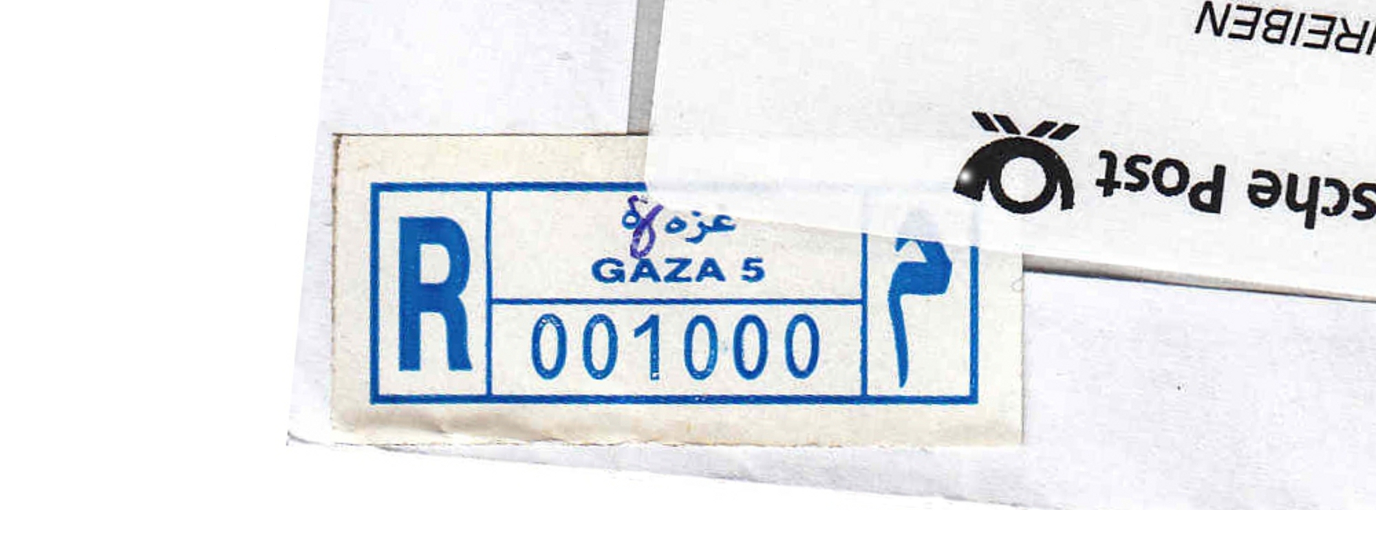 During 2012 the new North Valleys office at Ein-el-Beida used photocopied B4-like strips, marked manually (type B5). In Gaza, the old labels of types B1 and B2x remained in use. After the 2008/2009 Israeli attack on Gaza, labels from damaged offices are used in offices still operating or after re-opening.
