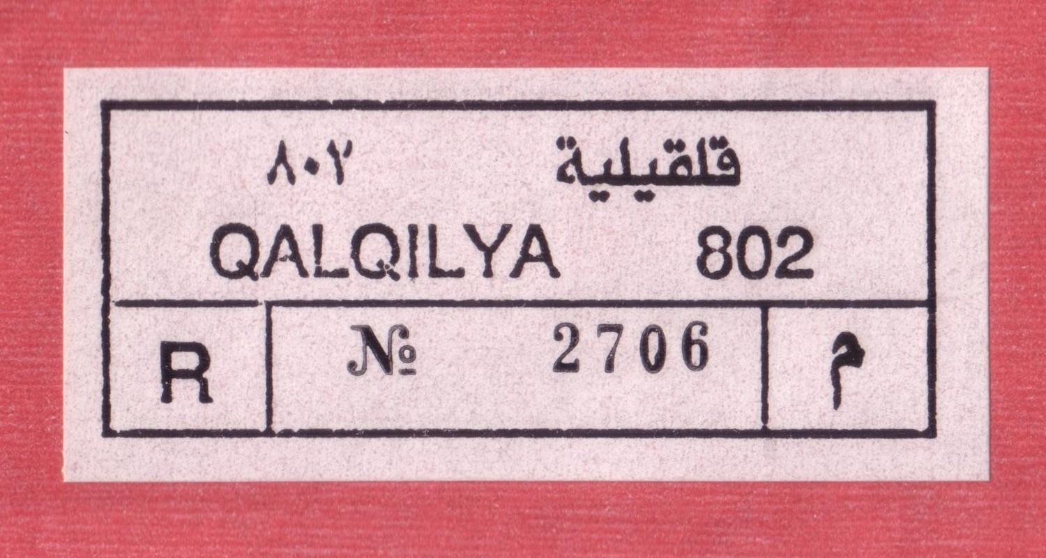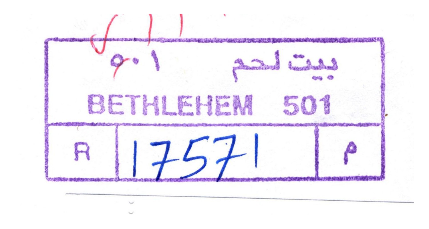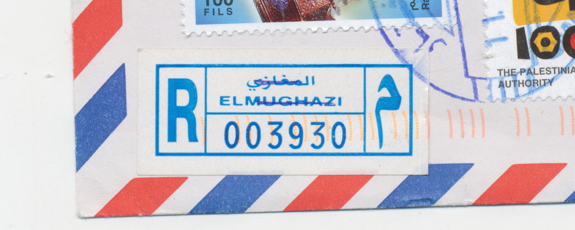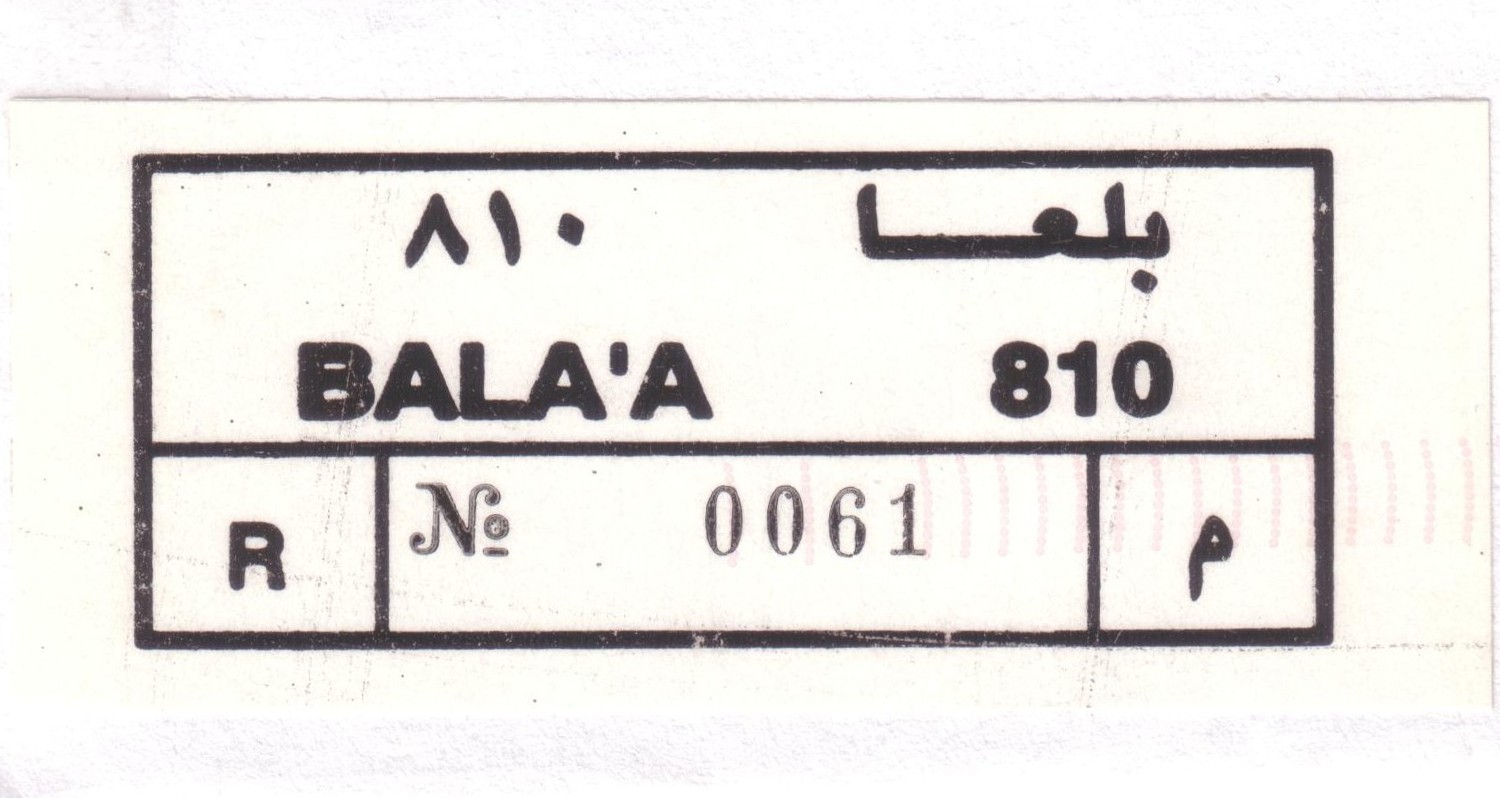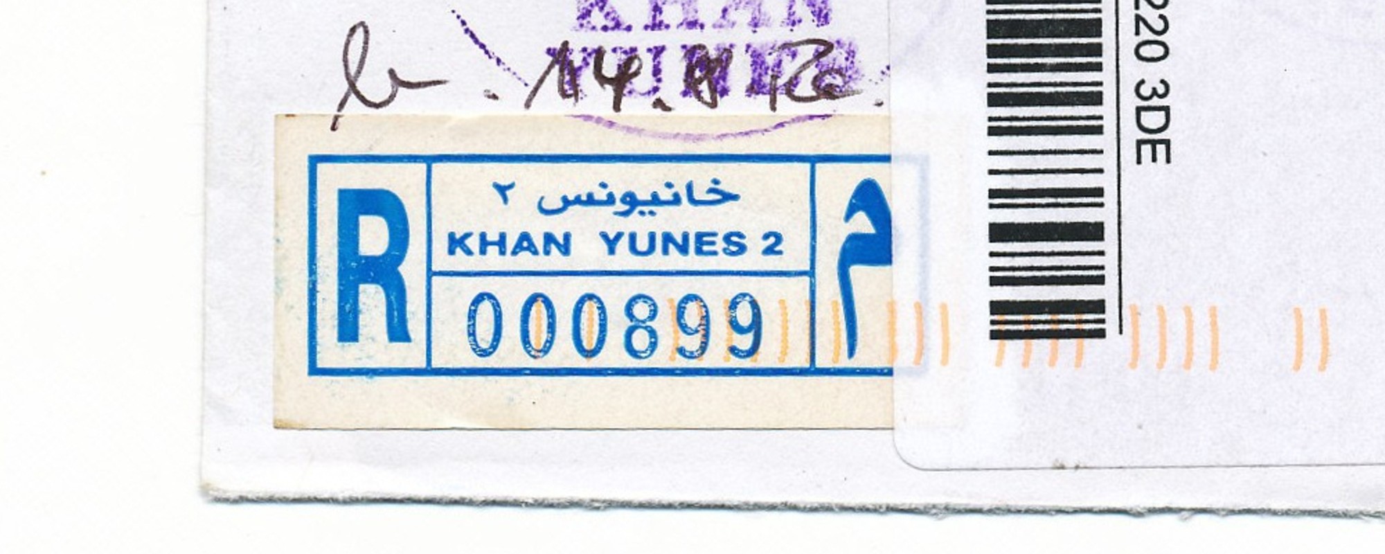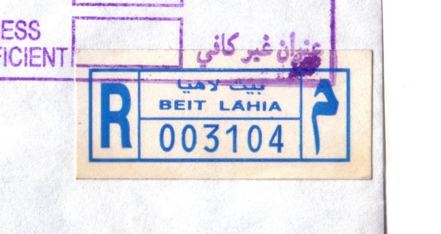 During 2012 the new North Valleys office at Ein-el-Beida used photocopied B4-like strips, marked manually (type B5). In Gaza, the old labels of types B1 and B2x remained in use. After the 2008/2009 Israeli attack on Gaza, labels from damaged offices are used in offices still operating or after re-opening.