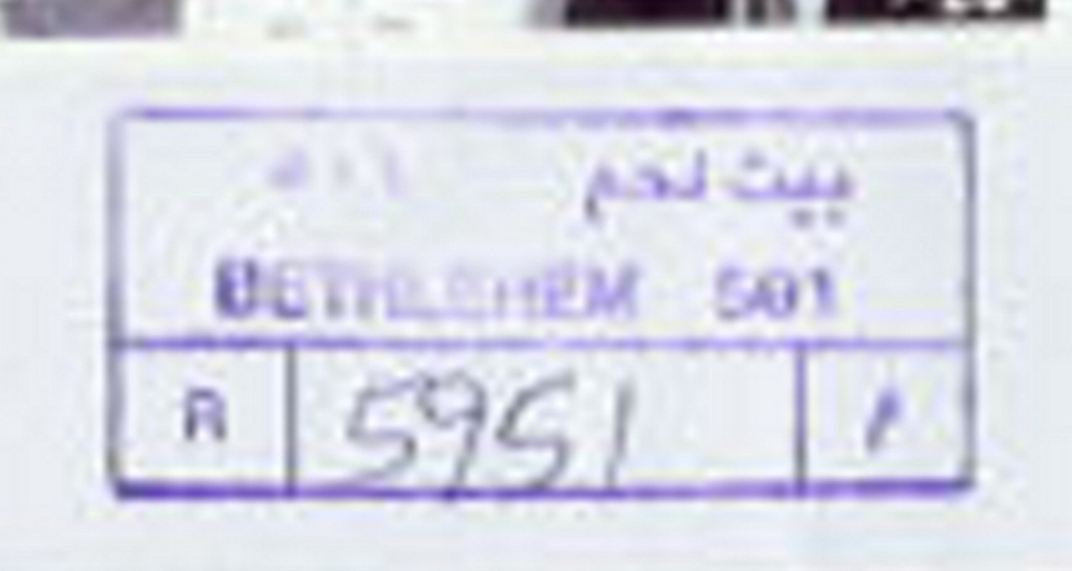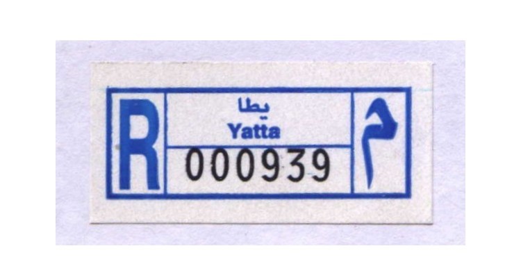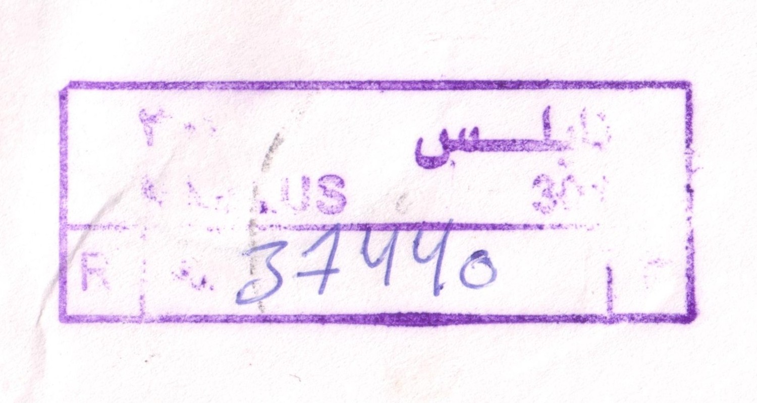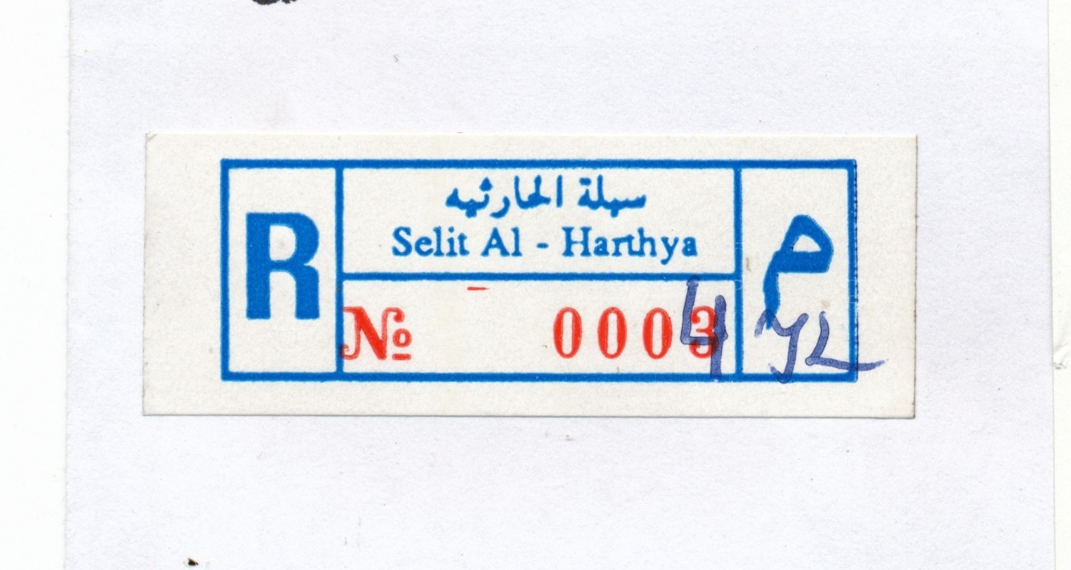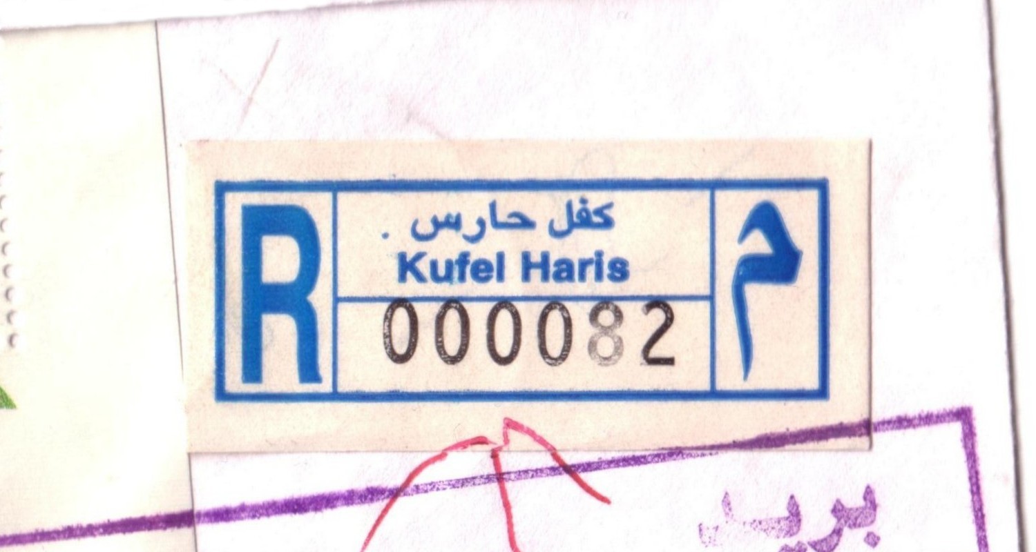 During 2012 the new North Valleys office at Ein-el-Beida used photocopied B4-like strips, marked manually (type B5). In Gaza, the old labels of types B1 and B2x remained in use. After the 2008/2009 Israeli attack on Gaza, labels from damaged offices are used in offices still operating or after re-opening.