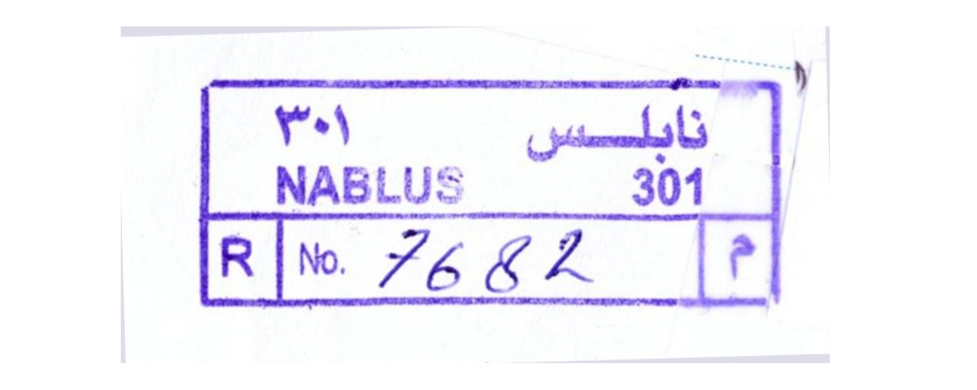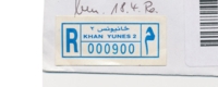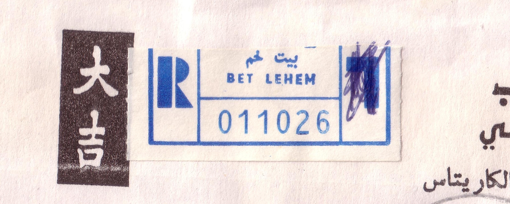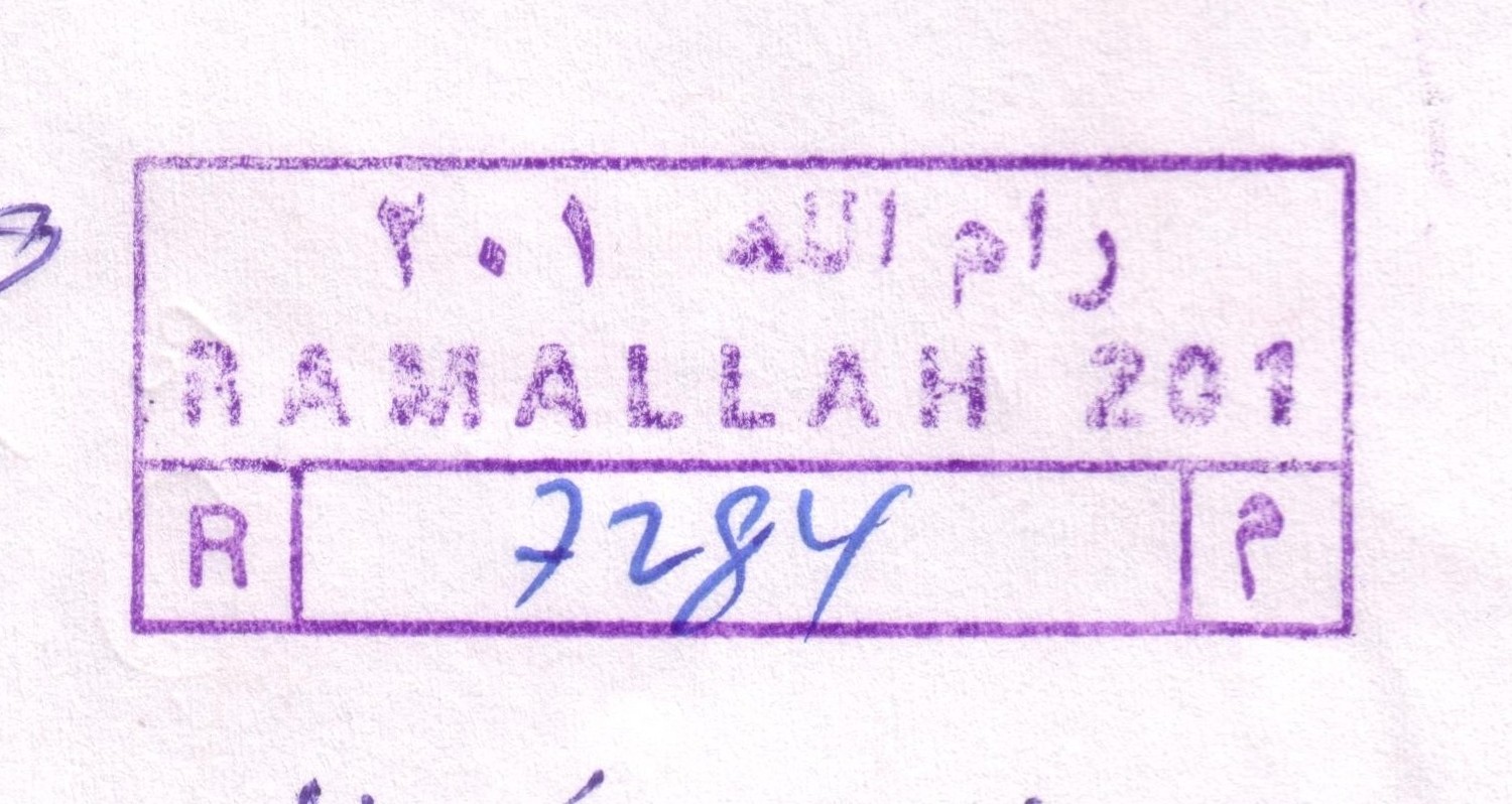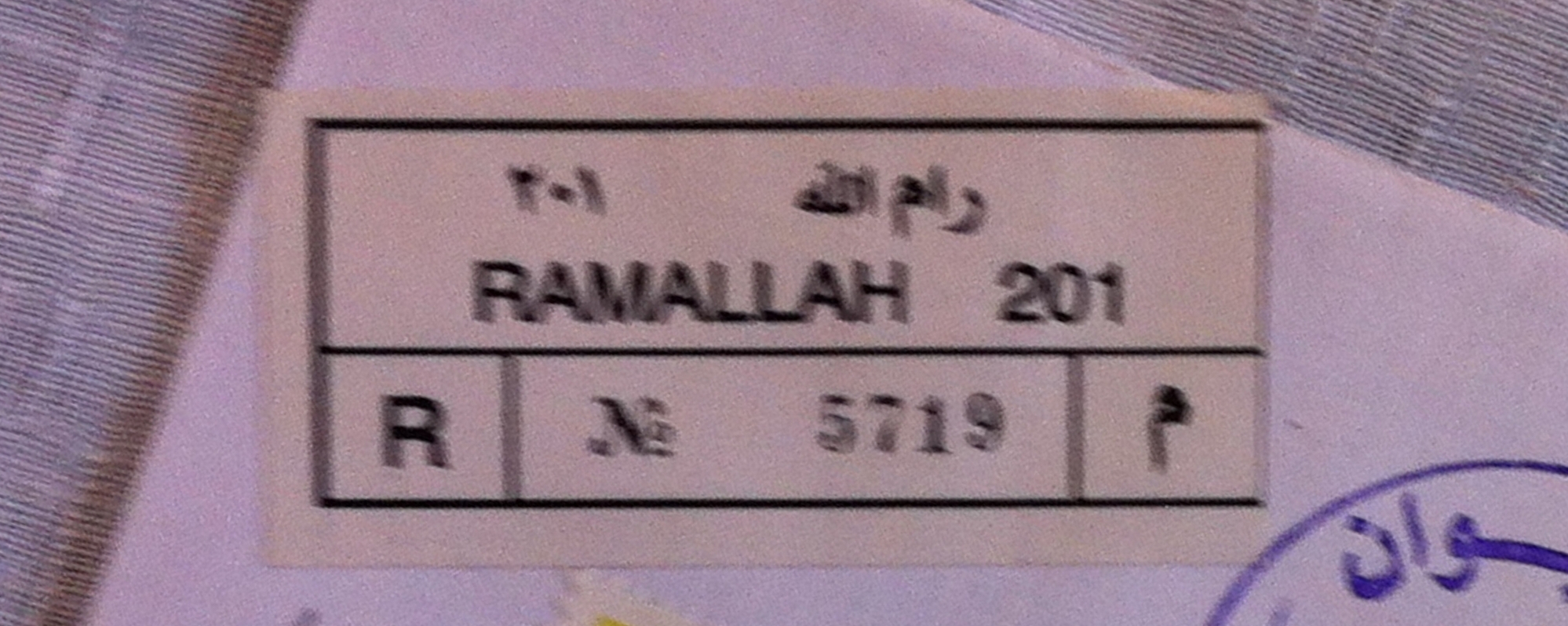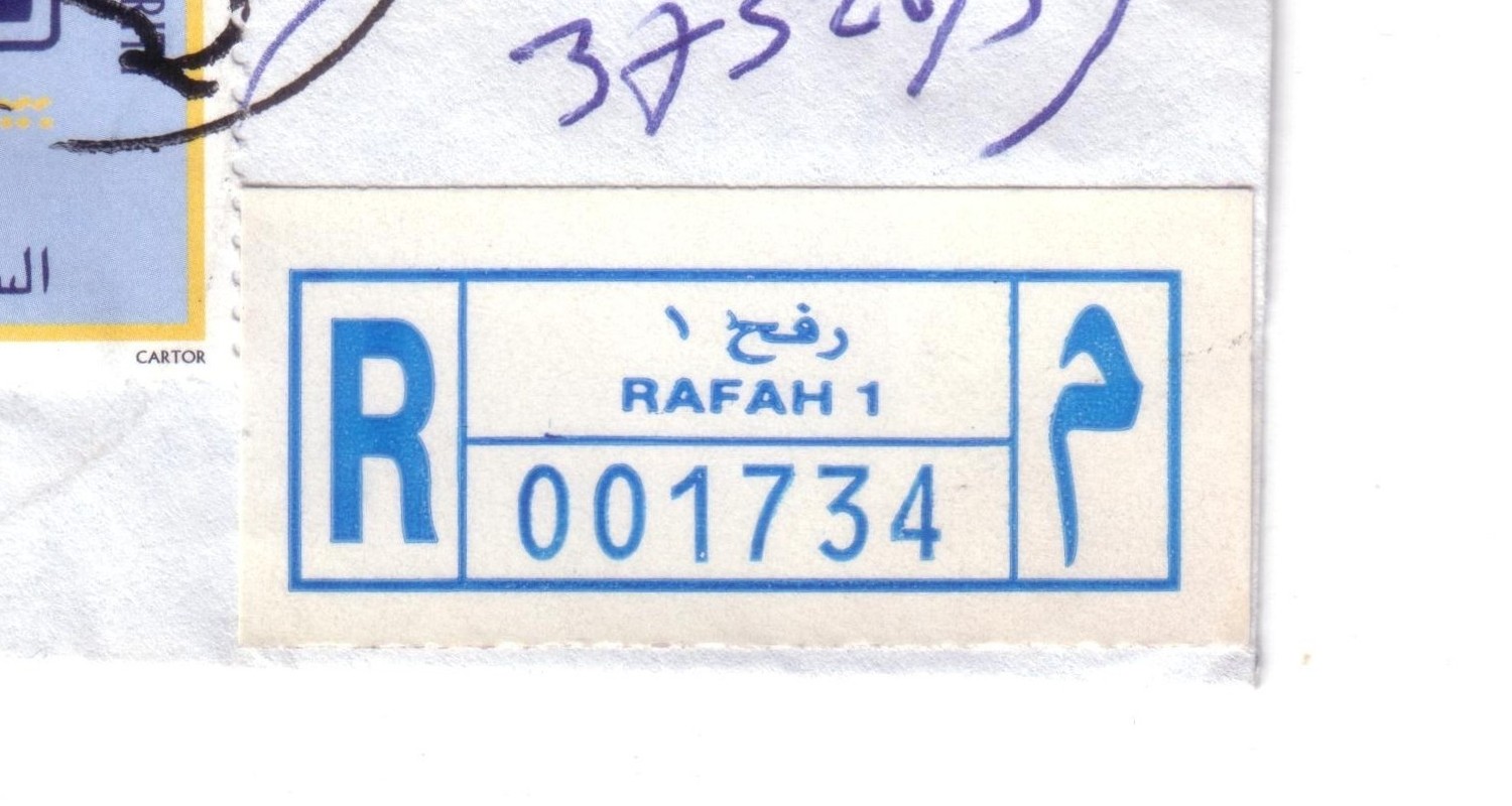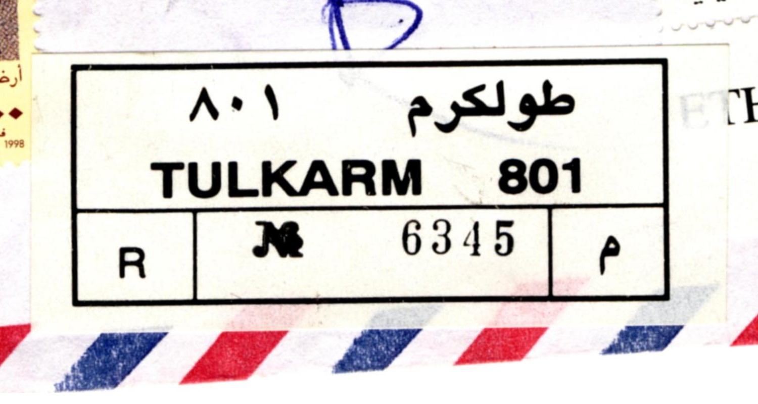 During 2012 the new North Valleys office at Ein-el-Beida used photocopied B4-like strips, marked manually (type B5). In Gaza, the old labels of types B1 and B2x remained in use. After the 2008/2009 Israeli attack on Gaza, labels from damaged offices are used in offices still operating or after re-opening.