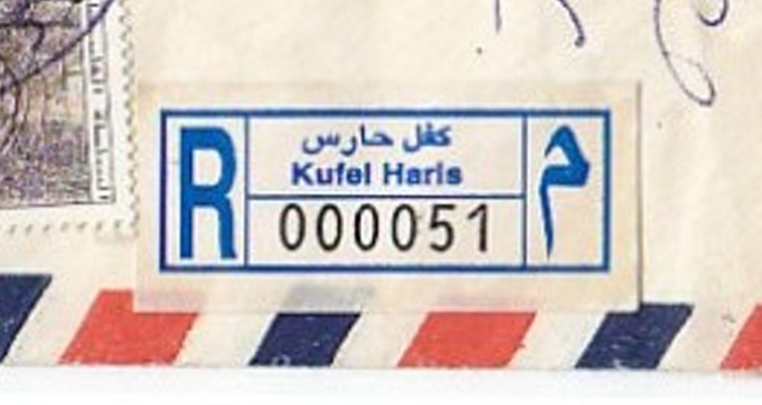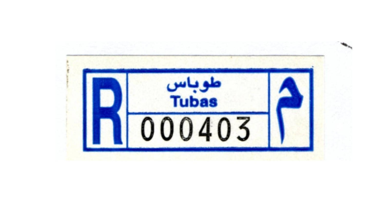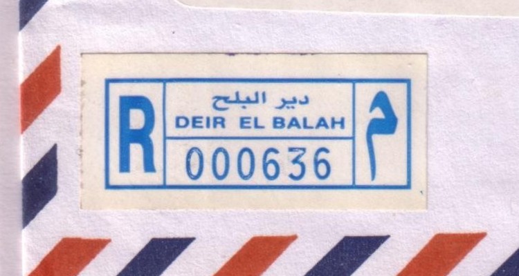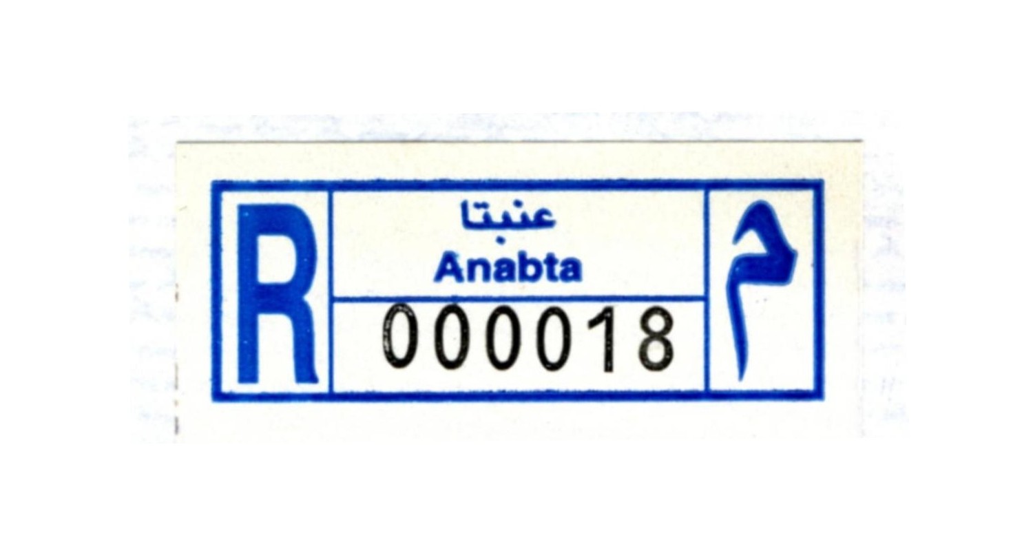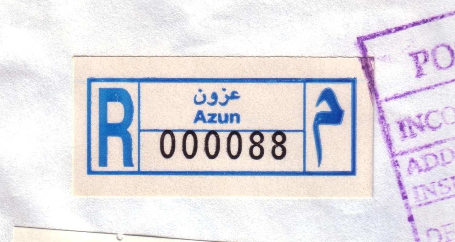 During 2012 the new North Valleys office at Ein-el-Beida used photocopied B4-like strips, marked manually (type B5). In Gaza, the old labels of types B1 and B2x remained in use. After the 2008/2009 Israeli attack on Gaza, labels from damaged offices are used in offices still operating or after re-opening.