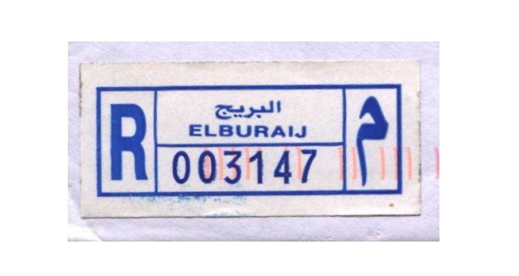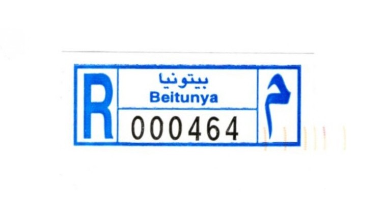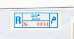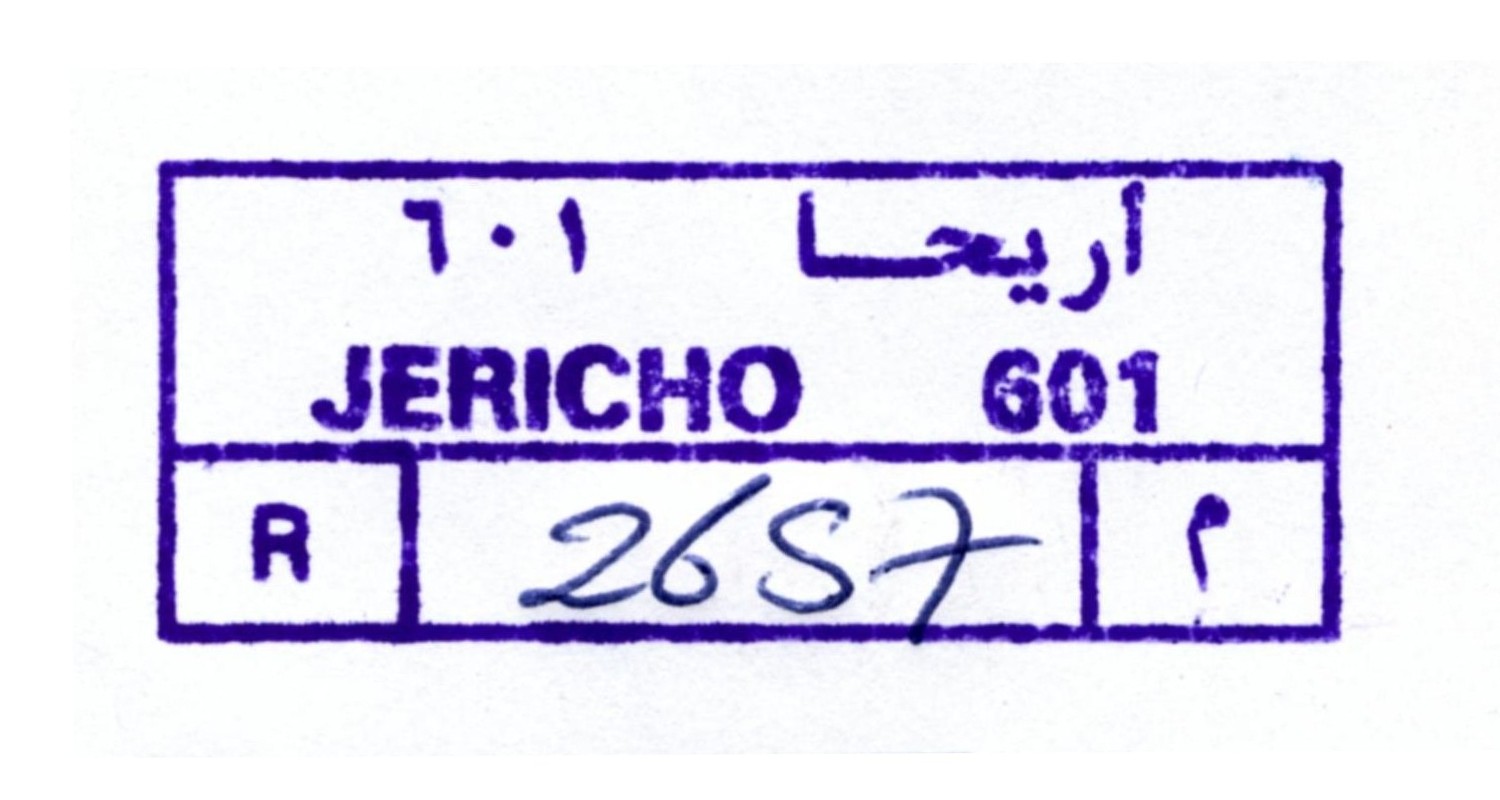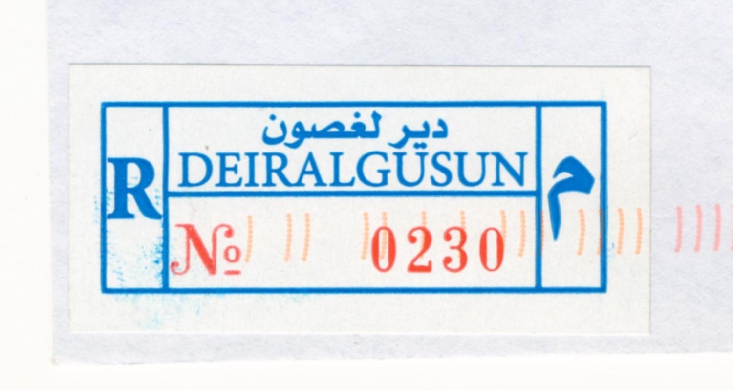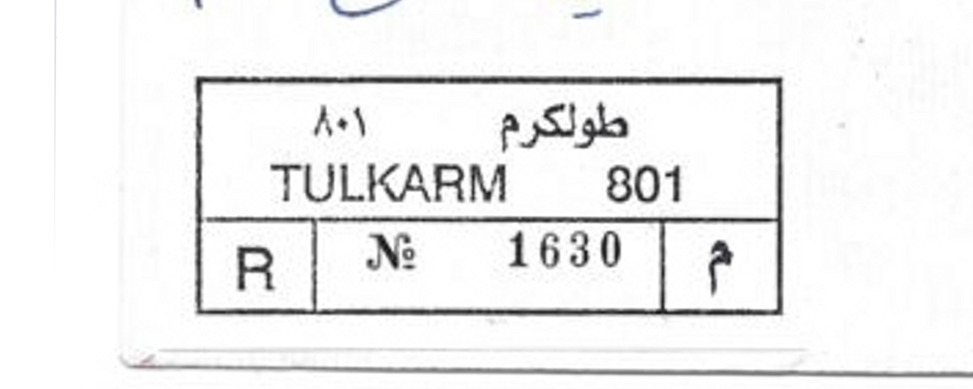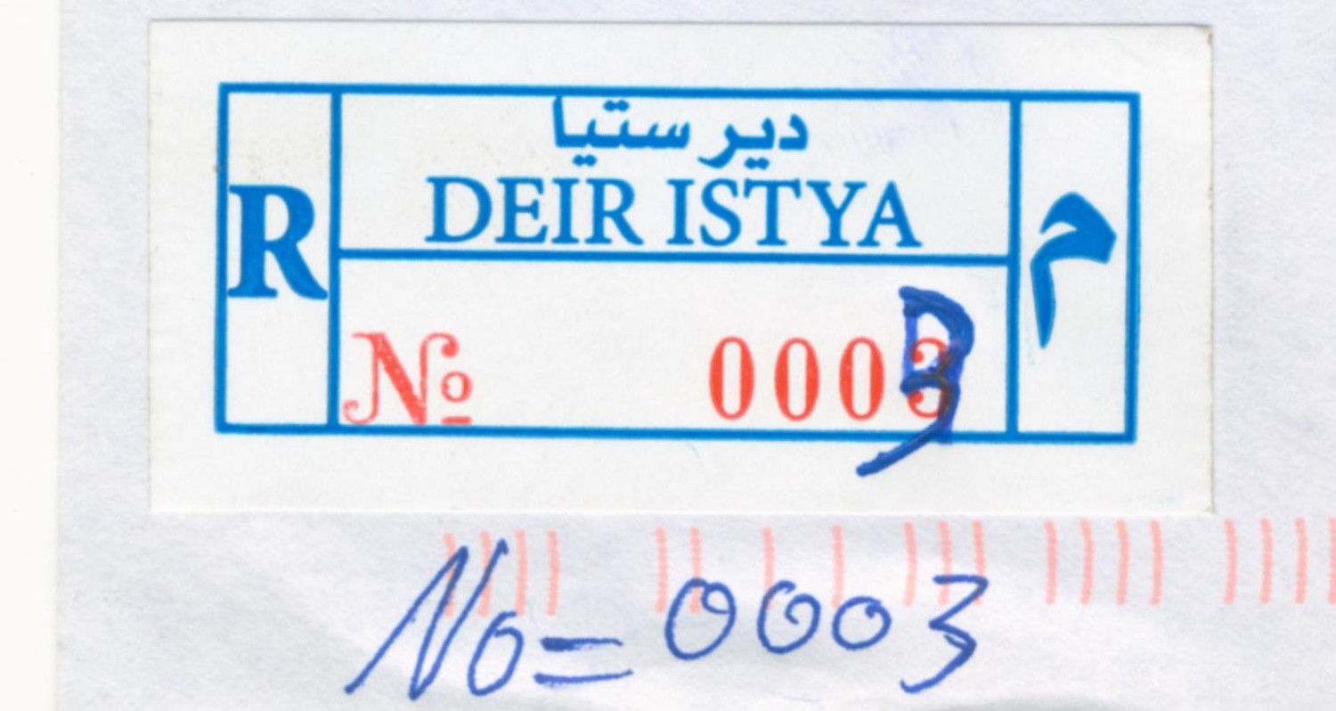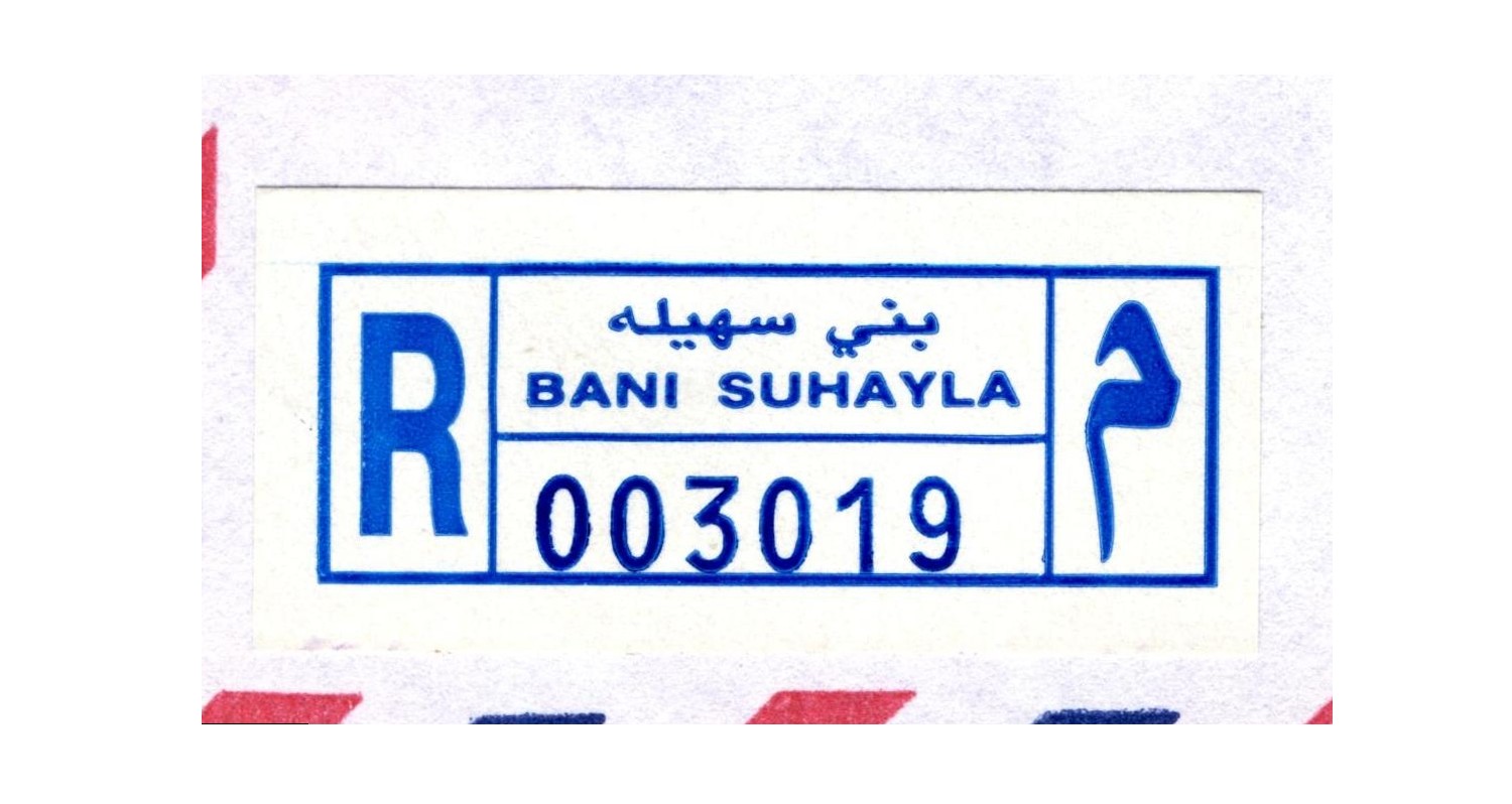During 2012 the new North Valleys office at Ein-el-Beida used photocopied B4-like strips, marked manually (type B5). In Gaza, the old labels of types B1 and B2x remained in use. After the 2008/2009 Israeli attack on Gaza, labels from damaged offices are used in offices still operating or after re-opening.