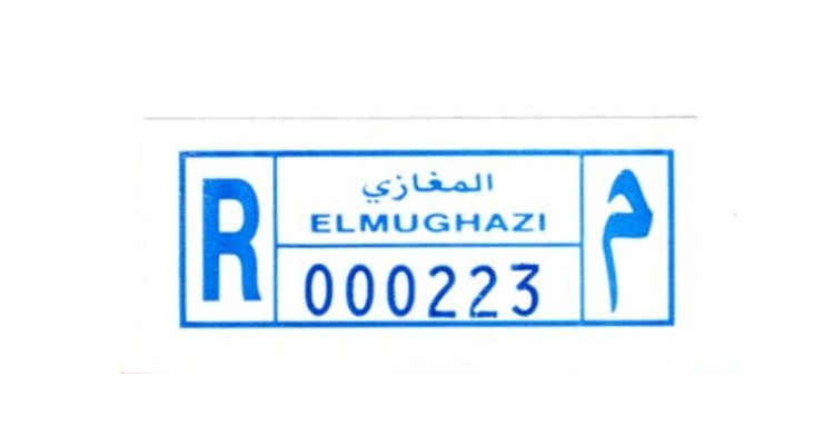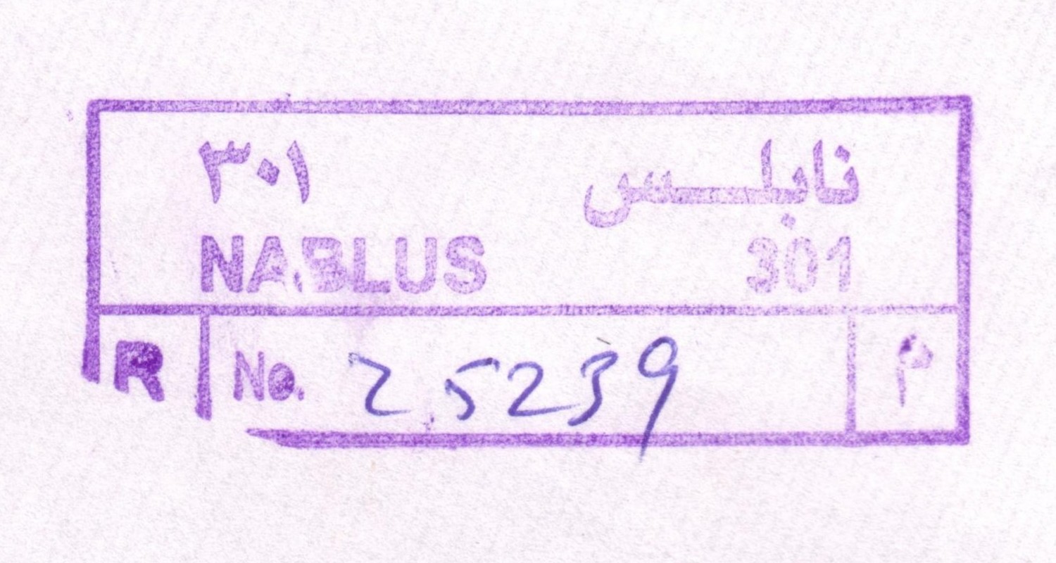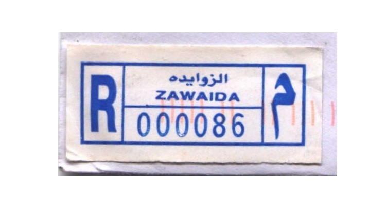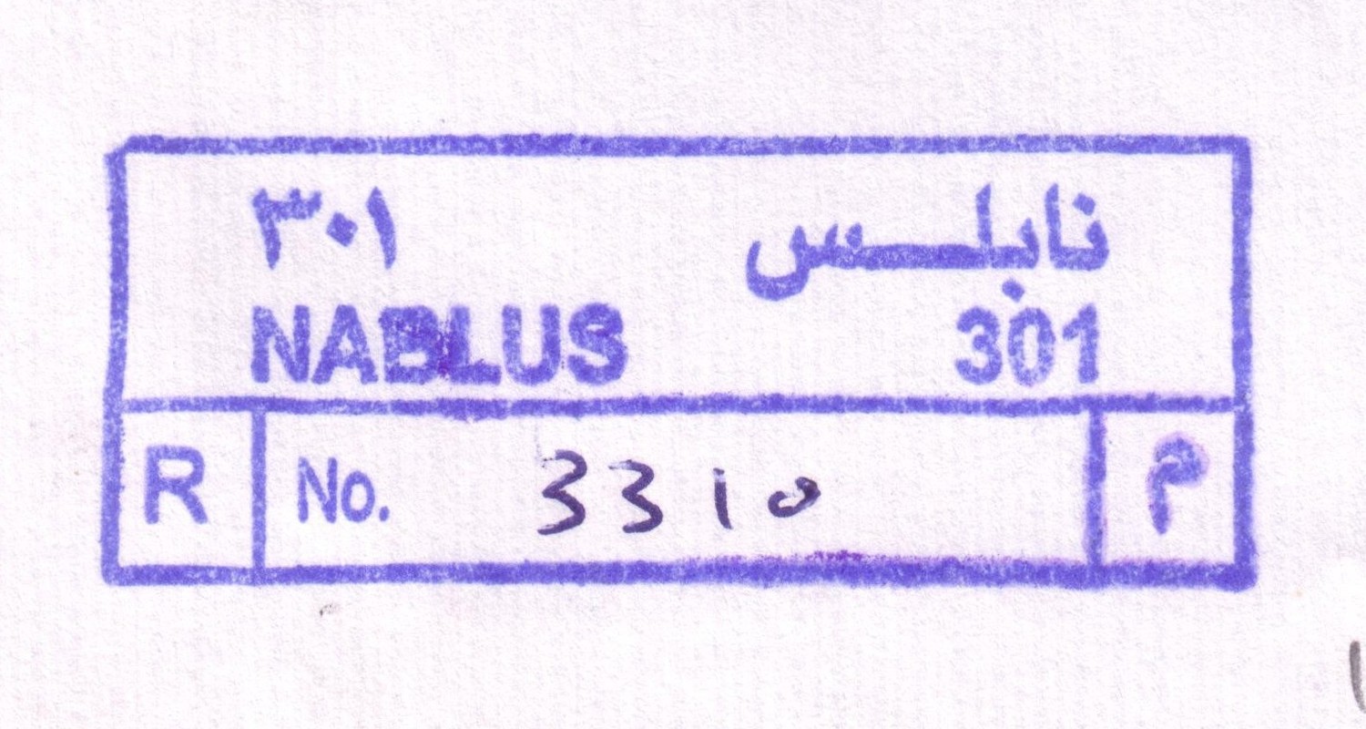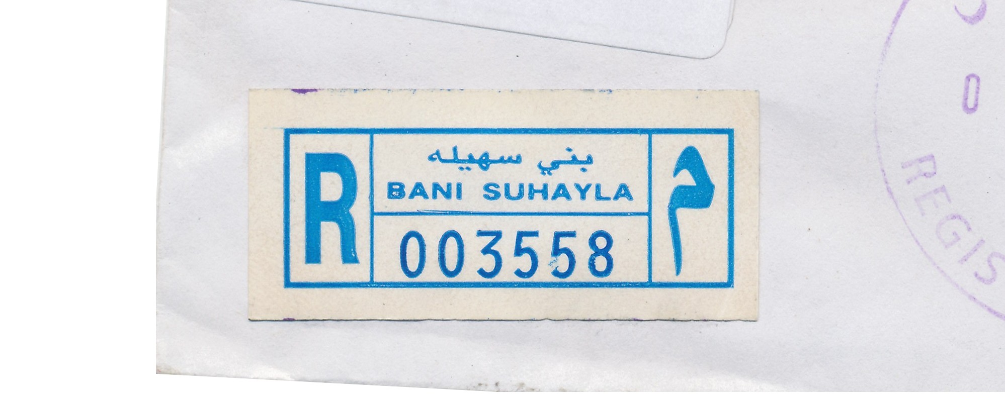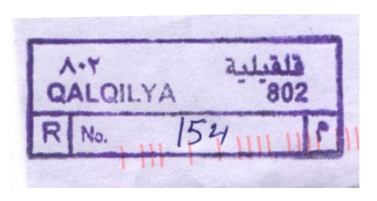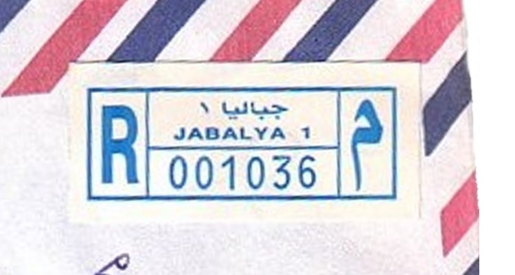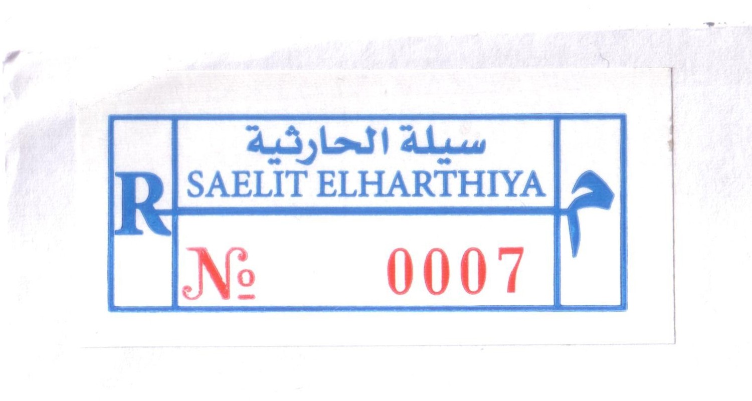 During 2012 the new North Valleys office at Ein-el-Beida used photocopied B4-like strips, marked manually (type B5). In Gaza, the old labels of types B1 and B2x remained in use. After the 2008/2009 Israeli attack on Gaza, labels from damaged offices are used in offices still operating or after re-opening.