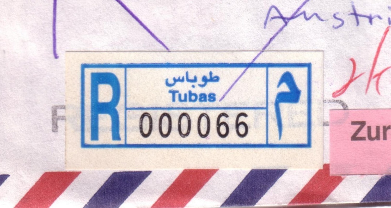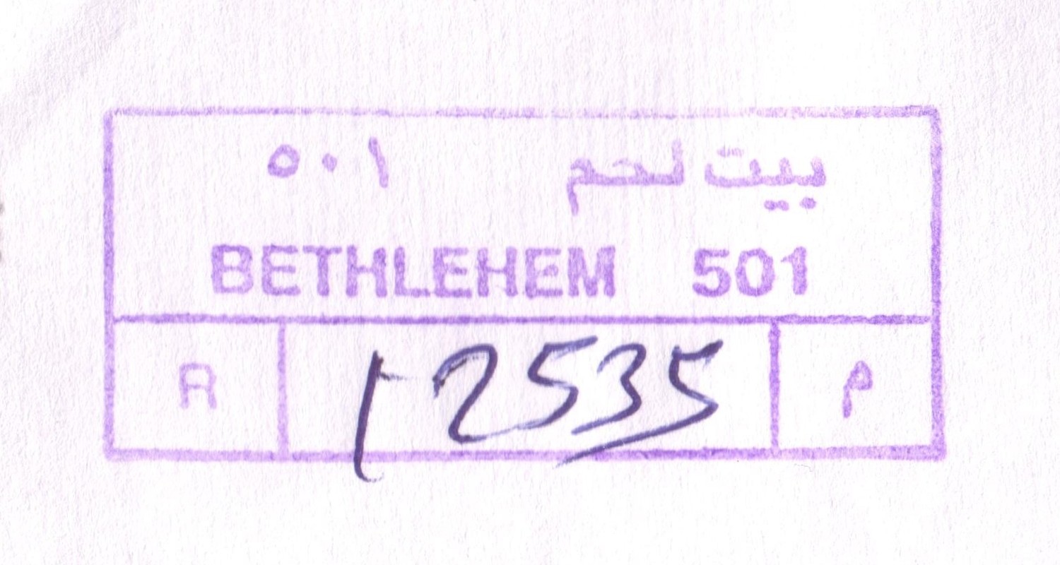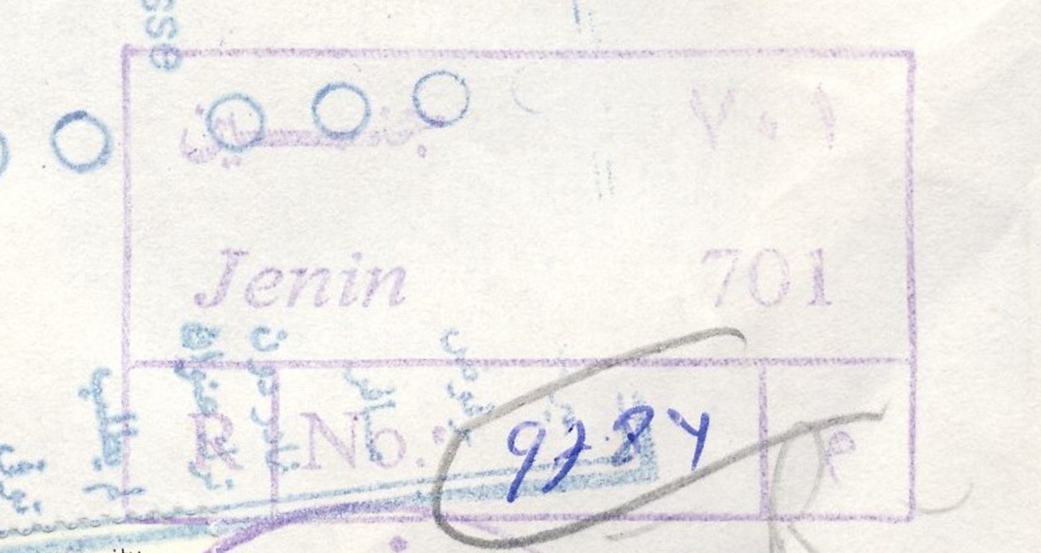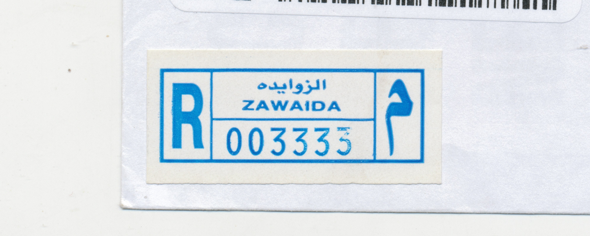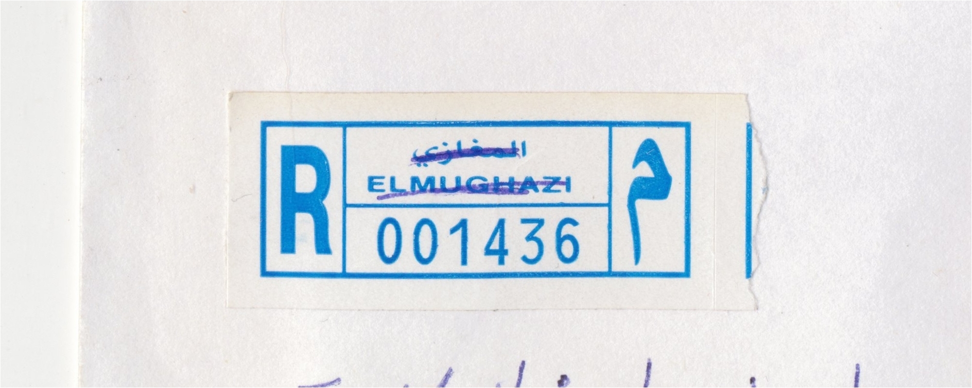 During 2012 the new North Valleys office at Ein-el-Beida used photocopied B4-like strips, marked manually (type B5). In Gaza, the old labels of types B1 and B2x remained in use. After the 2008/2009 Israeli attack on Gaza, labels from damaged offices are used in offices still operating or after re-opening.