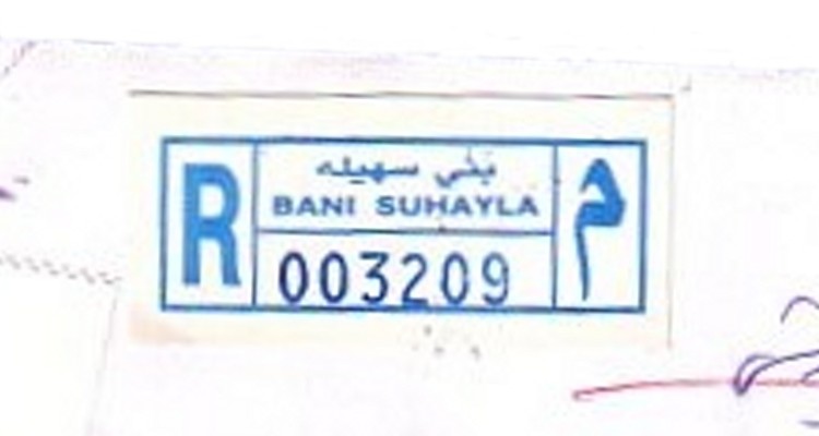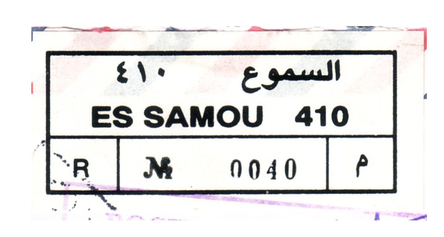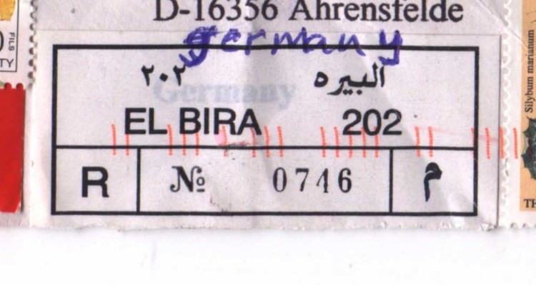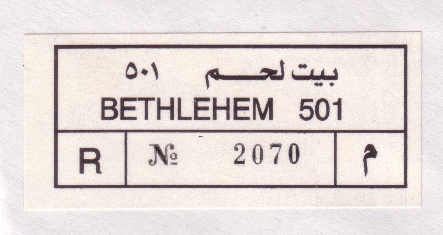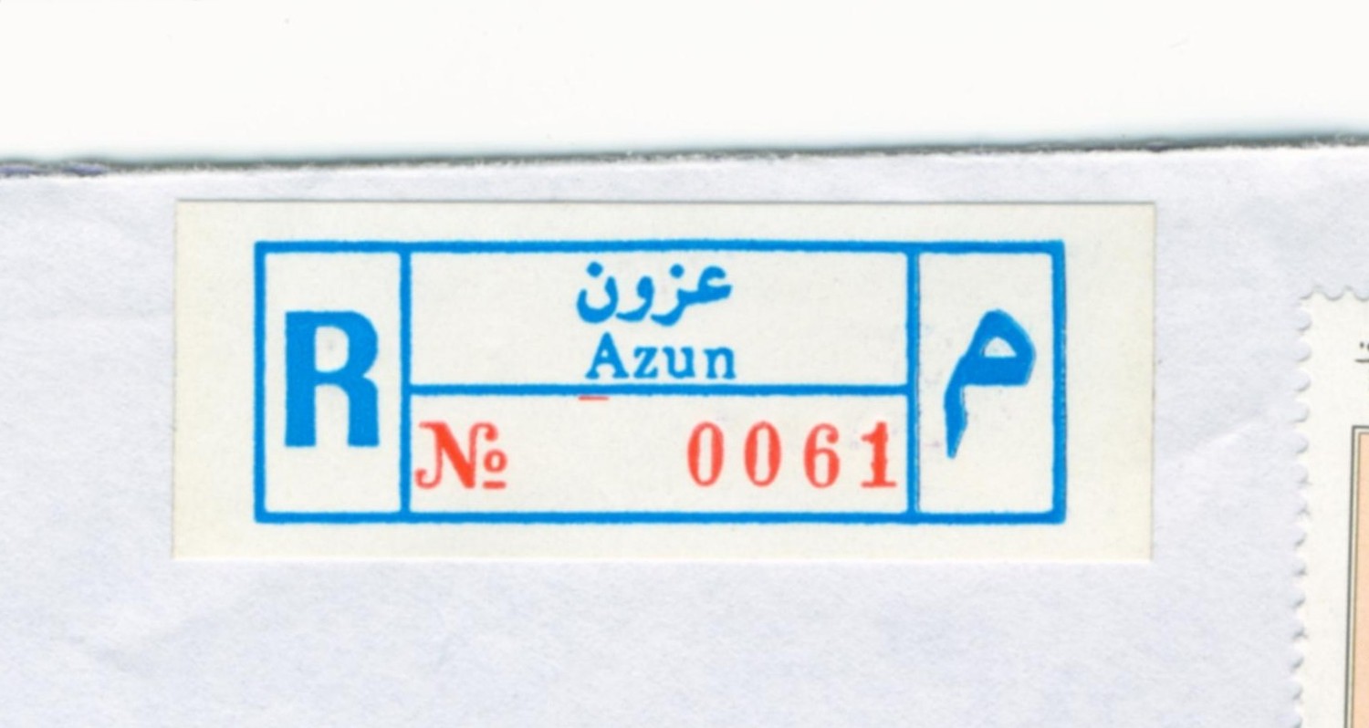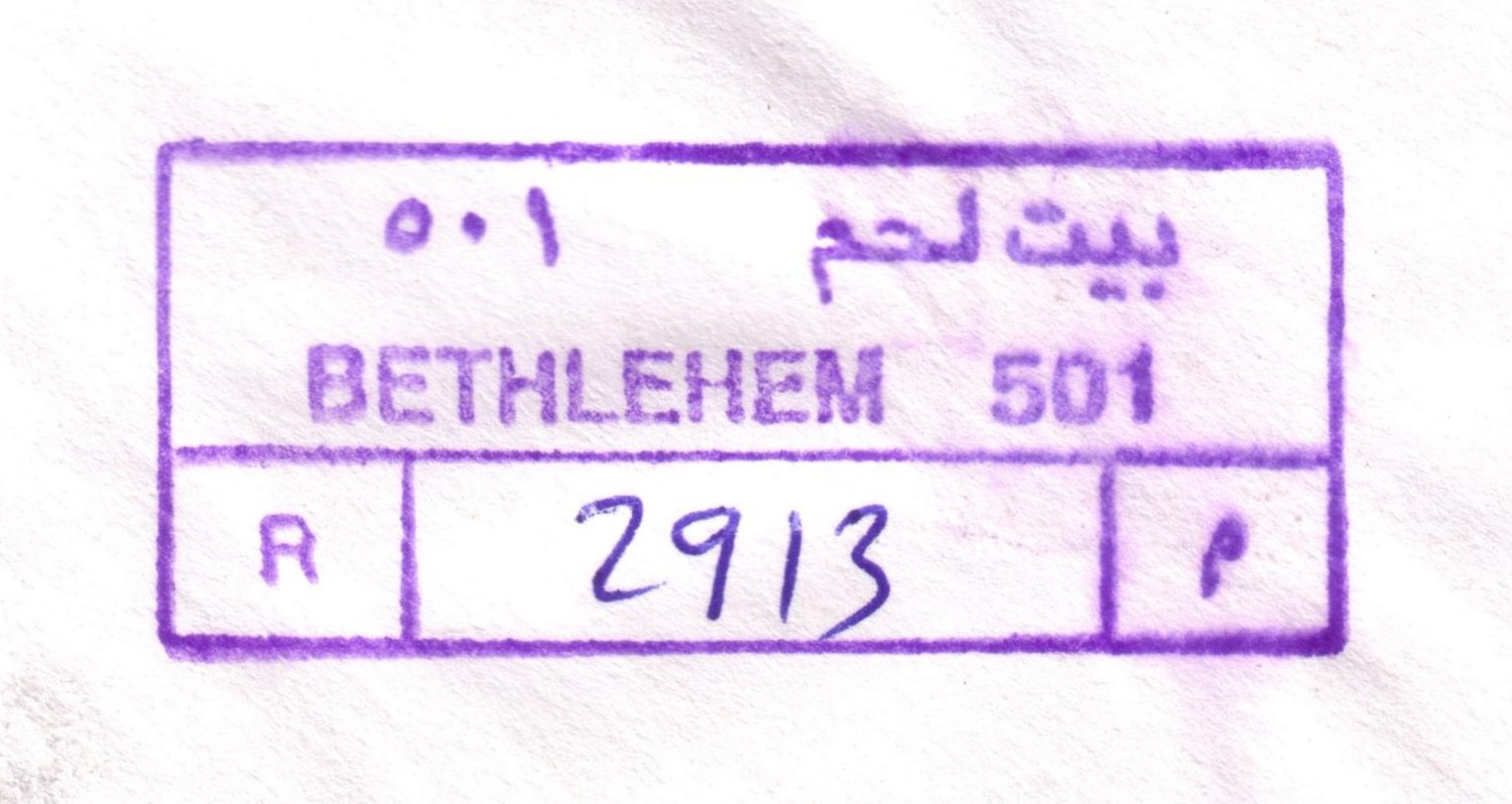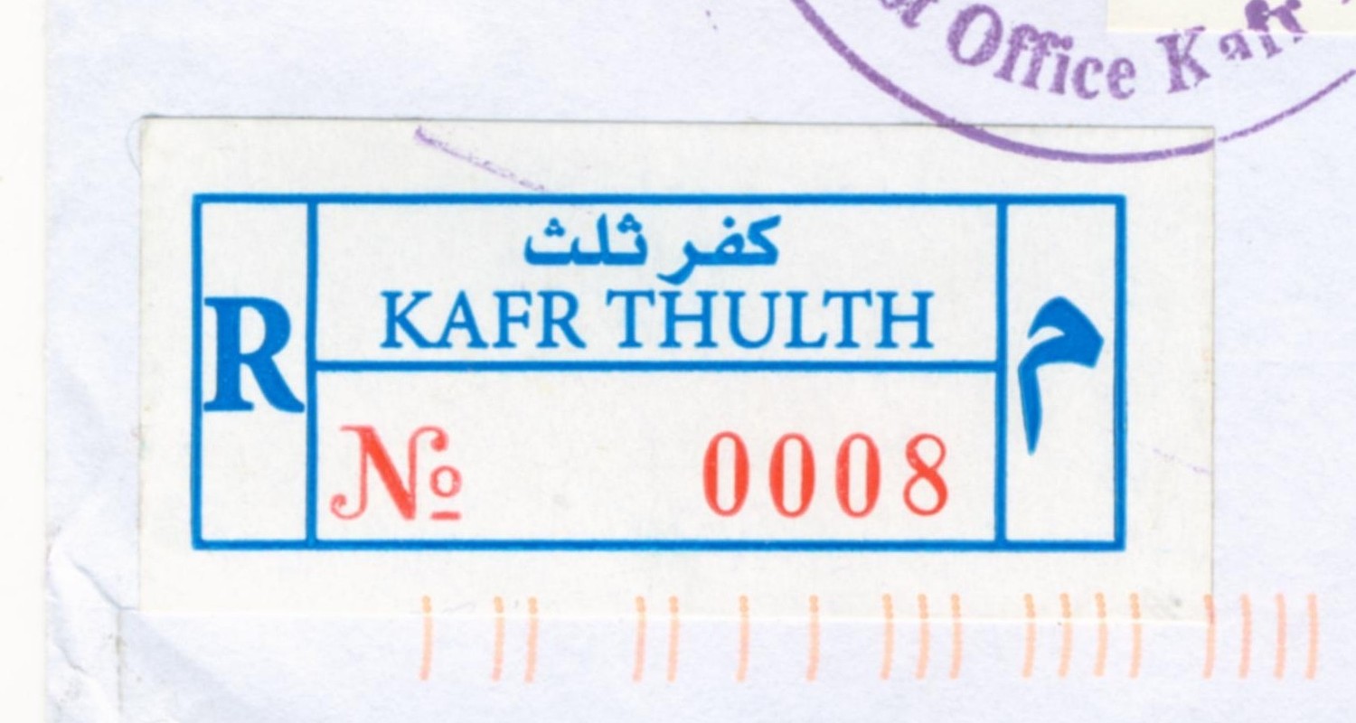 During 2012 the new North Valleys office at Ein-el-Beida used photocopied B4-like strips, marked manually (type B5). In Gaza, the old labels of types B1 and B2x remained in use. After the 2008/2009 Israeli attack on Gaza, labels from damaged offices are used in offices still operating or after re-opening.