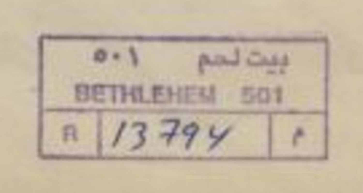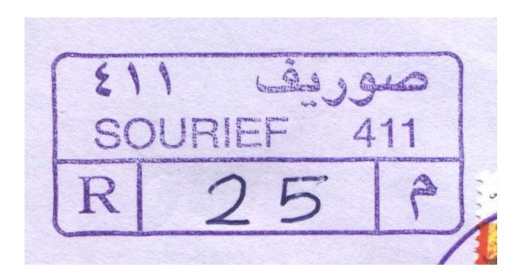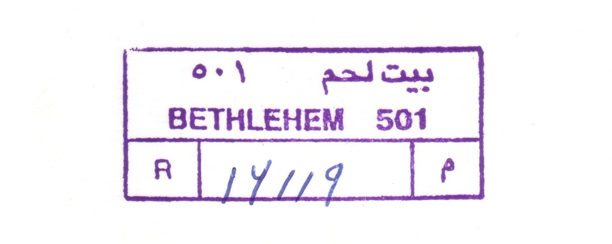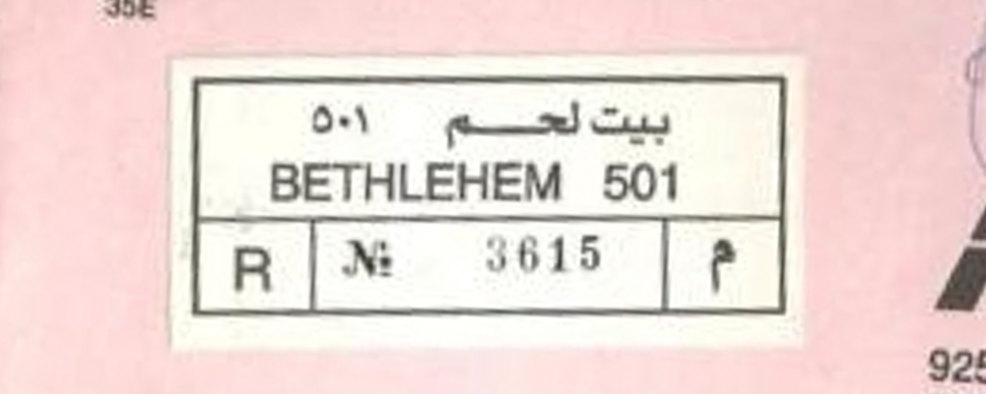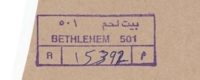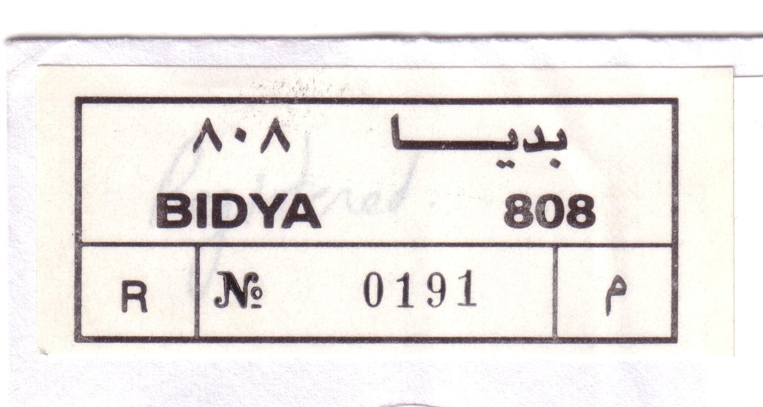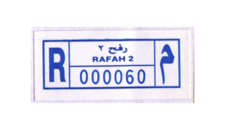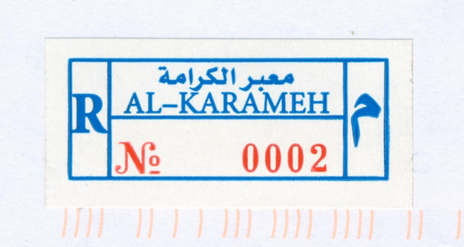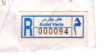 During 2012 the new North Valleys office at Ein-el-Beida used photocopied B4-like strips, marked manually (type B5). In Gaza, the old labels of types B1 and B2x remained in use. After the 2008/2009 Israeli attack on Gaza, labels from damaged offices are used in offices still operating or after re-opening.