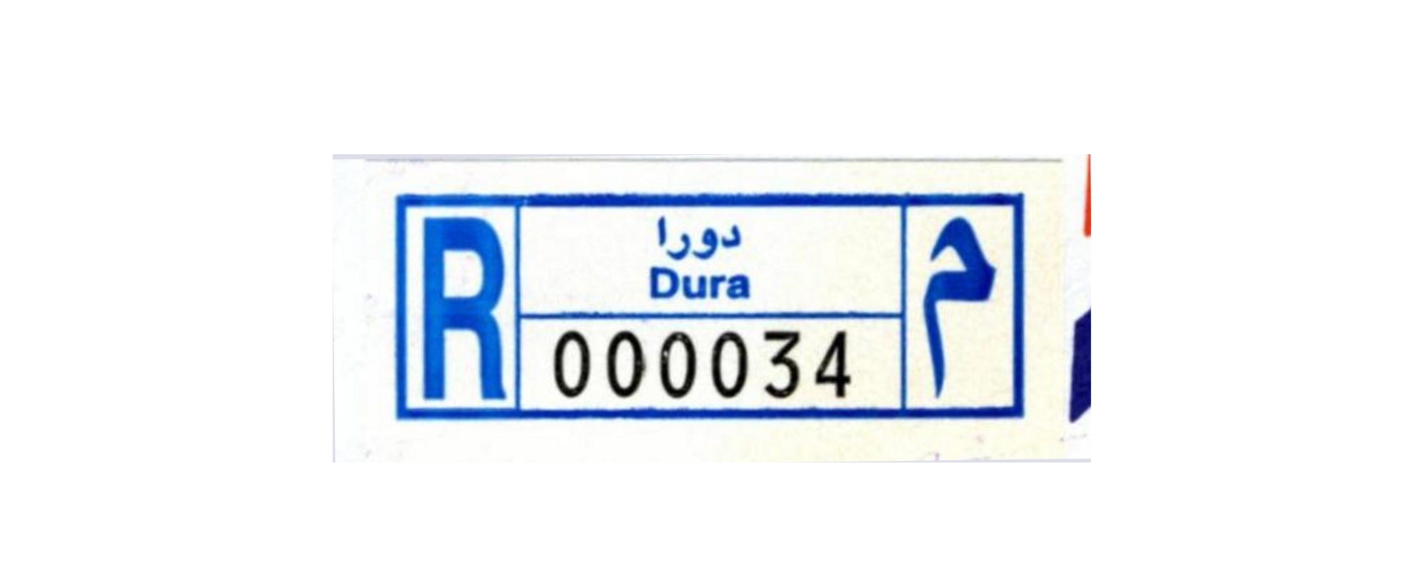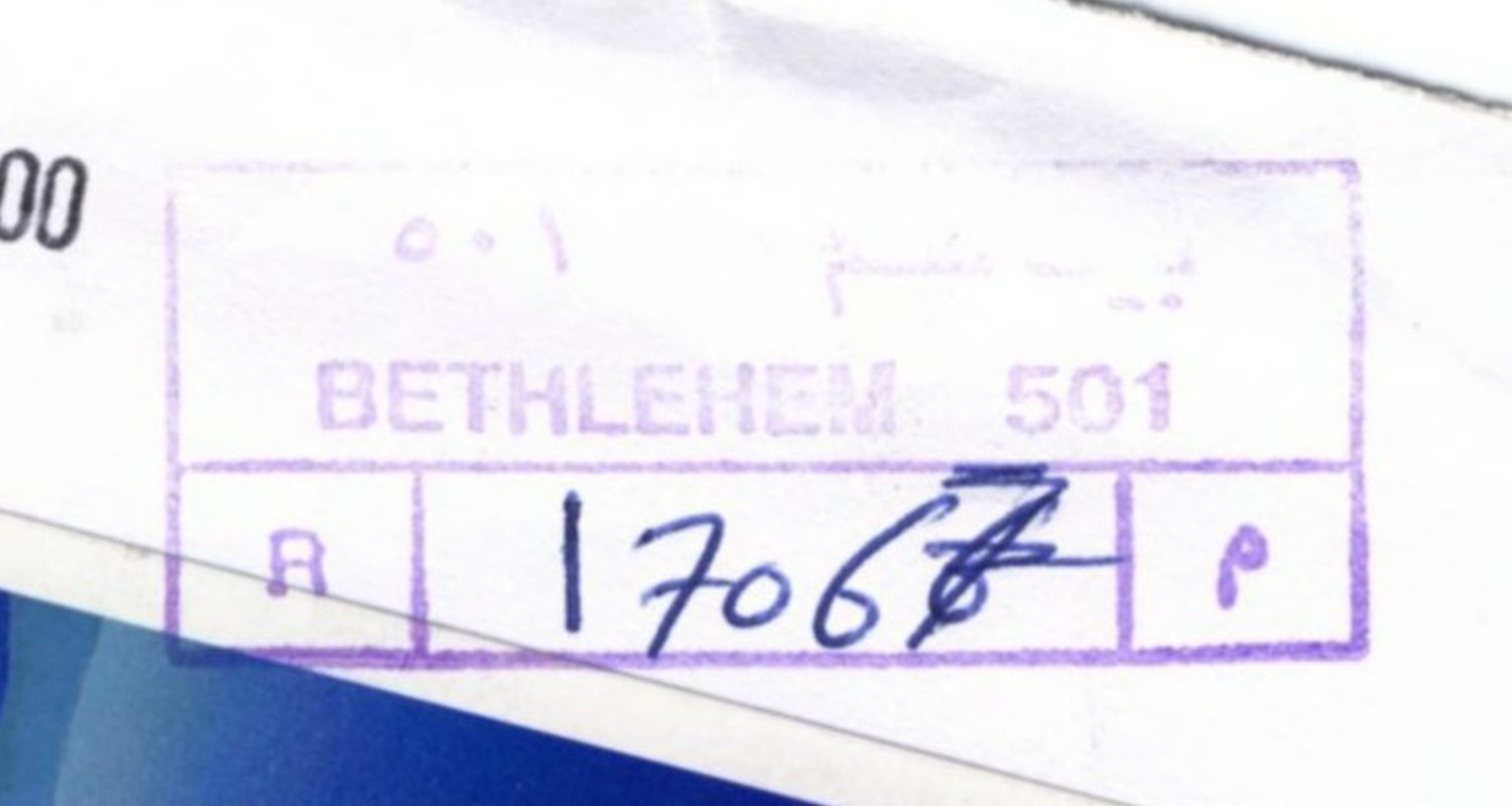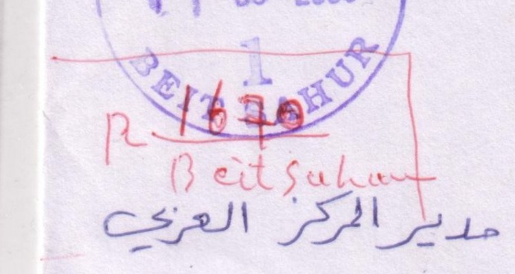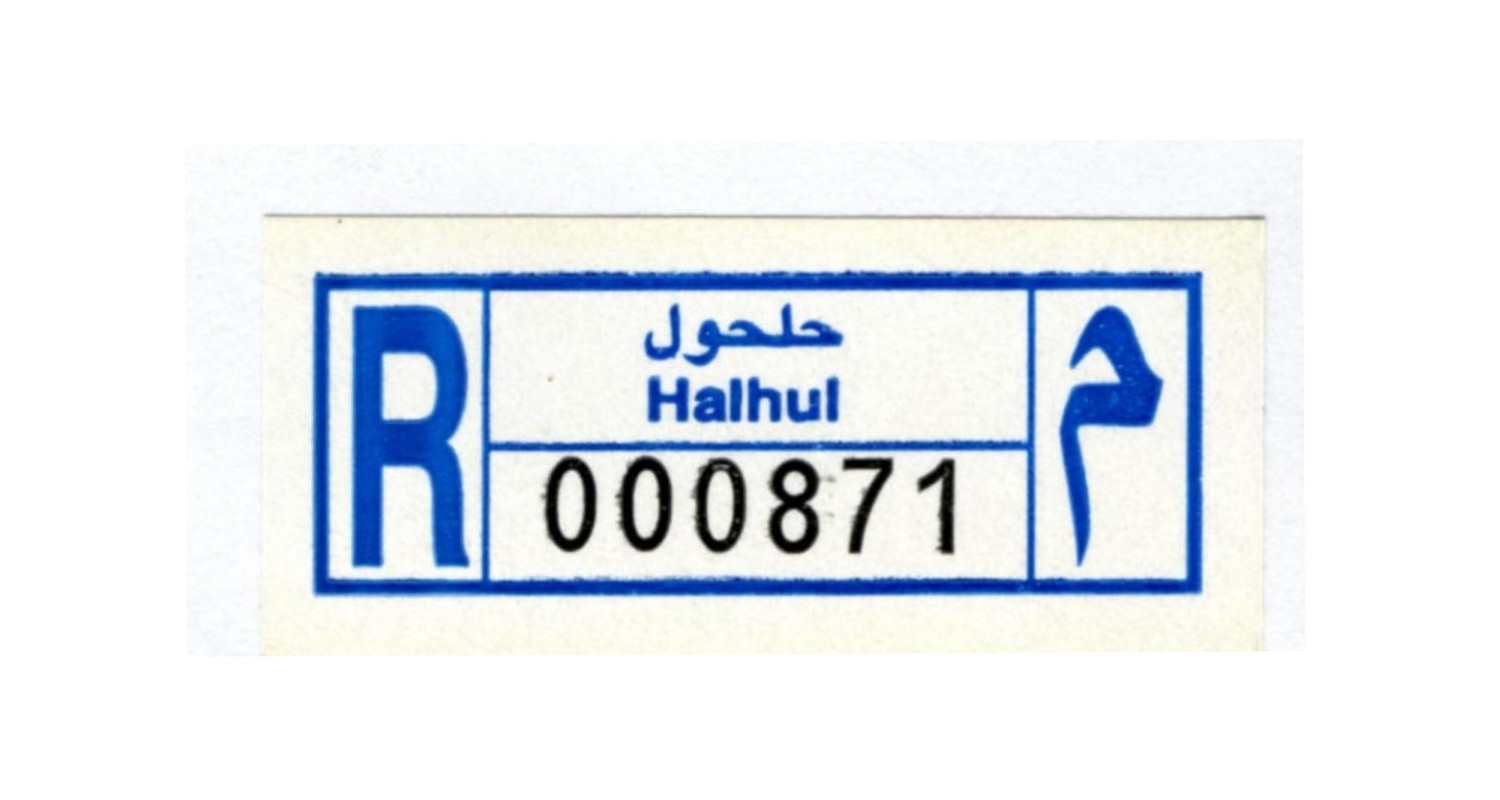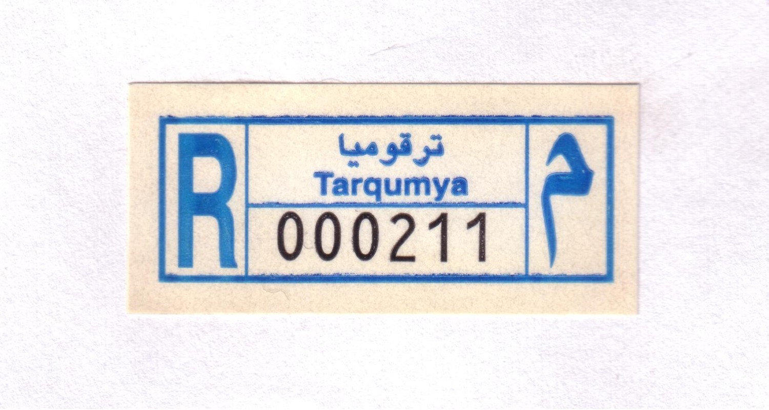 During 2012 the new North Valleys office at Ein-el-Beida used photocopied B4-like strips, marked manually (type B5). In Gaza, the old labels of types B1 and B2x remained in use. After the 2008/2009 Israeli attack on Gaza, labels from damaged offices are used in offices still operating or after re-opening.