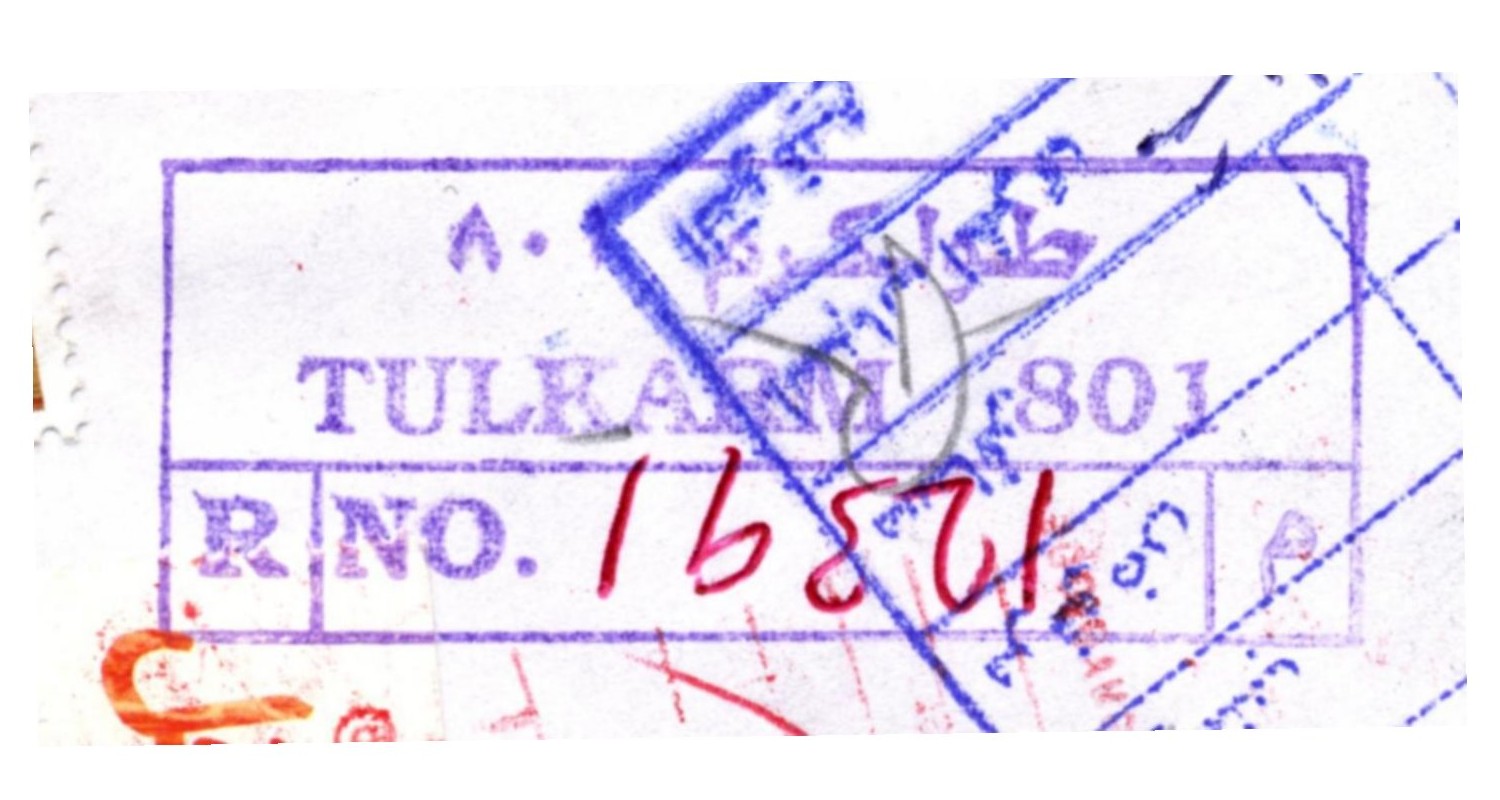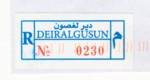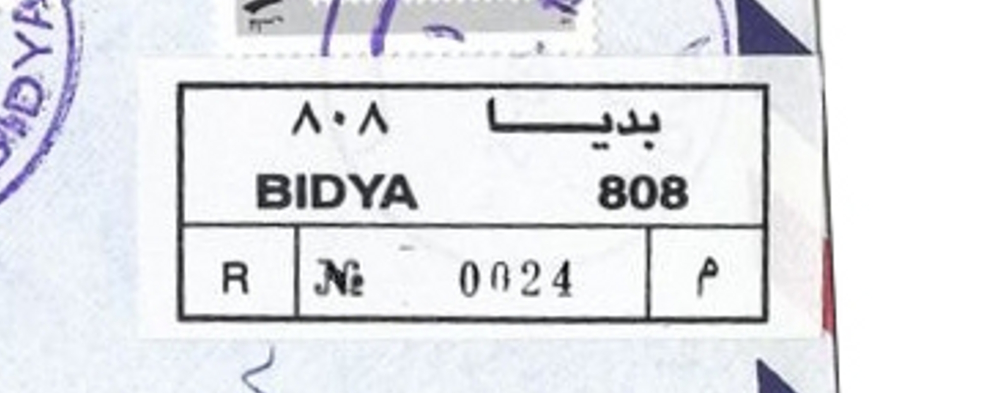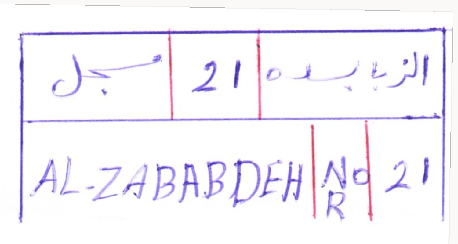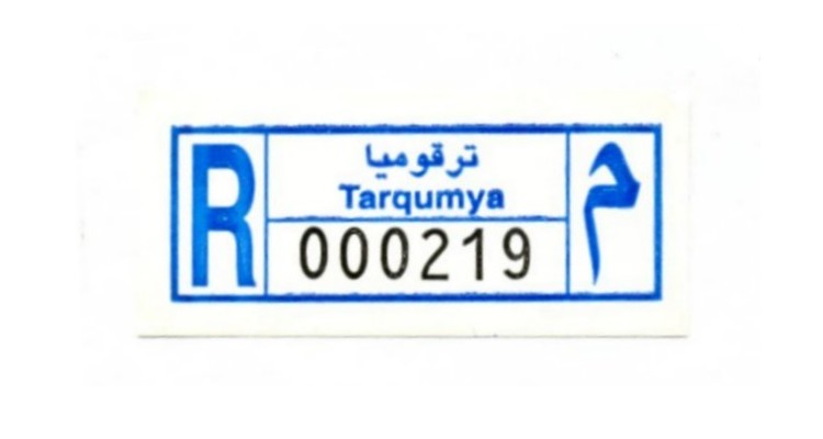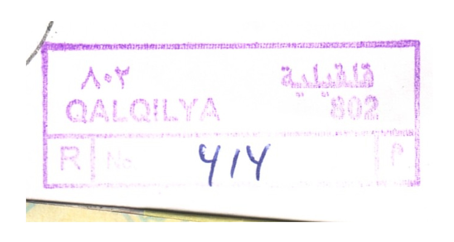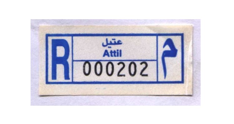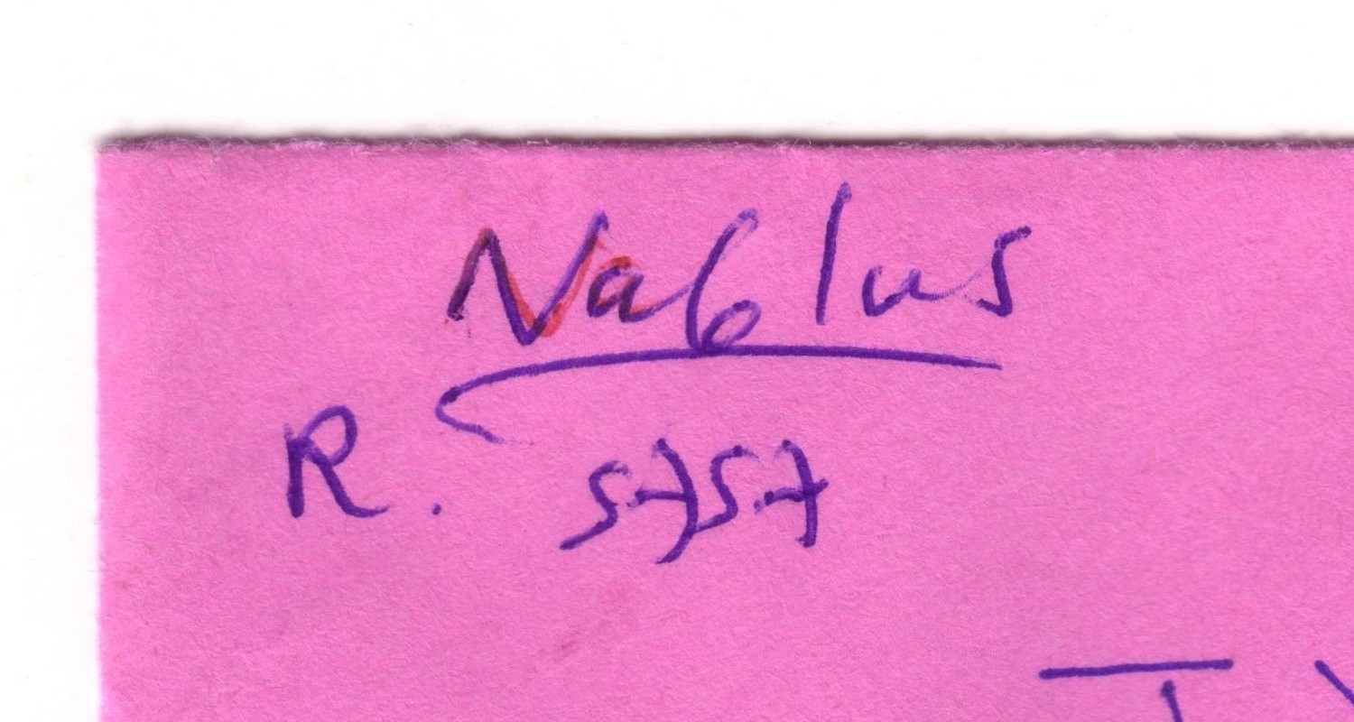 During 2012 the new North Valleys office at Ein-el-Beida used photocopied B4-like strips, marked manually (type B5). In Gaza, the old labels of types B1 and B2x remained in use. After the 2008/2009 Israeli attack on Gaza, labels from damaged offices are used in offices still operating or after re-opening.