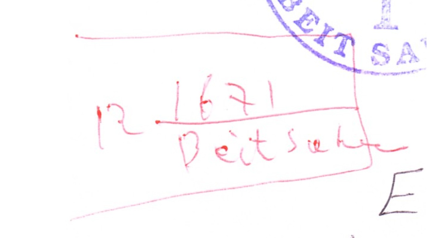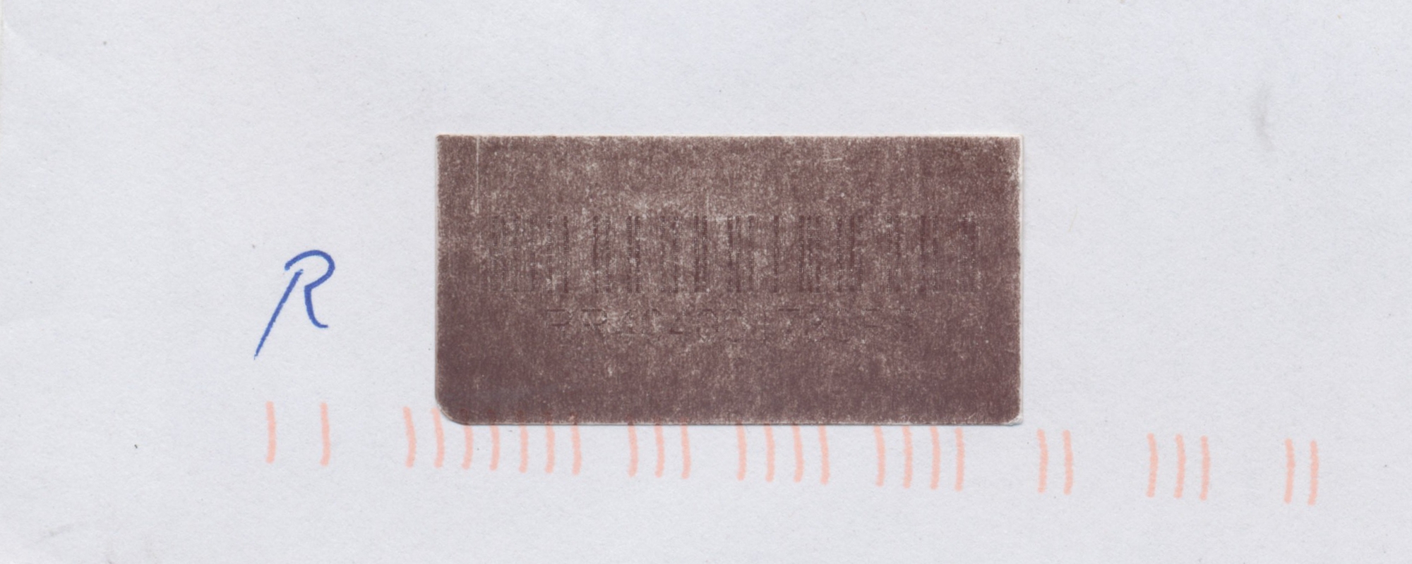 - photocopied paper strips (sizes vary widely), black with (sometimes red) manual inscriptions. Design (ca. 43.9x15.2/16mm) similar to B4.