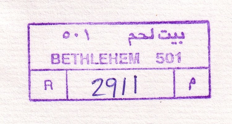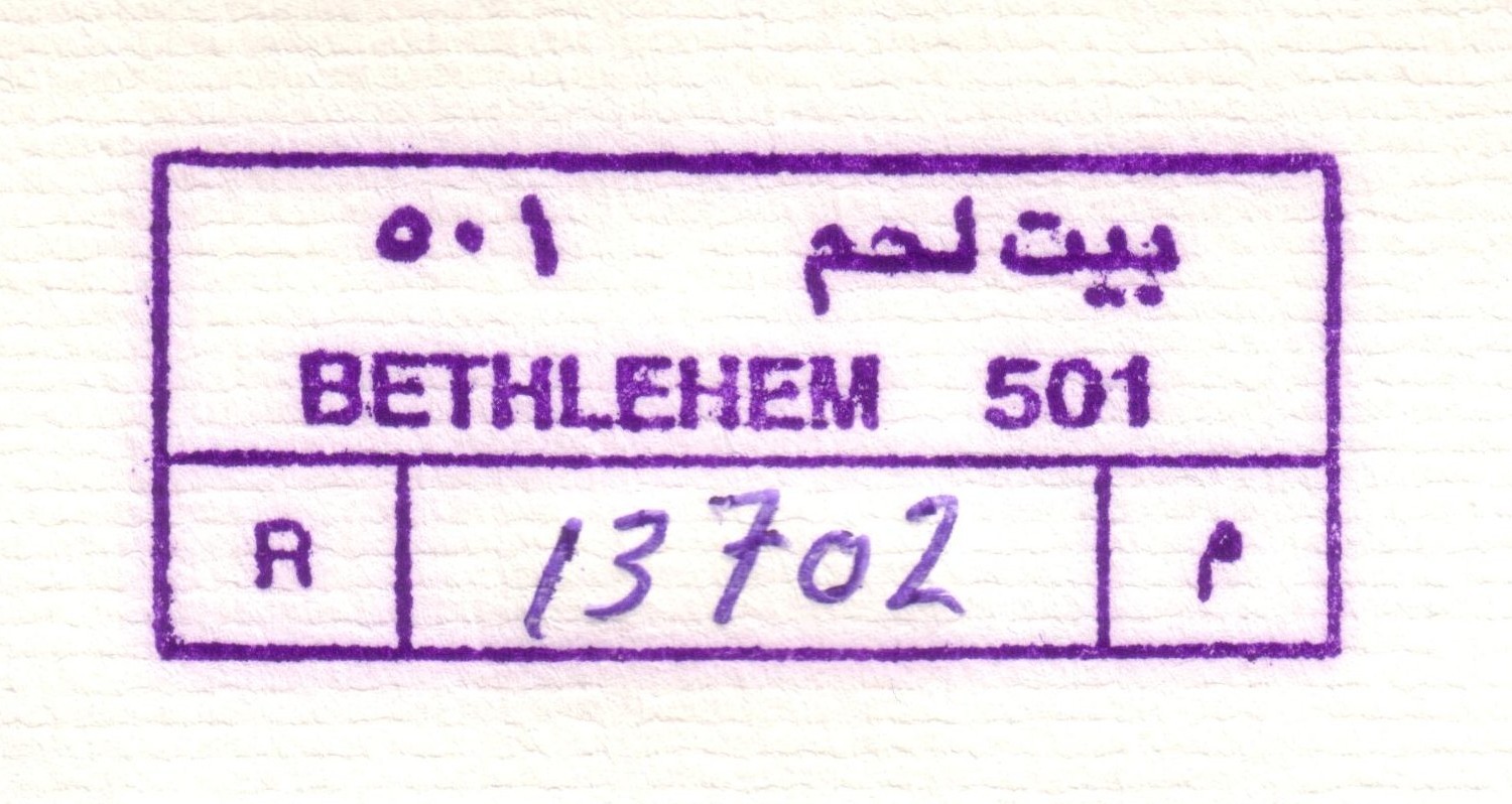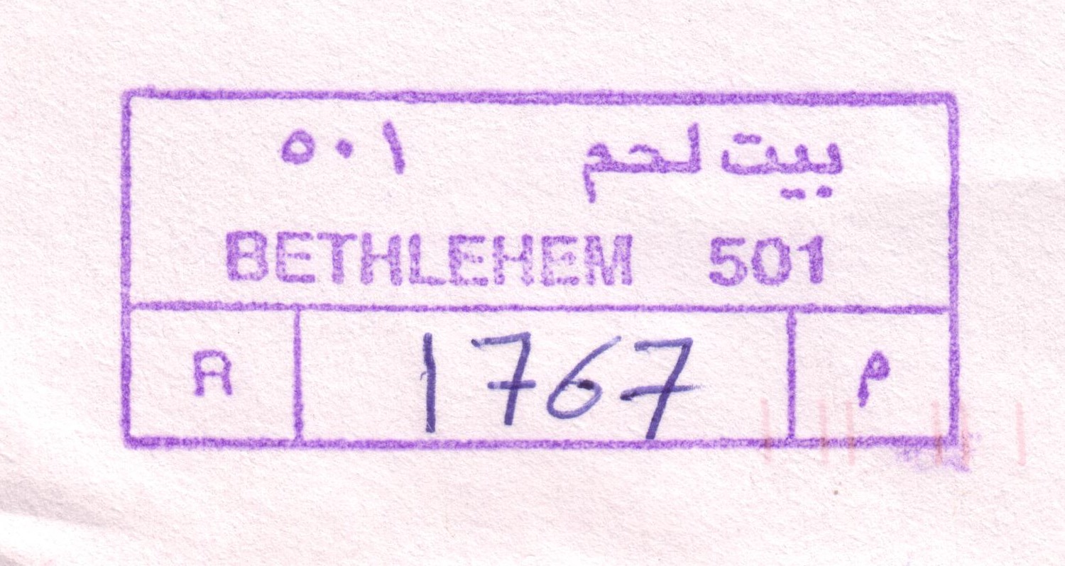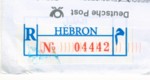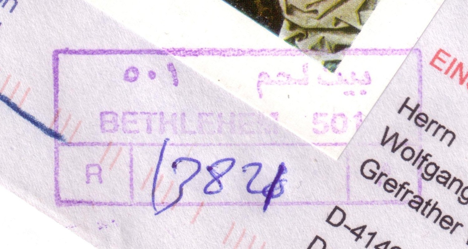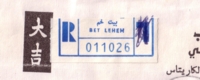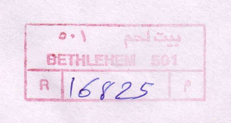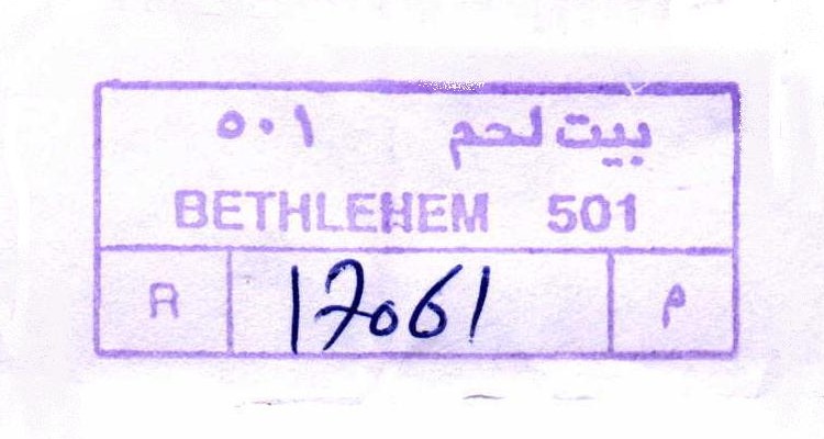 From about June 1999 some offices in the Westbank (initially the larger ones) started to use handstamp markings (type C). Apparently they had run out of expensive self-adhesive labels and were provided rubber handstamps from a central source, though design variations exist. Labels in type B3 start appearing in early 2005, mainly in smaller Westbank office, and type B4 is used on the Westbank from September 2009.