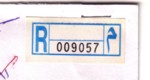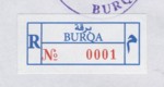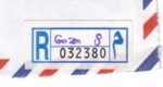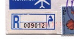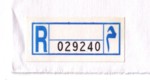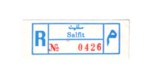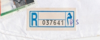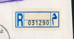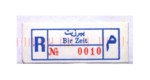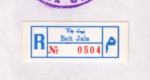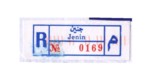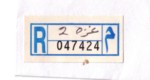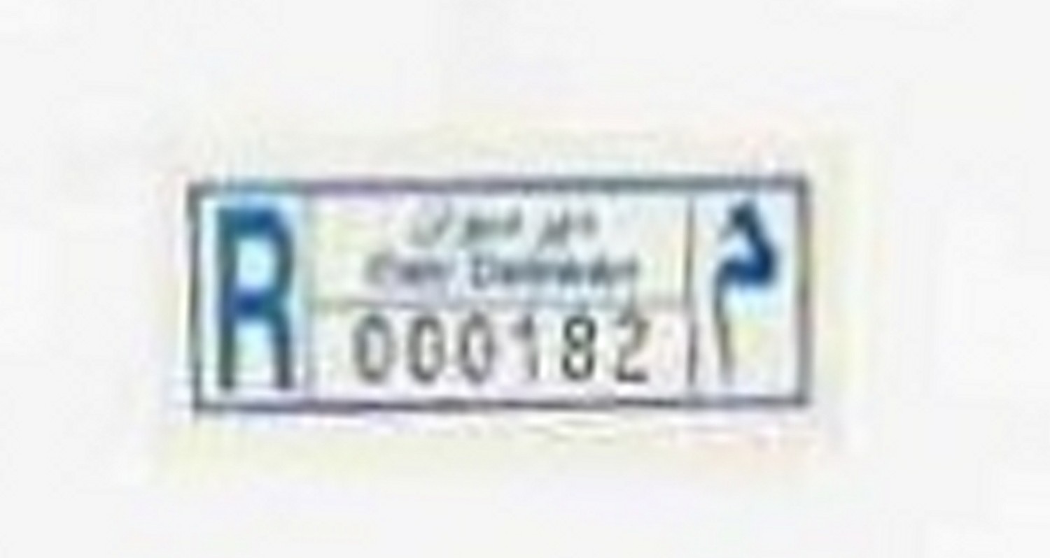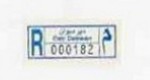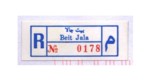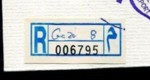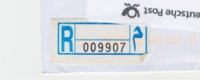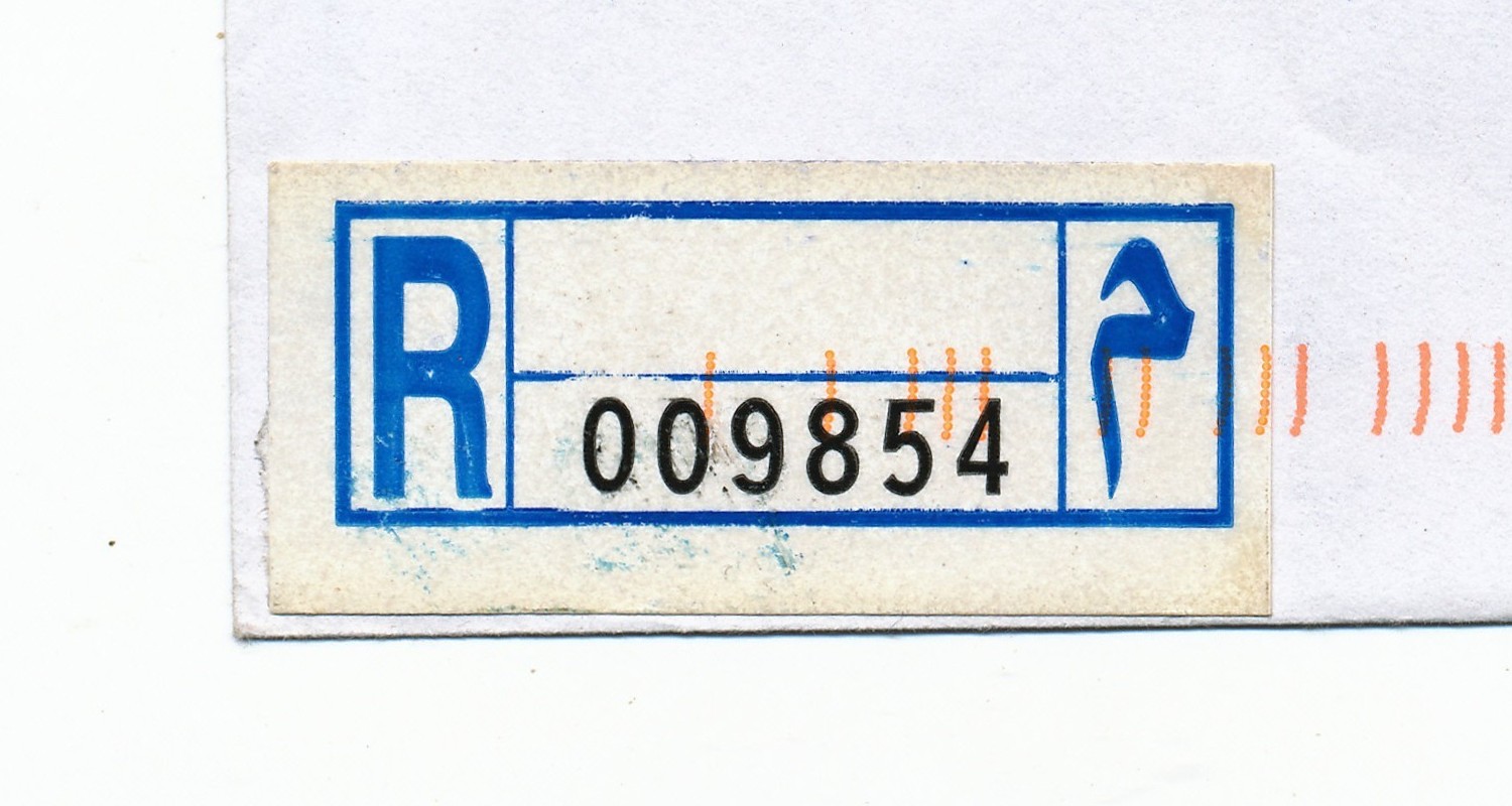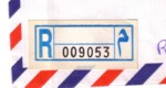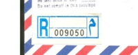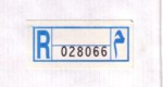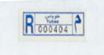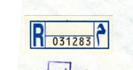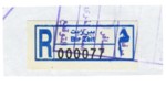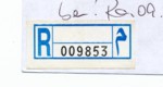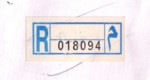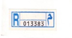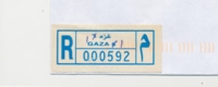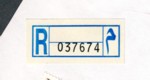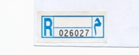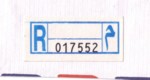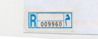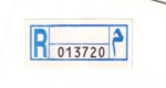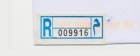 - white self-adhesive labels, printed in blue. Imprinted numerator with prefixed number in red. 4 or 5 digits. Imprint size: 43.5x17mm (outside), 42.5x15.9mm (inside). Label size: 49.9x23.6mm.