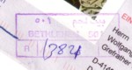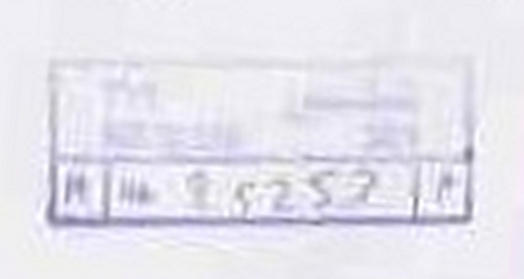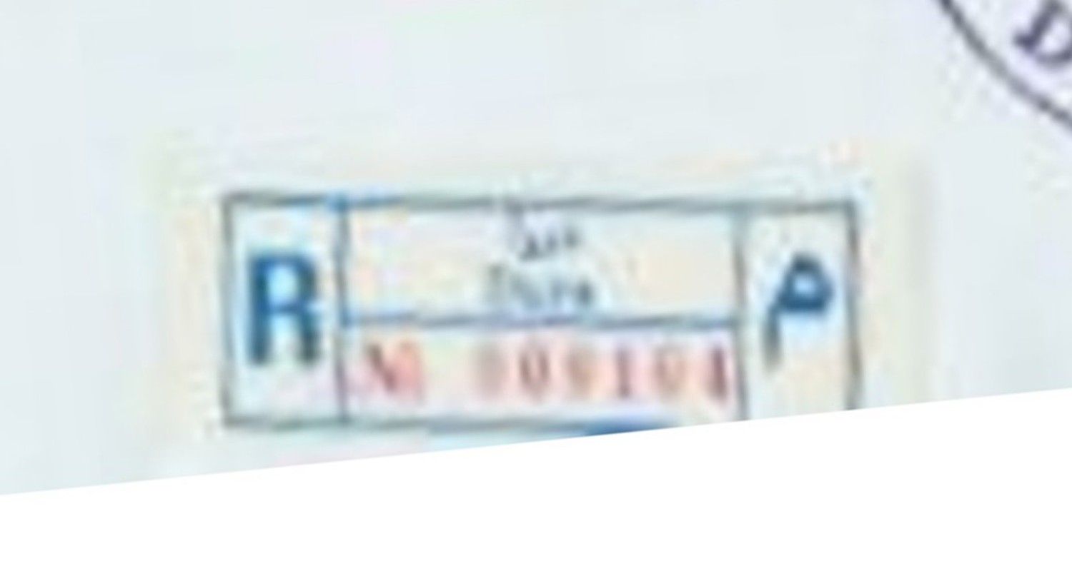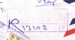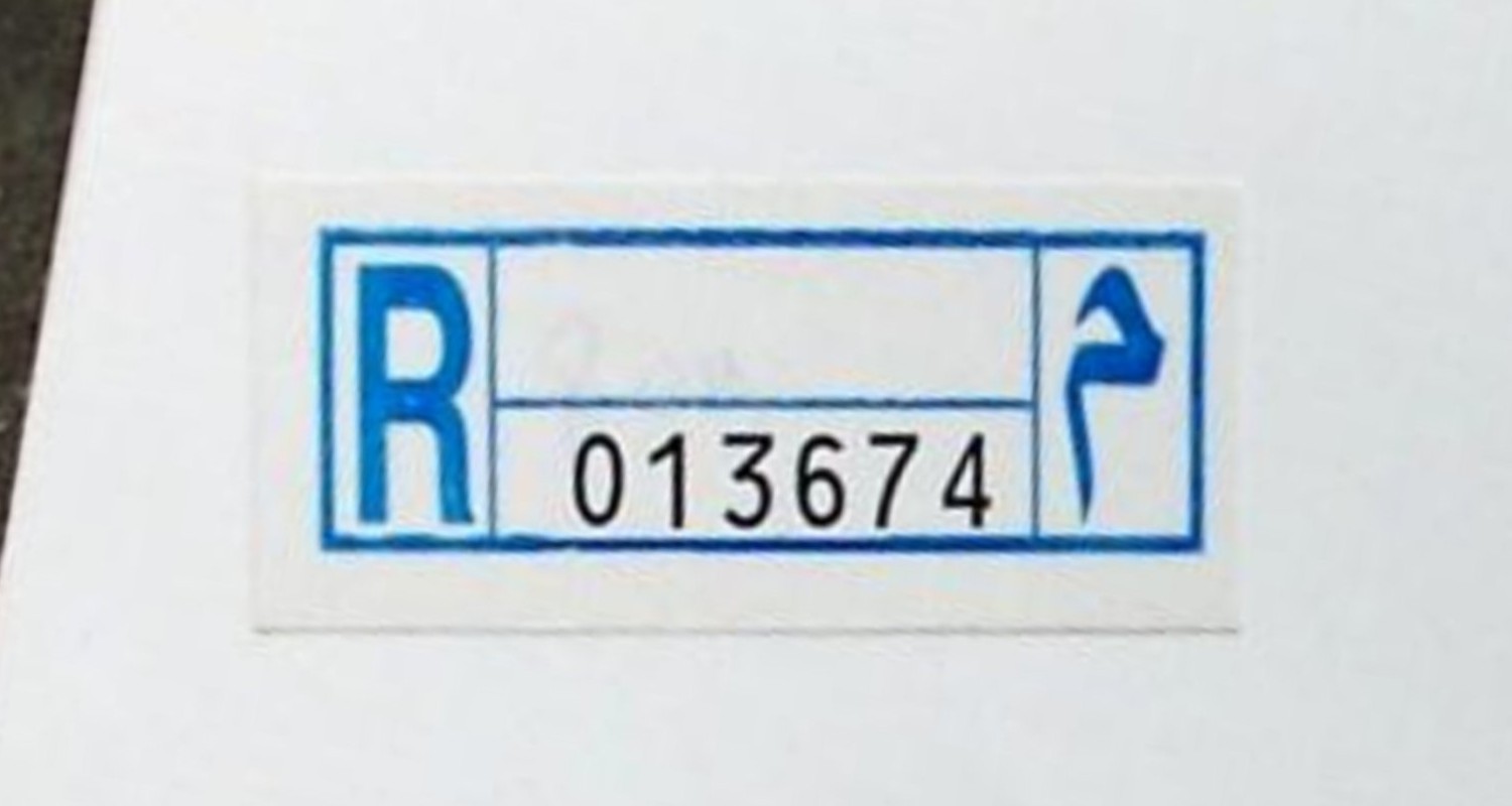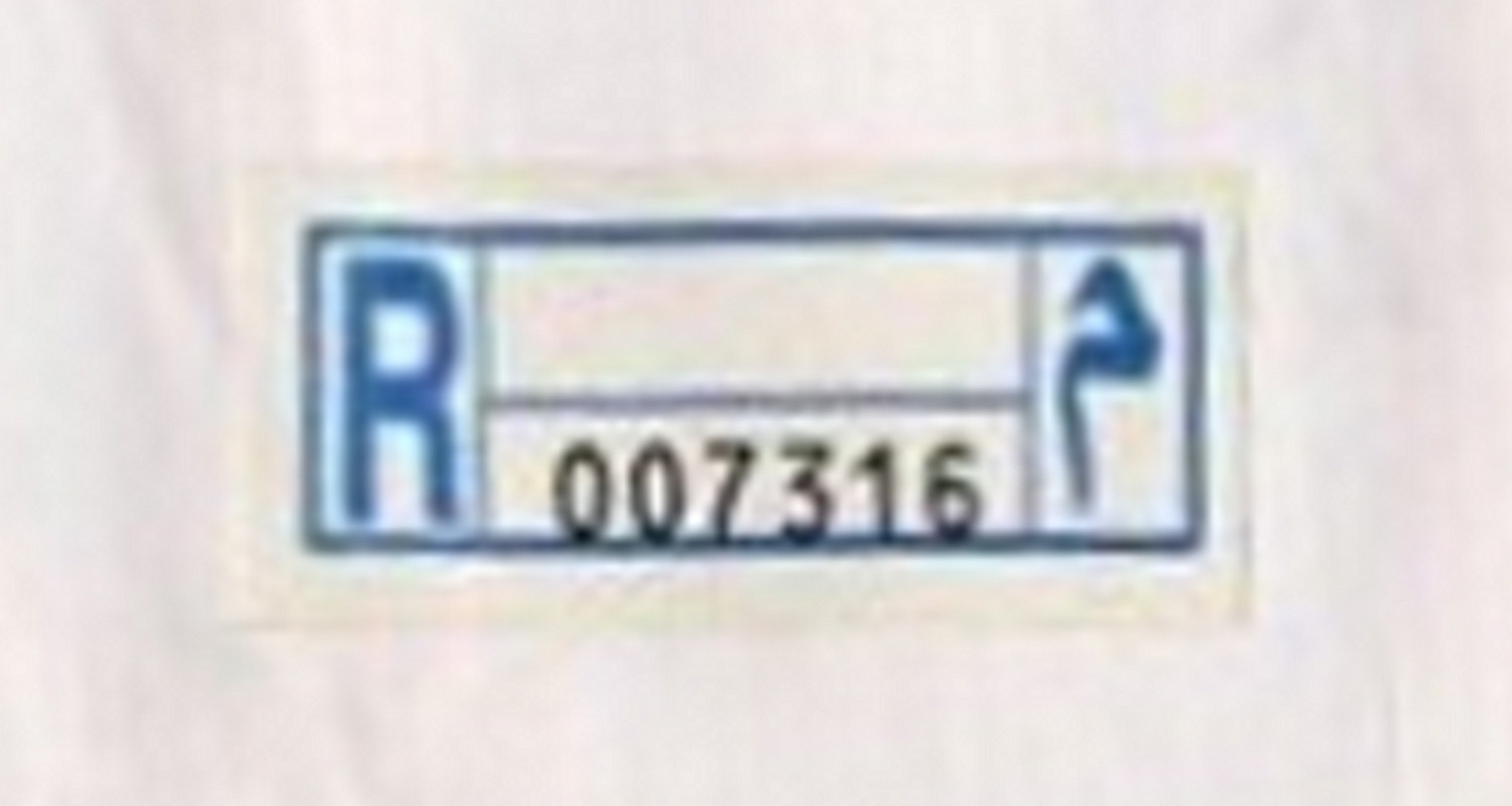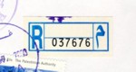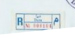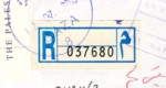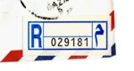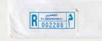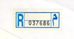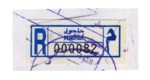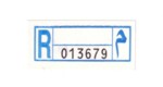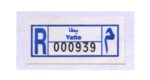 - white self-adhesive labels, printed in blue with imprinted numerator in blue. 6 digits. Size: 36.0–36.5x12.5mm (imprint); 42.0–42.5x19mm (label).