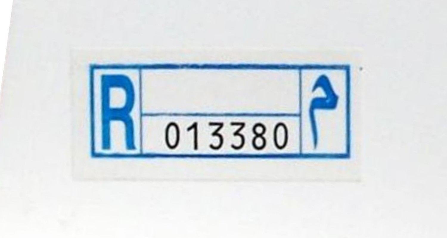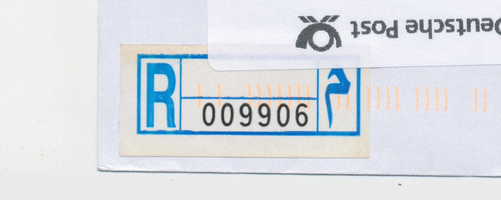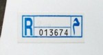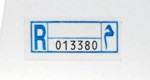 - white self-adhesive labels, printed in blue. Imprinted numerator with prefixed number in red. 4 digits (Dura: 6 digits). Imprint size: 37.5x13mm (outside), 36.2x12.2mm (inside). Label size: 45.0x16.5mm.